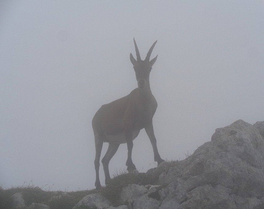 Aug 2017 - (with Gemma) Ascent from Les Pres Ronds. La Tournette is the highest summit around the Annecy Lake. The summit is one of the most outstanding panoramas of the Alps. From the top, you see the half of the french Alps from Mont Blanc to La Meije and from Pointe Percée to Mont Aiguille. We didn't see much of this from the summit but what an amazing ascent. Alpine goats aplenty and loads of superb scrambling sections.