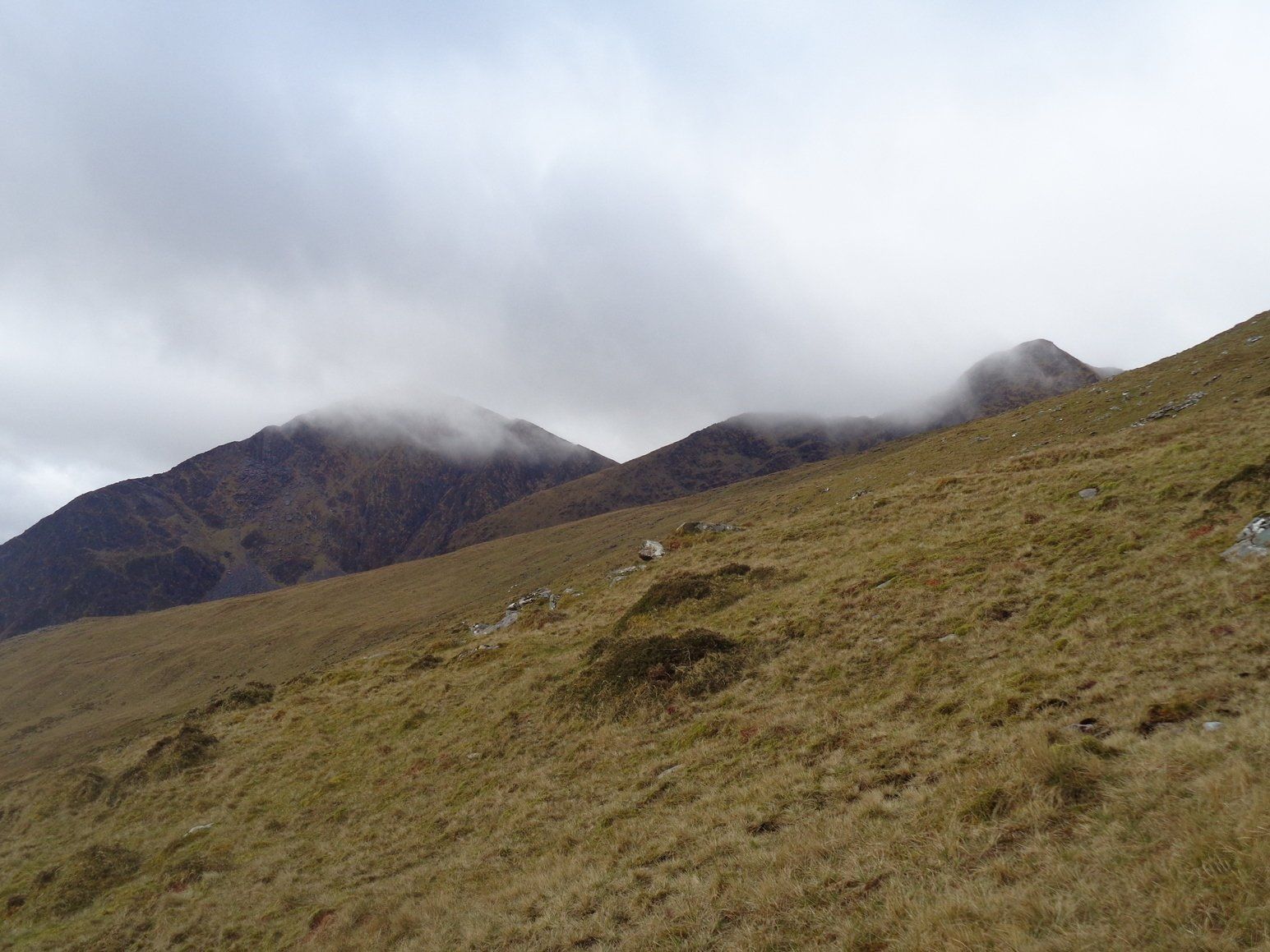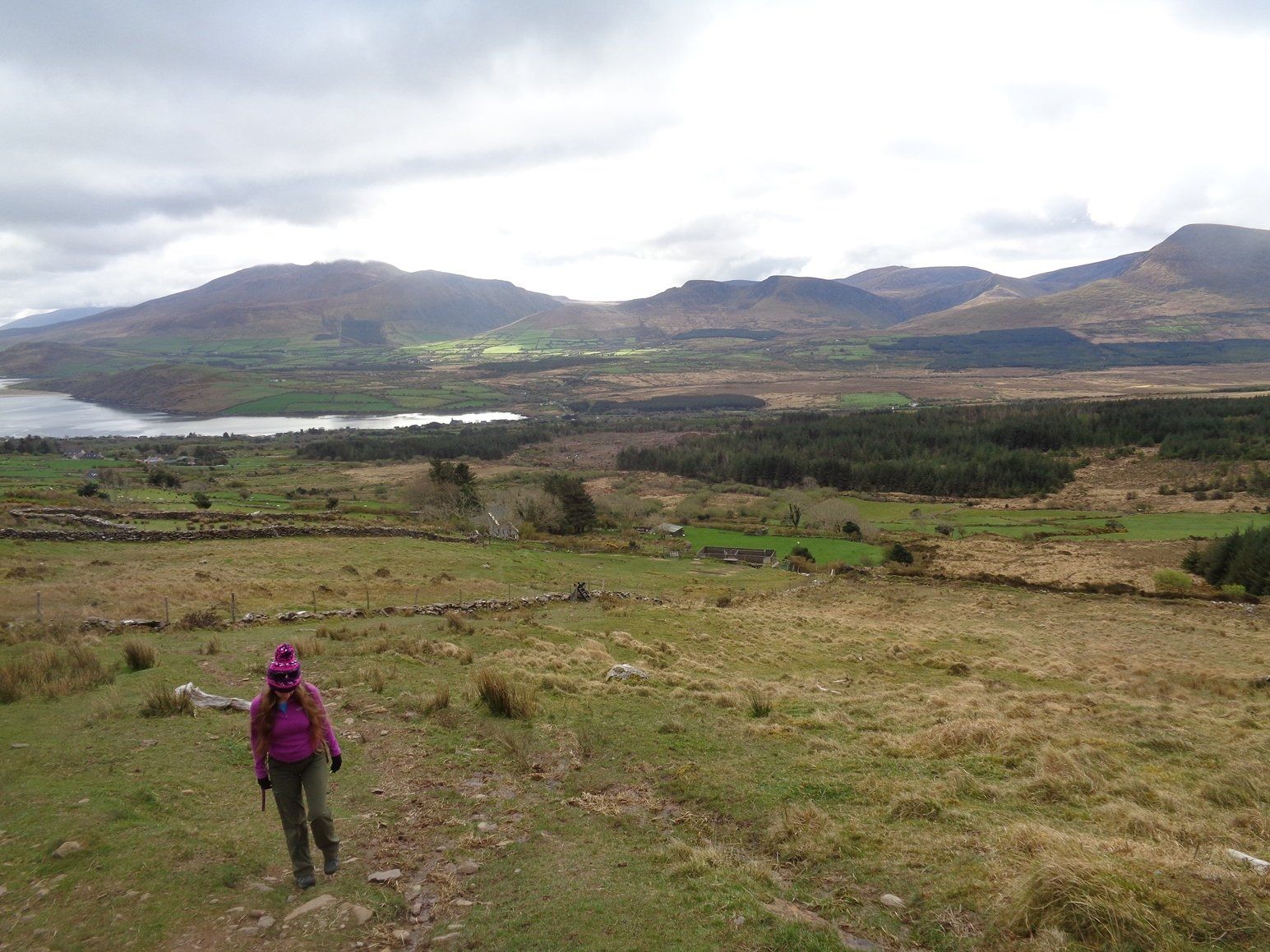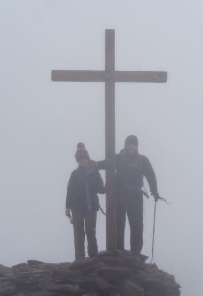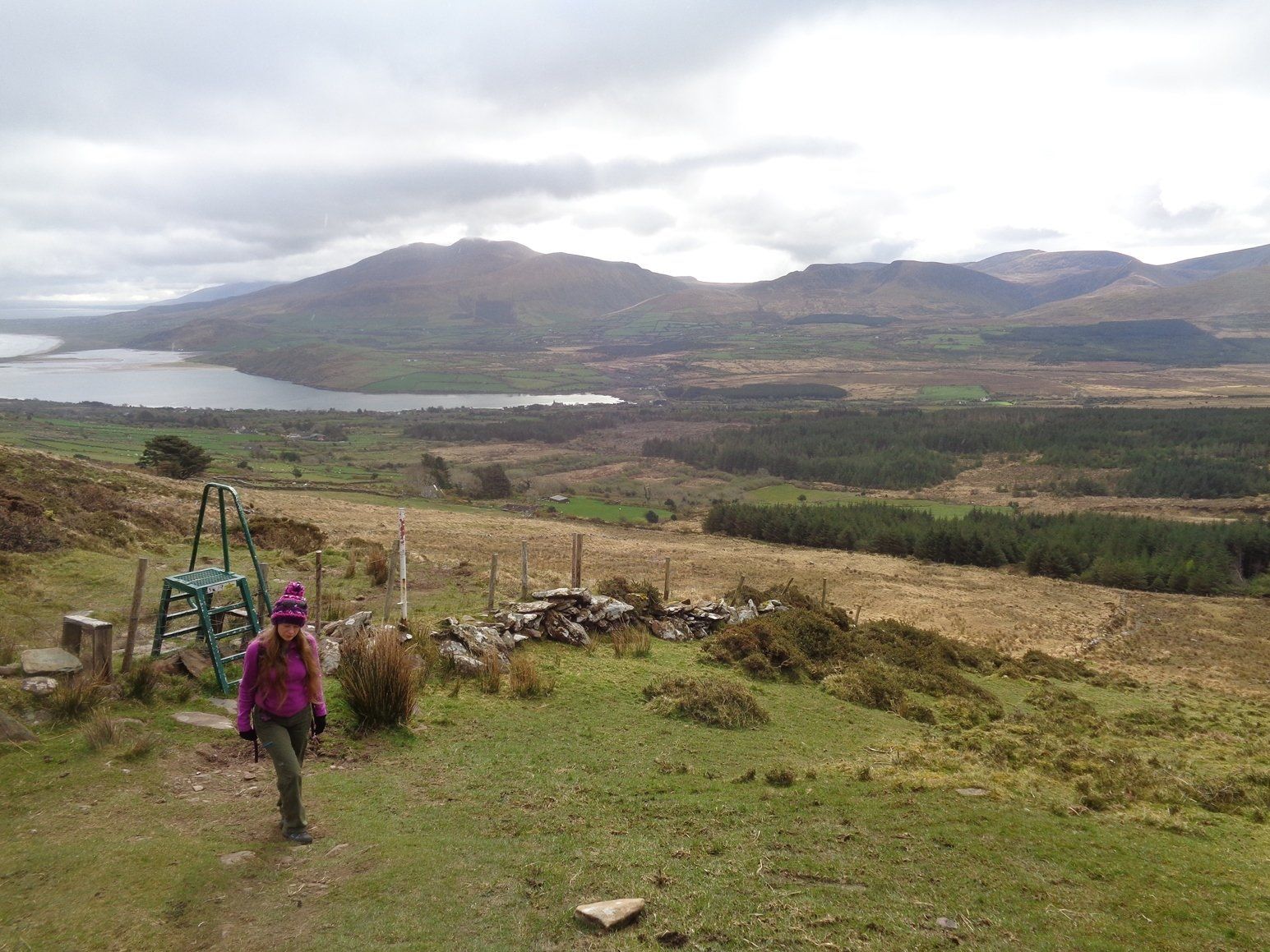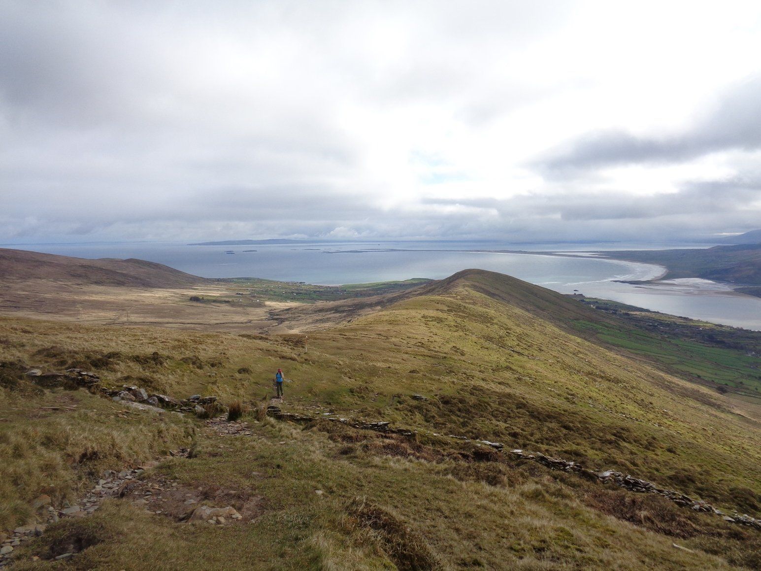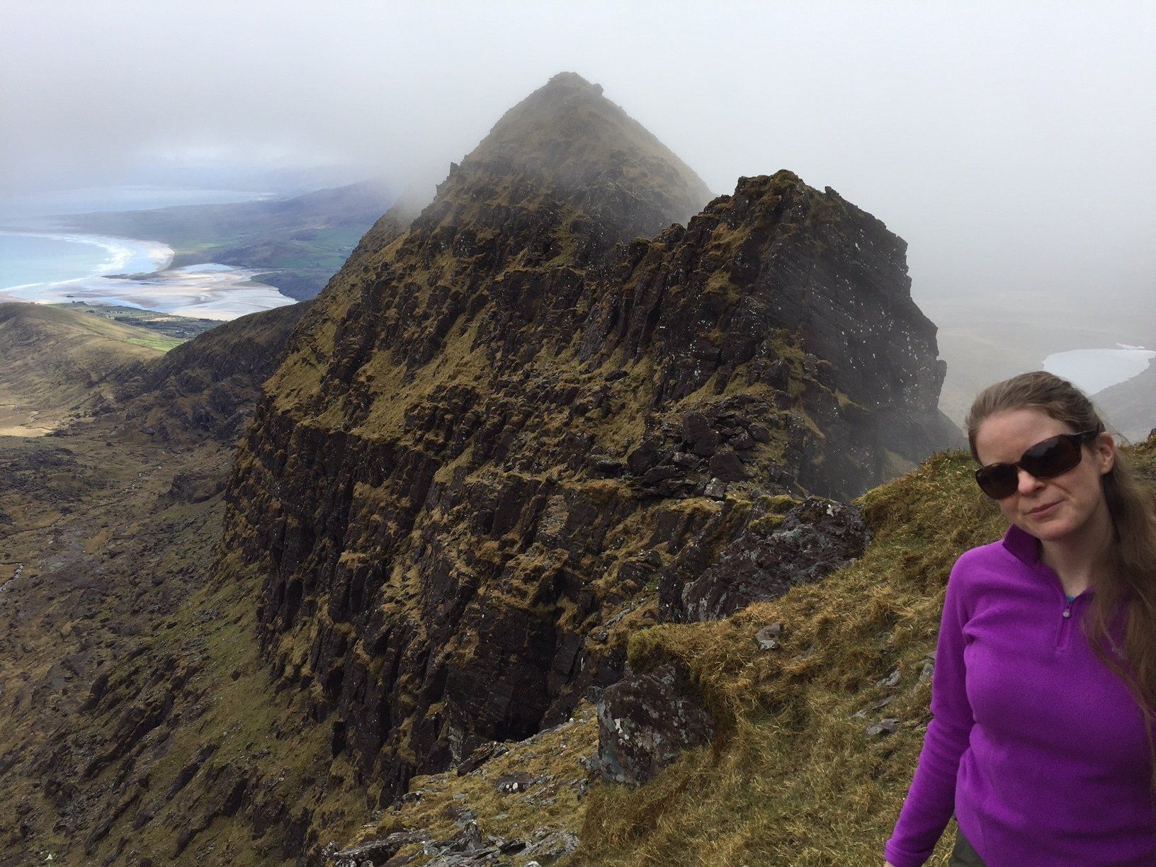 April 2017 - (with Gemma) Ascent from Faha. Brandon Mountain is a mountain on the Dingle Peninsula in County Kerry, Ireland. It is the highest peak of the unnamed central mountain range of the Dingle Peninsula and the ninth highest peak in Ireland. A lovely drive over the Connor Pass to the start point today as we were tackling Brandon Mountain from its east side. This also meant we could take on the notorious Faha Ridge: a Grade 1 scramble, technically easy, but exposure impressive - especially on the ridge's north side. The ascent from Faha car park up the slopes to the start of the ridge proper was hard graft through trackless heather. The scrambling began just after the summit of Benagh and was largely inescapable, with one break in the encircling cliffs on the south side only obvious from below. The views down into the savage glen of the Paternoster lakes with Brandon's ridges falling in parallel were stupendous, as were the views back along the ridge. There were plenty of challenging downclimbs including one where Gemma’s foot became stuck in a cleft of rock, wrenching her shoe off. It took ages to wrestle the shoe free whilst balanced precariously on a shelf of rock. There were moments where the ridge genuinely was knife-edged with sheer drops either side bringing some stomach sinking pangs of exposure. The whole ridge was fantastic and it took us over an hour to negotiate it before we descended to re-join the main path to the summit of Brandon Mountain. Now we were well into the clouds however we enjoyed lunch on the summit next to the large white cross. The views from here would have to wait for another day. The descent was along the ‘Pilgrim’s Path’. The large corrie on the mountain's east side has a series of rock steps, each of which includes a small Paternoster lake. There’s at least ten of these lakes, which grew in size as we descended the mountain. Amazing day out.