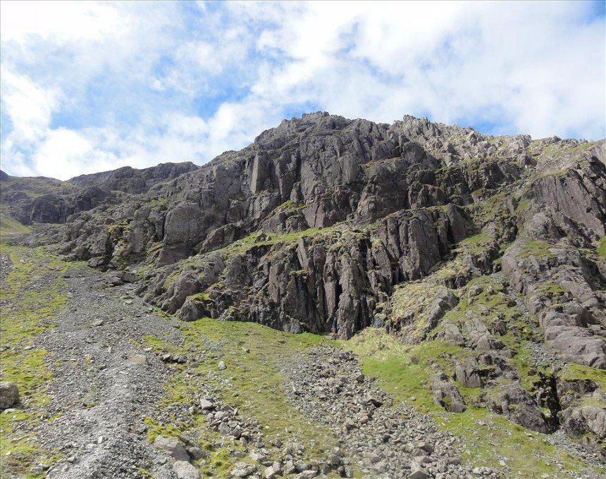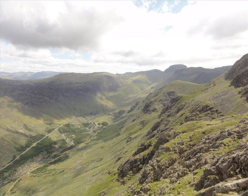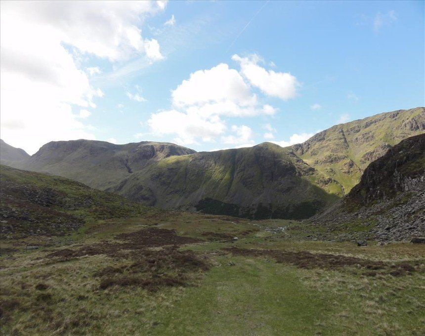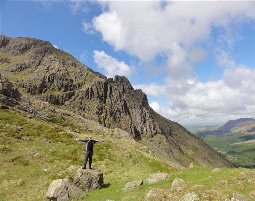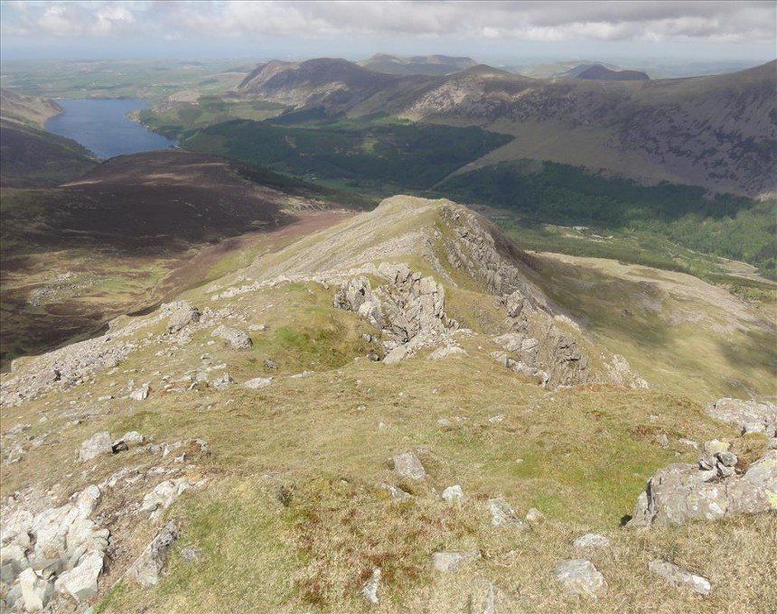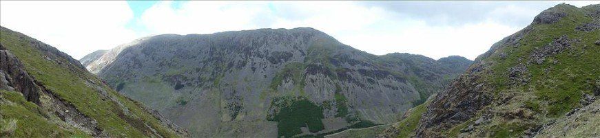June 2013 - Ascent from Gatesgarth. Could hardly contain my excitement about today’s walk as I love Pillar and the Shamrock Traverse. I ascended quickly to Scarth Gap and descended into Ennerdale to the Memorial Bridge, eager to ascend Pillar the way AW stated was the finest route. It was extremely steep and tough going, the path just about discernible, and the views of Pillar Rock were majestic. This ascent is a world away from the rest of the Lakes, isolated and a tremendous mixture of intimidating rock and boisterous gills. I rested at Robinson’s Cairn and took in the view-simply awesome! From there it was the traverse to Pillar Rock and the scramble to the summit. Pillar Rock was the dominating feature of this walk and I was privileged to enjoy it alone and have it all to myself. From the summit, the Scafells were beautiful (with snow in the gullies – what’s going on? It’s June!) and I decided to go on to Steeple via Scoat Fell. Great to see Wasdale again and on the summit of Steeple I enjoyed lunch. On Long Crag, I encountered Keltiejack, fellow AW Society member. I recognised his dog, Topsie! We spoke for a while, before I descended again into Ennerdale, and took the forestry track back to the bridge before the leg burner over Scarth Gap once again. As I arrived back from the peace of Ennerdale, I was greeted by the booming music of the camp site at Hassness…not my cup of tea! A fantastic walk!
