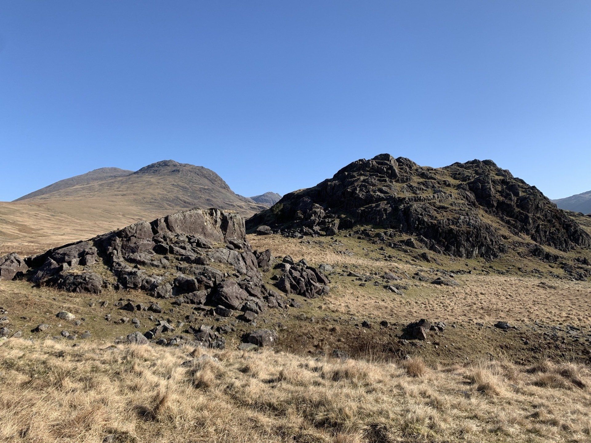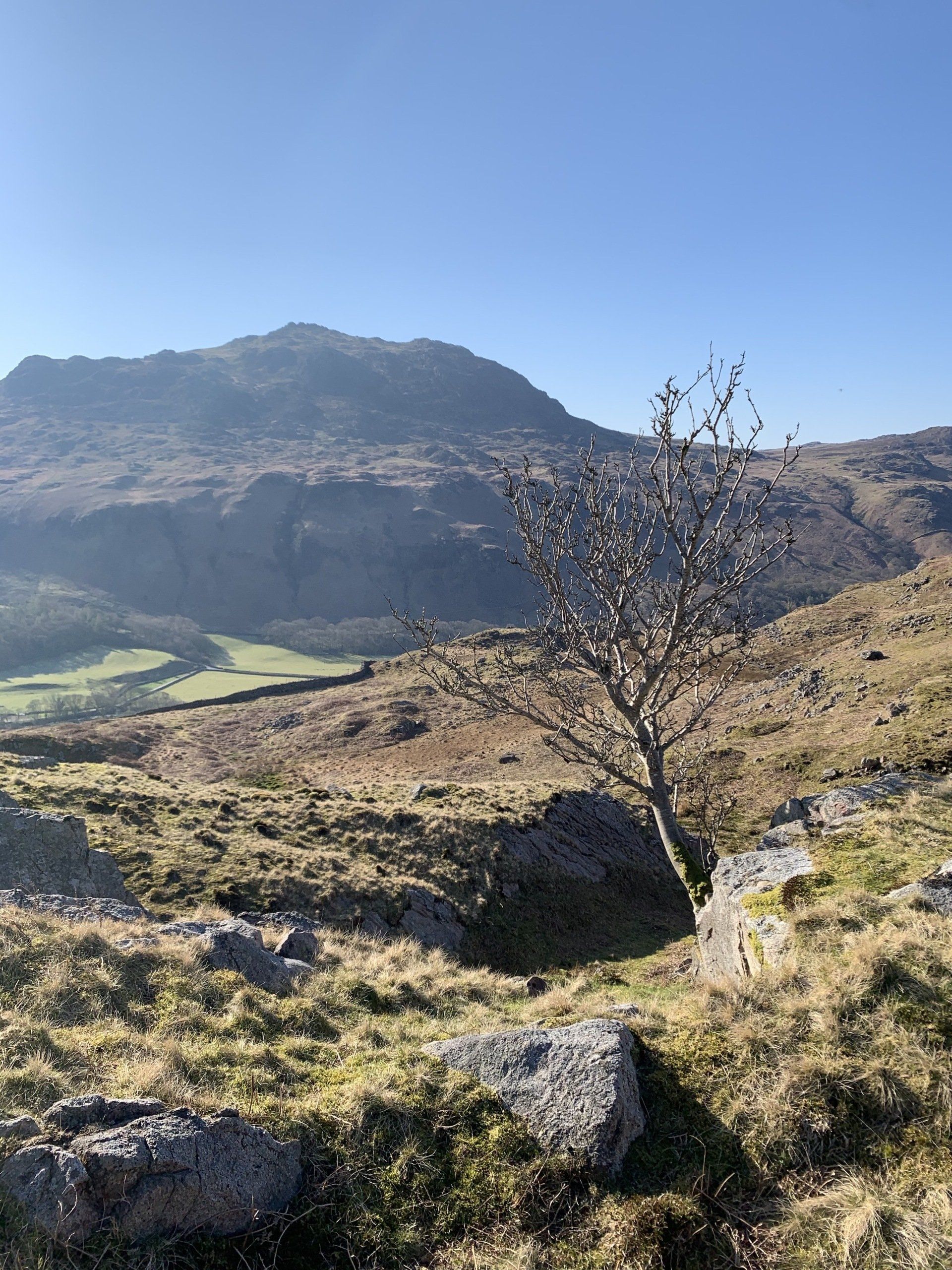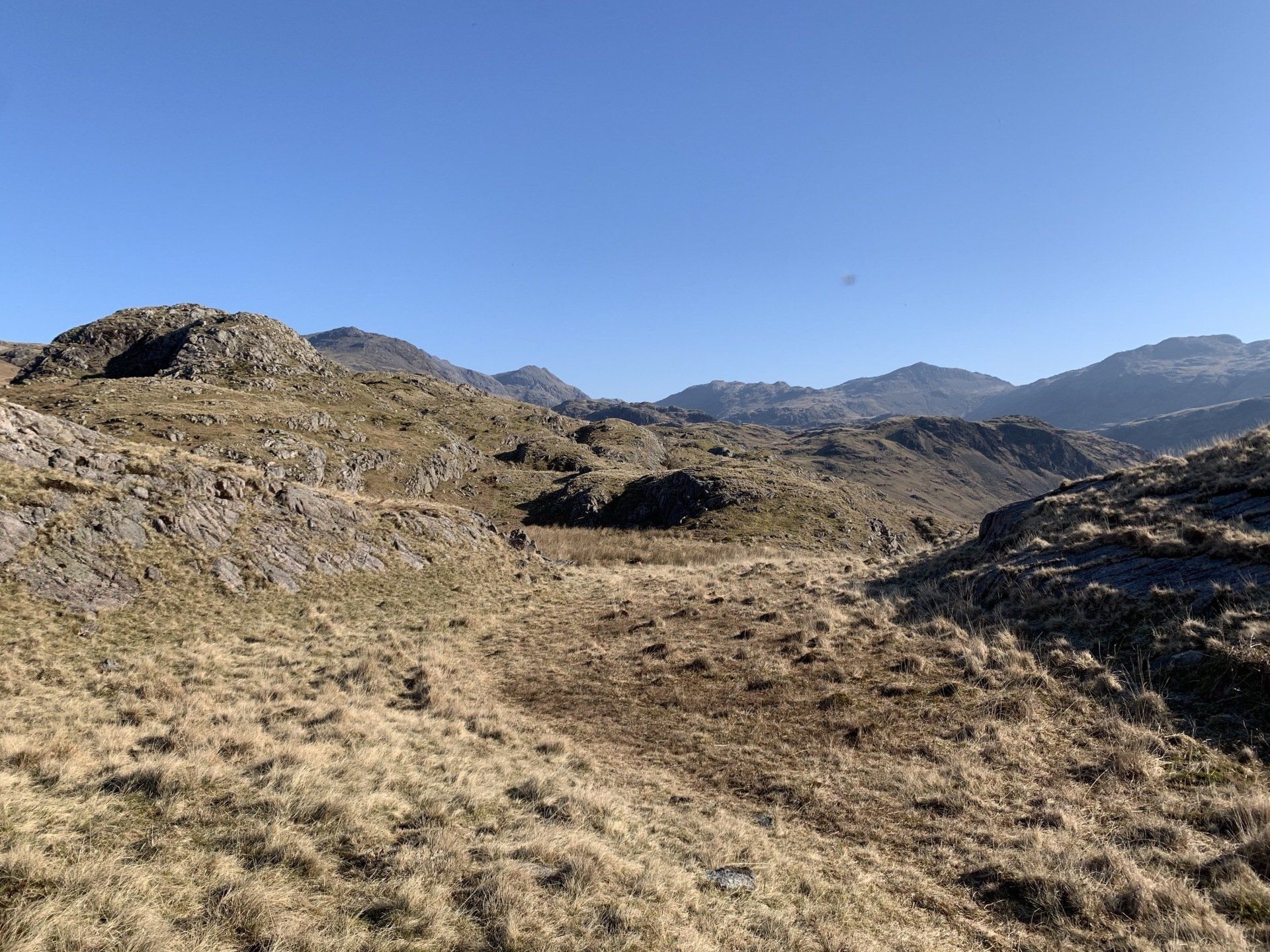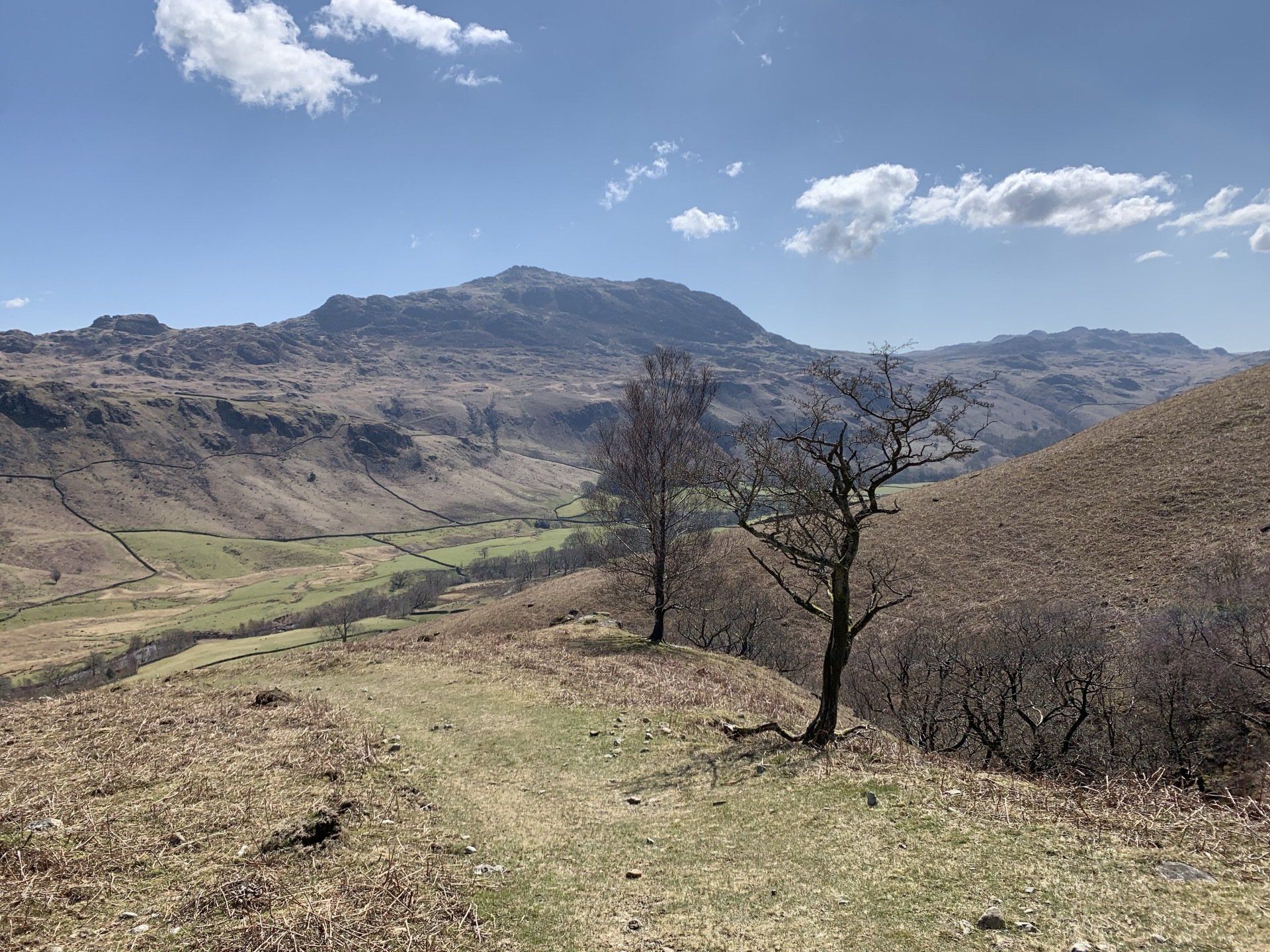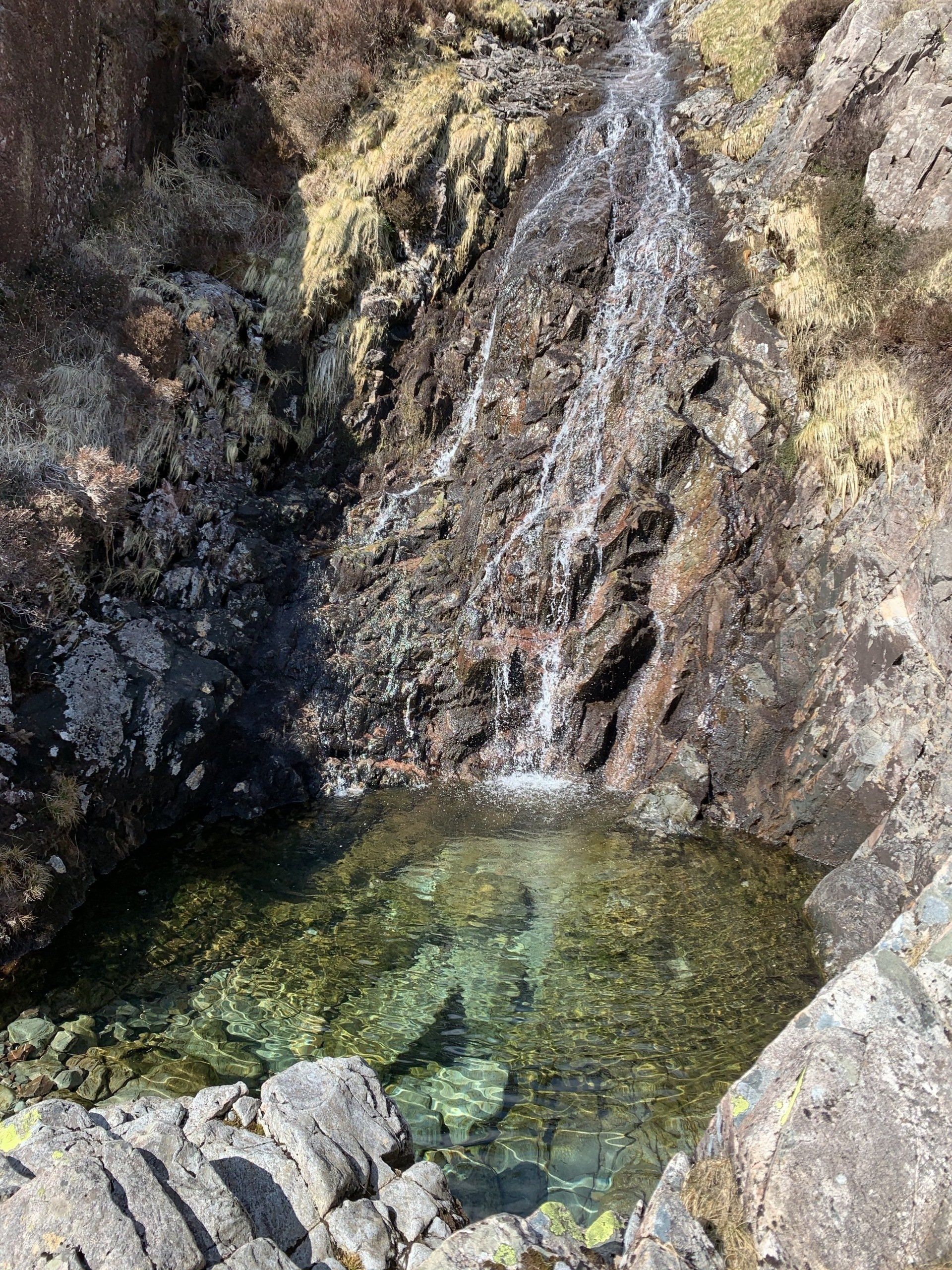 Apr 2021 - Ascent from Wha House. Superb walk in perfect conditions. In contrast to yesterday (weird staring chap in the car park), I met a lovely farmer at the start point. She was genuinely interested in me and easy to speak to. She wouldn't let me have a go on her quad bike though. In fact, on every occasion I've walked from here or up the road at Brotherikeld, I've witnessed local farmers out on the fells rounding up the sheep. Fascinating to watch the dogs do their stuff. Today, it was me inadvertently driving a bunch on; a huge flock scampered on ahead of me as I made my way towards Slight Side. Eventually, as things got steeper, they all veered off to the right. I sat and had a snack on the summit of Slight Side, taking in upper Eskdale and the horseshoe of Scafell, the Pike, Ill Crag, Esk Pike, Bowfell and Crinkle Crags, not forgetting retrospective views of Harter Fell, Hard Knott and, above Burnmoor Tarn, Whin Rigg and Illgill Head. By the time I'd reached Scafell, after exploring the wonderful Long Green (why isn't this a Wainwright?), I could see literally every summit in Lakeland. Of course, I was naming them all inwardly. Gable and the western fells were particularly stunning as were the Coniston fells to the south-east. Had the summit to myself whilst I could see dozens of folk milling about on the Pike. Fortunately, I couldn't hear them, despite the complete lack of a breeze. I crossed to a spot overlooking Broad Stand for lunch. After grub, I picked my way down the scree to Foxes Tarn before the wonderful chocked gully that leads steeply down to the path up from Cam Spout. It's a brilliant descent to the upper-valley floor and the Great Moss from here, alongside a series of waterfalls, with some gentle scrambling. I spotted a great wild swim spot for Gemma. After the Sampson's Stones, an erratic collection of massive boulders below Cam Spot Crag, the return is long but wonderful. Eskdale retains such a wild feel. At the conclusion of the walk, I encountered a confrontational chicken. Magnificent day!
