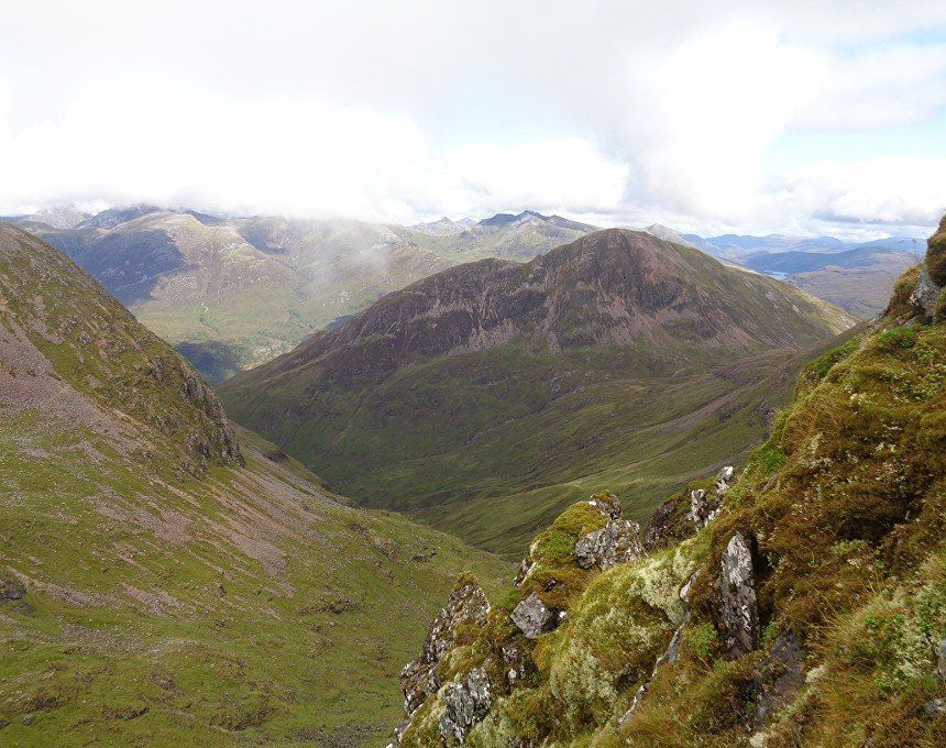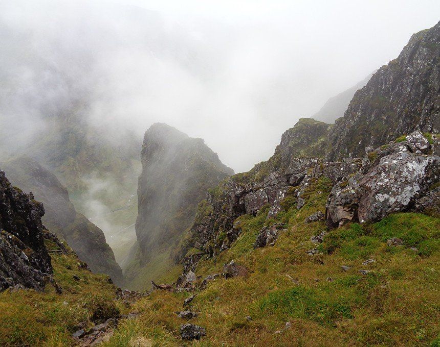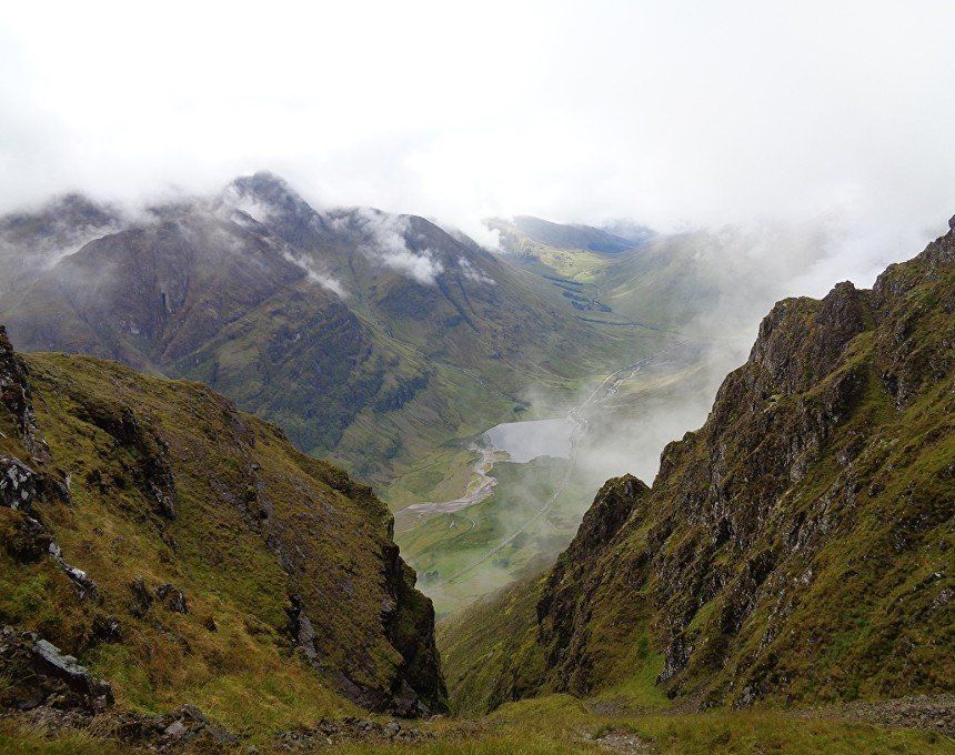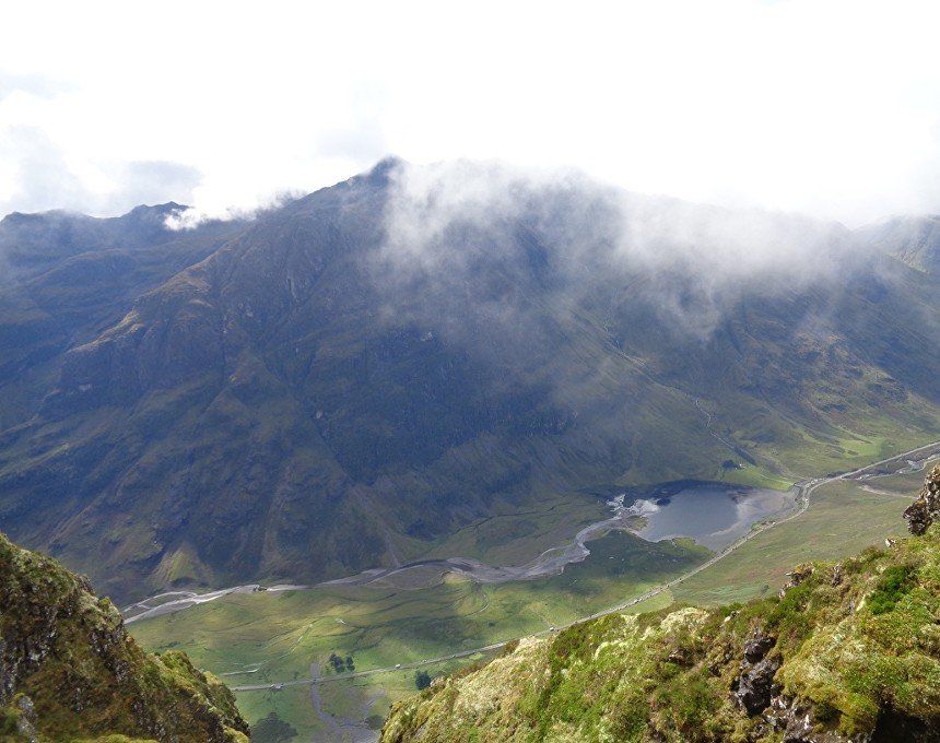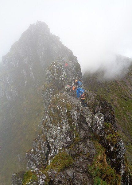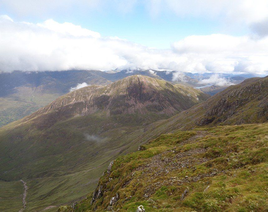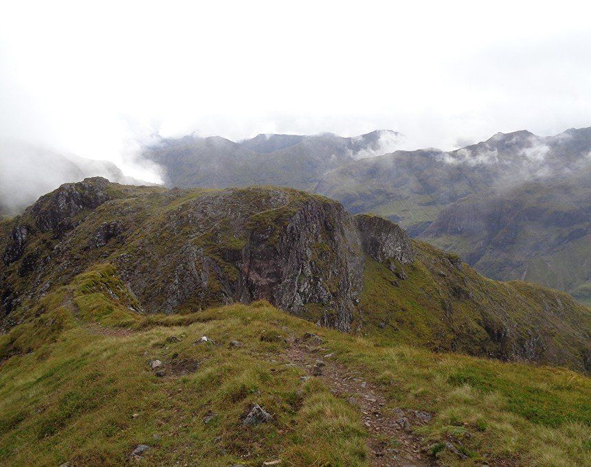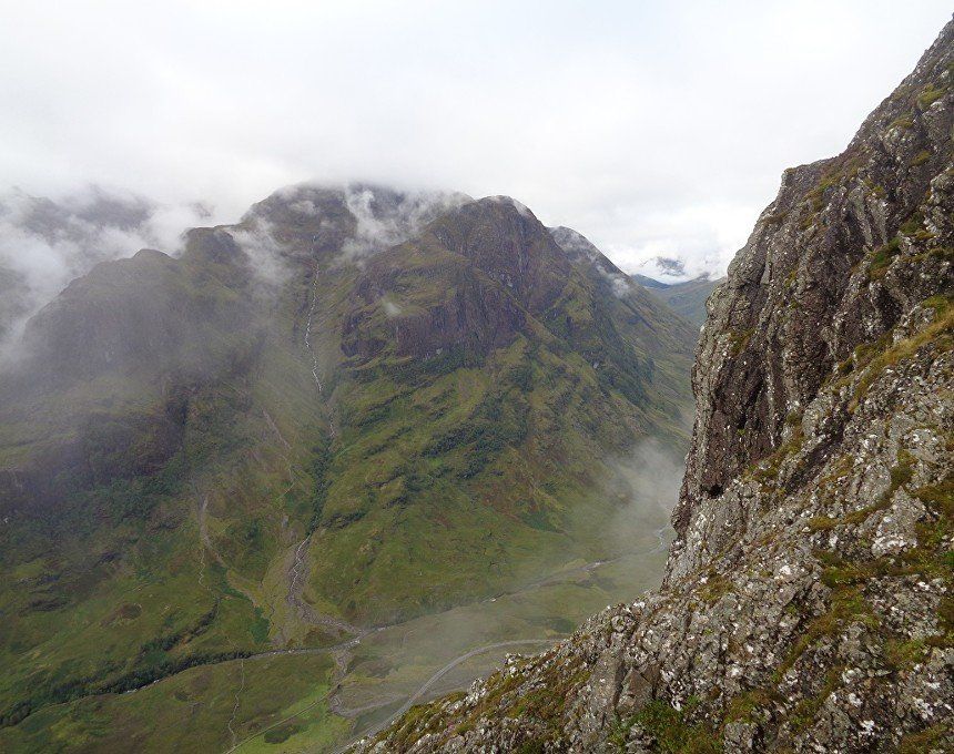Aug 2017 – Ascent from Allt na Ruigh car park. Simply sensational. What an adventure; a great day out. Massively steep ascent but compelling views across to the mountains on the southern side of Glen Coe. Reached Am Bodach and the traverse of the Aonach Eagach began with an exposed downclimb. Famed as the narrowest ridge on the British mainland (though Liathach and An Teallach must run it close), the Aonach Eagach gives a thrilling and spectacular traverse for keen scramblers, linking the Munros of Meall Dearg and Sgorr nam Fiannaidh. The ridge has several steep rocky chimneys and other scrambling sections which must be climbed and descended, and is very exposed in some places (though it is not as consistently narrow as reputation would have it). There are many short scrambles necessary all along this ridge; the trickiest section is known as the 'Crazy Pinnacles' and is well along the ridge. I loved it; above the clouds for the most part and the ever-changing cloudscapes added real atmosphere. Met a party of three, roped up and with helmets making me feel under-dressed! Stuck with them for the most part and got a lift up the glen and a pint in the Clachaig afterwards as an added bonus, lovely chaps. We even shared a dram of whisky on the second Munro. The 'Crazy Pinnacles' was the most exposed I’ve ever felt…yet, on a ridge; no room for error whatsoever; madness really!