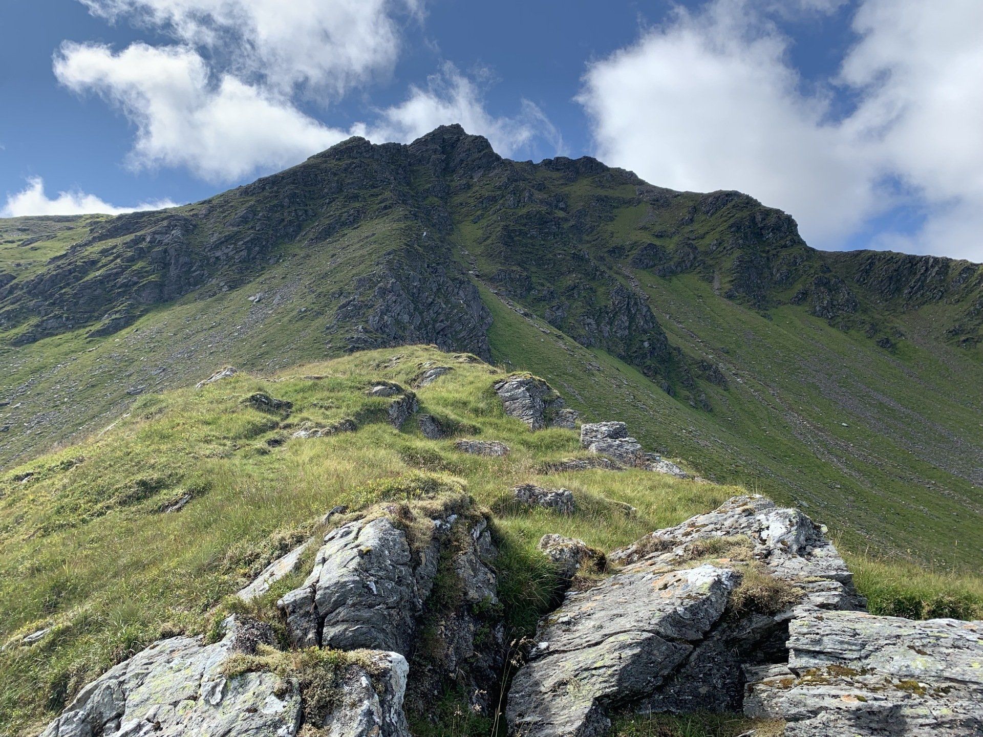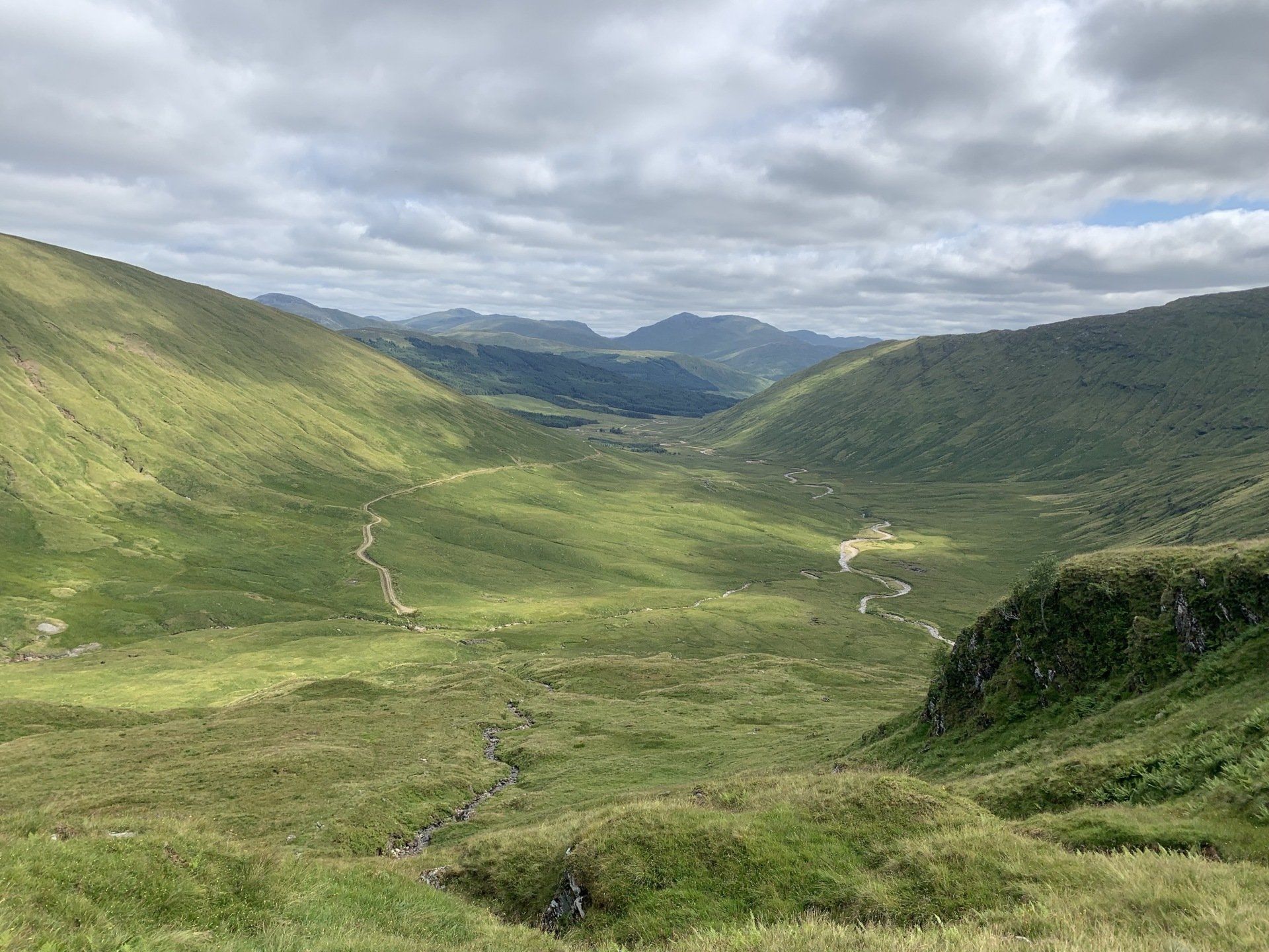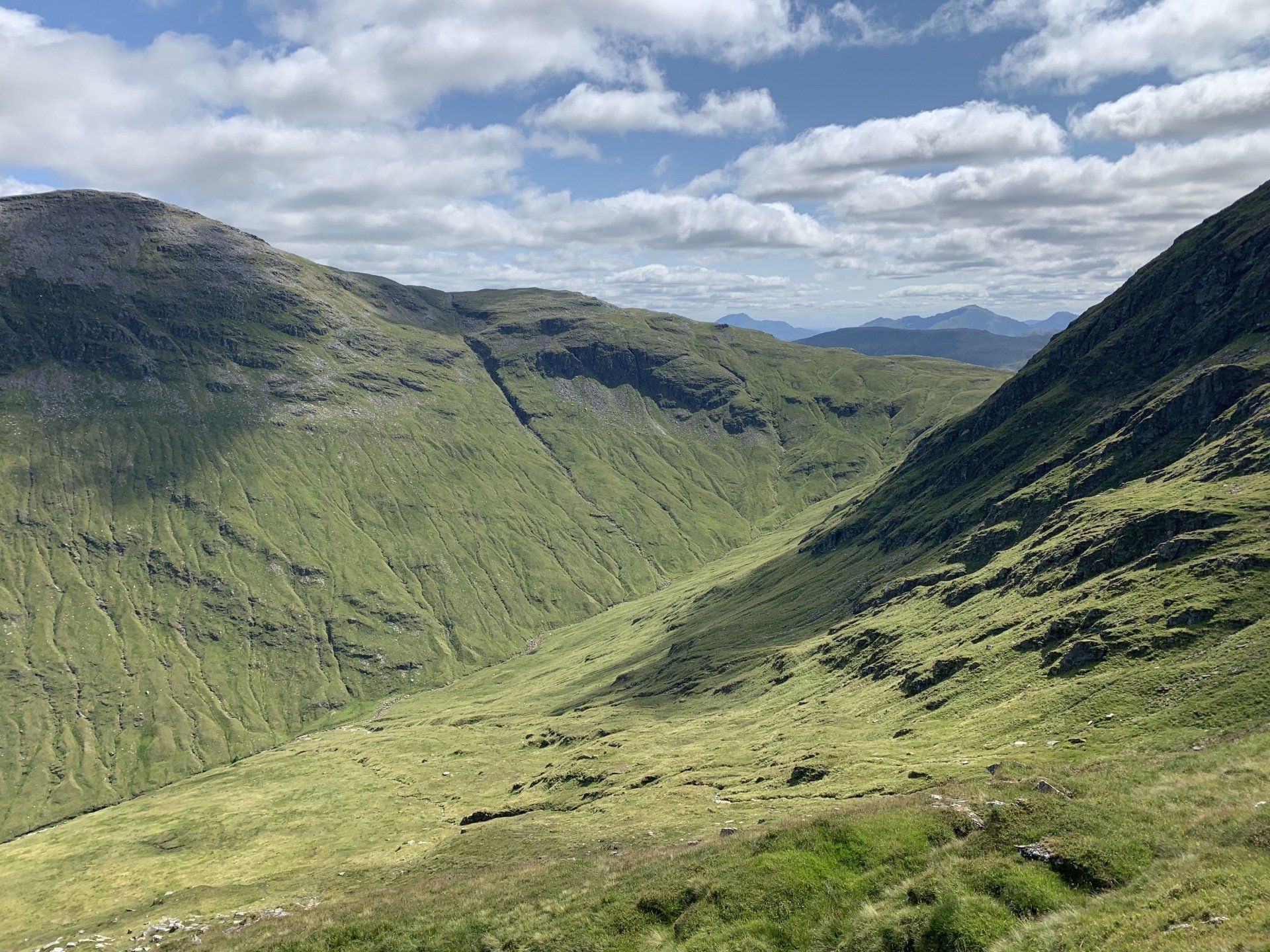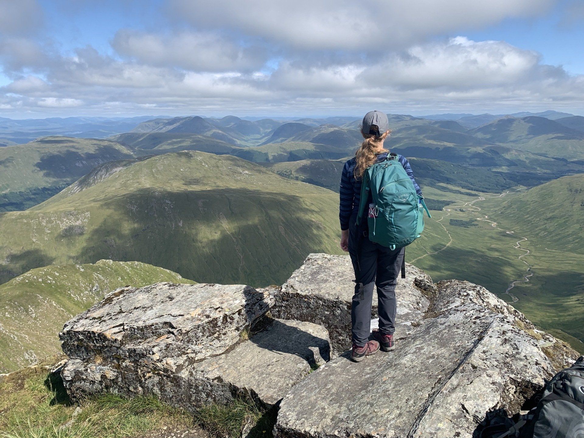 Aug 2021 - (with Gemma) Ascent from Dalrigh. Just a wonderful walk. Ben Lui is a fantastic mountain and I was excited about tackling it from this angle having previously summited it from the north-west. Fantastically peaceful, if long, trek in alongside the Cononish River on both there and back. Although it’s a considerable walk in, the views ahead of Ben Lui are magnificent and a taste of what’s to come. After several miles, the climb begins in earnest. We chose the Stob Garbh ridge after the corrie , for the ascent - a great ridge which offers amazing views over to the munros of Glen Etive, Glen Coe and north-west towards the Mamores and Nevis. Once we reached the summit, the panoramas were astonishing. Countless mountains in view. We improvised slightly on the descent, passed the remains of a plane that crashed into the mountain in 1941 and eventually joined the north-east ridge. This is turn led to steep grassy slopes before we rejoined the outward route just below the corrie. Achy feet by the time we reached the car,.