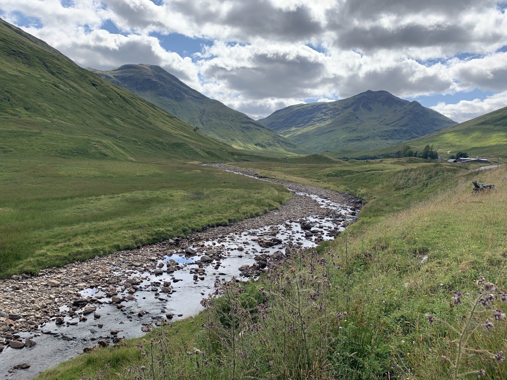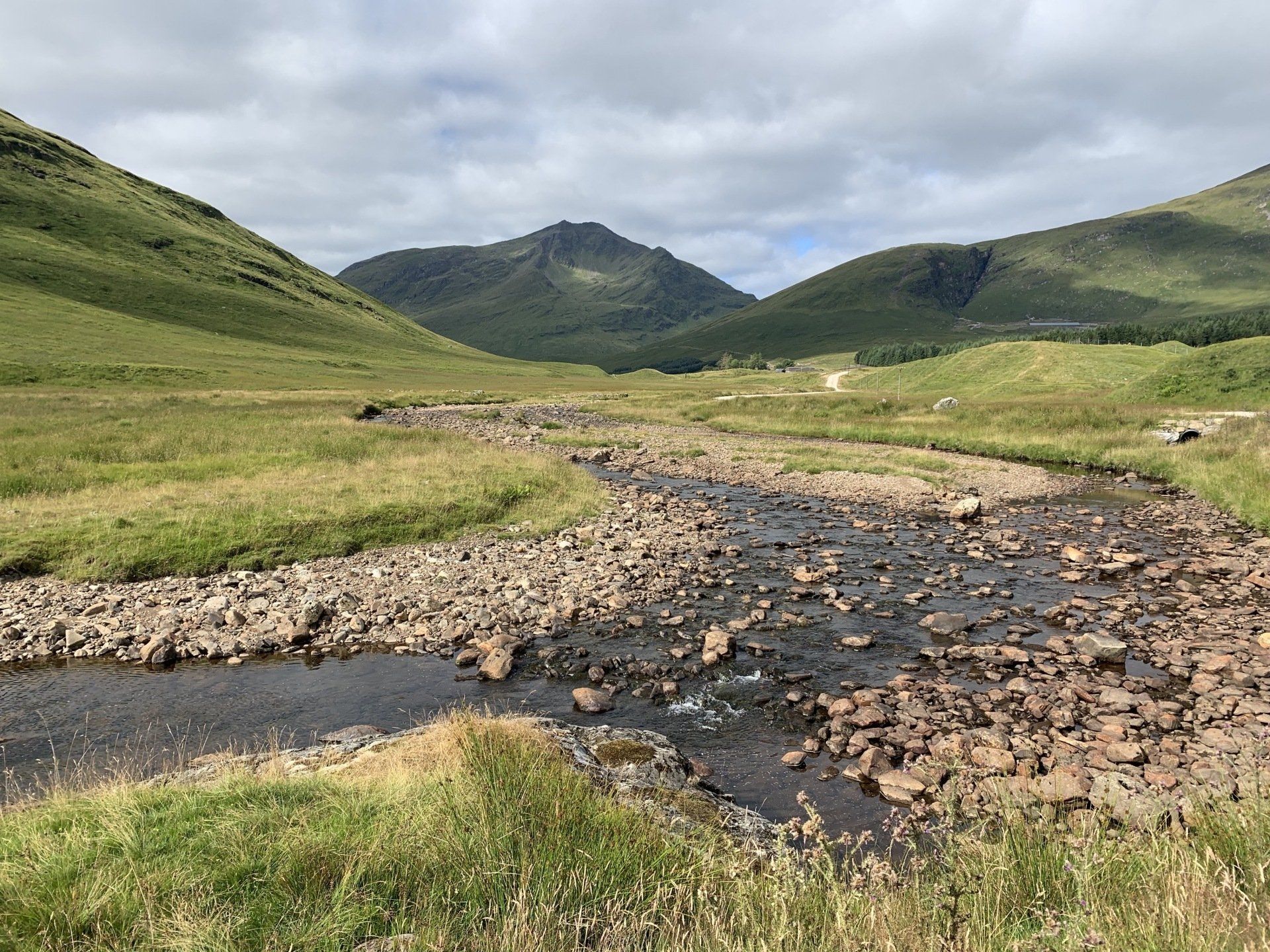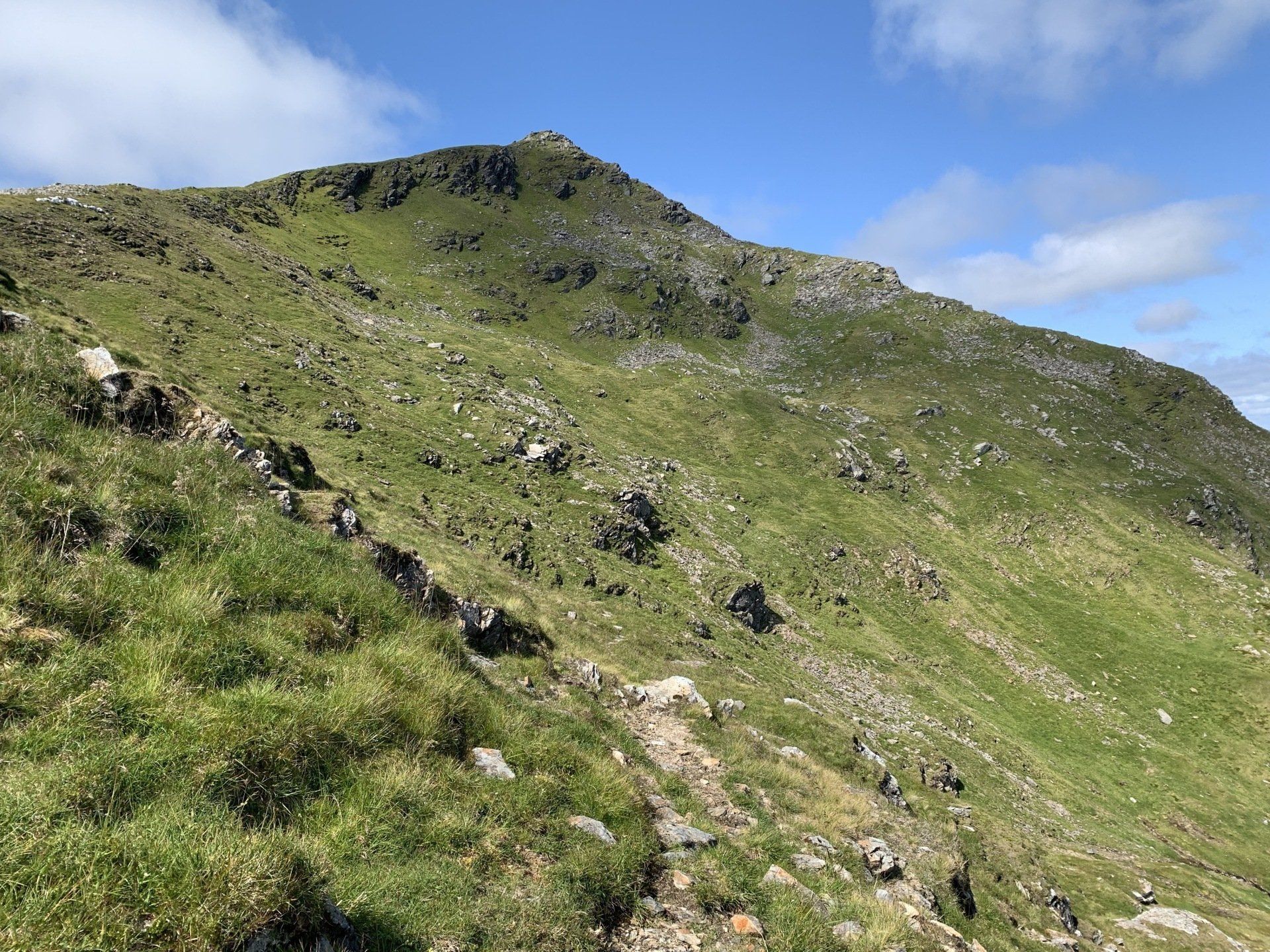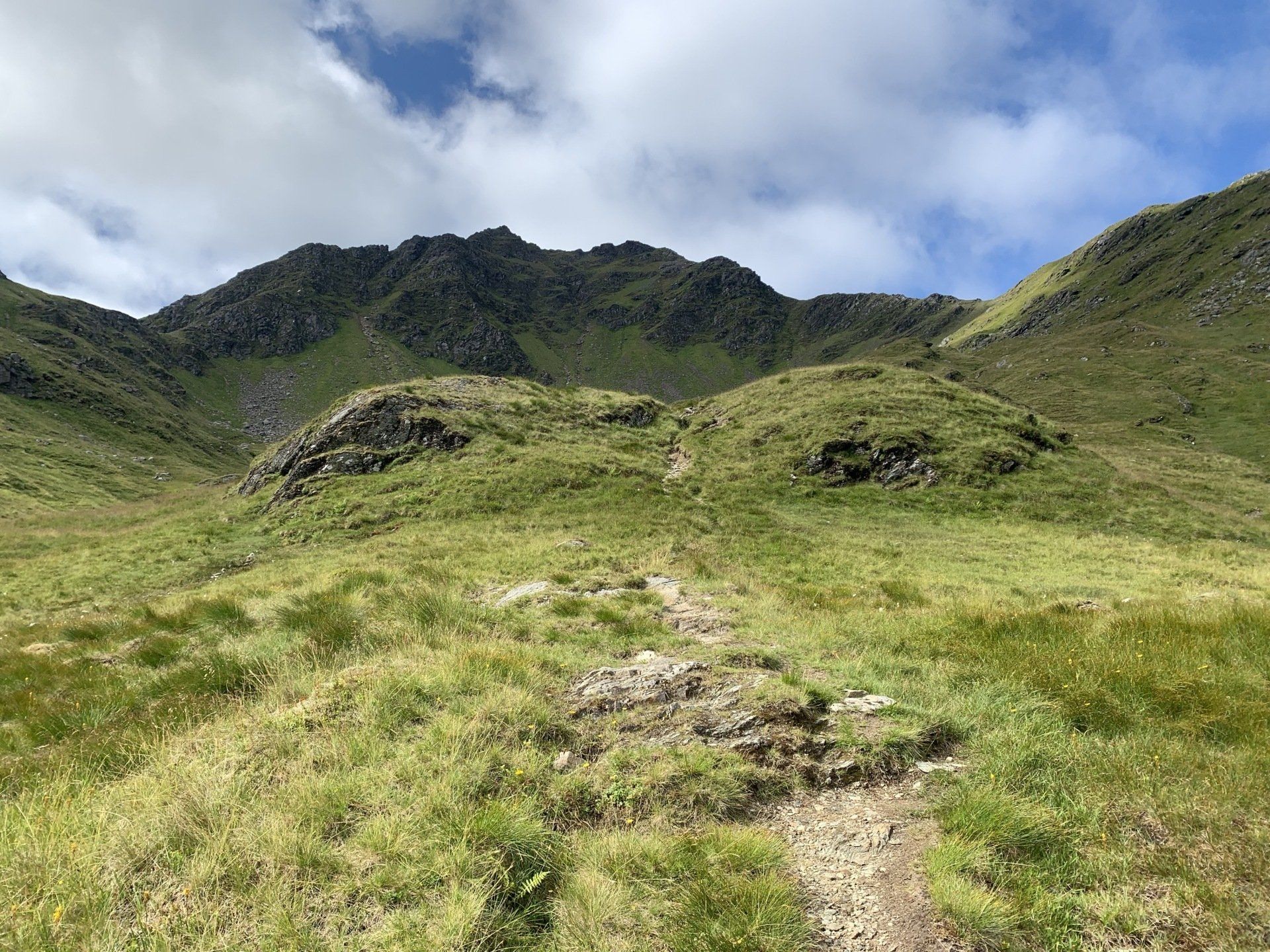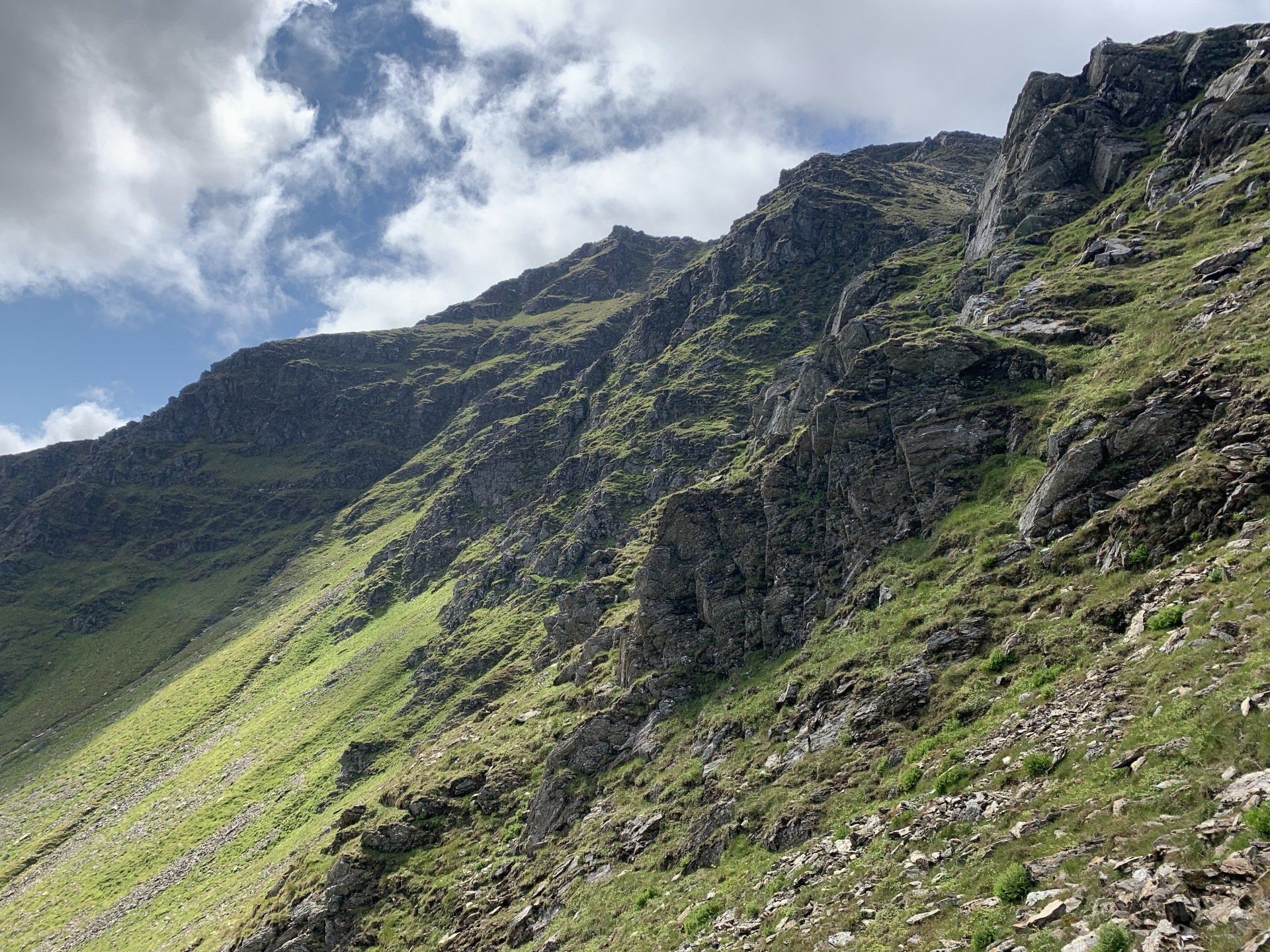 Aug 2021 - (with Gemma) Ascent from Dalrigh. Just a wonderful walk. Ben Lui is a fantastic mountain and I was excited about tackling it from this angle having previously summited it from the north-west. Fantastically peaceful, if long, trek in alongside the Cononish River on both there and back. Although it’s a considerable walk in, the views ahead of Ben Lui are magnificent and a taste of what’s to come. After several miles, the climb begins in earnest. We chose the Stob Garbh ridge after the corrie , for the ascent - a great ridge which offers amazing views over to the munros of Glen Etive, Glen Coe and north-west towards the Mamores and Nevis. Once we reached the summit, the panoramas were astonishing. Countless mountains in view. We improvised slightly on the descent, passed the remains of a plane that crashed into the mountain in 1941 and eventually joined the north-east ridge. This is turn led to steep grassy slopes before we rejoined the outward route just below the corrie. Achy feet by the time we reached the car,.