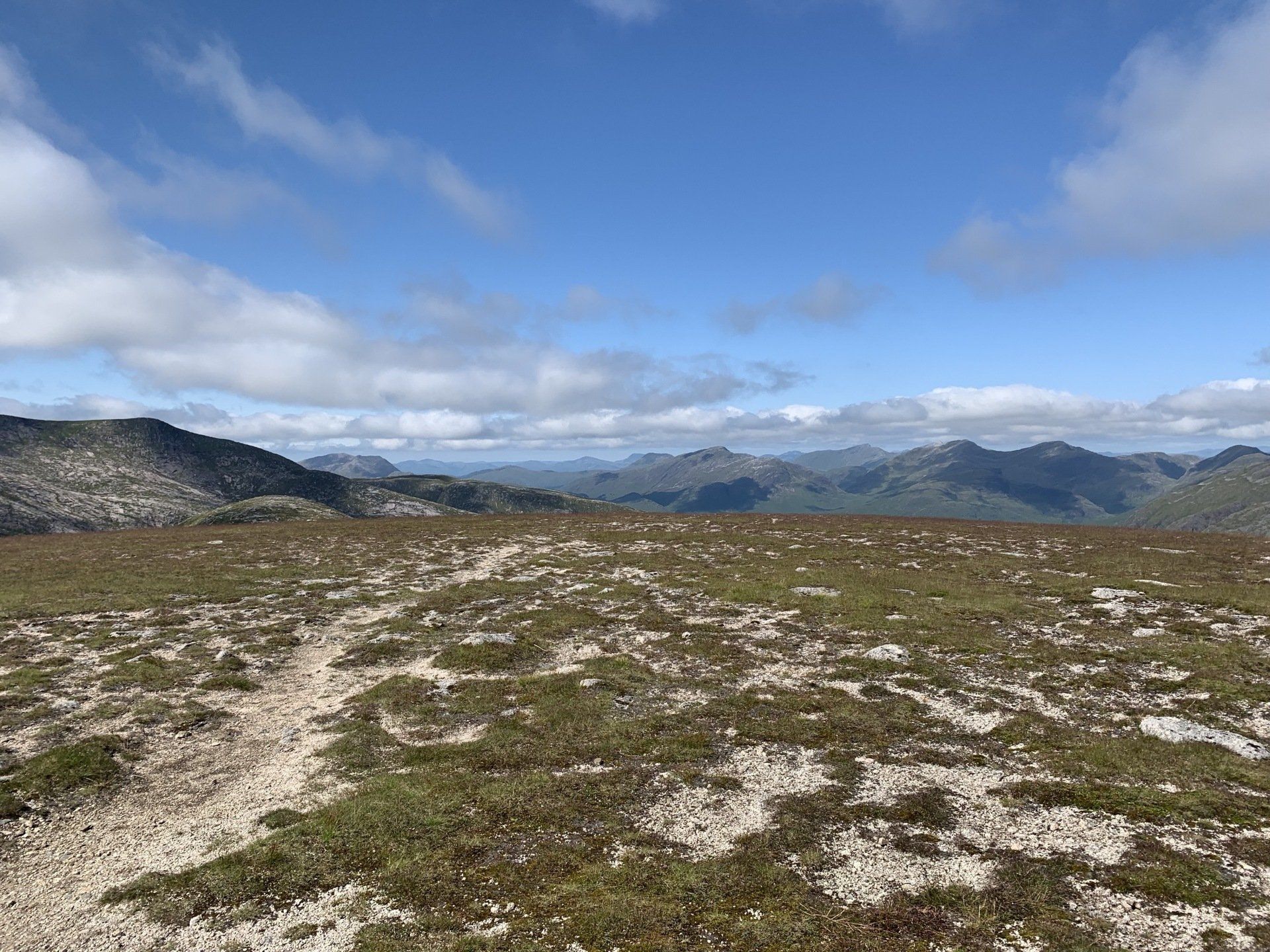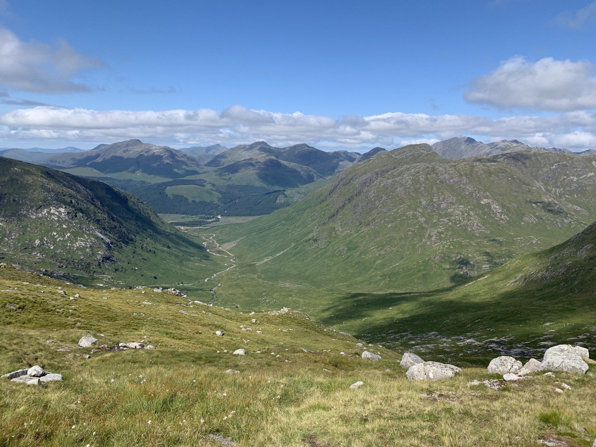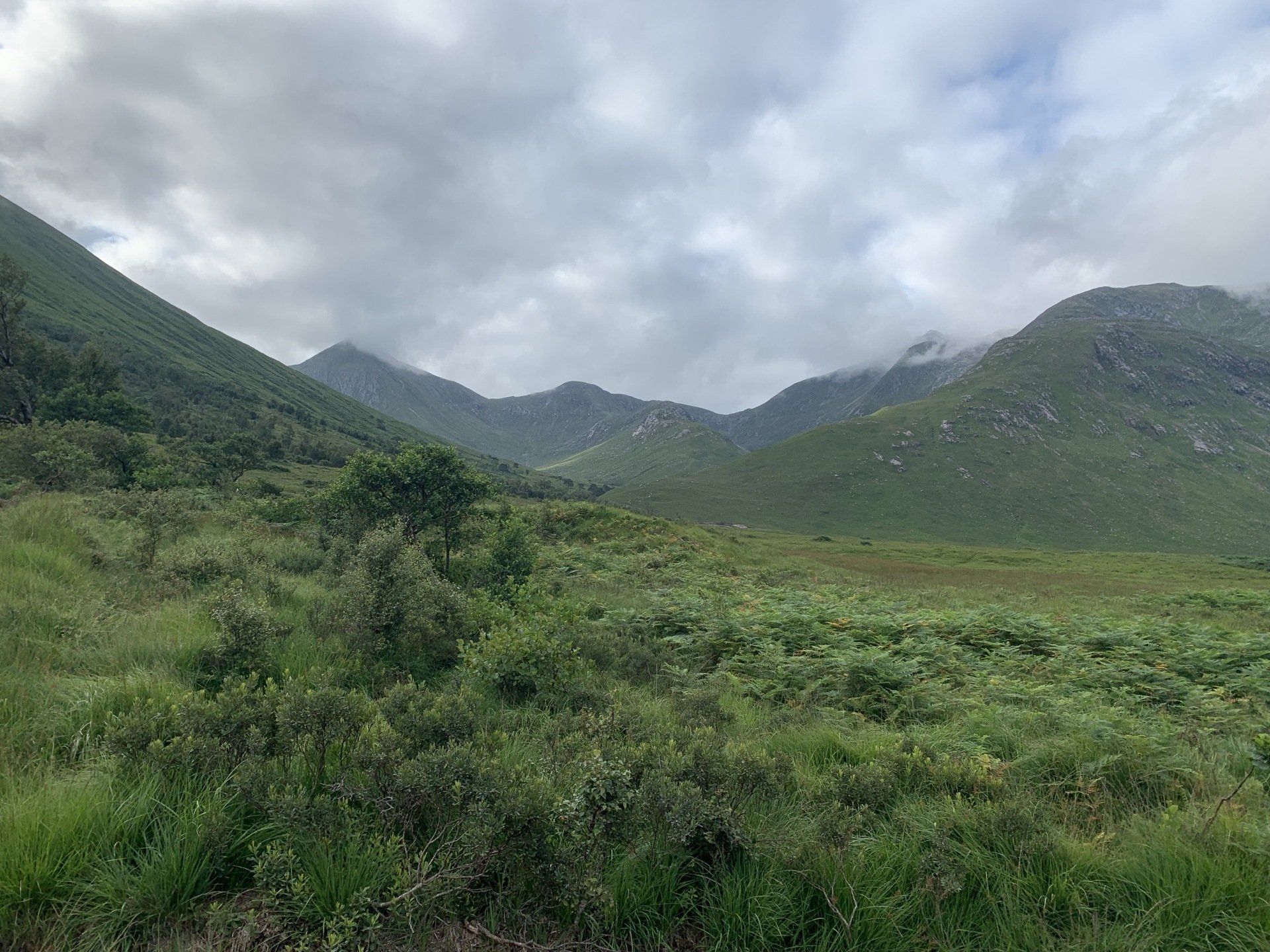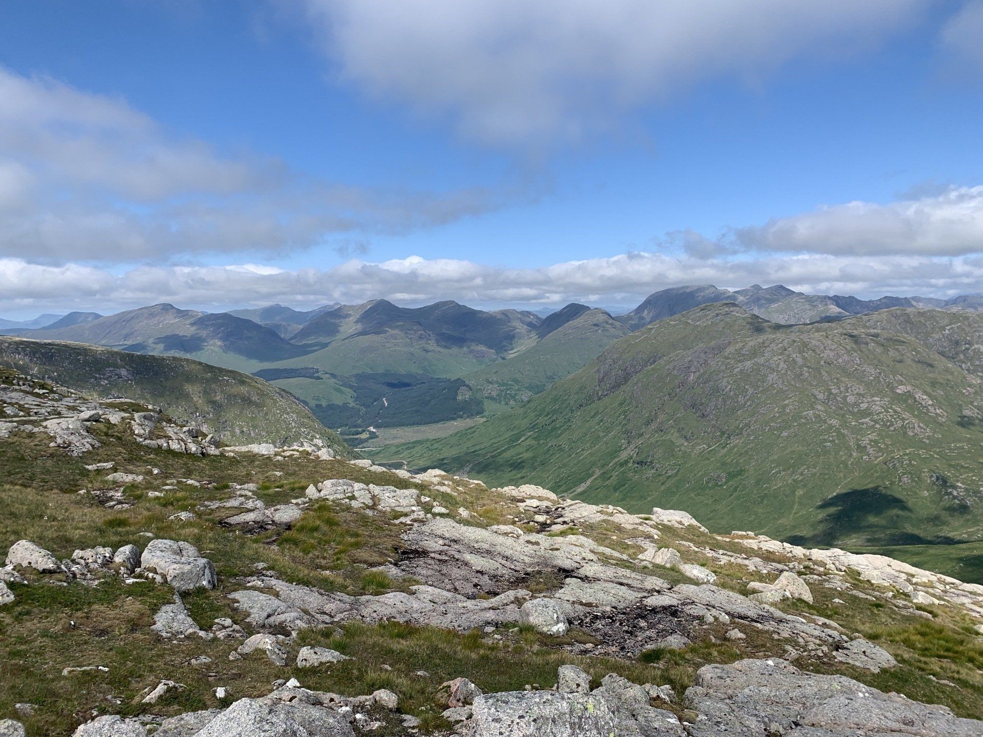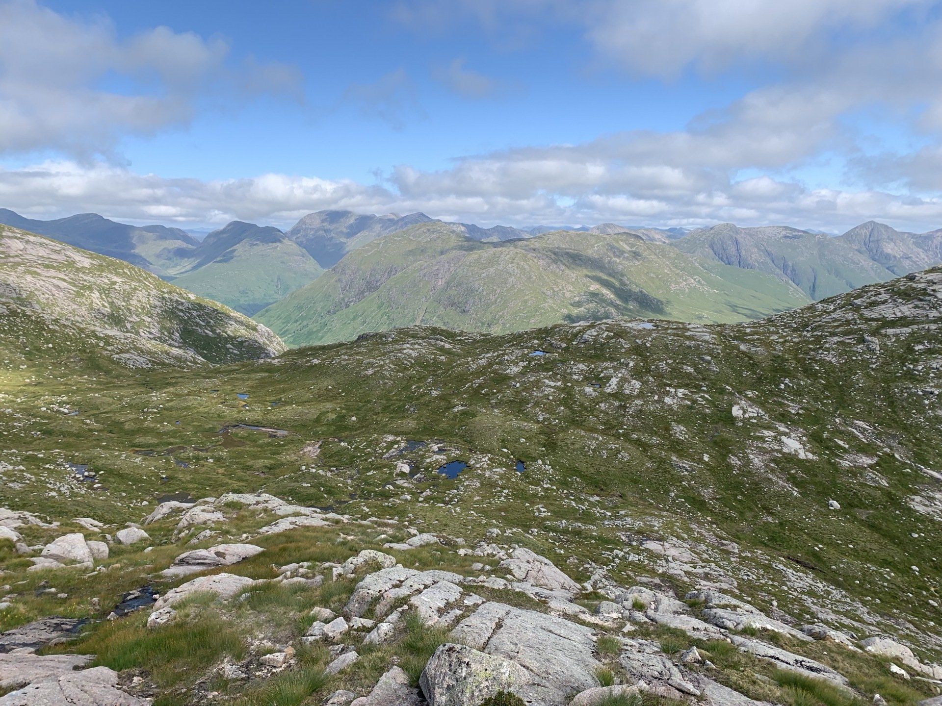 Aug 2021 - Ascent from Coiletir. Gemma's legs were dead after yesterday so it was a solo hike for me today. Gorgeous drive as always from Tyndrum to Glen Etive and the start point. Surprised to see the amount of hydro-eletric power works going on lower down in Glen Etive. Other than the workers encountered at the very beginning and end, I didn't see a single soul today. It was a long slog up but once on the tops, the views and terrain were both excellent. The munros of Glen Orchy, Glen Coe and the nearby peaks of Ben Starav and Glas Bheinn Mhòr were stunning. Amazing rock scenery in the two bealachs between the mountains. Long but lovely walk off Meall nan Eun. Two new munros which takes me up to 152/282.