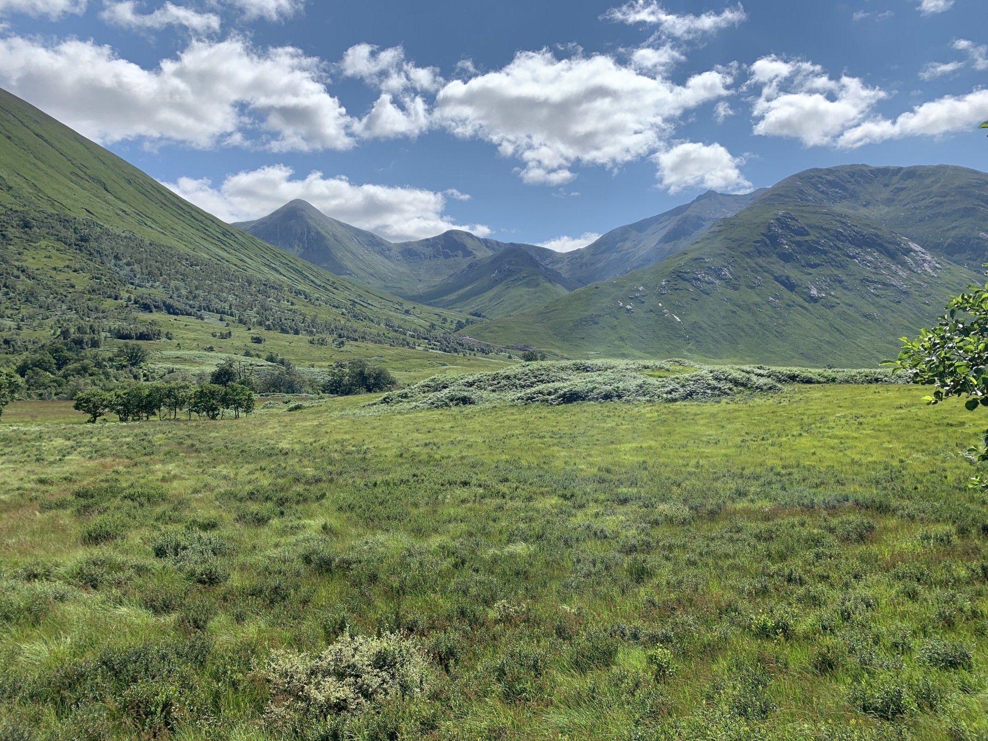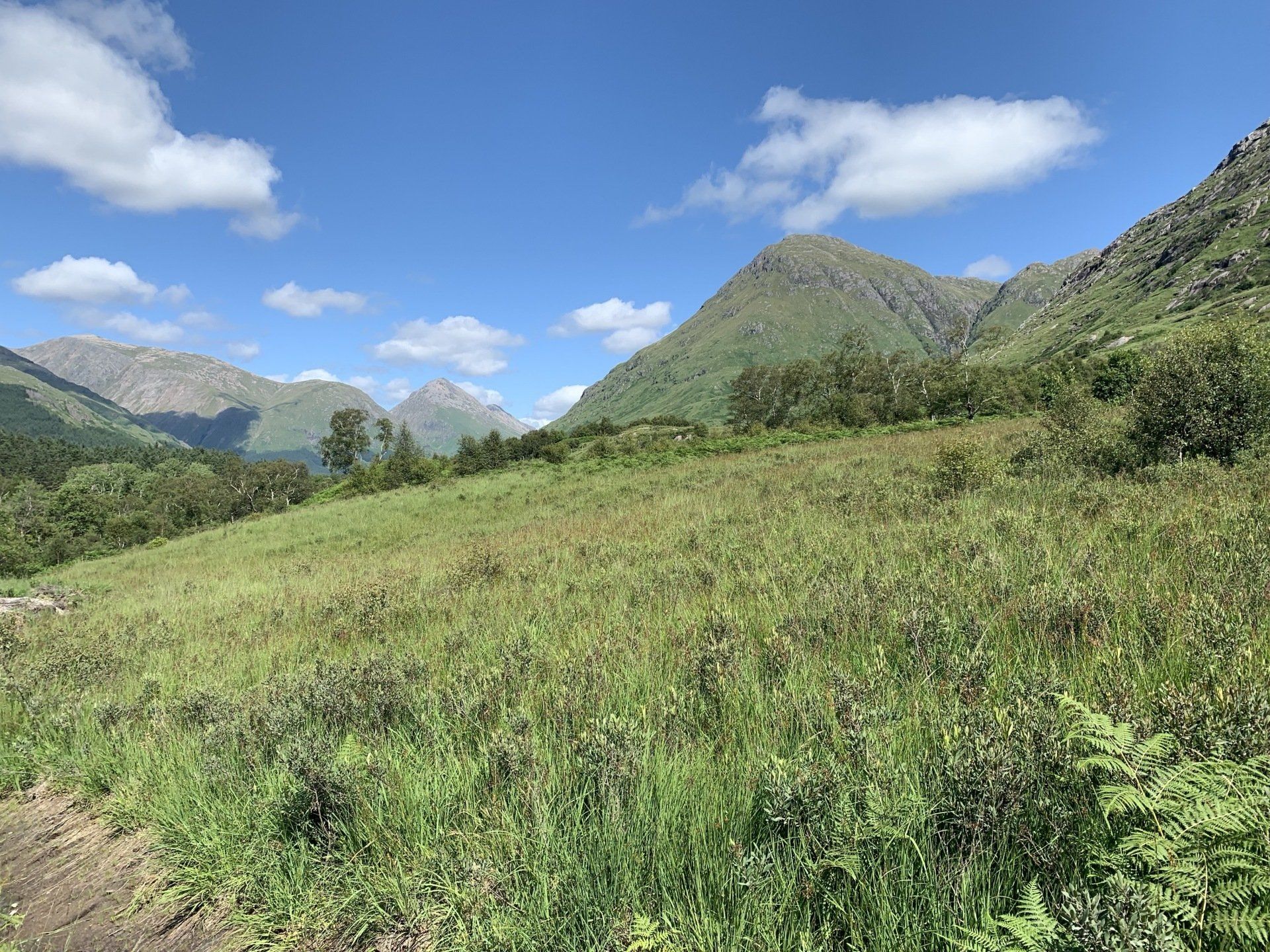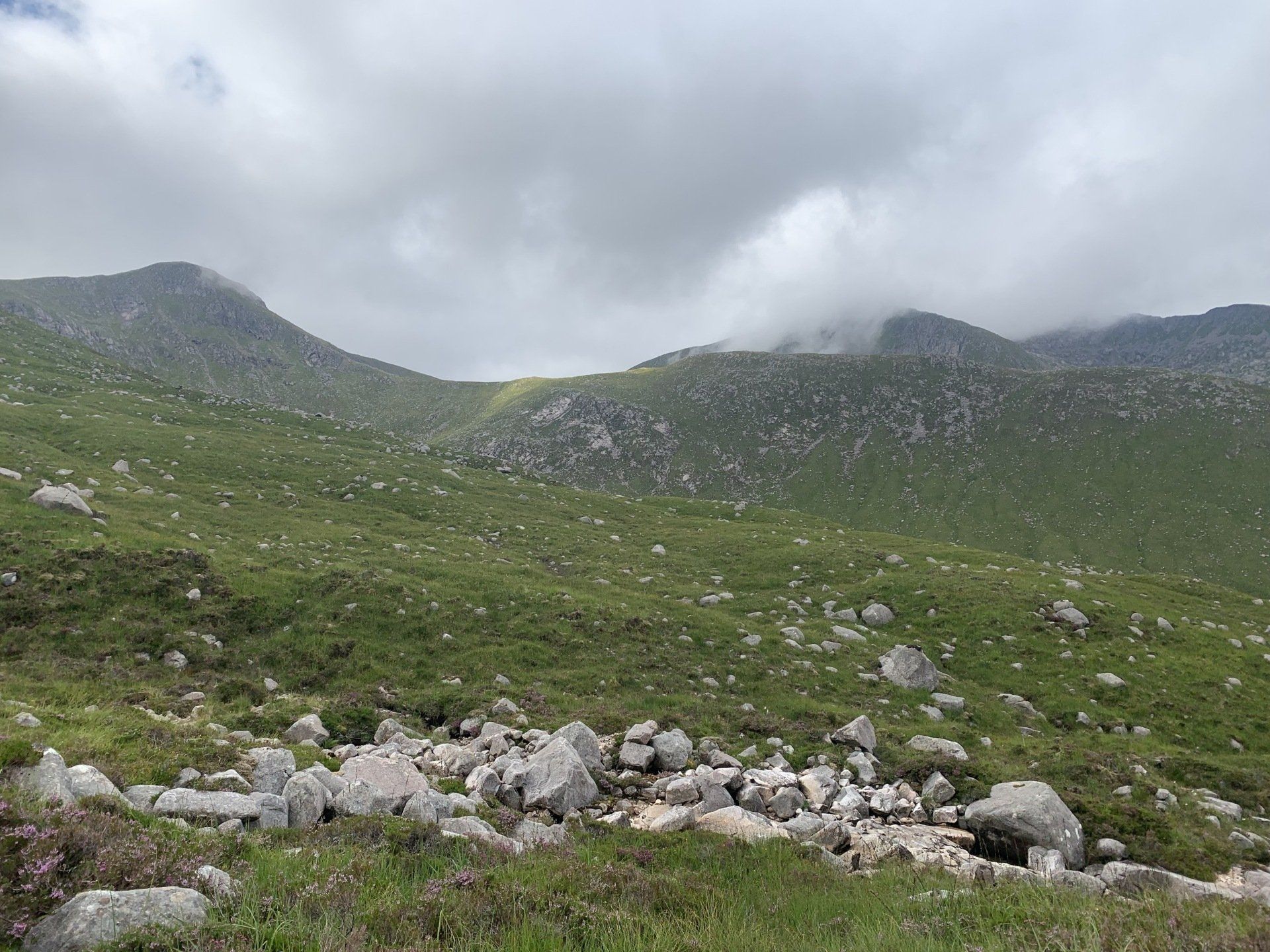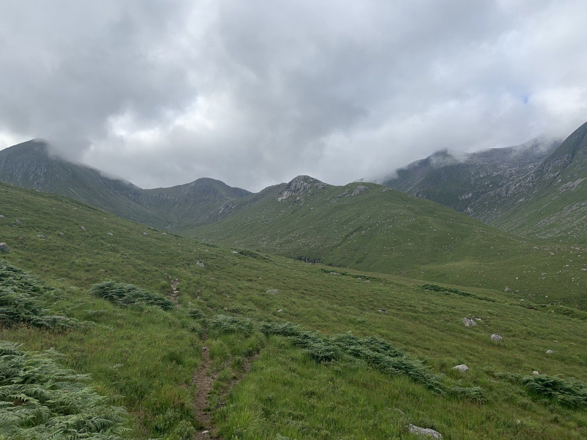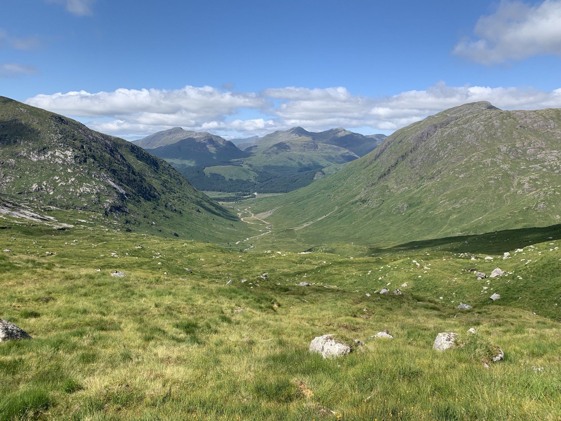 Aug 2021 - Ascent from Coiletir. Gemma's legs were dead after yesterday so it was a solo hike for me today. Gorgeous drive as always from Tyndrum to Glen Etive and the start point. Surprised to see the amount of hydro-eletric power works going on lower down in Glen Etive. Other than the workers encountered at the very beginning and end, I didn't see a single soul today. It was a long slog up but once on the tops, the views and terrain were both excellent. The munros of Glen Orchy, Glen Coe and the nearby peaks of Ben Starav and Glas Bheinn Mhòr were stunning. Amazing rock scenery in the two bealachs between the mountains. Long but lovely walk off Meall nan Eun. Two new munros which takes me up to 152/282.