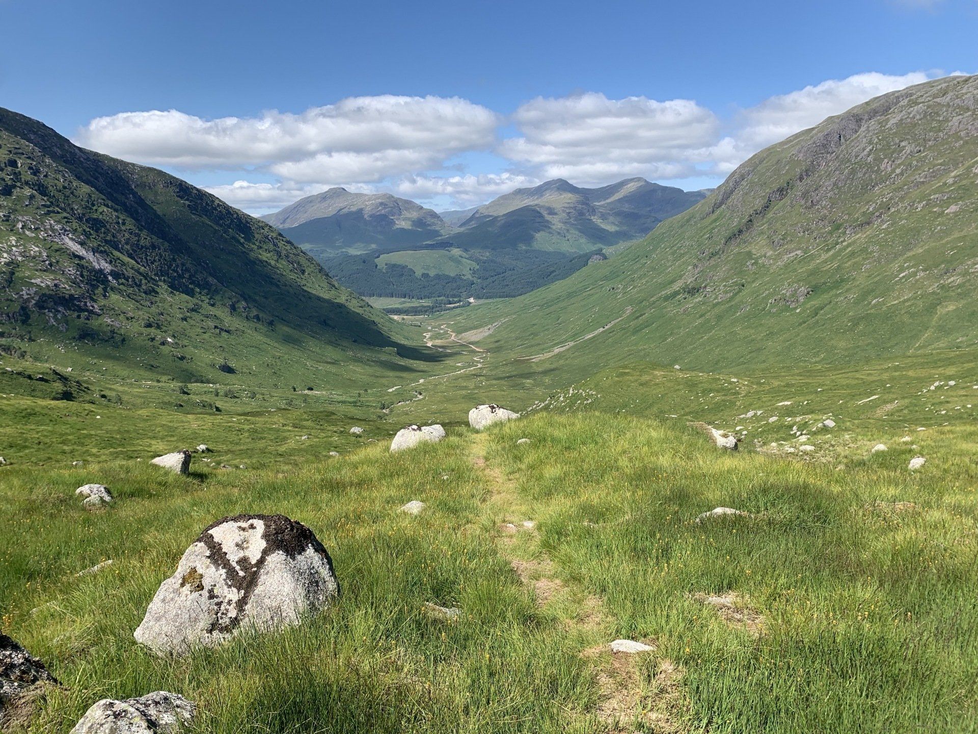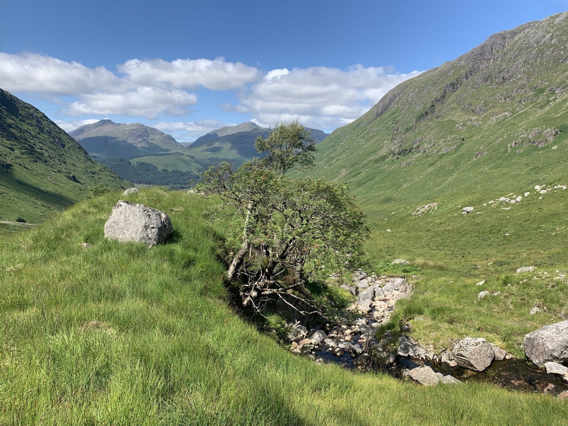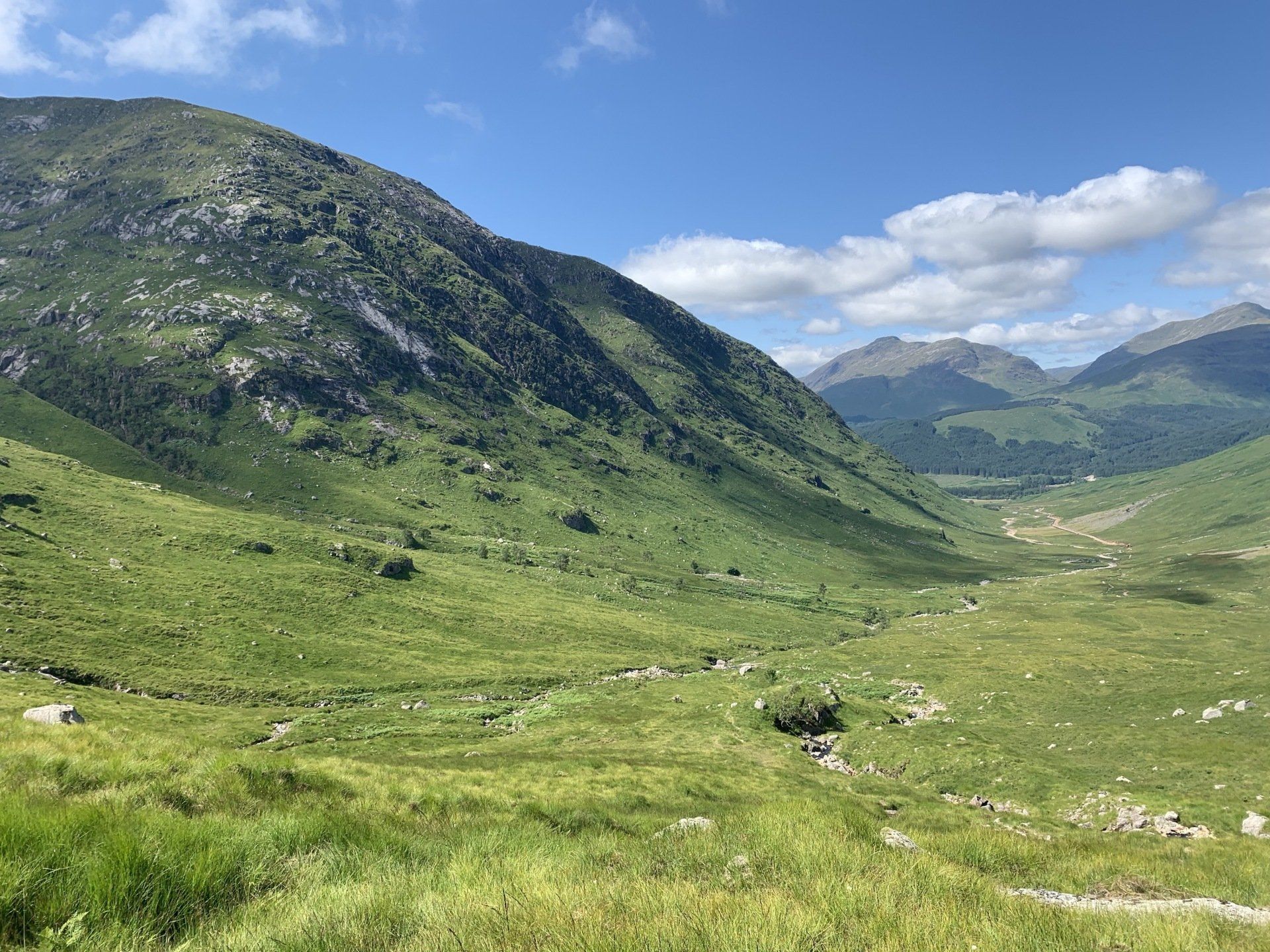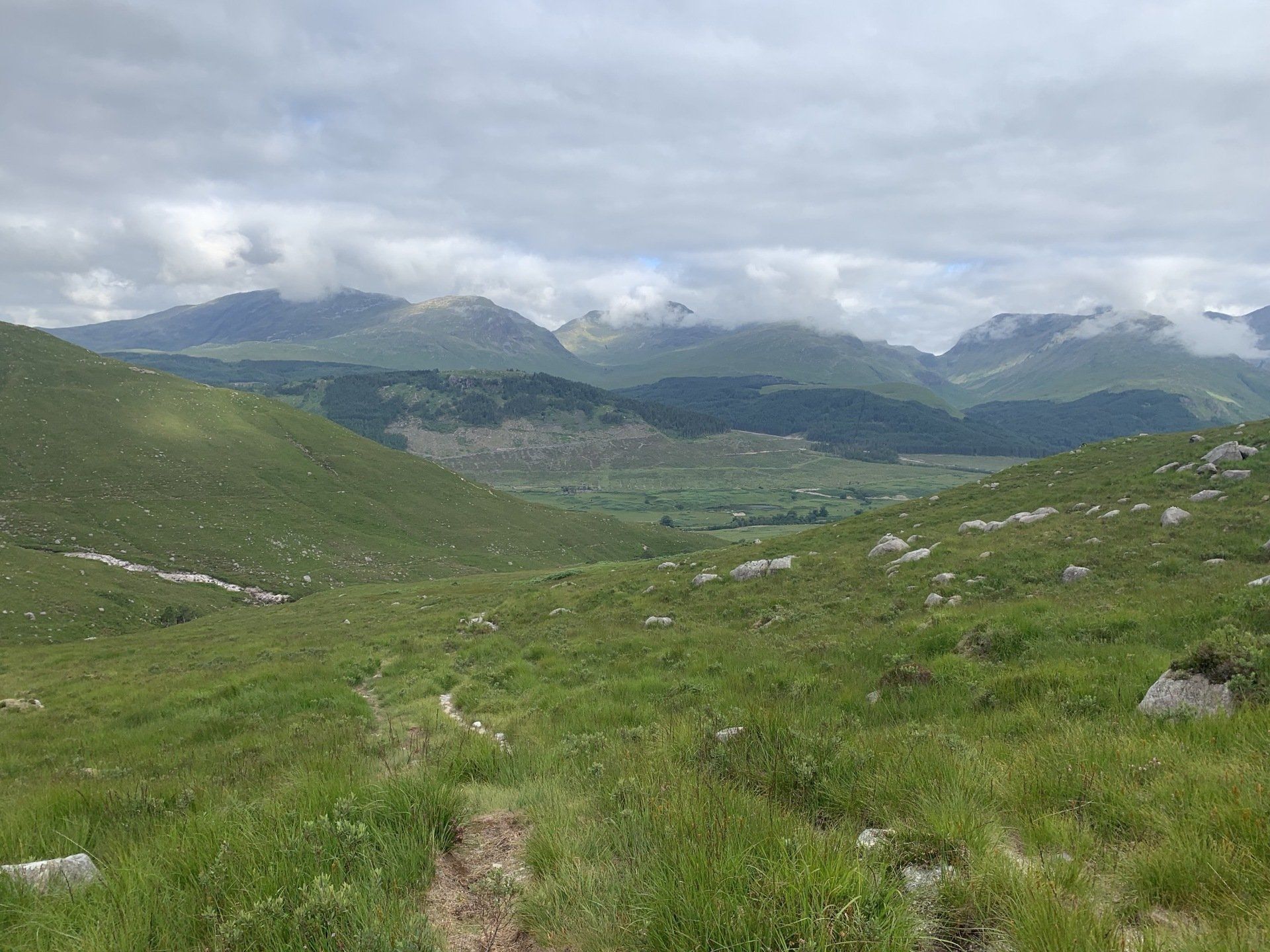 Aug 2021 - Ascent from Coiletir. Gemma's legs were dead after yesterday so it was a solo hike for me today. Gorgeous drive as always from Tyndrum to Glen Etive and the start point. Surprised to see the amount of hydro-eletric power works going on lower down in Glen Etive. Other than the workers encountered at the very beginning and end, I didn't see a single soul today. It was a long slog up but once on the tops, the views and terrain were both excellent. The munros of Glen Orchy, Glen Coe and the nearby peaks of Ben Starav and Glas Bheinn Mhòr were stunning. Amazing rock scenery in the two bealachs between the mountains. Long but lovely walk off Meall nan Eun. Two new munros which takes me up to 152/282.