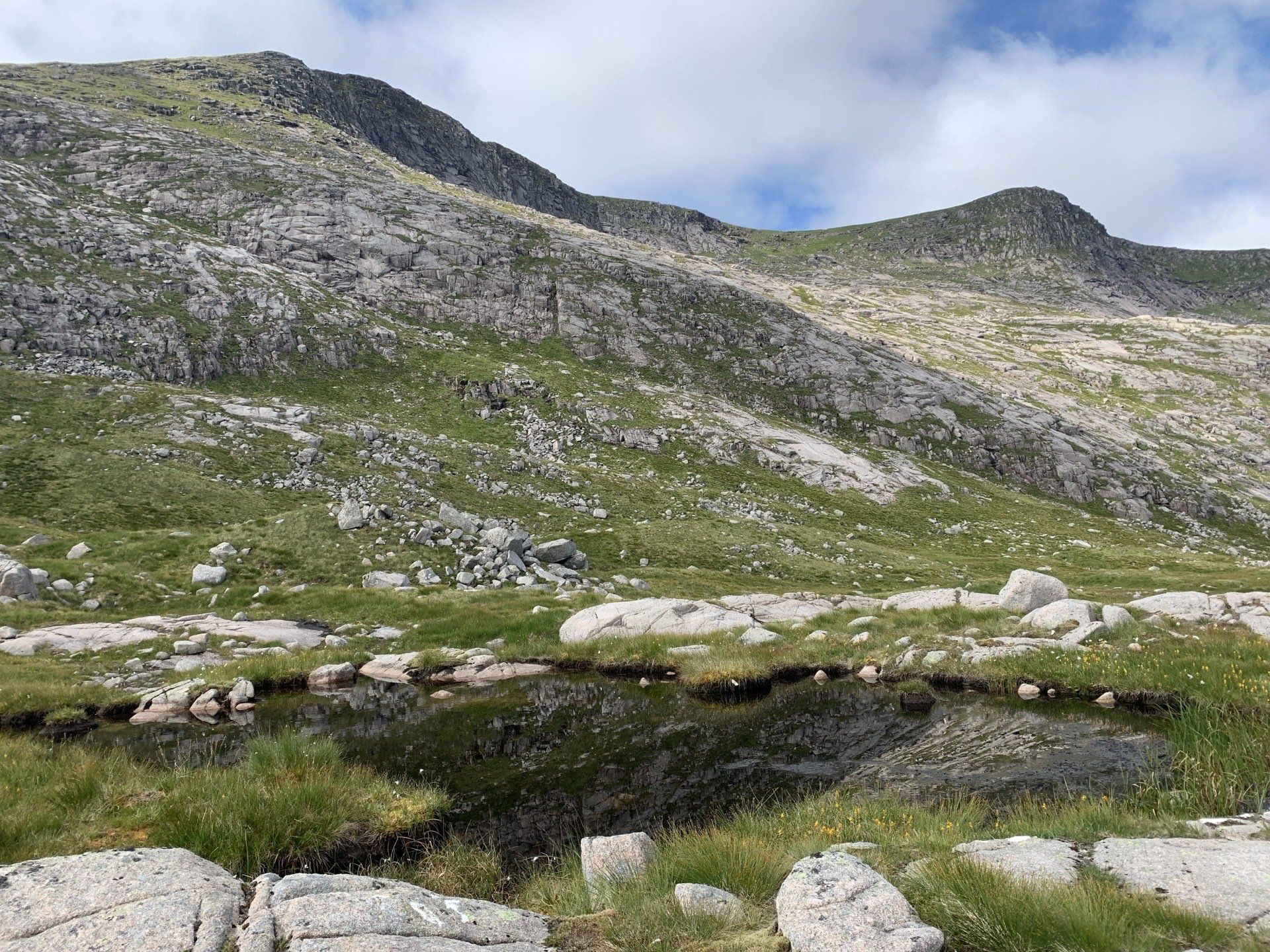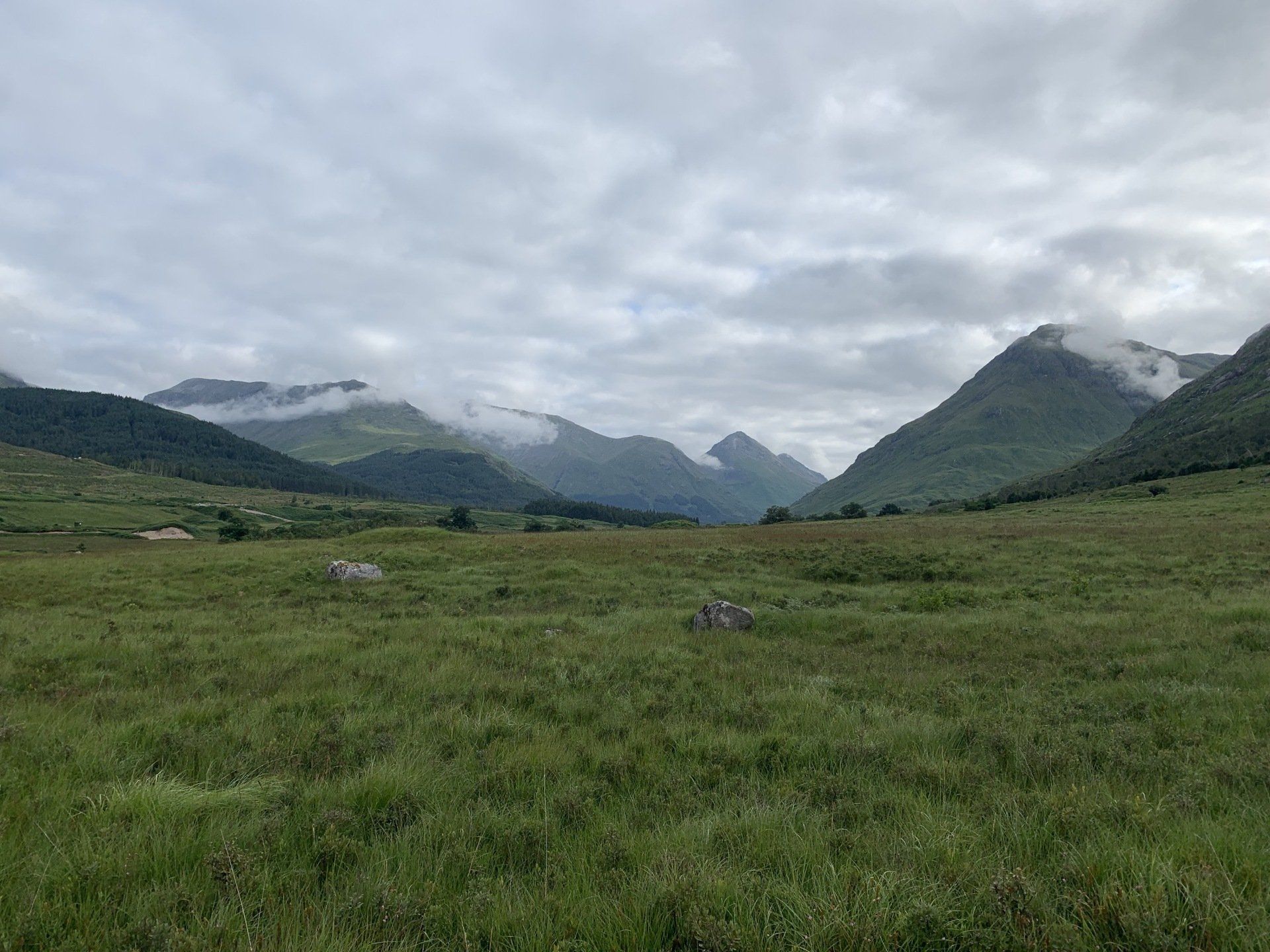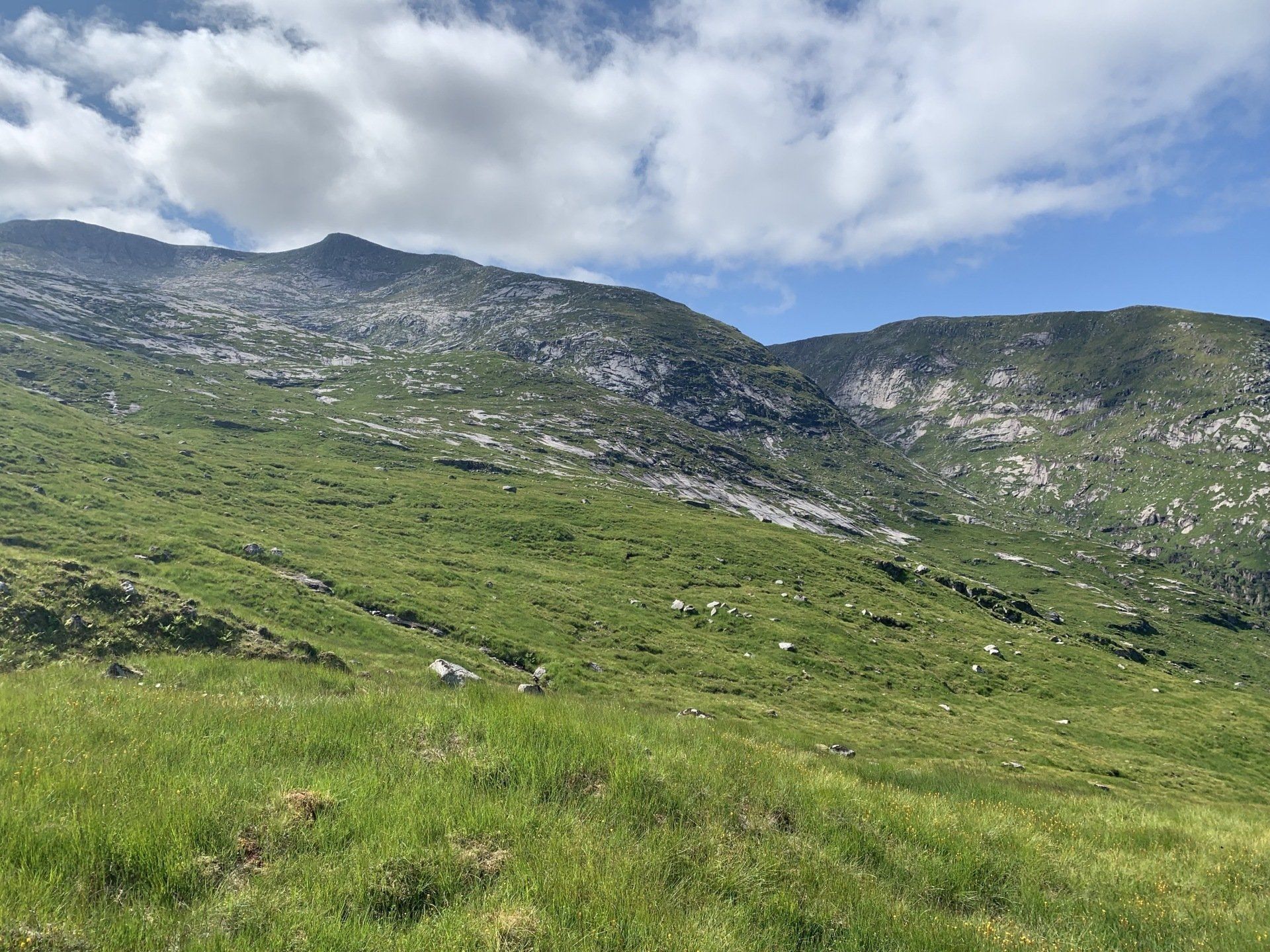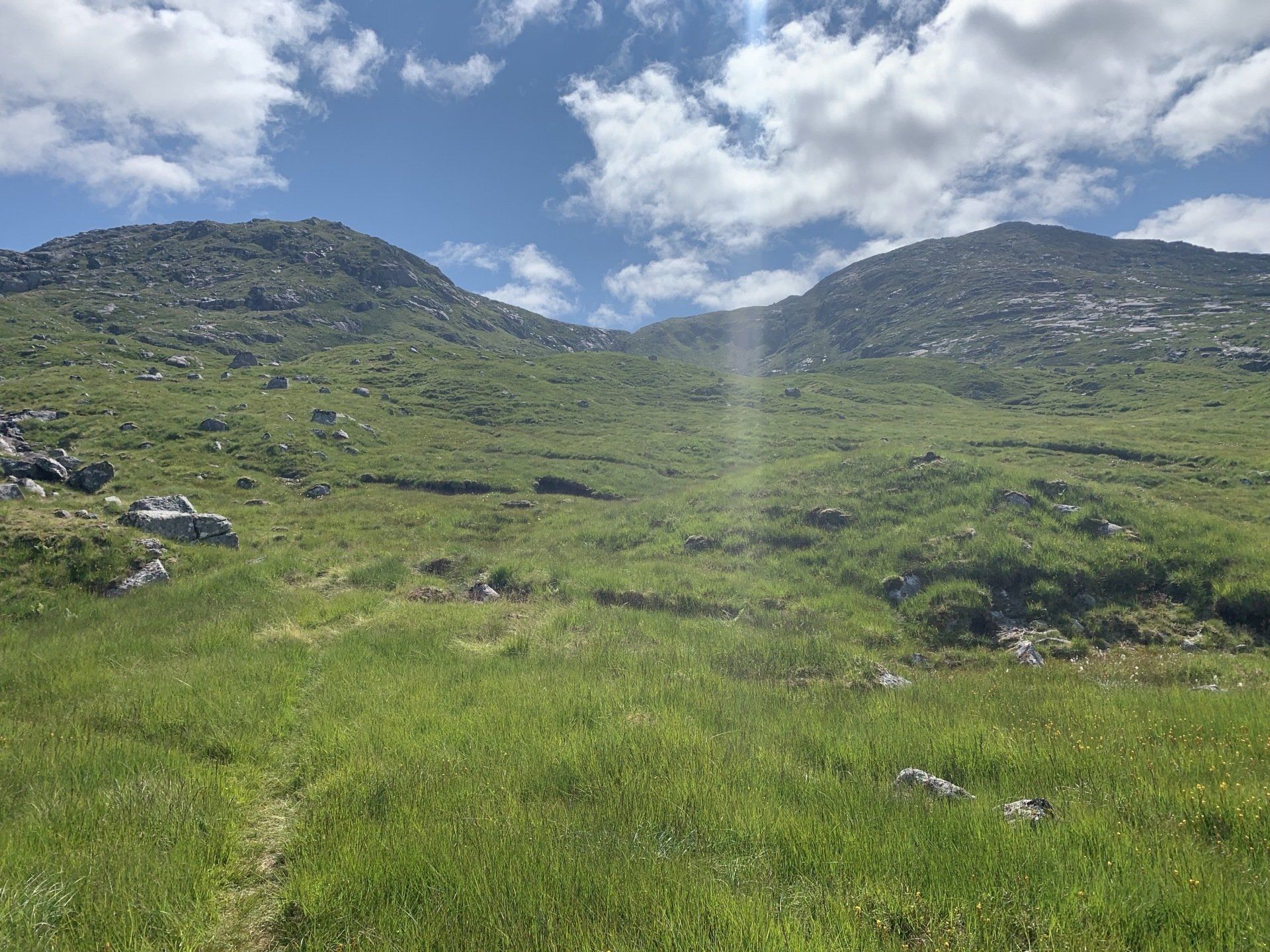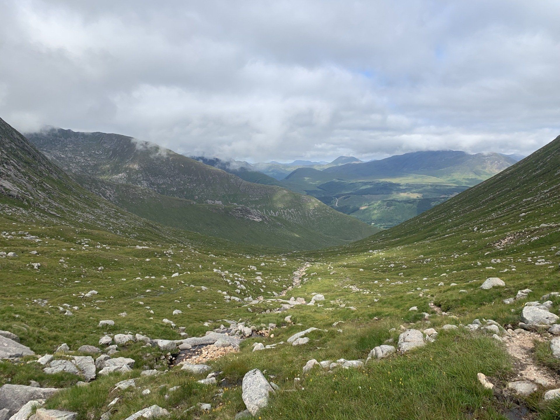 Aug 2021 - Ascent from Coiletir. Gemma's legs were dead after yesterday so it was a solo hike for me today. Gorgeous drive as always from Tyndrum to Glen Etive and the start point. Surprised to see the amount of hydro-eletric power works going on lower down in Glen Etive. Other than the workers encountered at the very beginning and end, I didn't see a single soul today. It was a long slog up but once on the tops, the views and terrain were both excellent. The munros of Glen Orchy, Glen Coe and the nearby peaks of Ben Starav and Glas Bheinn Mhòr were stunning. Amazing rock scenery in the two bealachs between the mountains. Long but lovely walk off Meall nan Eun. Two new munros which takes me up to 152/282.