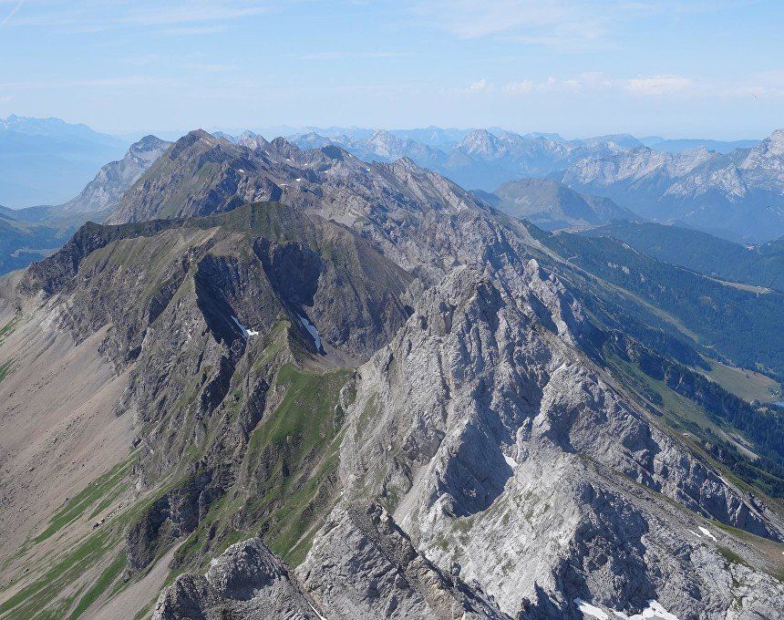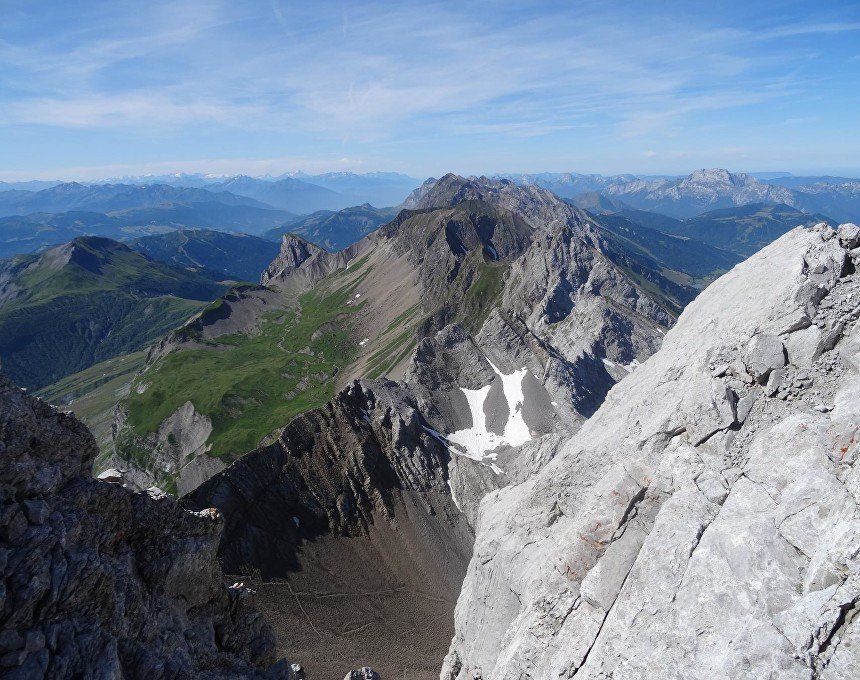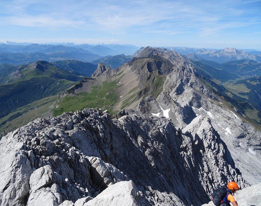 Aug 2019 - Ascent from Col des Annes. Pointe Percée is the highest mountain in the Aravis range of the French Prealps in Haute-Savoie. It has 1643m of prominence and is thus is classified as an ultra-prominent peak. This was just an epic day! Absolutely loved it. Incredible climb in an amazing setting. The scrambling is spectacular and sustained; it reminded me of Tryfan. Despite its ominous north face as viewed on the way in, the route picks its way through brilliantly with only a few pangs of exposure and minimal difficult manoeuvres. After crossing a fairly steep scree, it’s a path through passages where the use of hands is essential to climb into faults, bottlenecks and chimneys that are not equipped, on slippery rocks. Strangely, one of the most difficult sections is right at the start, after the scree. The ridge that is gained just below the summit is amazing and I had to wait whilst a group of roped-up boys crossed in front. The views were astonishing; the weather was perfect.