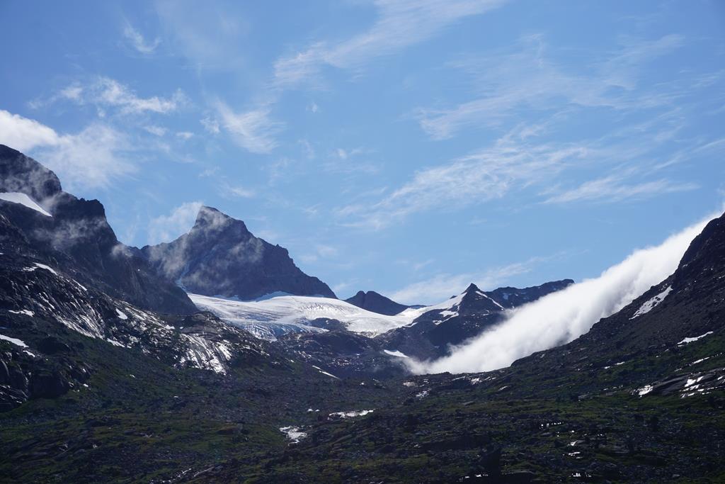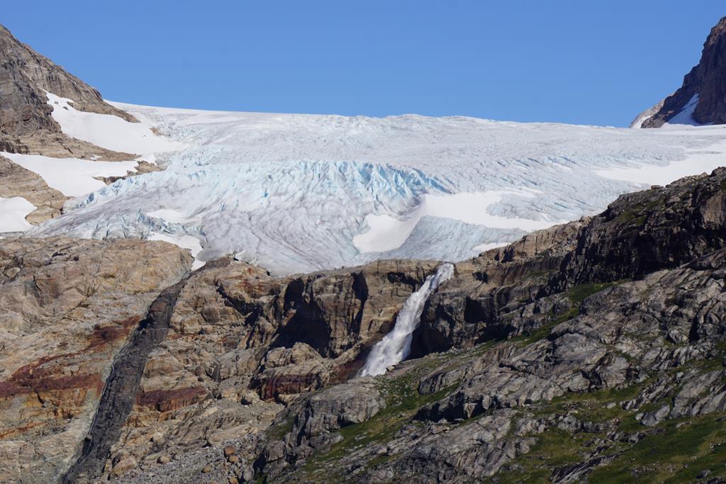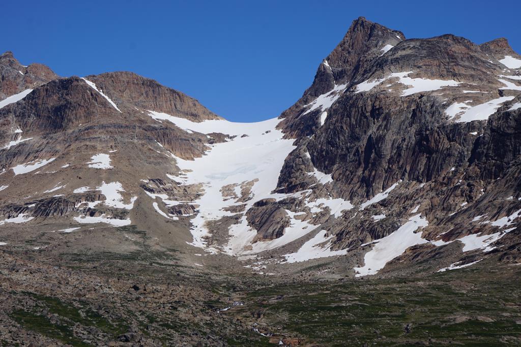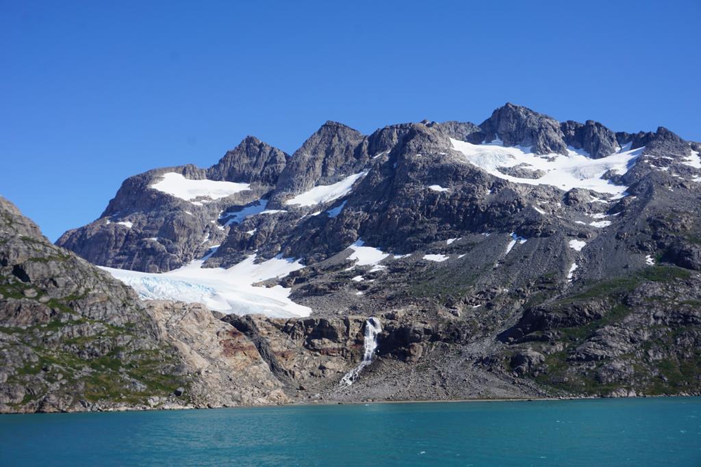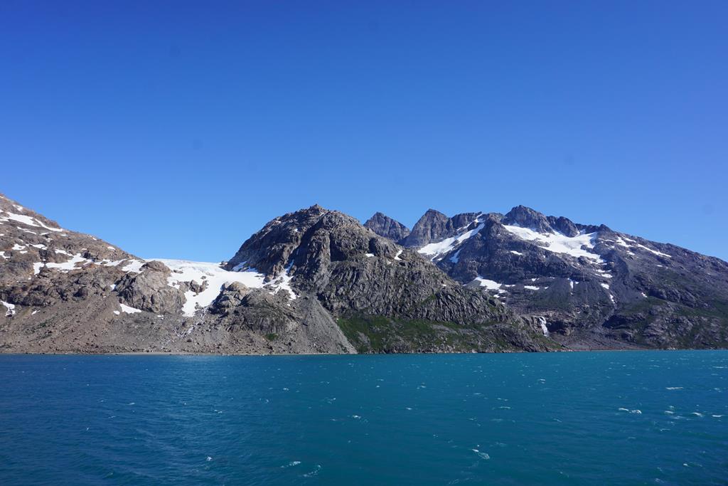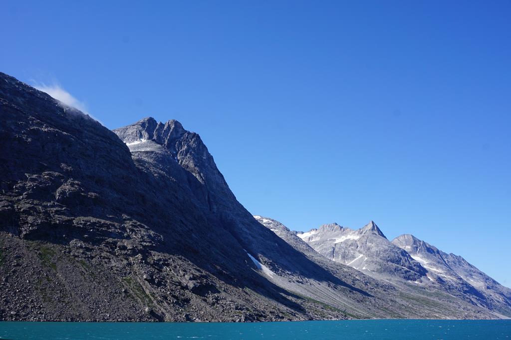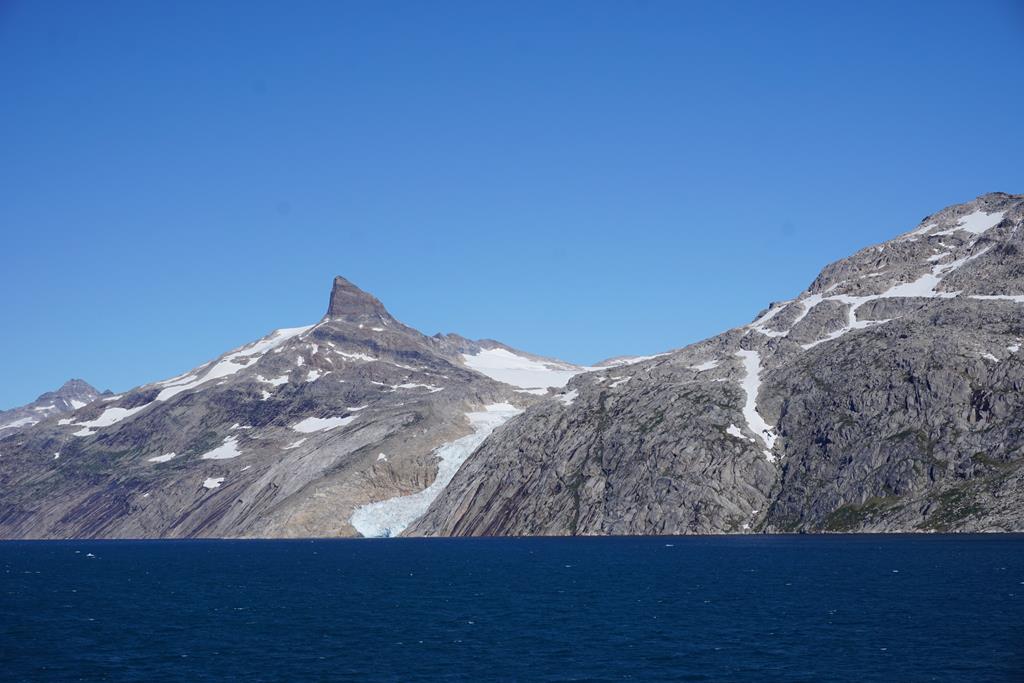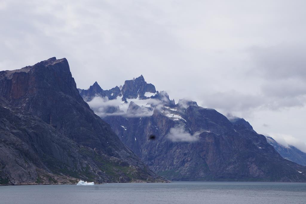 The stunning Prince Christian Sound connects the Labrador Sea with the Irminger Sea. It is around 100 km (60 miles) long and it is narrow, sometimes only 500 metres (1,600 ft) wide. There is only one settlement along this sound, Aappilattoq. The long fjord system is mostly surrounded by steep mountains reaching over 2,200 metres (7,200 ft) high. Many glaciers go straight into its waters where they calve icebergs. There are often strong tidal currents limiting the formation of ice. It has many offshoots, such as Kangerluk Fjord to the north midway through the fjord, Ikeq Fjord in the south, and in the west Ilua Fjord, Ikerasaq Fjord (Akuliarutsip Imaa), Utoqqarmiut Fjord (Pamialluup Kujatinngua) and the Torsukattak Fjord.
