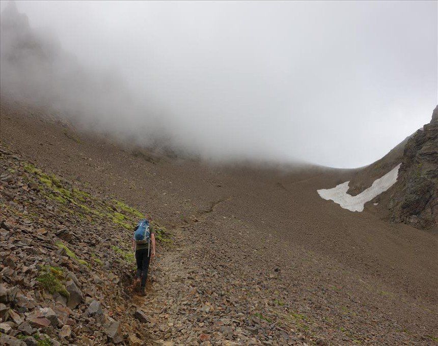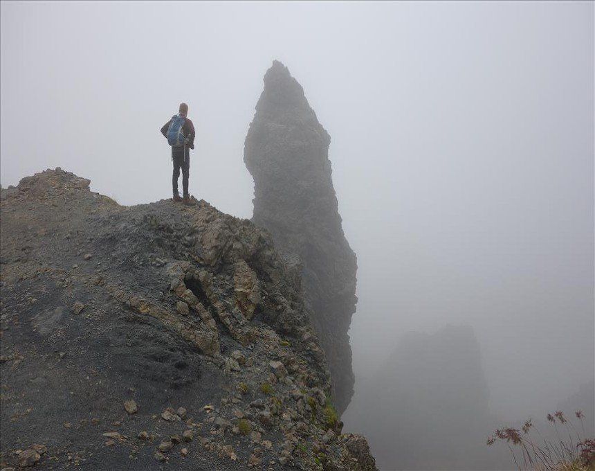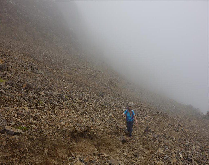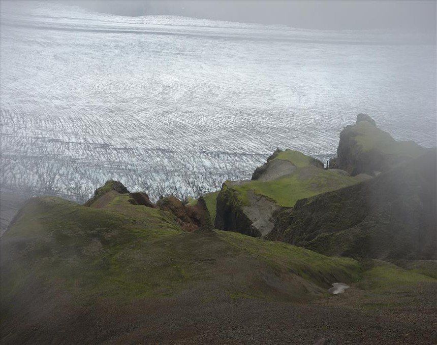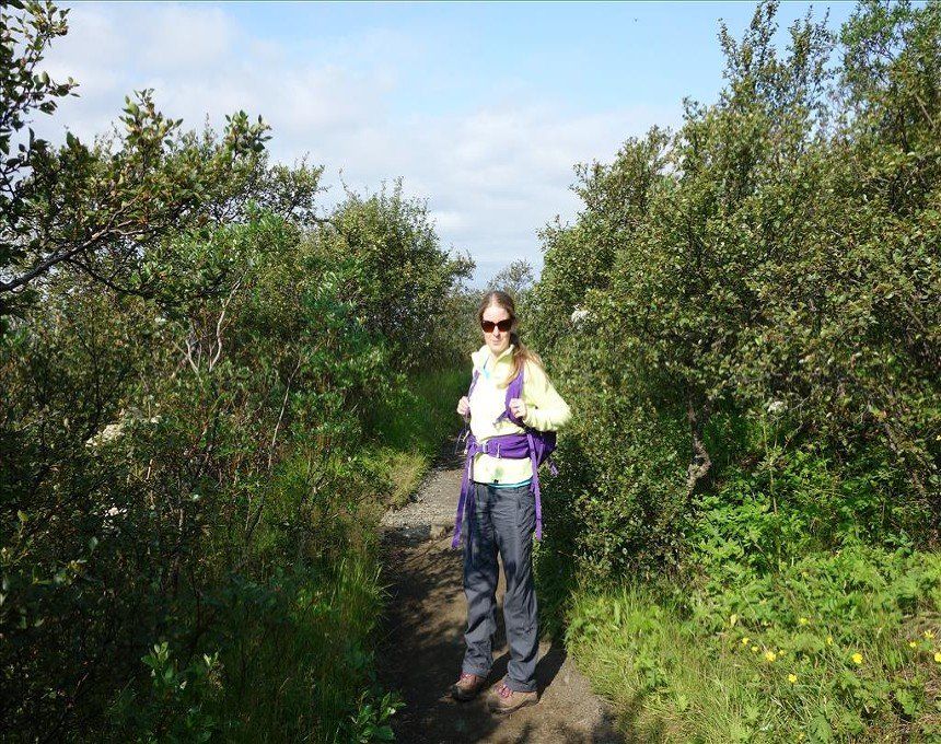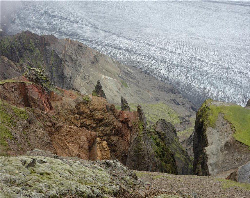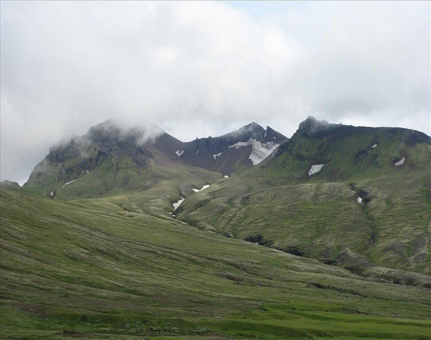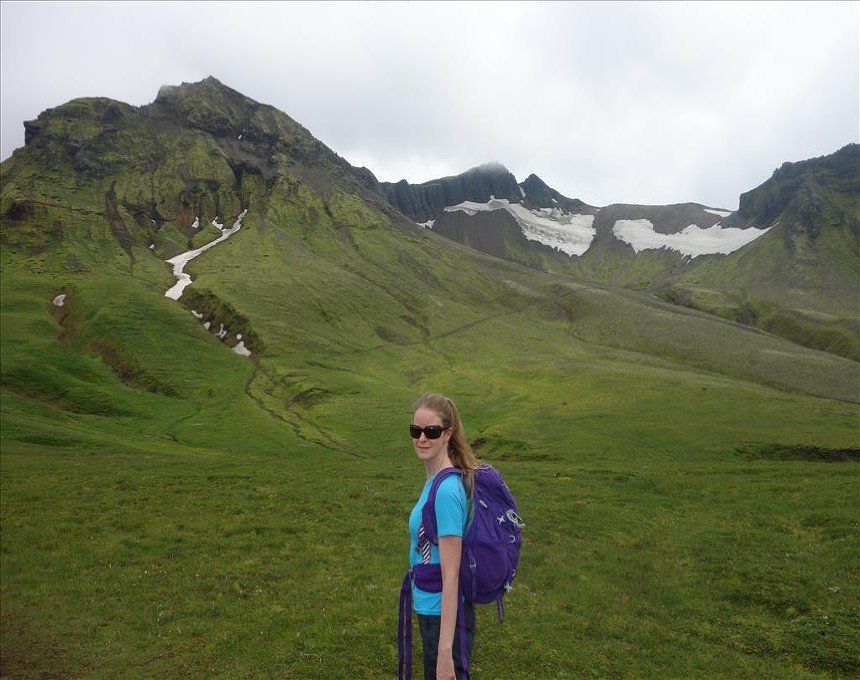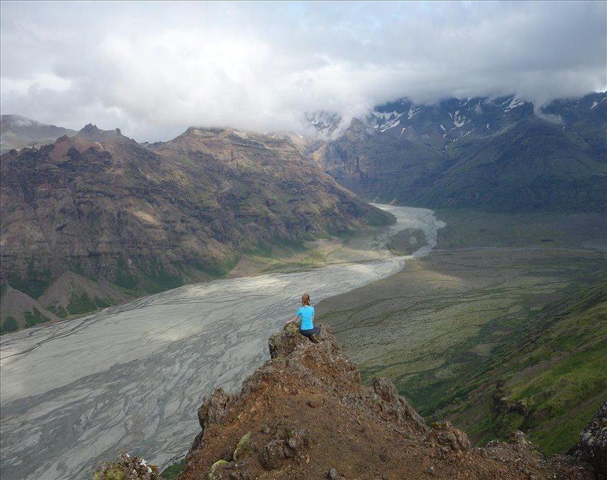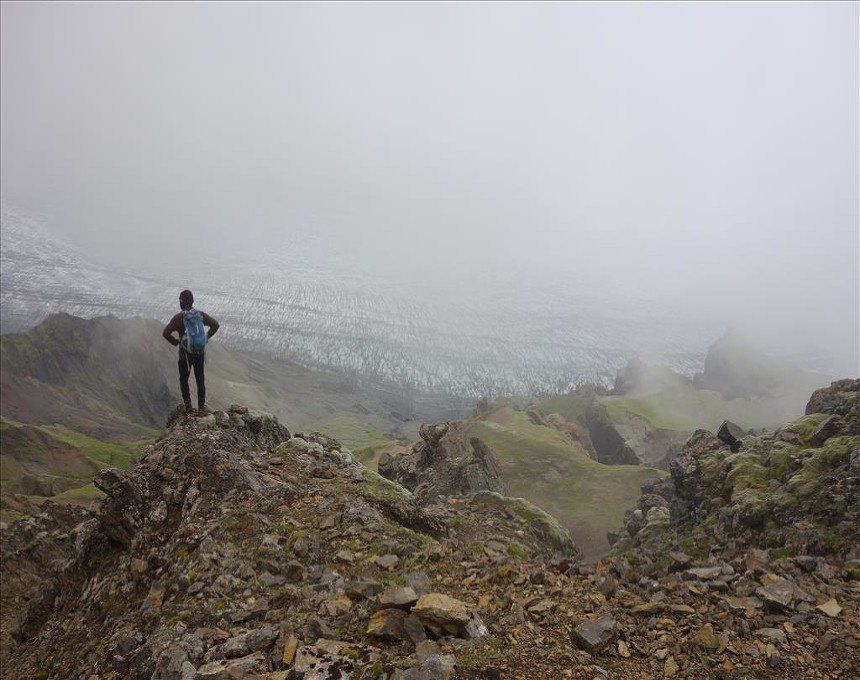 July 2014 – (with Gemma) Ascent from Skaftafell Visitor Centre. Today we rose early for a mountain hike up the 1126m peak, Kristinartindar. It was a simply magnificent climb with astounding views, exhilarating scrambling and knife edge arêtes; a 13 mile hike through changing scenery. Initially we climbed to Svartifoss, a wonderful waterfall with volcanic columns framing it. When we reached the flatter ridge, the views to the glacier and mountains to our west were excellent, including Iceland’s highest waterfall. We scrambled around here for a while, and then continued our ascent, with Gemma pausing to take in the flora and fungi! Eventually, we entered the corrie and ascended the scree to a col, where the views down to the glacier were tremendous. From here it was a steep climb and scramble to the summit which is set on an extremely narrow ridge. We sat here for an hour, enjoying our lunch and the occasional views through the clouds, in surprisingly warm weather. On the summit, there was a tremendous distant crashing noise, where we guessed a chunk of ice had fallen from the edge of a glacier into the water below. On the descent, we saw Snipes, Golden Plovers and a Ptarmigan with her chicks, all joyfully hopping around! The huge glacier of Skaftafellsjokull on the eastern side of the ridge was breathtaking, creating a contrast with the greenery and black rock. Iceland’s highest peak, Hvanndalsnukker, also occasionally popped out through the clouds.