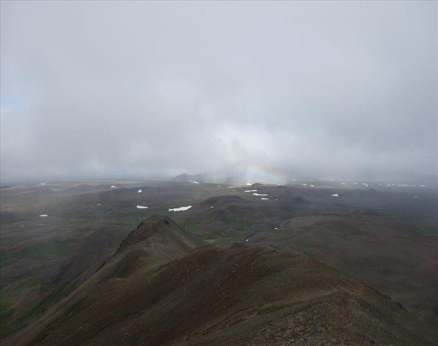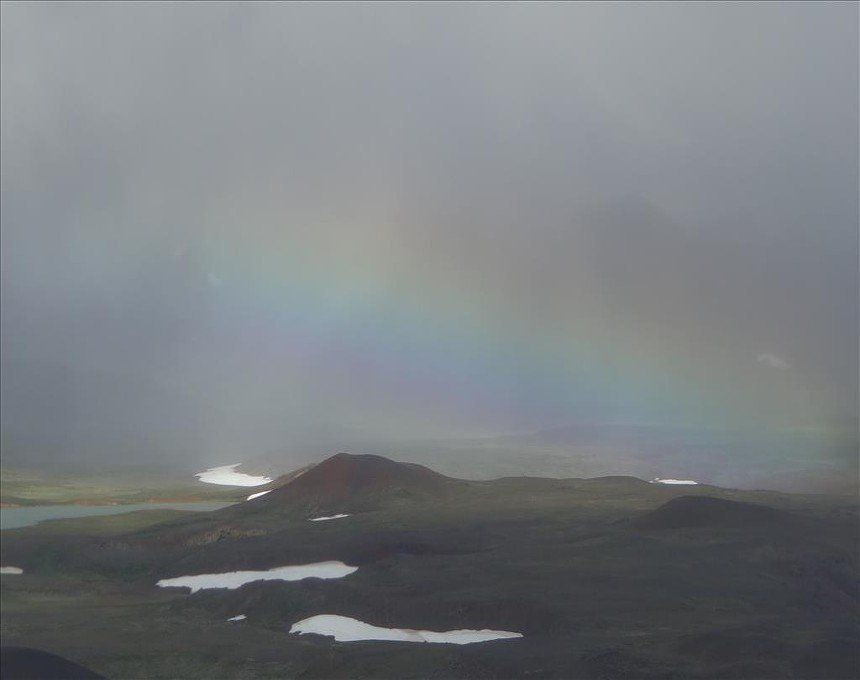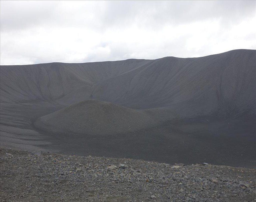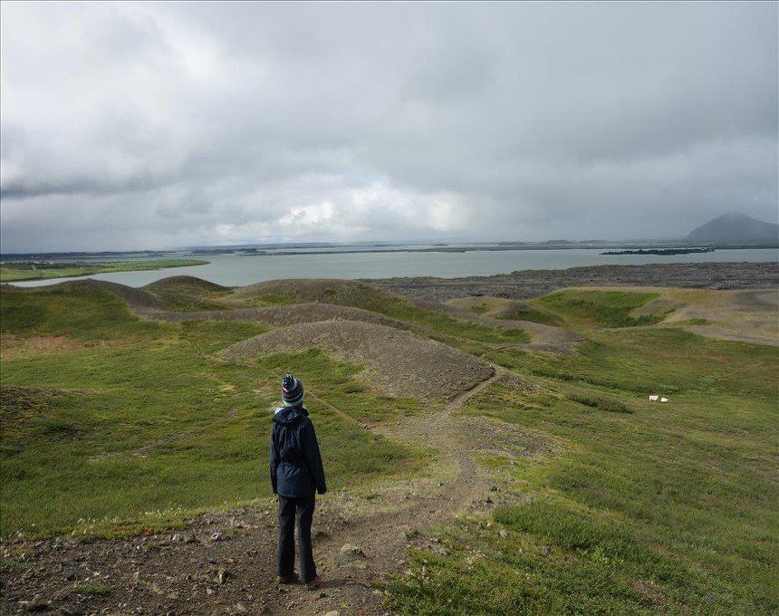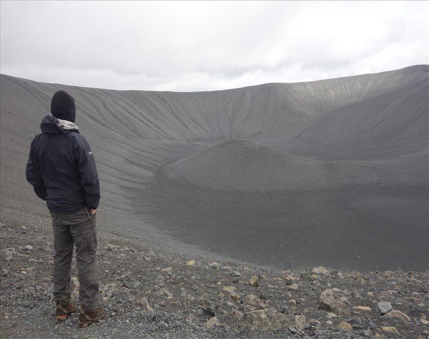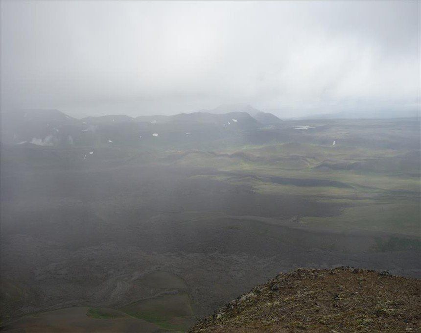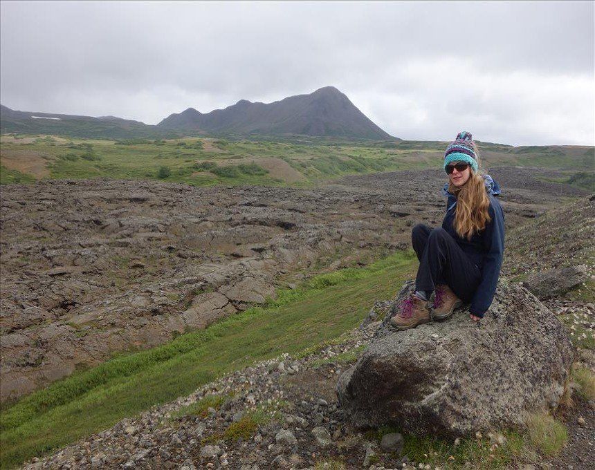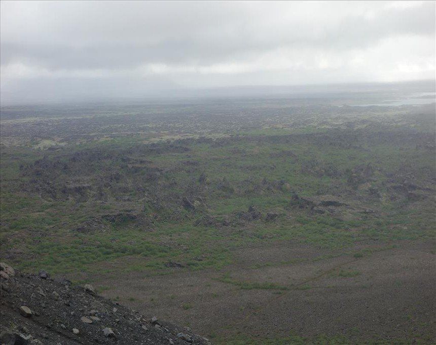 July 2014 - (with Gemma) We began the day with a climb up Hliderfjall volcano/mountain which was extremely steep but offered fine views of the Krafla volcanic fields and Myvatn Lake. It was a gentle ascent across lava fields and then a steep pull up volcanic scree. We then hiked up to the rim of the Hverfjell volcano and circled it. It's a huge tephra crater. This also gave us unbelievable views of the steaming hills and distant ice capped mounatins.