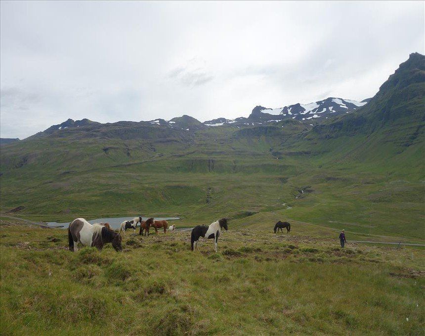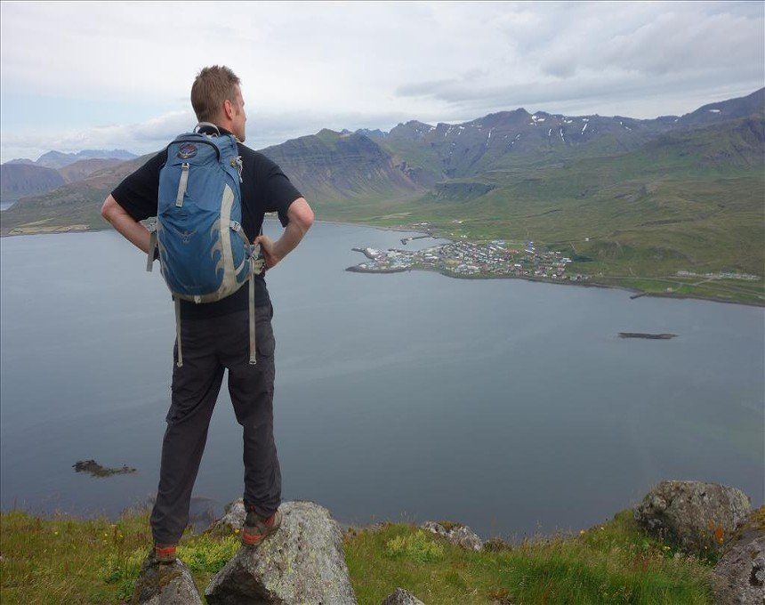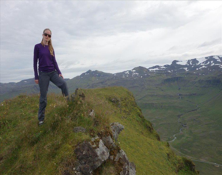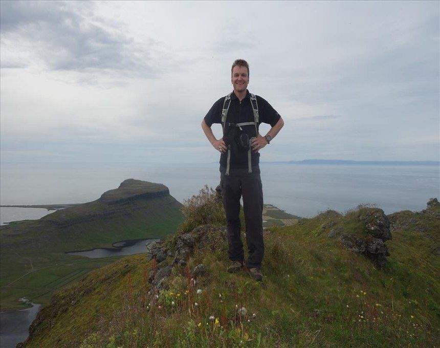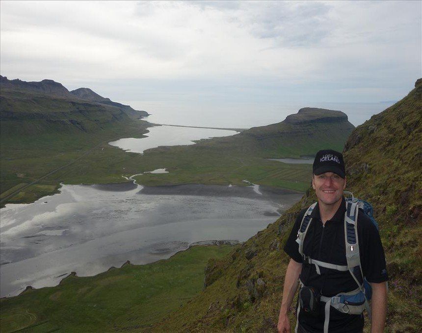 Aug 2014 - (with Gemma) Kirkjufell (Church Mountain) is the most photographed mountain in Iceland due to its position and classic conical shape. It turned out to be one of the best short climbs we’d ever done. The rope sections were exposed; vertical climbs of up to 7 metres in excellent situations. There was much fun in choosing the route up the other scrambly sections and once the final rope section was climbed, we were faced with a narrow ridge to the summit on unstable grass. Many people opt for a guide to climb this mountain however it wasn’t that hairy, providing you have a head for heights and confidence in your ability. Coming back down was equally challenging, especially positioning your body backwards onto the top of the ropes in order to descend. The views of the surrounding mountains and the town of Grundarfjörður were simply stunning from the summit. The best part of the climb up was Gemma getting electrocuted by a farmer’s fence. Hilarious, (for me!)