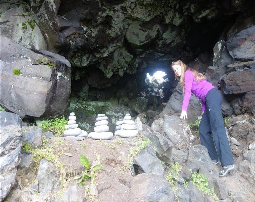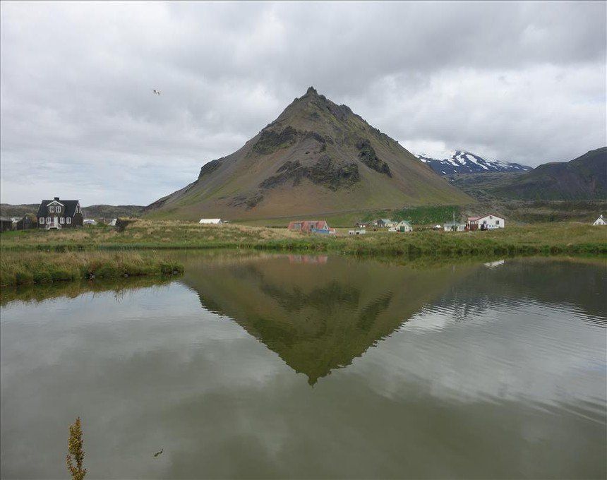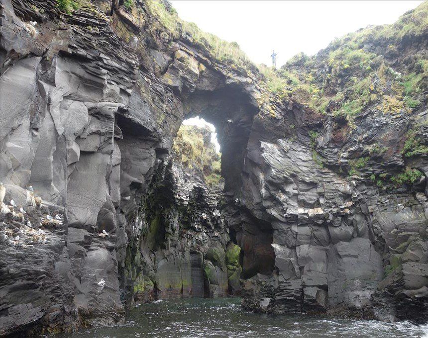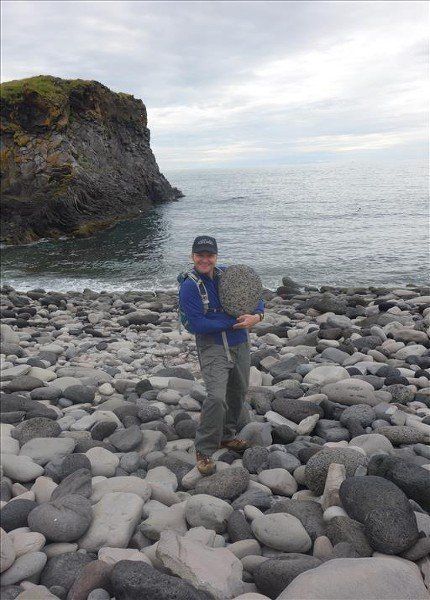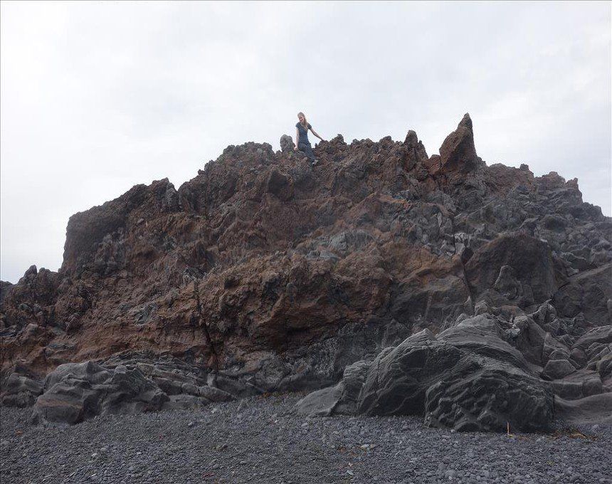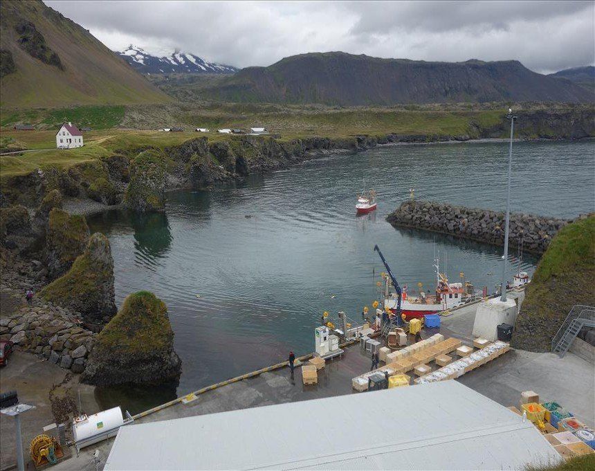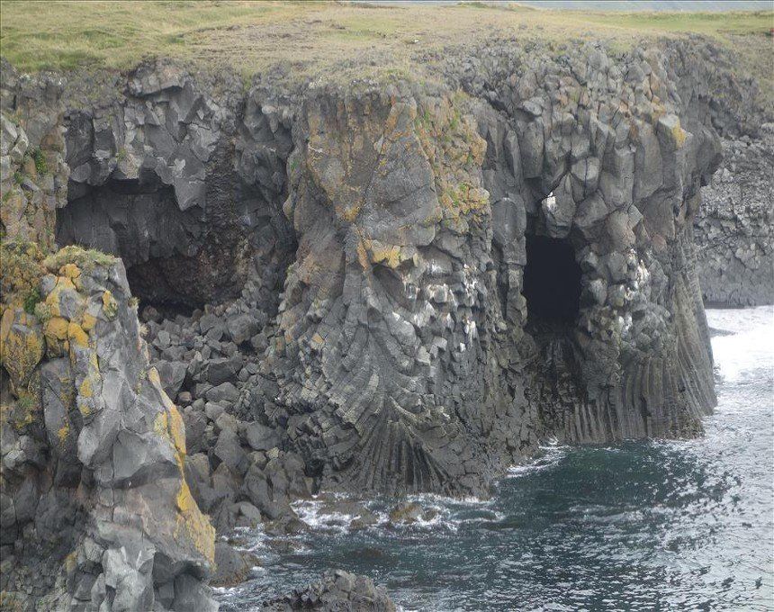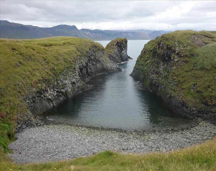 Aug 2014 - (with Gemma) Gemma got attacked by Artic Terns today! We drove a short distance south over the Snaefellsnes peninsula to Hellnar where we enjoyed a fantastic coastal walk to Arnstarpi and back. We spent ages exploring the various caves, sea stacks and contorted shapes of this basalt coastline; scrambling up and over things here and there. The area is teeming with raucous birds (as Gemma discovered!) The tiny harbour was a wonderful example to fishing in these waters, as we watched a boat return and unload its ice boxes full of fish.