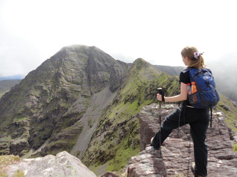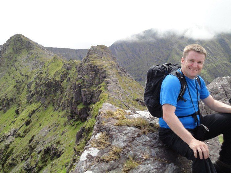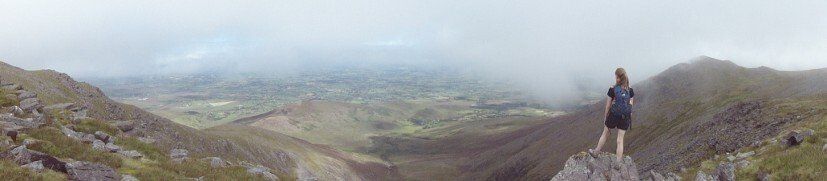 Aug 2010 – (with Gemma) – Ascent from Hydropath via Coomloughra. Roasting hot day and the initial steep ascent following the hydro path was gruelling. Arrived at the intimidating glacial bowl of Coomloughra, before ascending steeply towards Beenkeragh. Here, we waited, and the mist cleared to reveal the infamous Beenkeragh Ridge which links Beenkeragh to Carrantuohill. Excellent, and at times, exposed ridge and we finally arrived at Carrantuohill for the second time that week. We then completed the horseshoe via Caher, before rejoining the hydro path, by which time I had developed an incapacitating electric shock in my leg. Worrying signs?