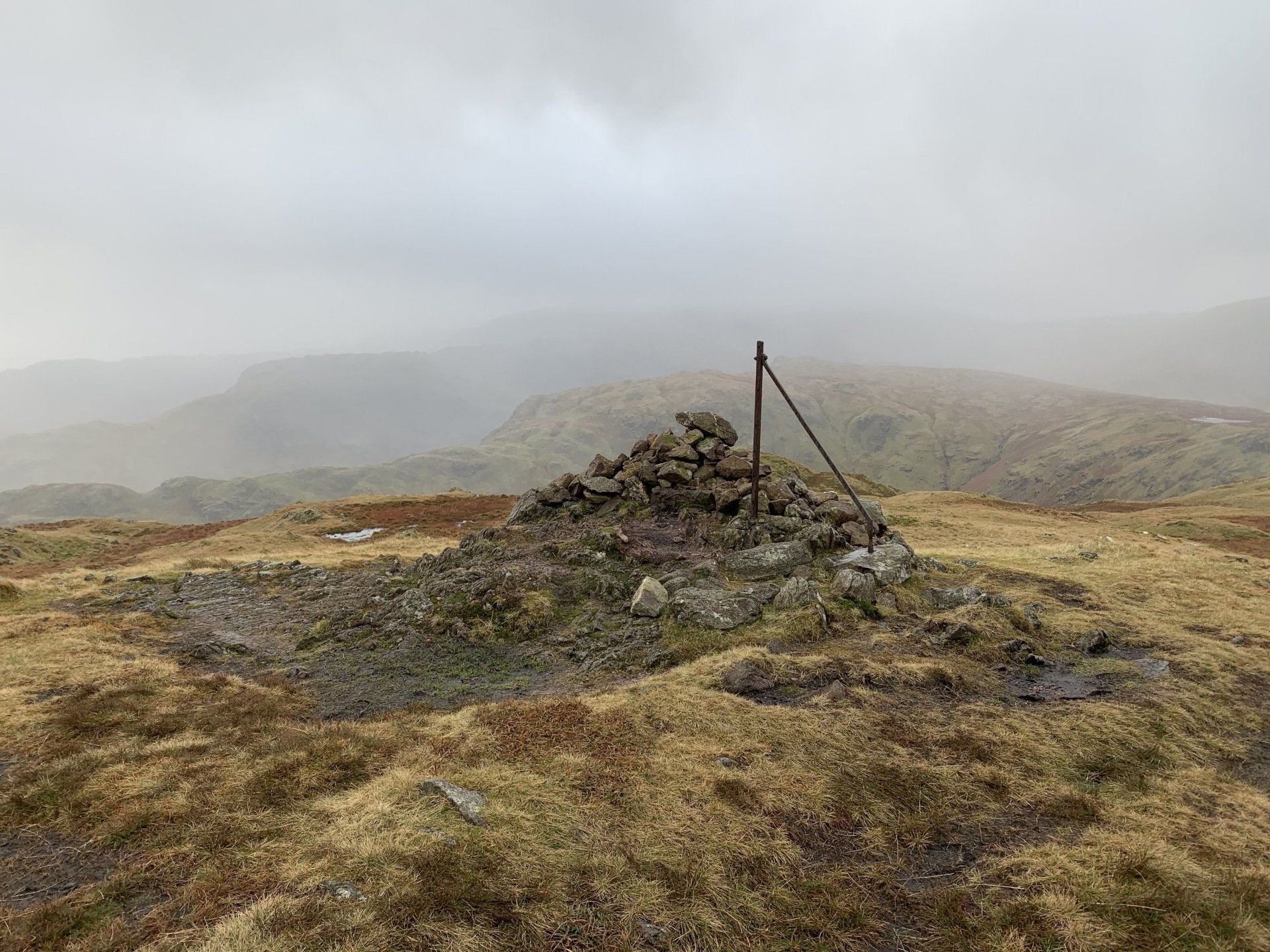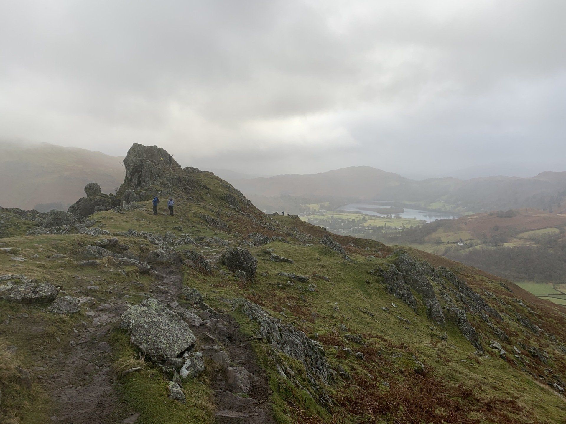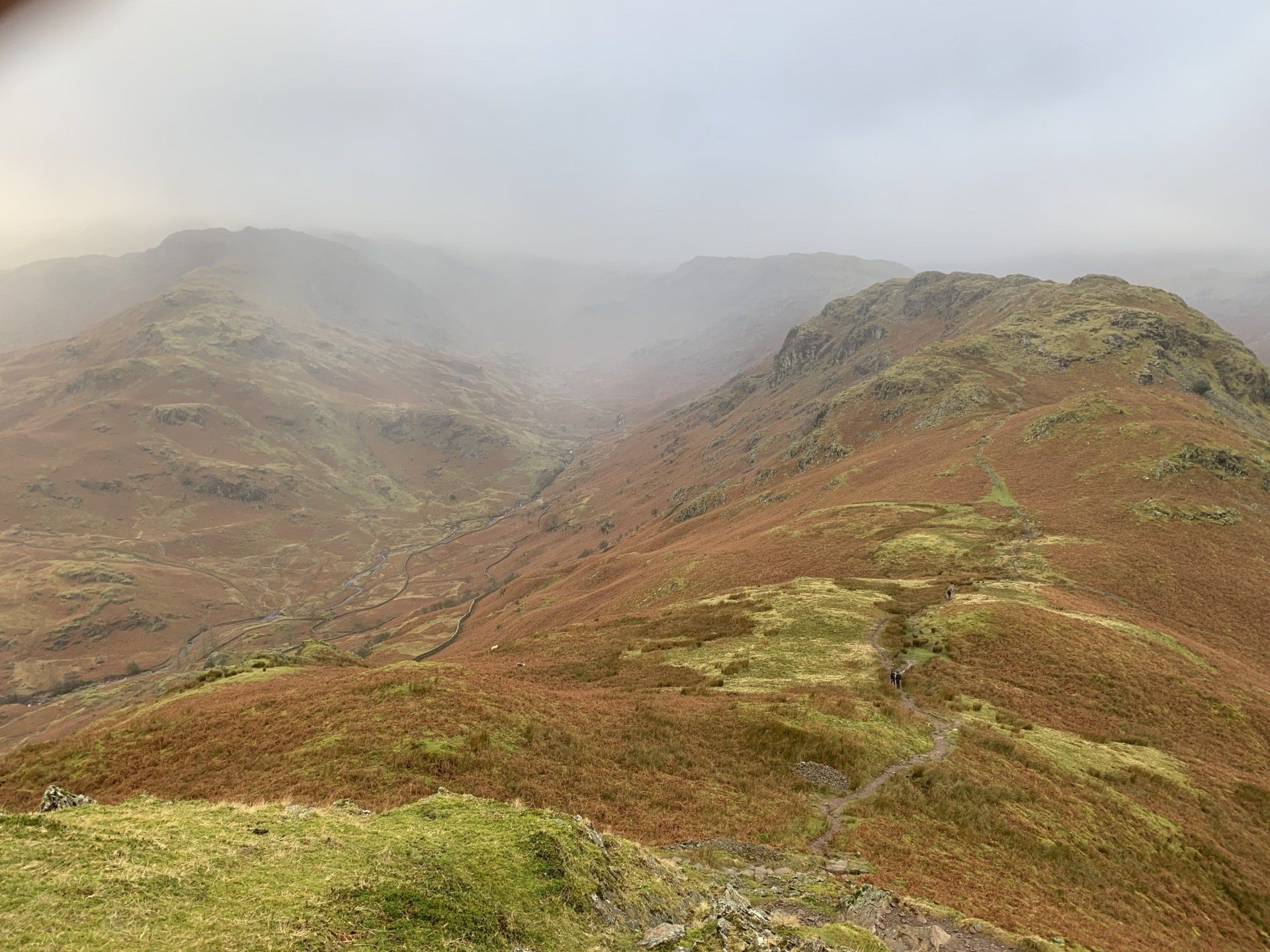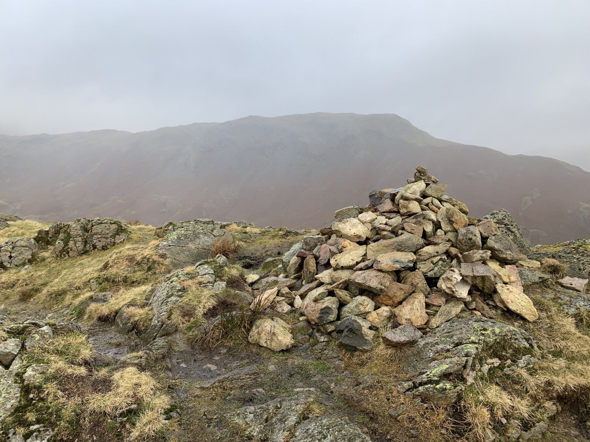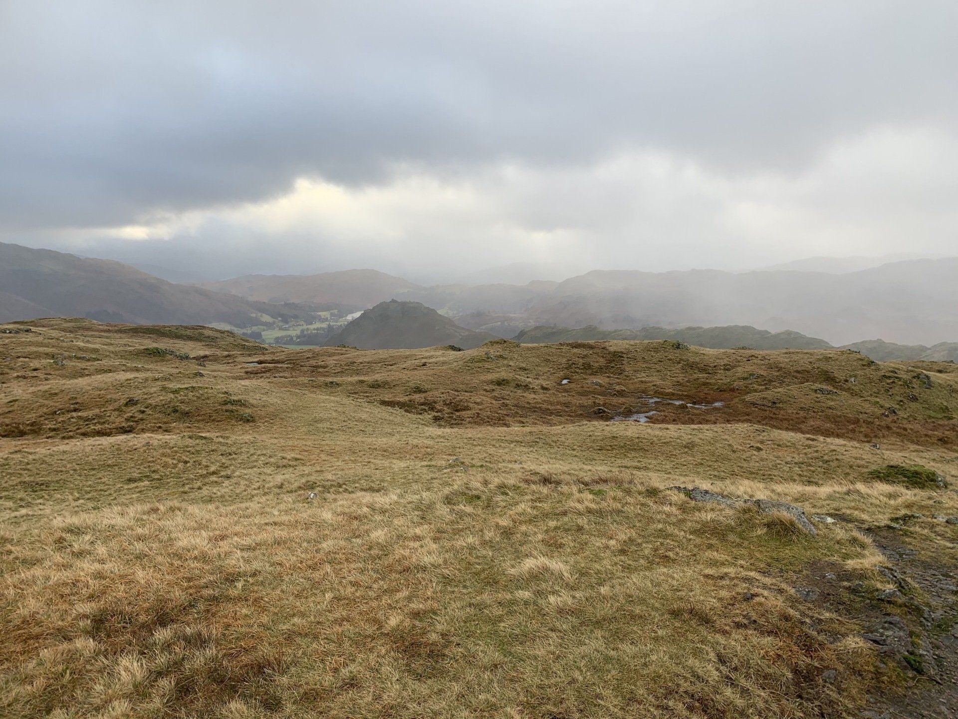 Jan 2020 - Ascent from Town Head. Final walk, this time around. Bus to Town Head and then the ascent of Steel Fell with the crags of the bizarrely named Cotra Breast for company. The views up through the equally oddly named Greenburn Bottom were lovely, despite the hanging cloud. I rounded the head of the valley to Calf Crag before the the traverse of the enjoyable, undulating ridge back to Helm Crag via Gibson Knott. Dropped down to Grasmere.