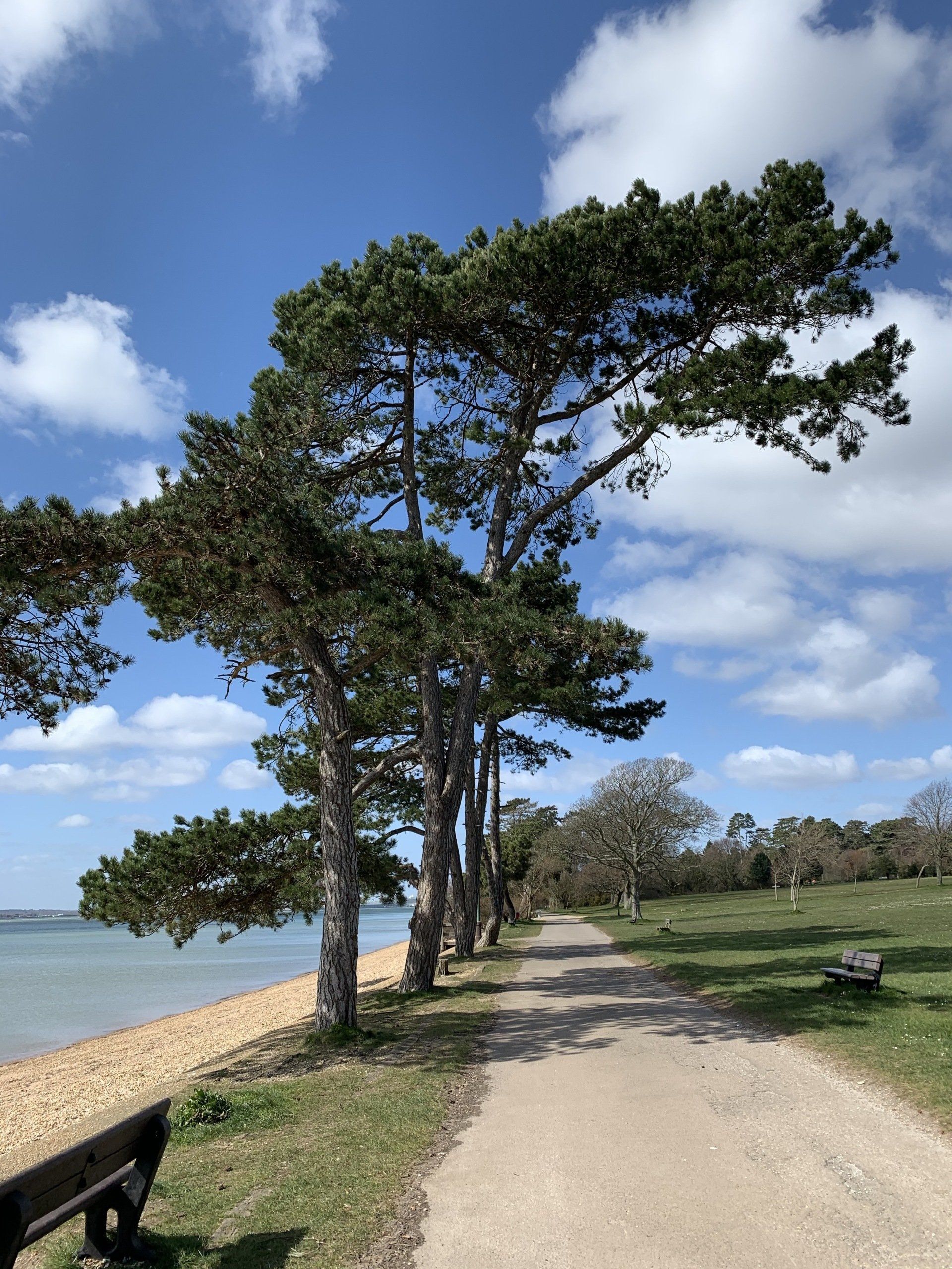 Mar 2020 - n the current climate, I thought it best to walk from home today. It actually started out as a run, in trainers and T-shirt, however this only lasted just over 2 miles. From there, I settled into a brisk walk. Quite chilly weather, albeit sunny. I passed through Queen Victoria Country Park, visited the war cemetery and then headed onwards to Hamble. Returned along the sandy banks of the Solent.