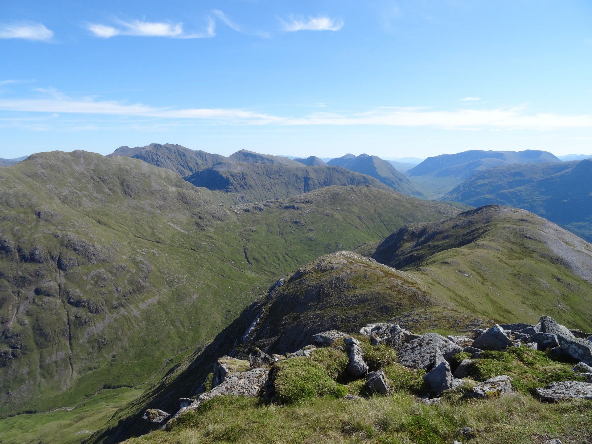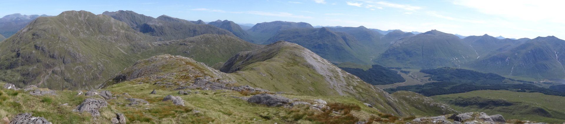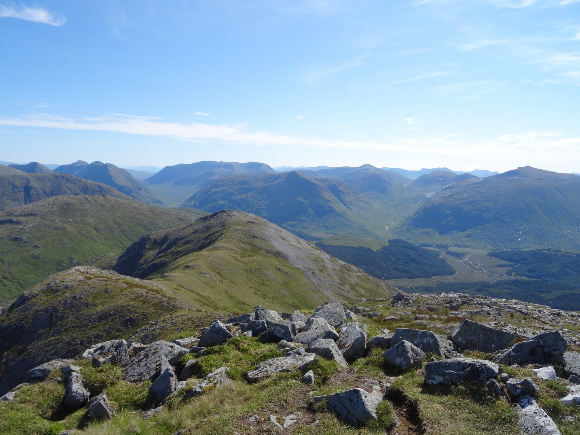 Aug 2020 - Ascent from Invercharnan. The drive from Tyndrum to Glencoe, when all the mountains are out in the early morning sun, has to be one of the best drives in the world. Absolutely loved it. The minor road that leads down into Glen Etive was unfortunately chocked with cars and overnight campers. I suppose it was a Saturday night and they’ve got every right to be there. I just don’t get the attraction when it becomes so populated, almost like a beach. So many of them! I sincerely hope they take all of their rubbish home. The thing I find odd is the fact that, if they were prepared to walk just a few hundred metres up the mountain side, they’d be guaranteed solitude, however it seems they wish to stay within 30m of their car. Anyway, my start point was further on down the valley and the first couple of miles were easy forestry track with wonderful views to the mountains on the east of the glen, including Ben Starav. I rested on the top of Meall nan Gobhar after a lovely pull up alongside a ravine. The route then steepened to the northern edge of the mountain. Here, I got my first view of the amazing Glencoe peaks. A brilliant ridge then led up to the summit itself with a couple of easy scrambles. The views from the summit were just incredible - the entire Glencoe range, the Mamores and Grey Corries, the Nevis range, Ben Cruachan and Beinn Sgulaird to the south, the Glen Etive Munros to the east, and down through Loch Creran to the Isle of Mull. There were even clear distant views to the Glen Shiel and Knoydart tops. Wonderful. Eventually, after over an hour and a half on the summit, I reluctantly dragged myself away and began retracing my steps downwards. Days in the mountains don’t come much better than this.