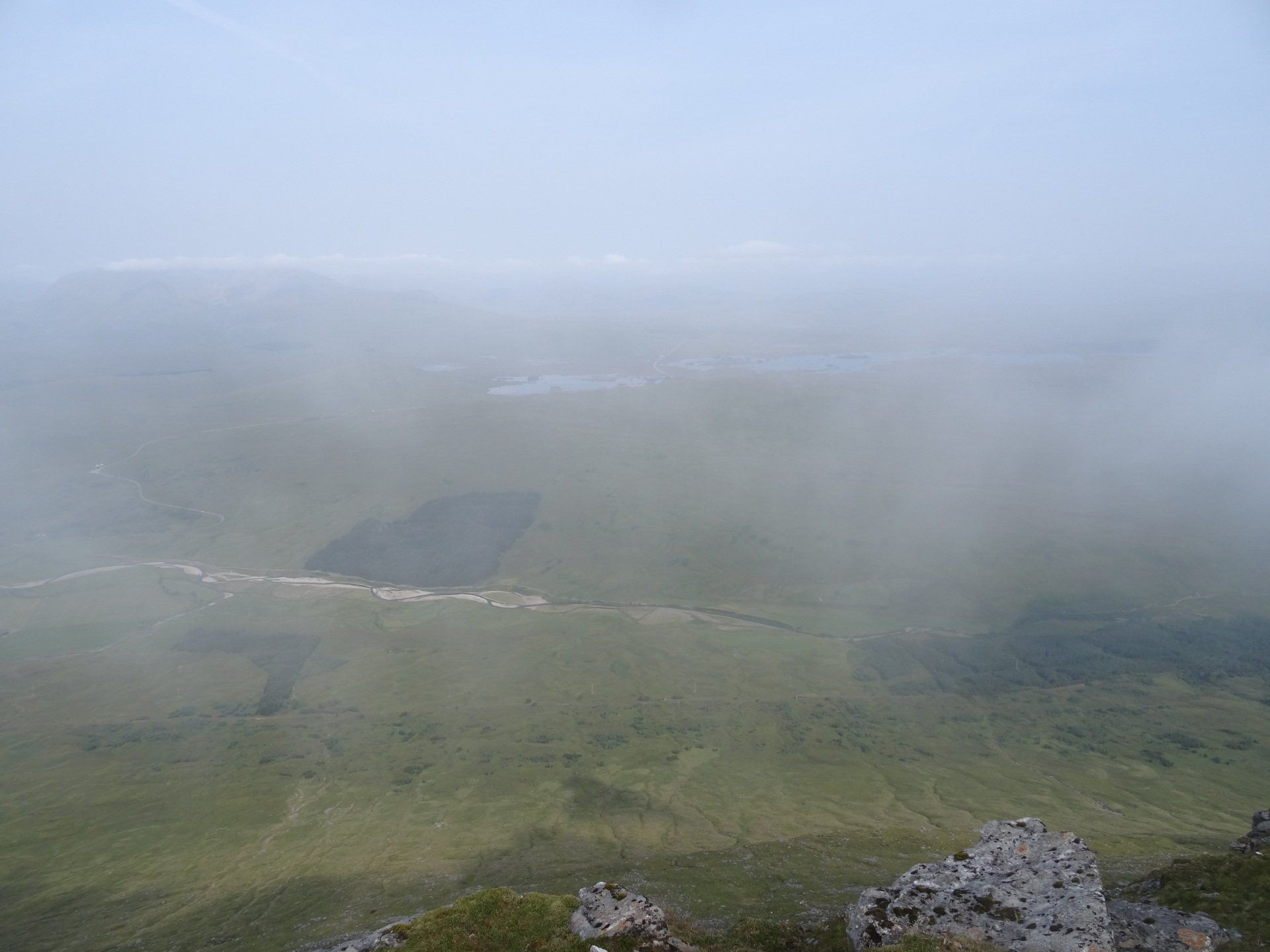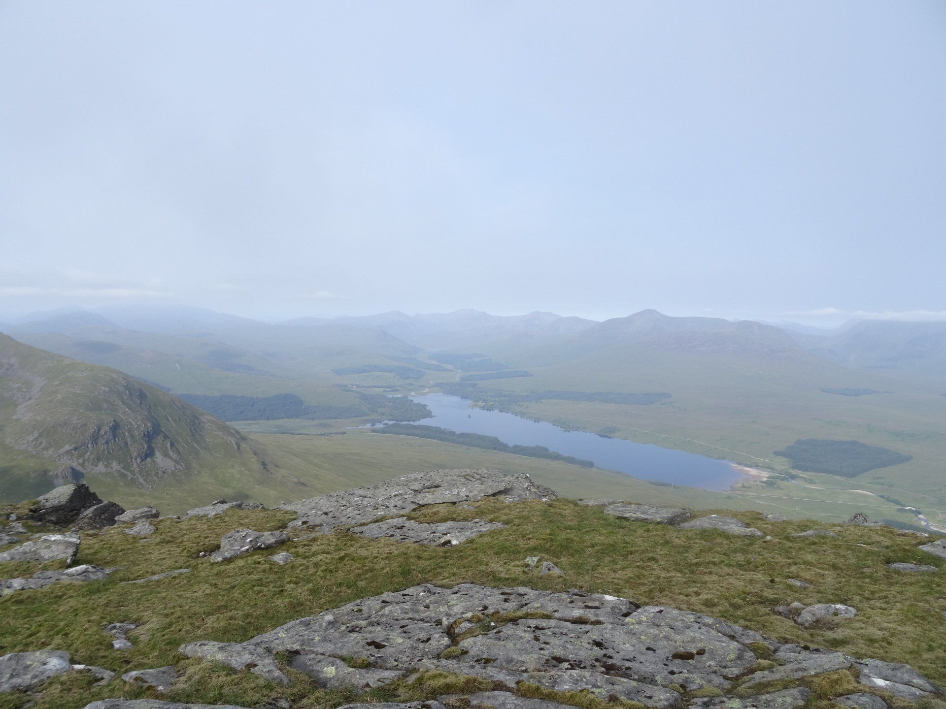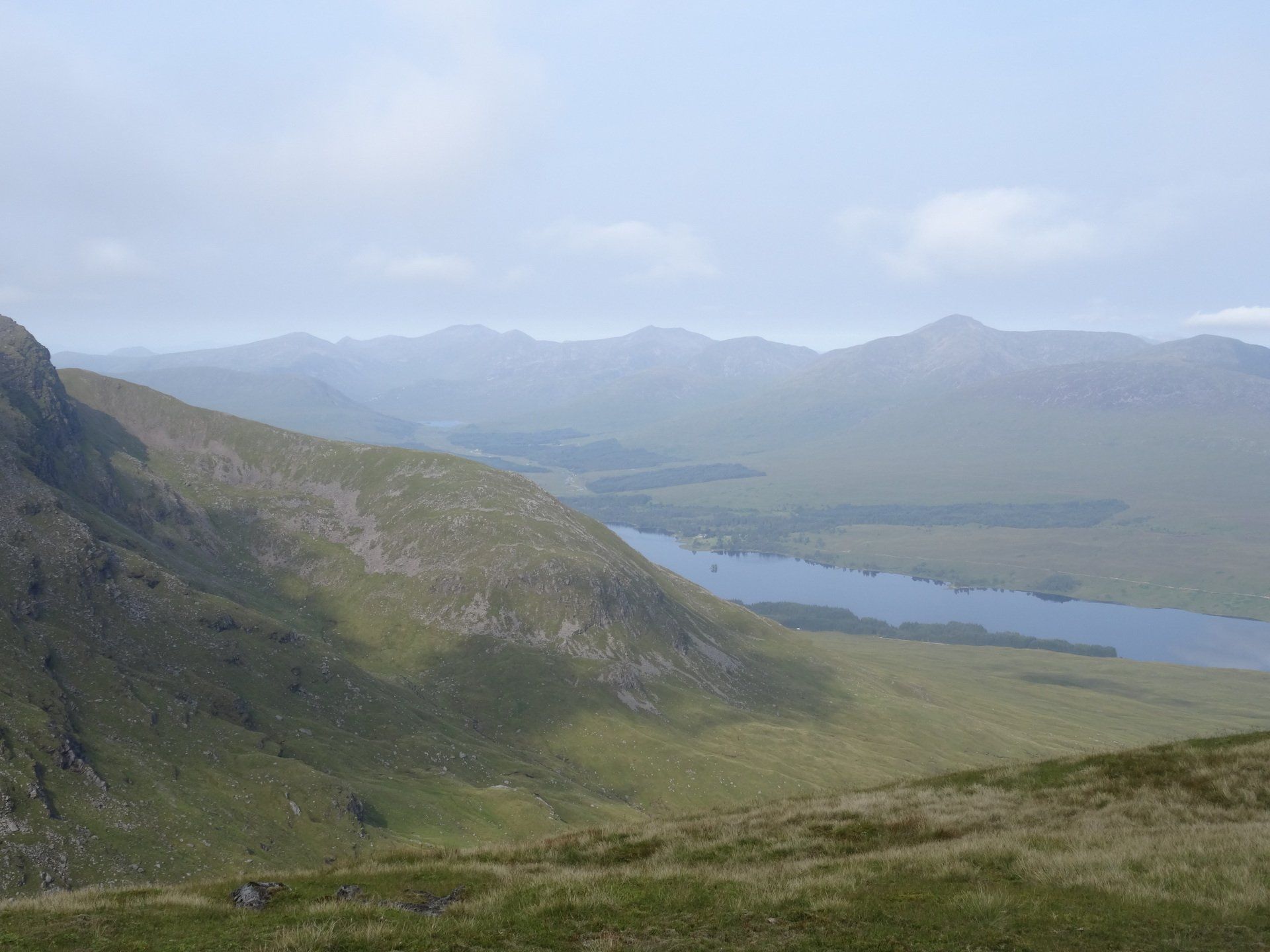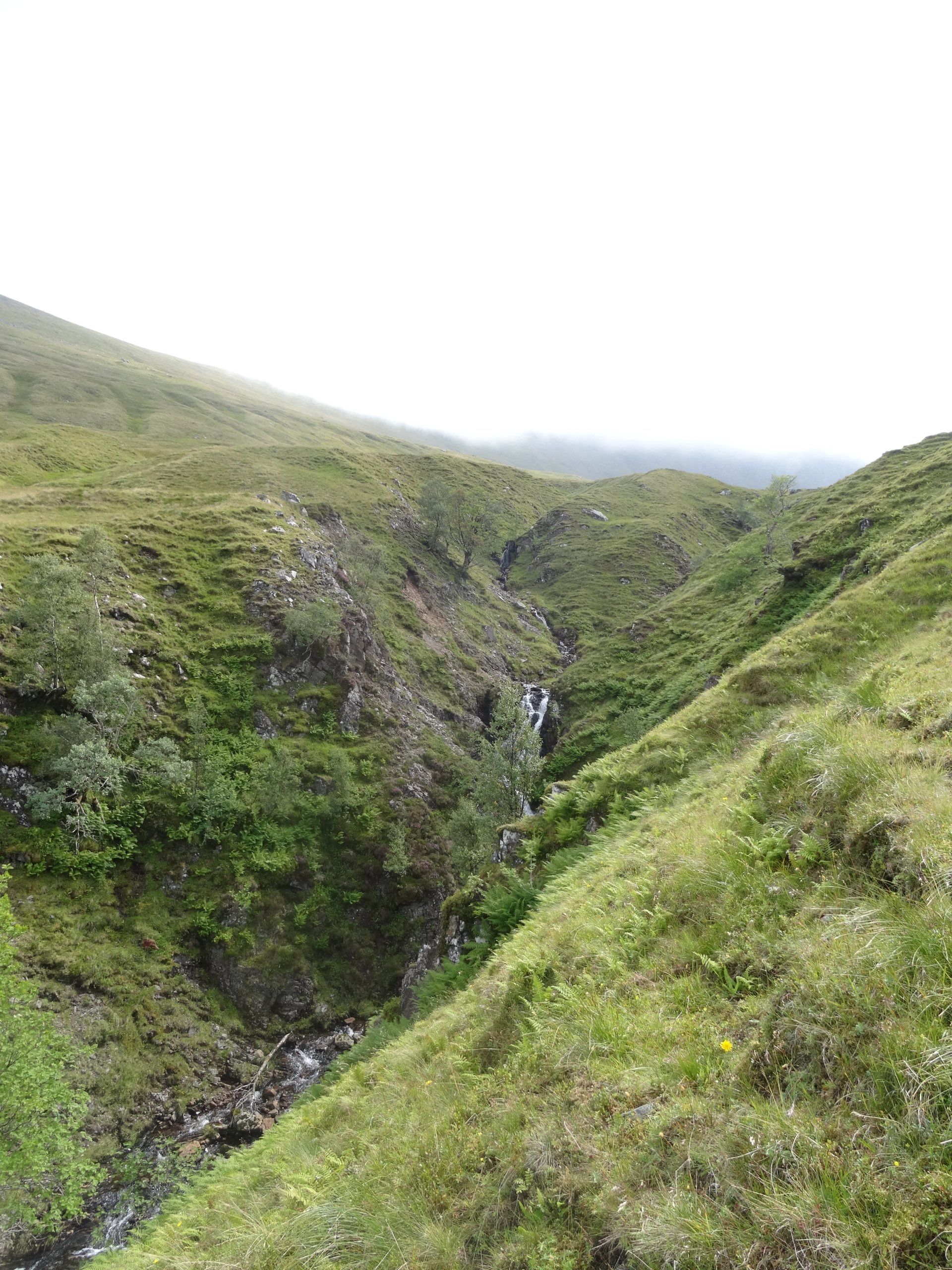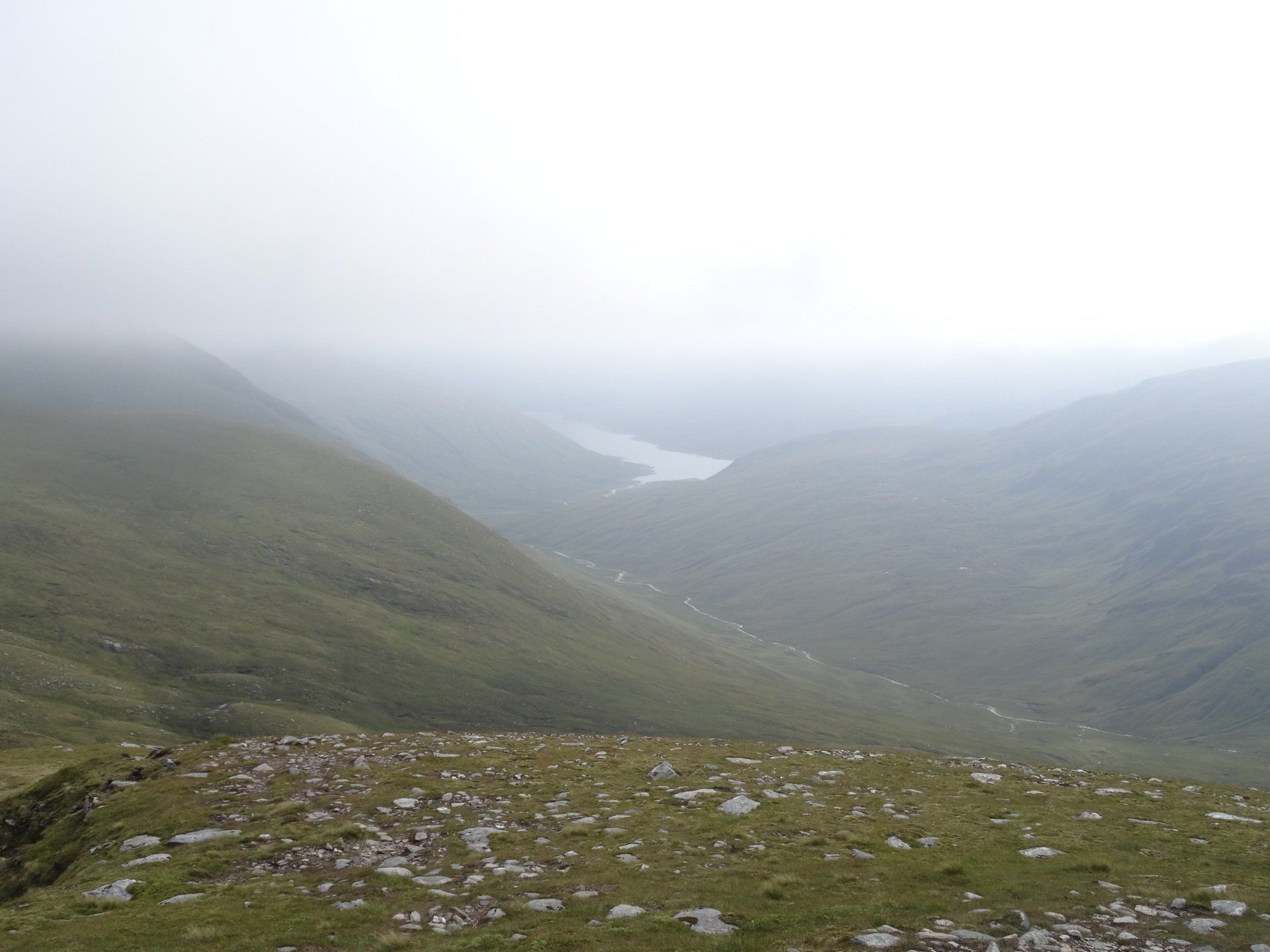 Aug 2020 - Ascent from A82 near Achaladair Farm. Out early and decided to tackle these two in the less common anti-clockwise direction. So glad I did, as the best of the views were in the morning before the cloud descended and clung to the tops. The ascent up through the Coire Achaladair was stunning with the north face of Beinn an Dothaidh and the tumbling waterfalls of the Allt Achaladair as company. Eventually, it led to Coire Daingean, an amazing place with stunning rock scenery. Here the views east to the Loch Lyon munros were fabulous. Then began a fantastic ridge walk that lasted for ages. Initially, there were excellent views across the desolate expanse of Rannoch Moor and towards the Glen Etive tops. The swirling cloud created a wonderful atmosphere as I enjoyed the downs and ups of the ridge, and the precipitous crags of the western edge. Met one of only two other walkers I saw today on the summit of Meall Buidhe before the steep pull up to the summit of Beinn a'Chreachain, my 141st Munro – halfway! Had lunch on the summit in the clag, hoping it would clear. It didn’t, but as I descended the north-eastern ridge, it did, however the haze meant photos were almost impossible to capture what the naked eye saw. Coire an Lochain looked spectacular with its glacial lake and it was pathless hillside for a while before picking up a path alongside the river. A weird tunnel under the railway required stooping before wading through the wonderfully named Water of Tulla – the bridge was down and has been for a while according to reports. So, with soaked boots, the last few miles followed mostly the western edge of the river back to the car. This trek was made more enjoyable by the views up to the mountains I’d just enjoyed. 141/282.