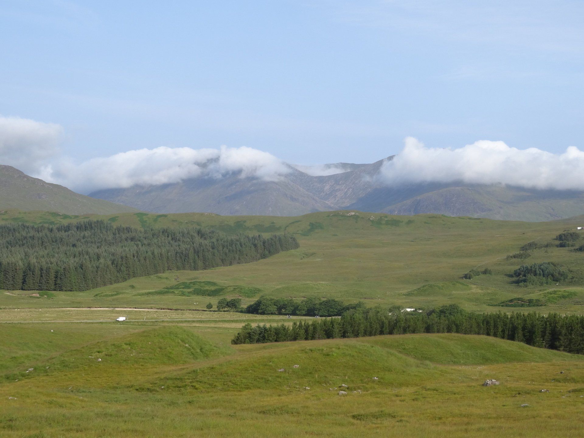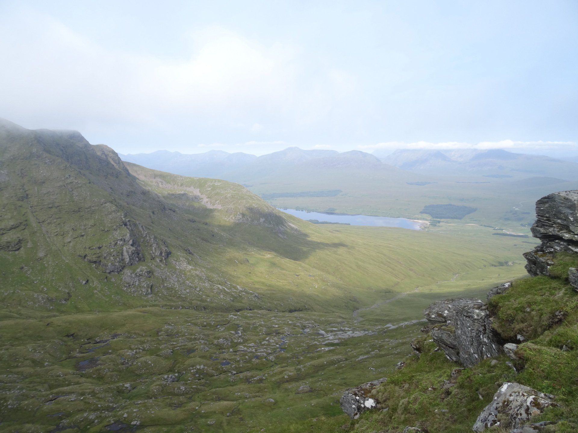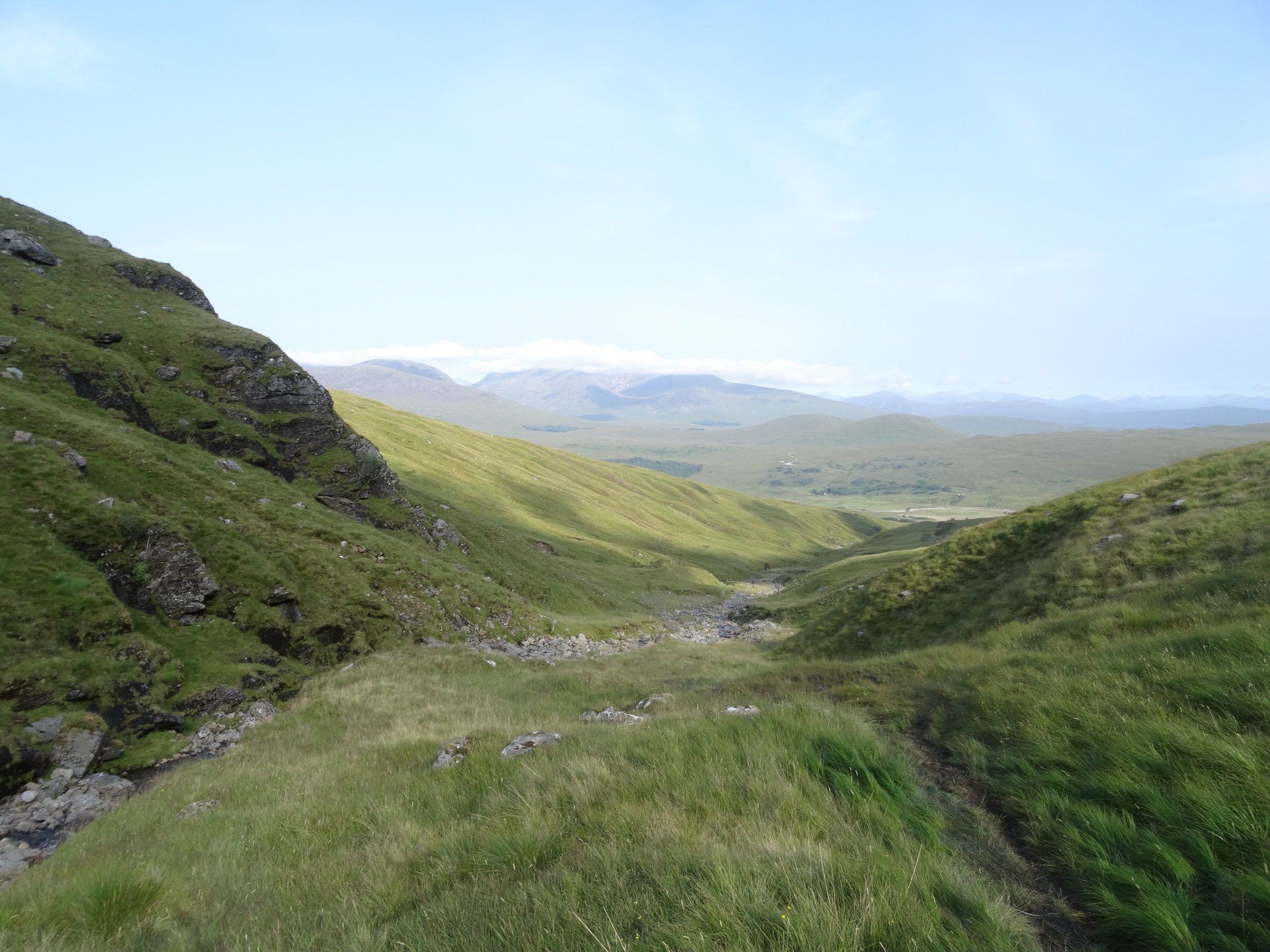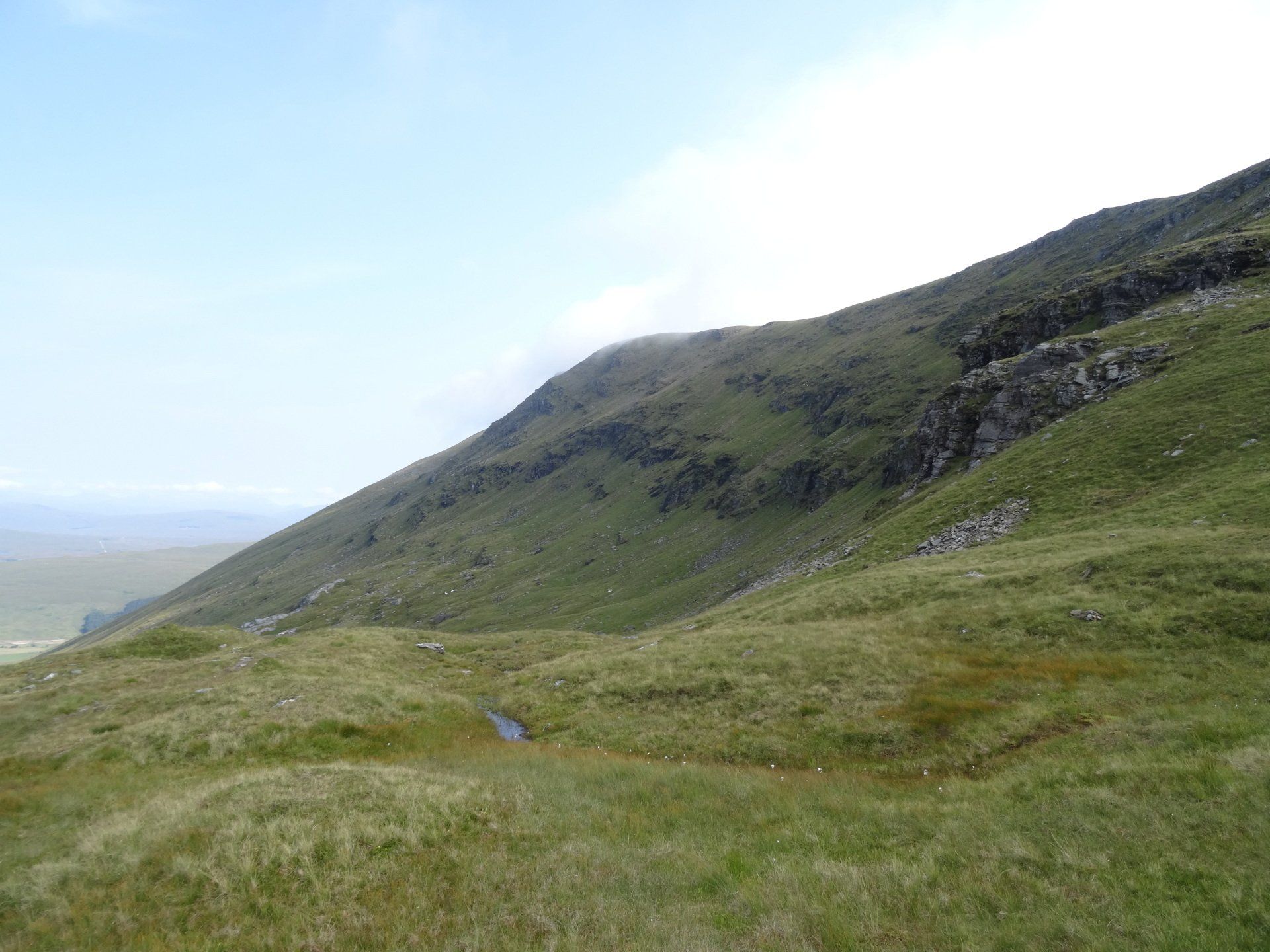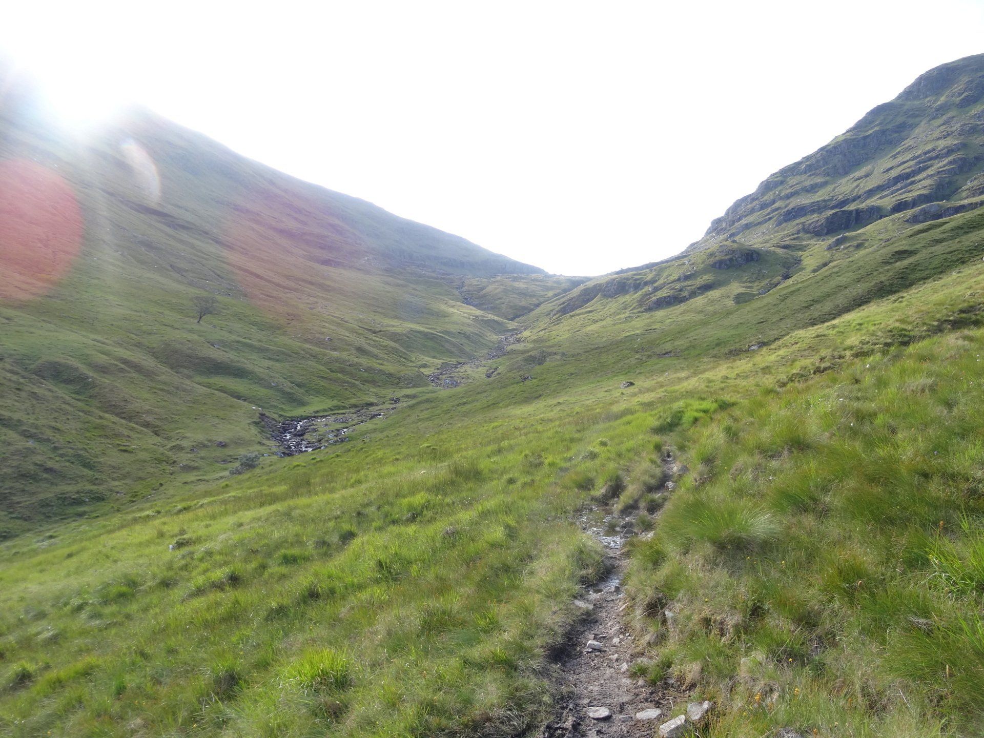 Aug 2020 - Ascent from A82 near Achaladair Farm. Out early and decided to tackle these two in the less common anti-clockwise direction. So glad I did, as the best of the views were in the morning before the cloud descended and clung to the tops. The ascent up through the Coire Achaladair was stunning with the north face of Beinn an Dothaidh and the tumbling waterfalls of the Allt Achaladair as company. Eventually, it led to Coire Daingean, an amazing place with stunning rock scenery. Here the views east to the Loch Lyon munros were fabulous. Then began a fantastic ridge walk that lasted for ages. Initially, there were excellent views across the desolate expanse of Rannoch Moor and towards the Glen Etive tops. The swirling cloud created a wonderful atmosphere as I enjoyed the downs and ups of the ridge, and the precipitous crags of the western edge. Met one of only two other walkers I saw today on the summit of Meall Buidhe before the steep pull up to the summit of Beinn a'Chreachain, my 141st Munro – halfway! Had lunch on the summit in the clag, hoping it would clear. It didn’t, but as I descended the north-eastern ridge, it did, however the haze meant photos were almost impossible to capture what the naked eye saw. Coire an Lochain looked spectacular with its glacial lake and it was pathless hillside for a while before picking up a path alongside the river. A weird tunnel under the railway required stooping before wading through the wonderfully named Water of Tulla – the bridge was down and has been for a while according to reports. So, with soaked boots, the last few miles followed mostly the western edge of the river back to the car. This trek was made more enjoyable by the views up to the mountains I’d just enjoyed. 141/282.