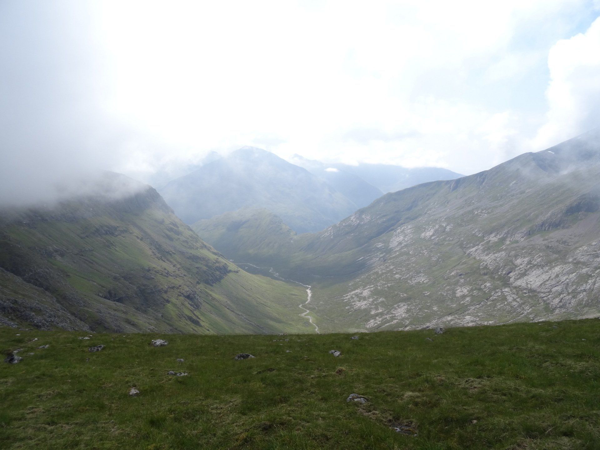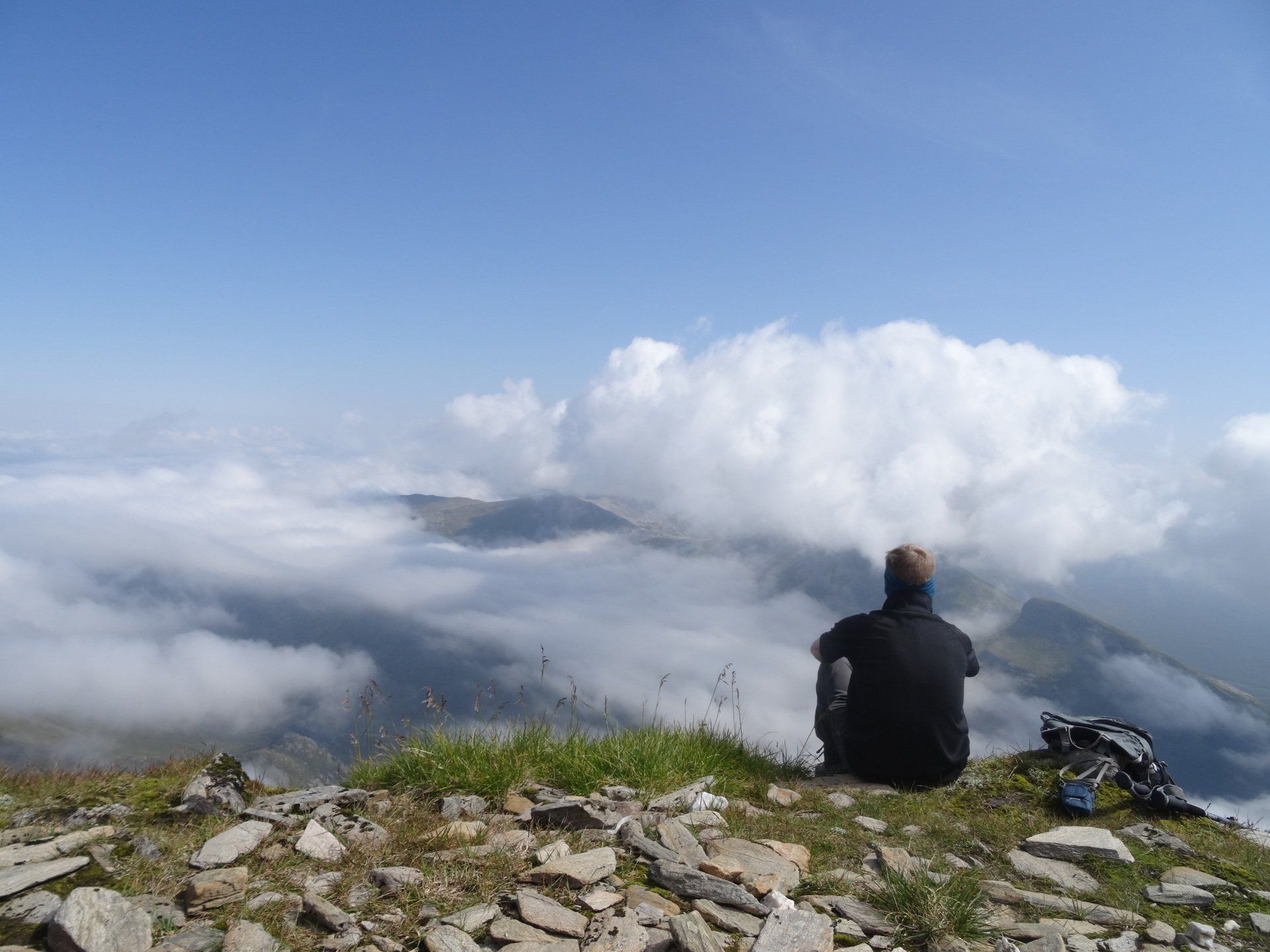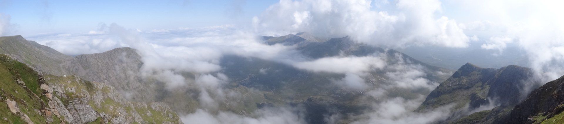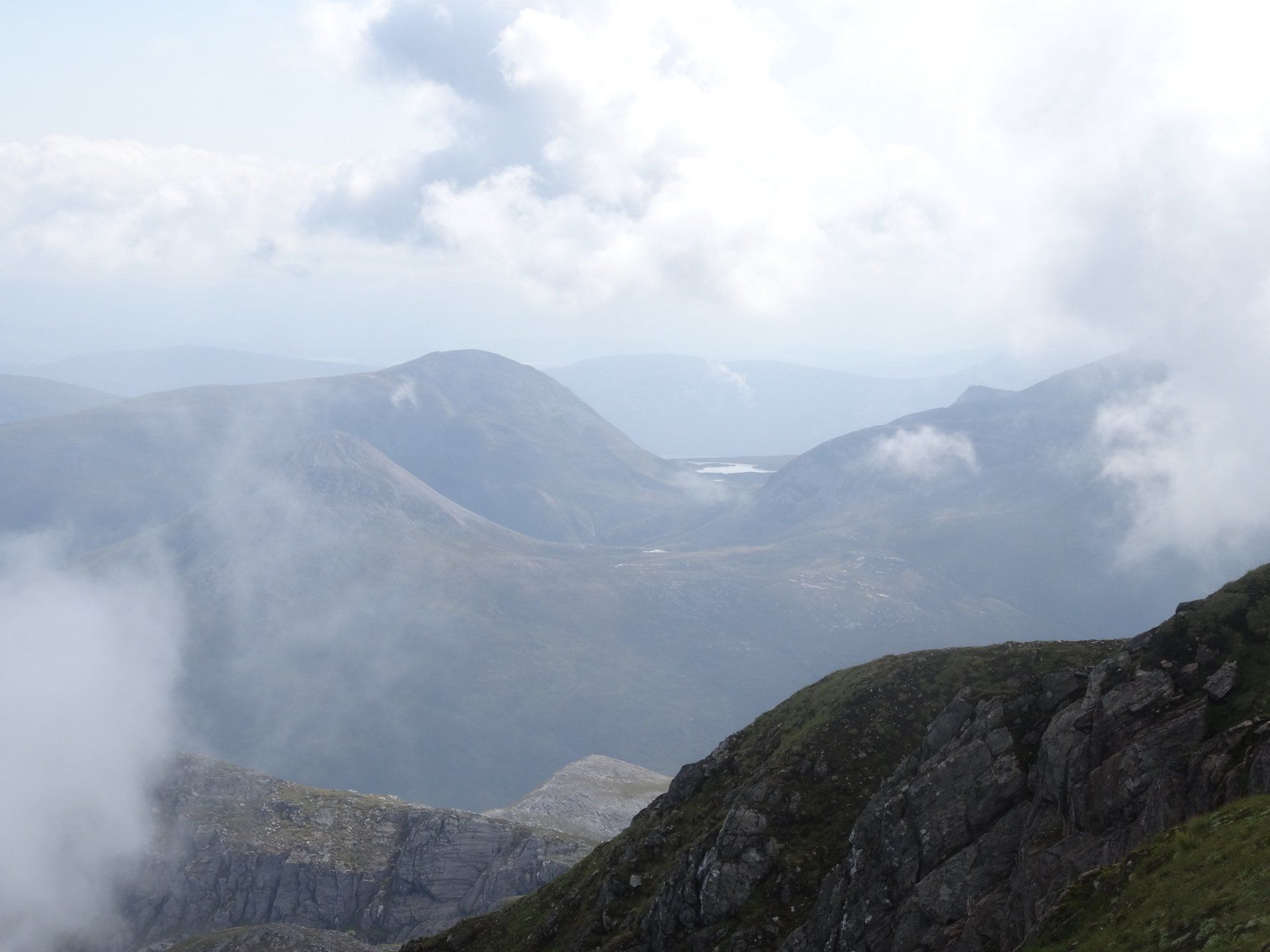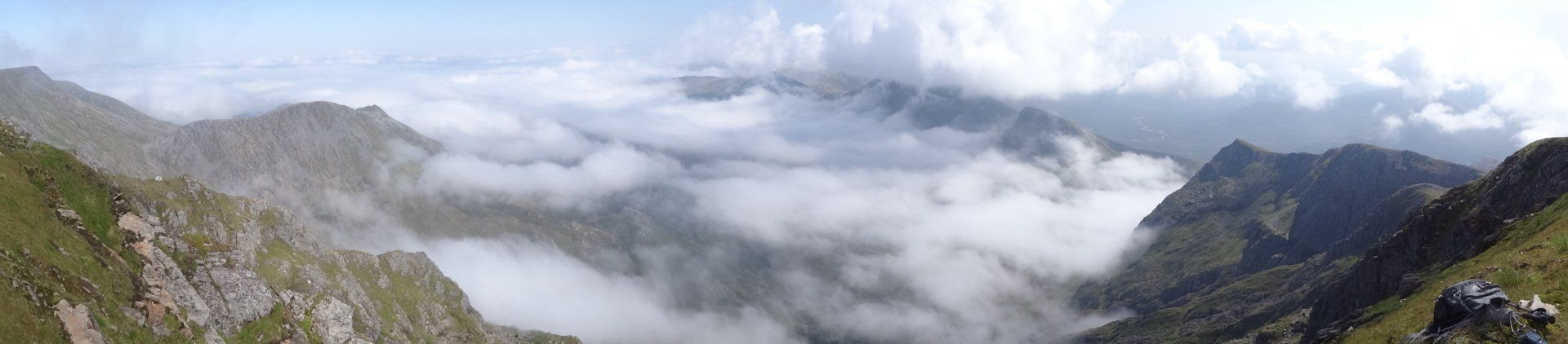 Aug 2020 - Ascent from Nevis Gondola. After yesterday’s epic, an easier walk was in order. I last did these two 4 years ago from Glen Nevis, the purist’s way, so I didn’t feel guilty about using the cable car from the Nevis Range up to 600m. I’m glad I did as, after ascending rapidly to 1200m, I was greeted by a glorious partial inversion. In fact, the clouds were spectacular throughout the walk, providing ever-changing vistas. Sat and had a snack whilst they swirled around Carn Mor Dearg and Ben Nevis itself. The sun was brutal today and I applied sun cream several times, absolutely no shade up at this height. Spent ages on the summit of Aonach Beag but had company – a Snow bunting that was amazingly trusting. Tried to coax it to eat from my hand and almost succeeded. It ate its fill of biscuit crumbs that I offered, and then would take some off before returning for more. Obviously, some family nearby. Extremely cute. The views of the Grey Corries were fab, and I could see across upper Glen Nevis to yesterday’s summits.