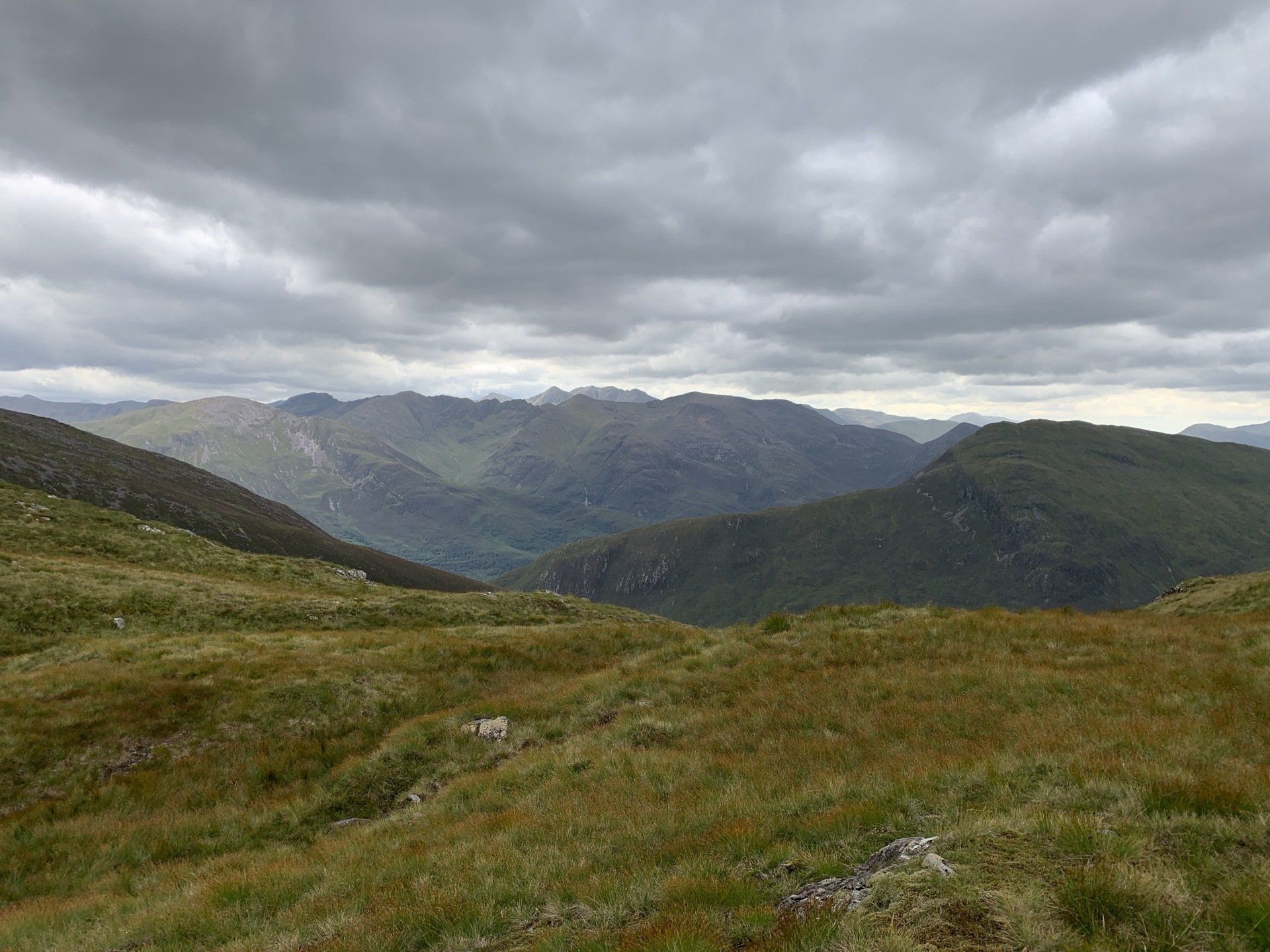 Aug 2021 - (with Gemma) Ascent from Polldubh Bridge. Last time I did this one, the clouds were down so I was eager to repeat part of last time's walk. Stob Ban is a fine, shapely peak with a great ridge. Fantastic views over the Mamores, the Glen Coe peaks and Ben Nevis.