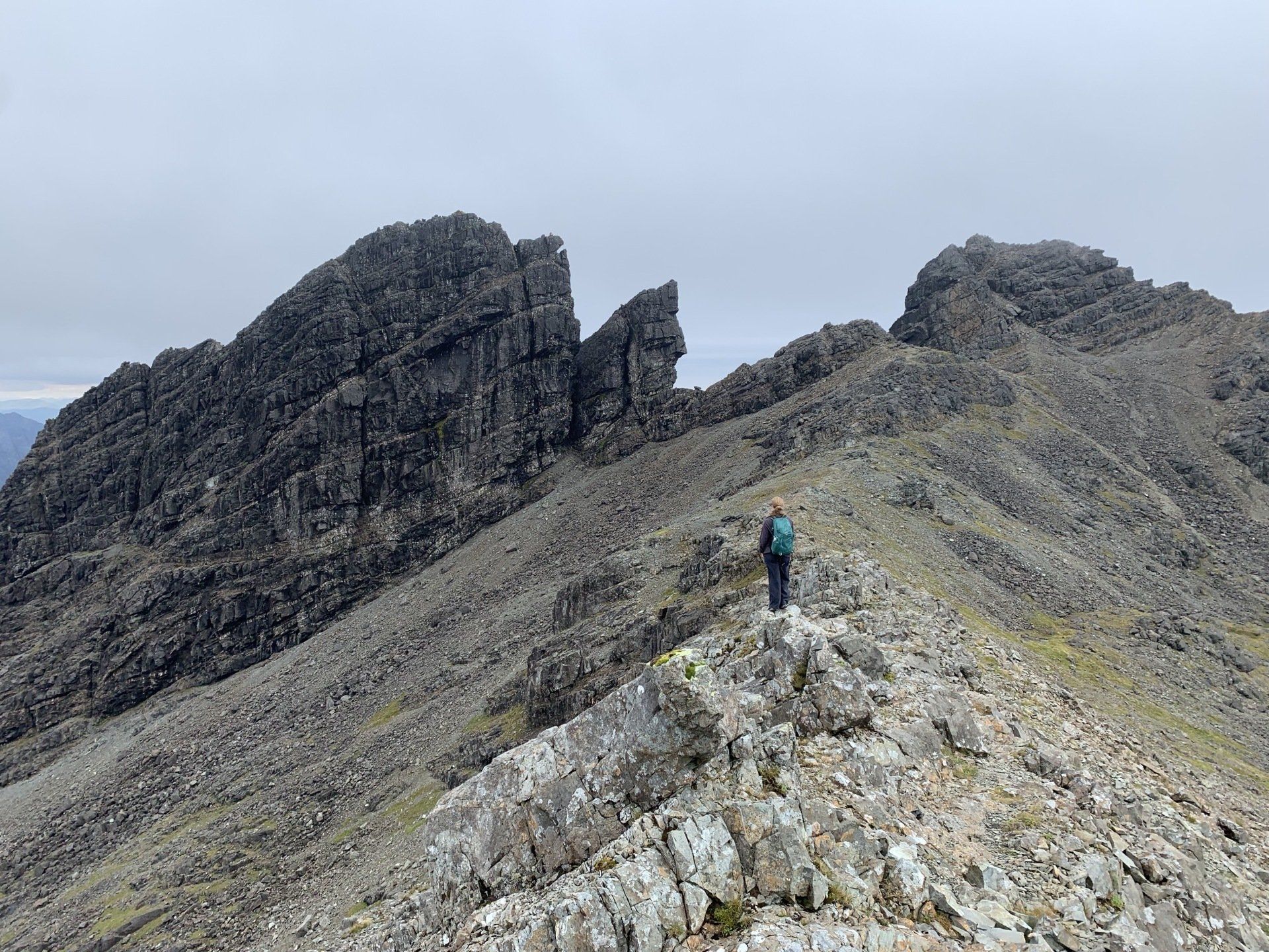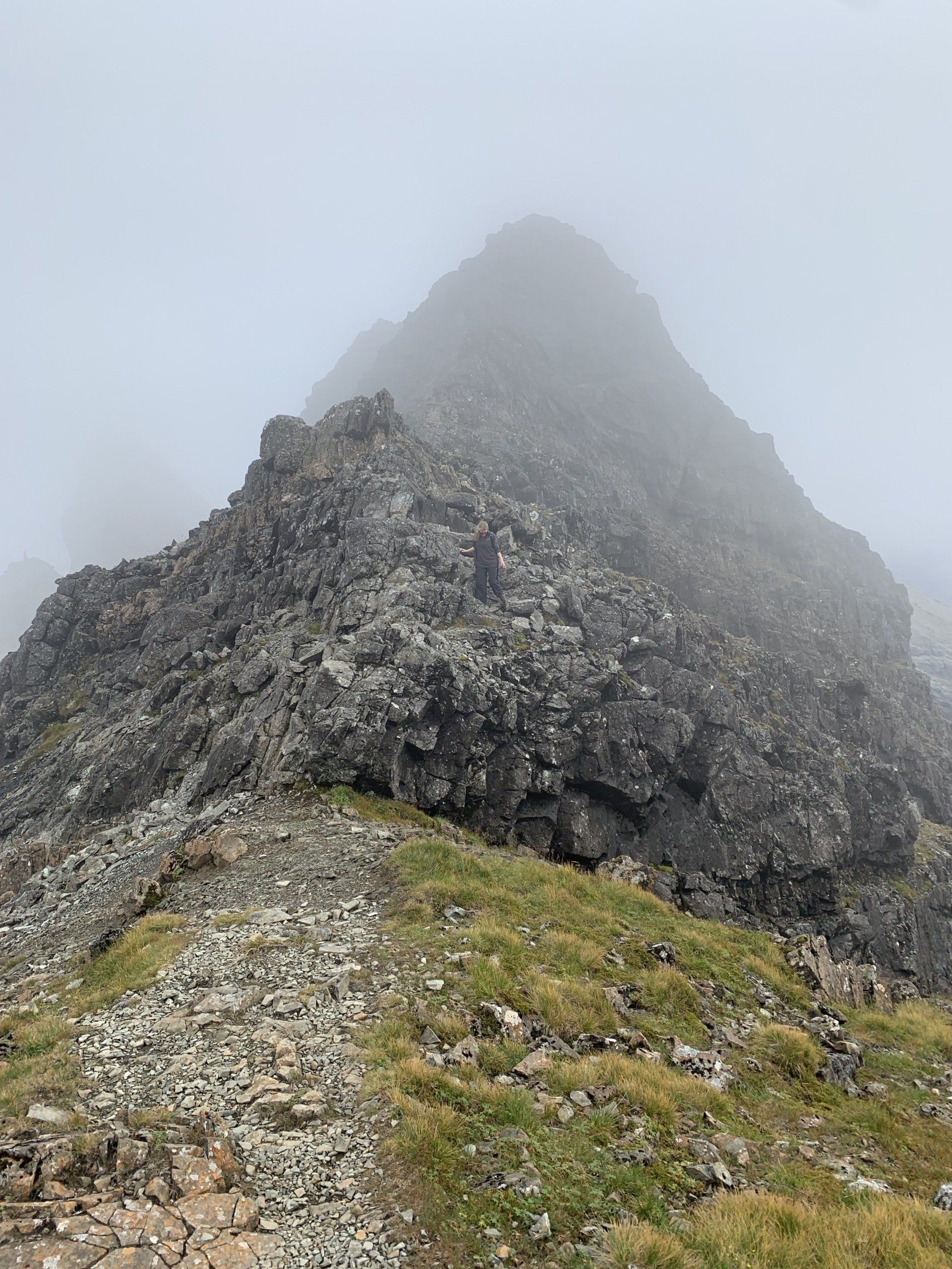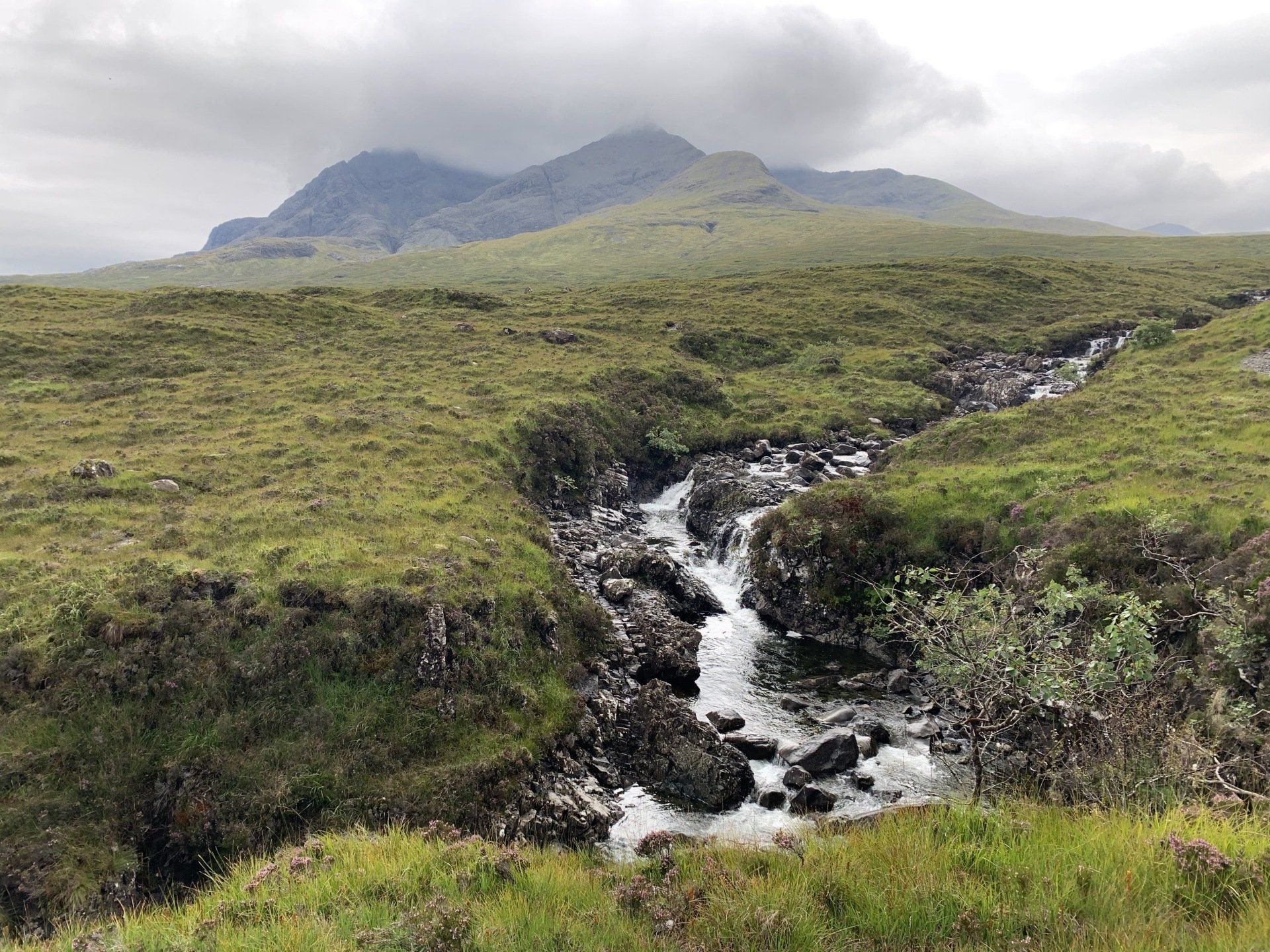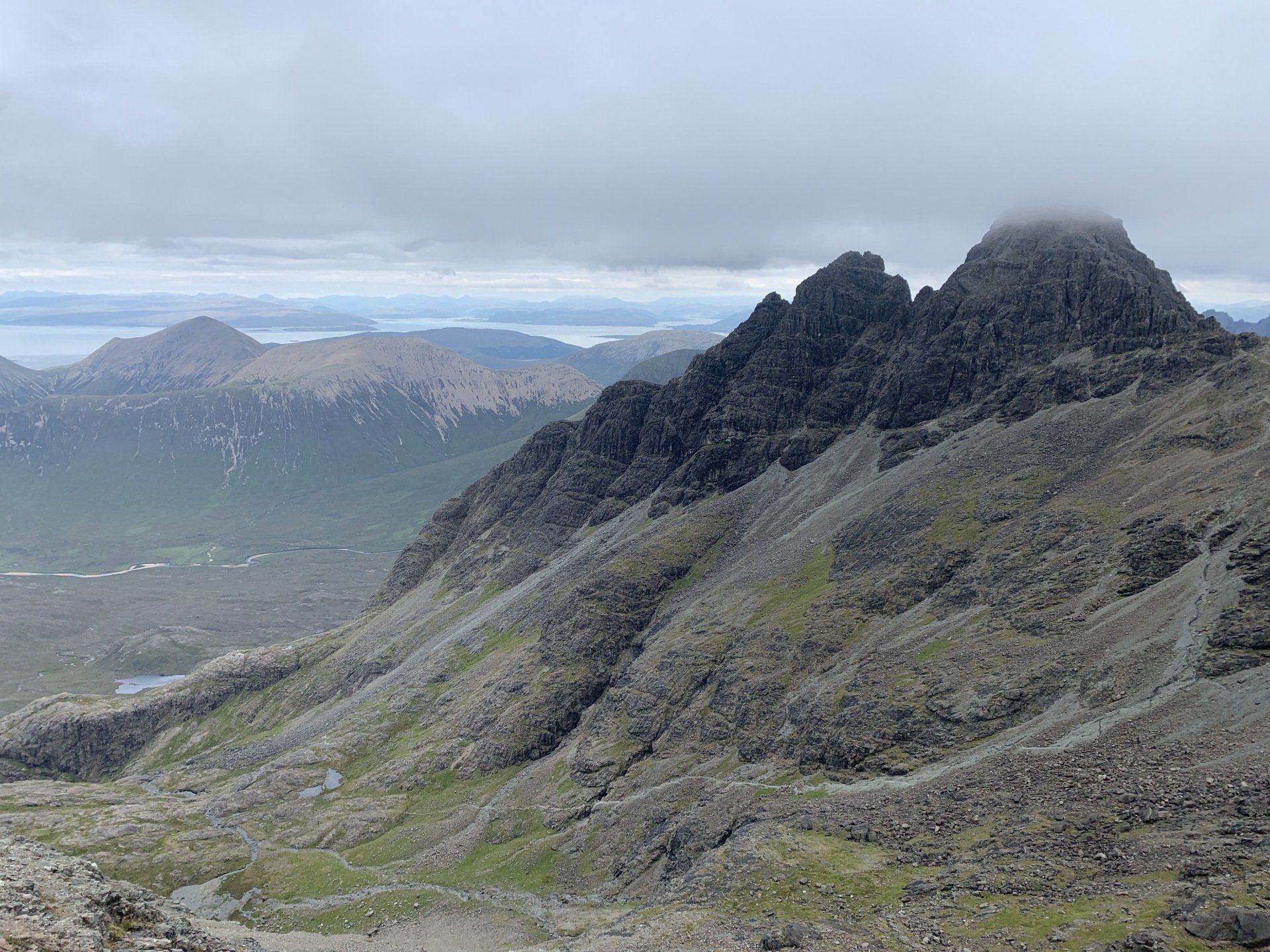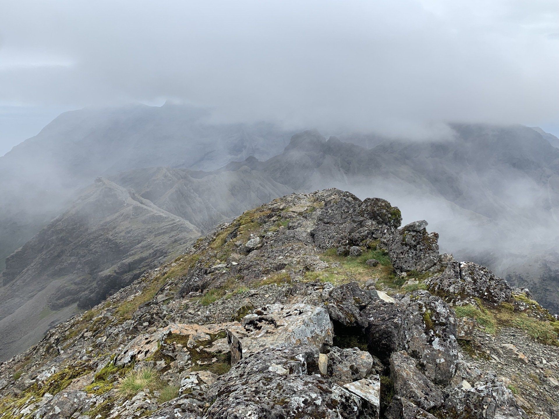 Aug 2021 - (with Gemma) Ascent from Sligachan. Sensational walk and it turned out great on the summits, where we spent over an hour. A fantastic walk in was followed by the ascent through Fionn Choire, a glorious place to be. The cloud cleared from the summit of Bruach na Frithe offering excellent views along the Cuillin ridge and across the deep expanse to Bla Bheinn. Some enjoyable scrambling down from the summit of Sgurr a Bhasteir with the Red Cuillin looking magnificent and views over the whole of Skye and to the Outer Hebrides.