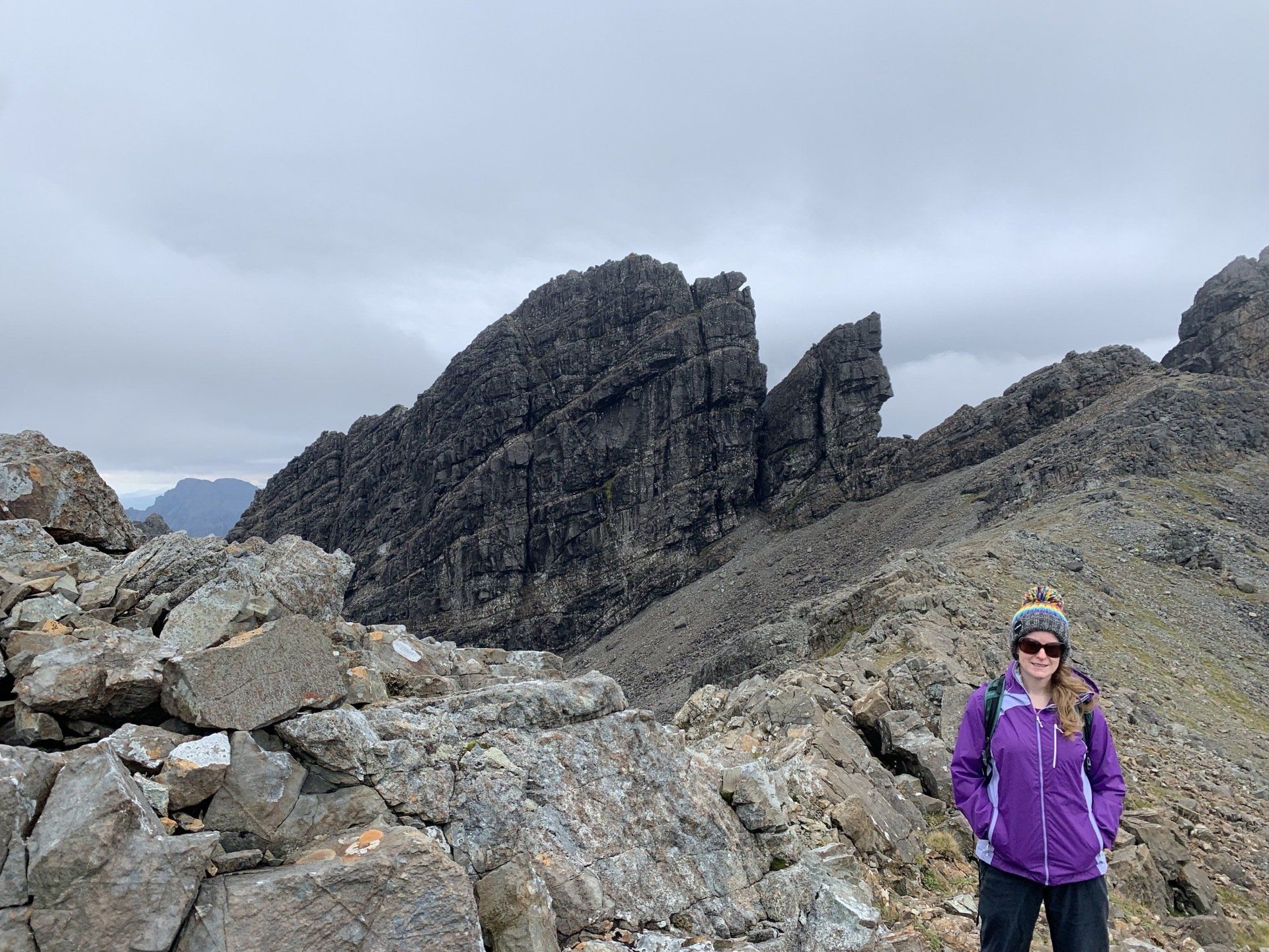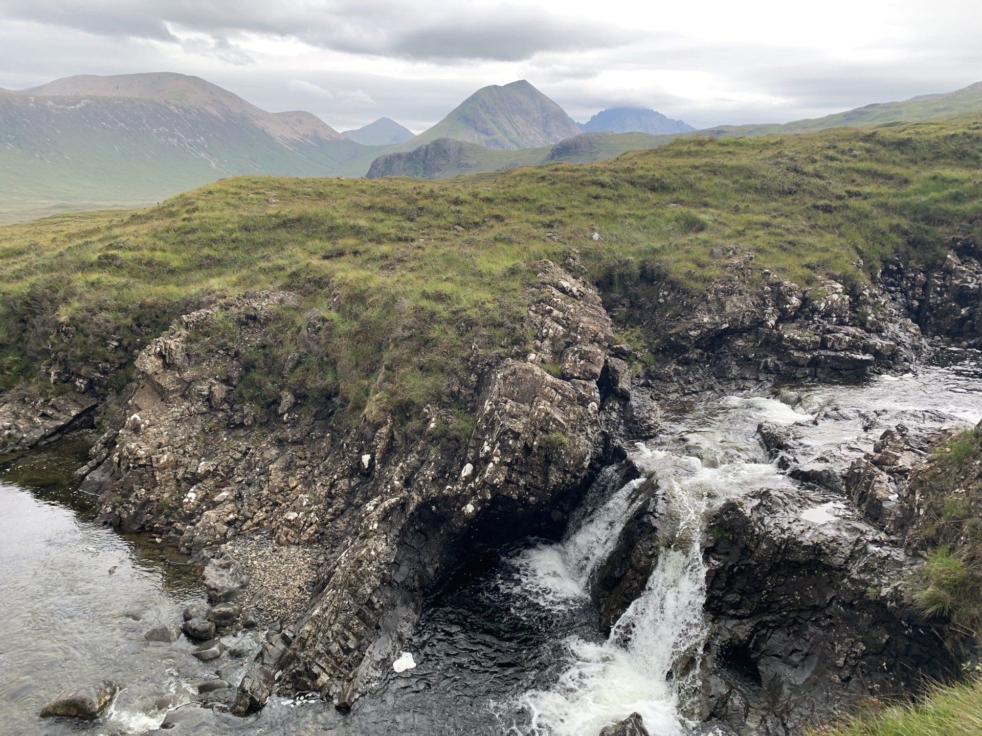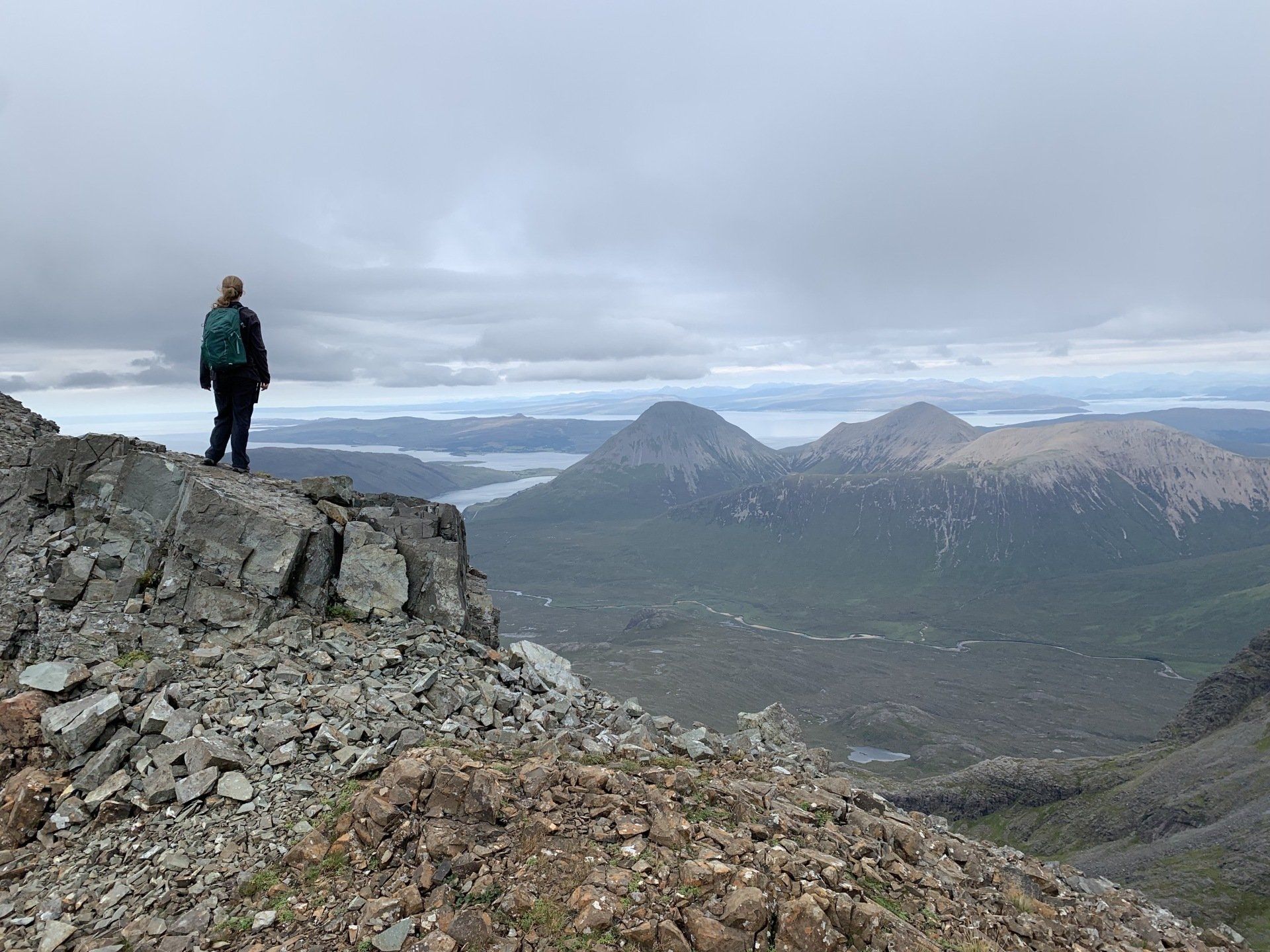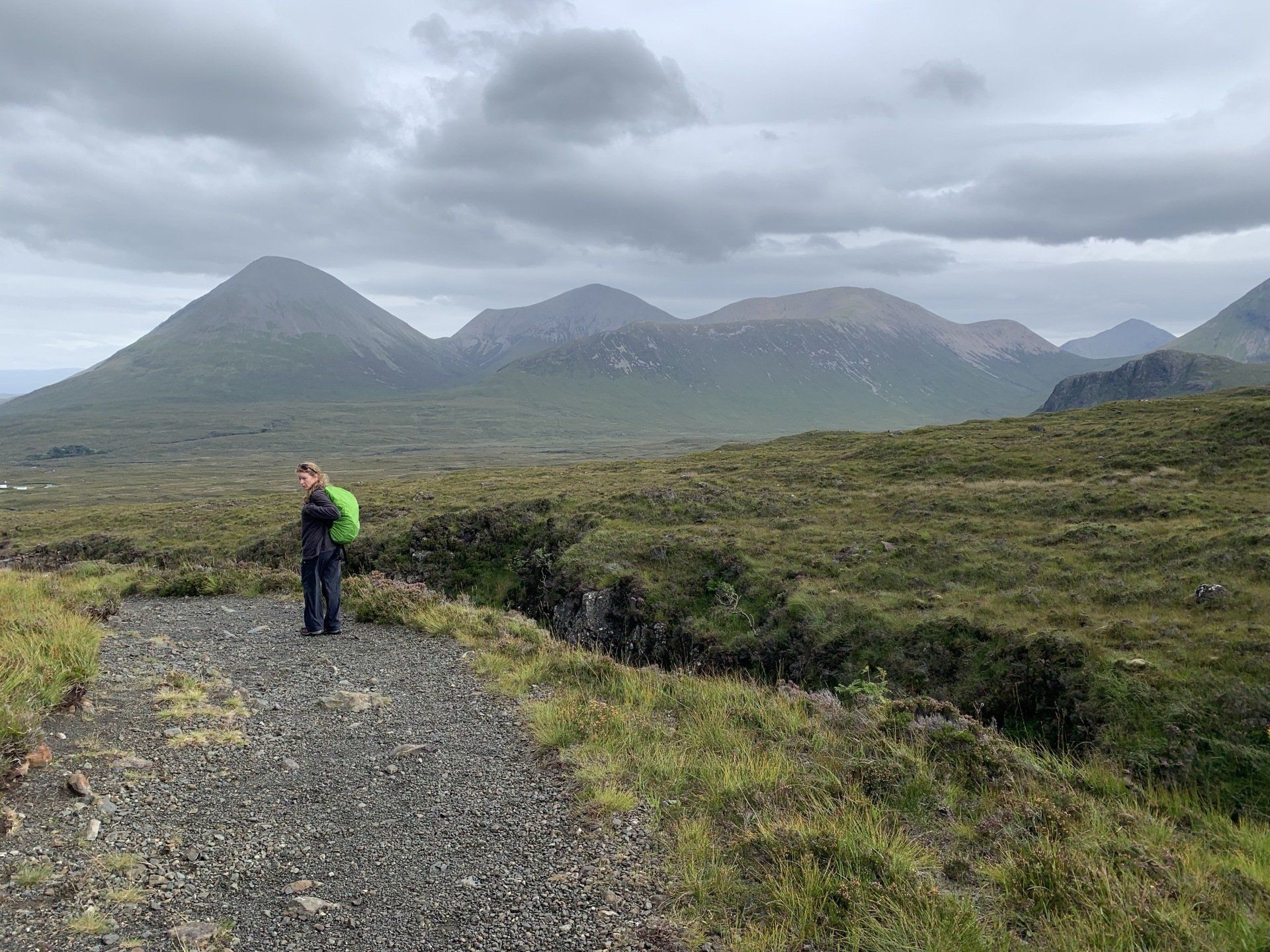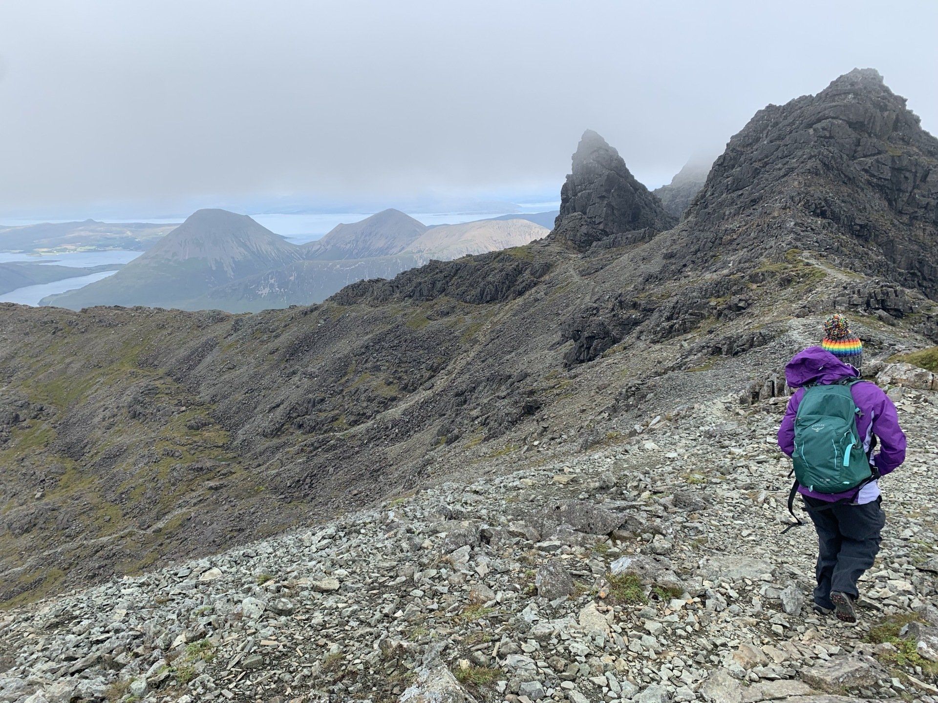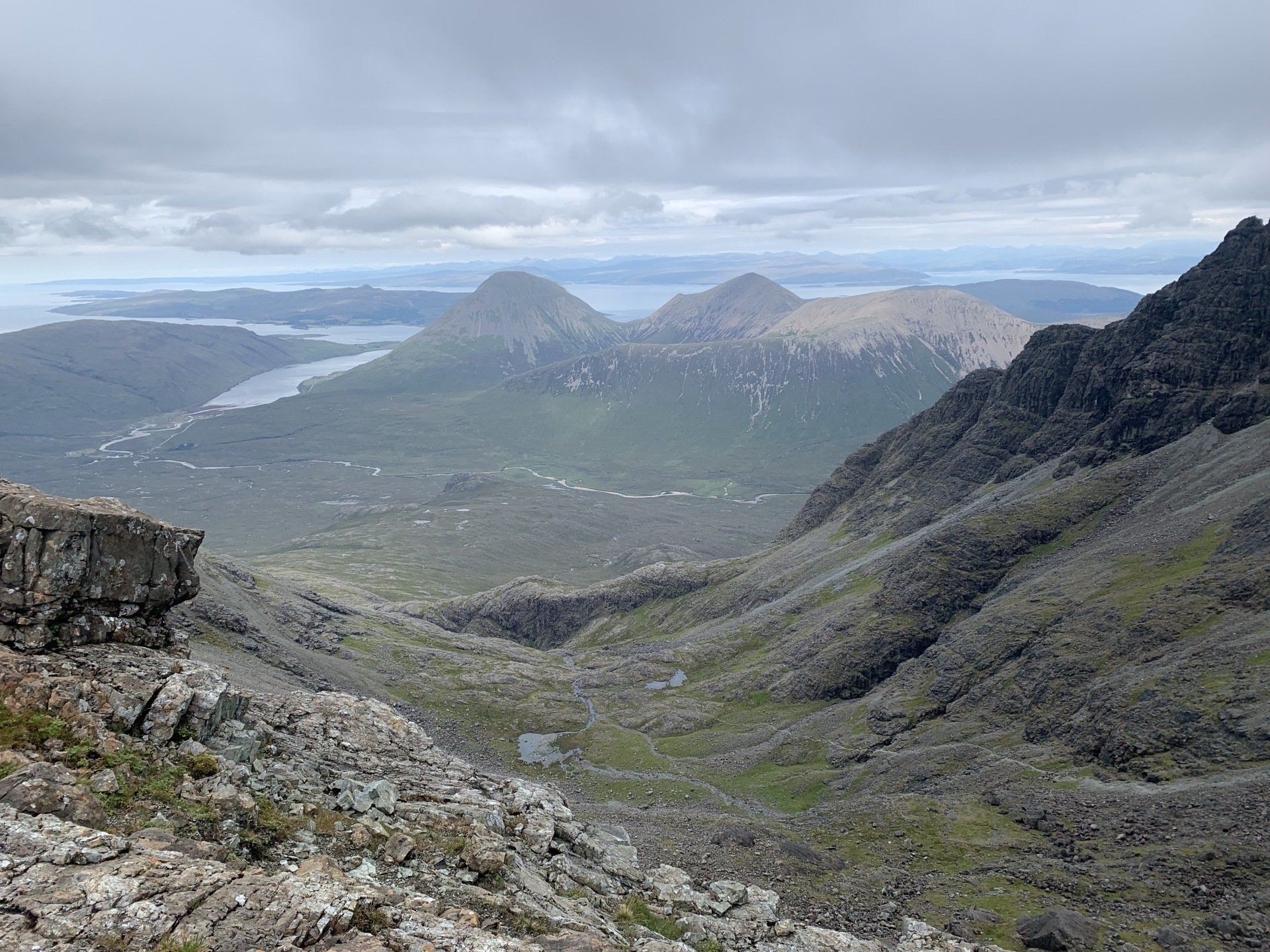 Aug 2021 - (with Gemma) Ascent from Sligachan. Sensational walk and it turned out great on the summits, where we spent over an hour. A fantastic walk in was followed by the ascent through Fionn Choire, a glorious place to be. The cloud cleared from the summit of Bruach na Frithe offering excellent views along the Cuillin ridge and across the deep expanse to Bla Bheinn. Some enjoyable scrambling down from the summit of Sgurr a Bhasteir with the Red Cuillin looking magnificent and views over the whole of Skye and to the Outer Hebrides.