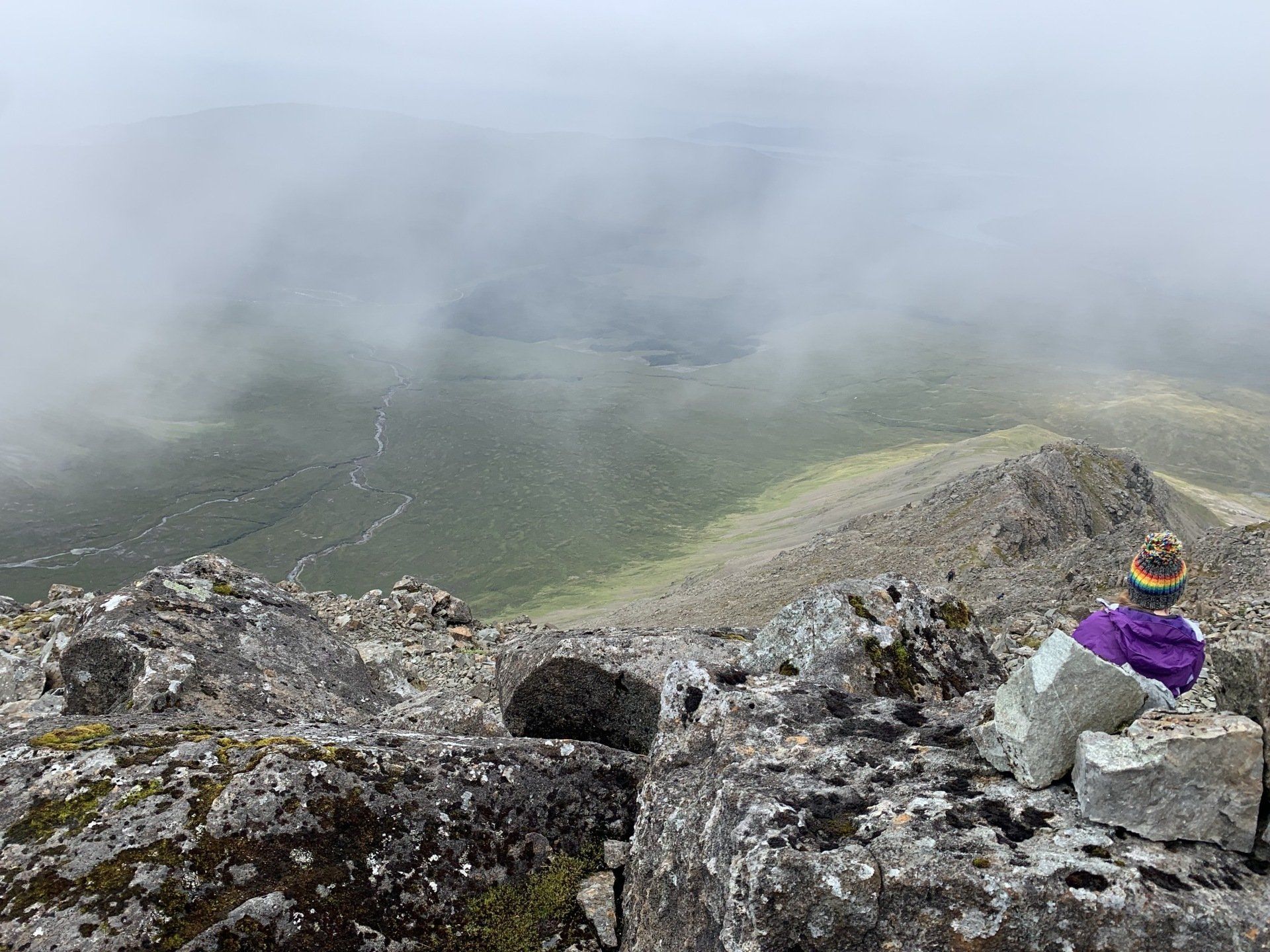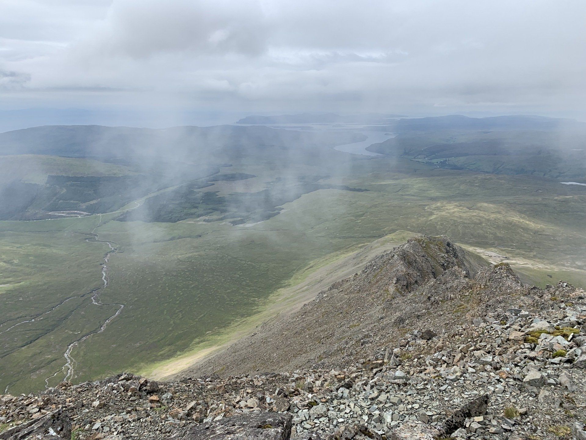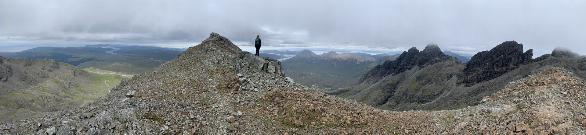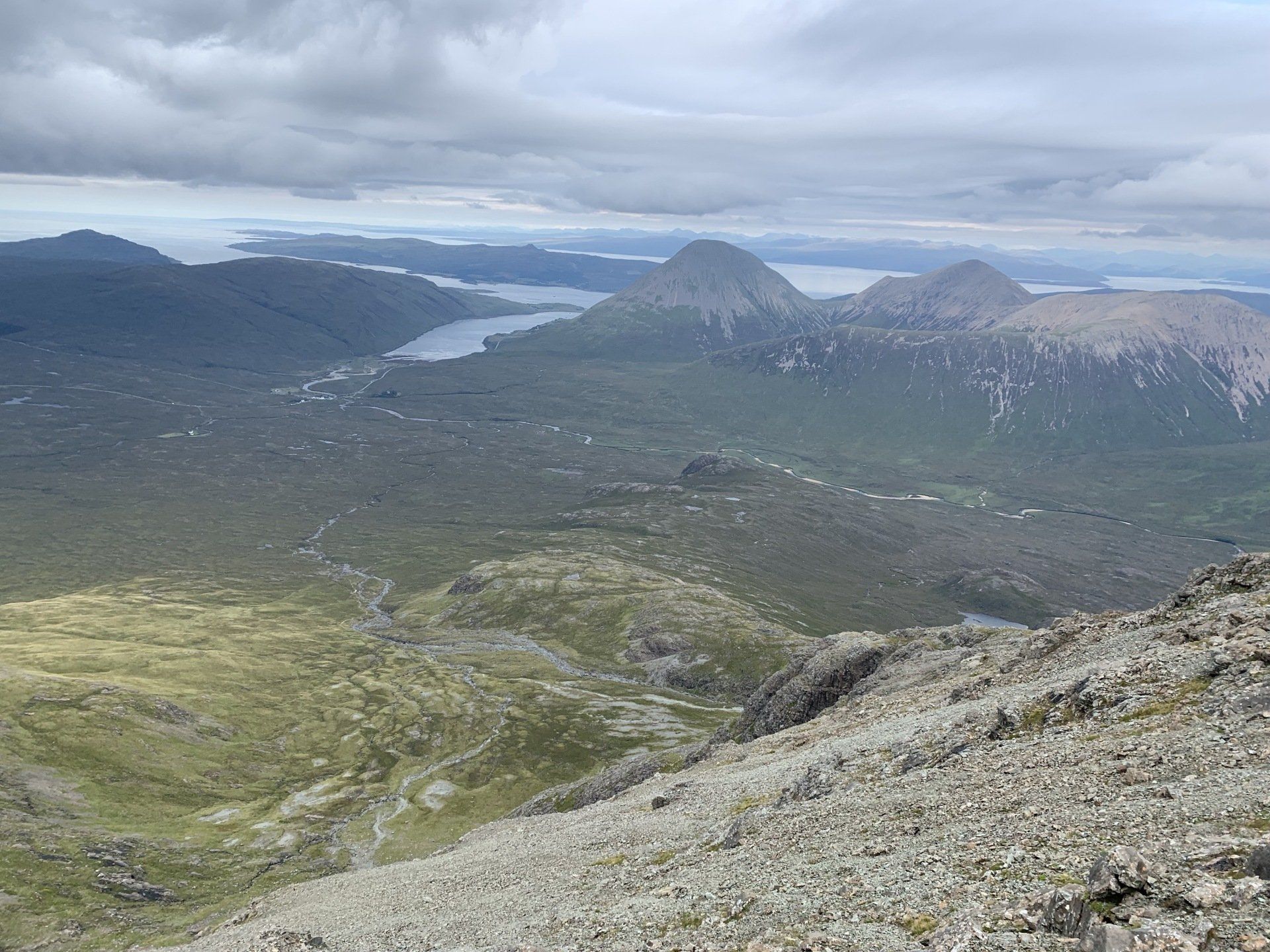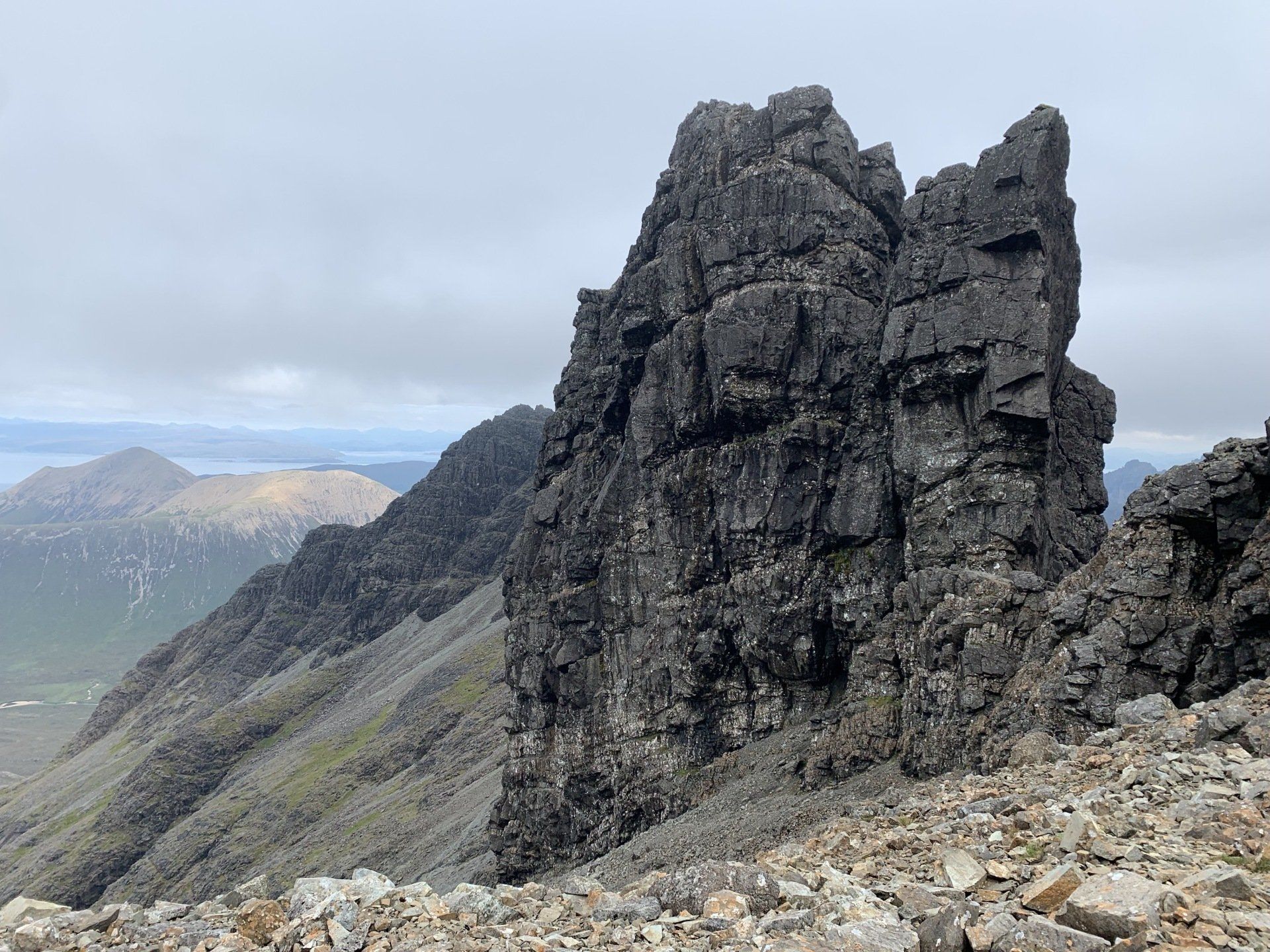 Aug 2021 - (with Gemma) Ascent from Sligachan. Sensational walk and it turned out great on the summits, where we spent over an hour. A fantastic walk in was followed by the ascent through Fionn Choire, a glorious place to be. The cloud cleared from the summit of Bruach na Frithe offering excellent views along the Cuillin ridge and across the deep expanse to Bla Bheinn. Some enjoyable scrambling down from the summit of Sgurr a Bhasteir with the Red Cuillin looking magnificent and views over the whole of Skye and to the Outer Hebrides.
