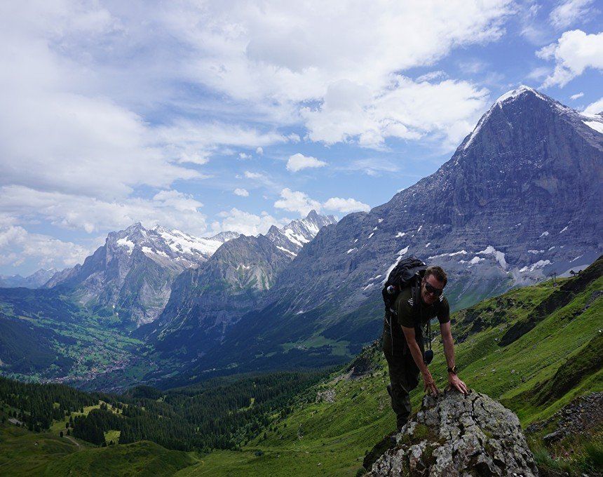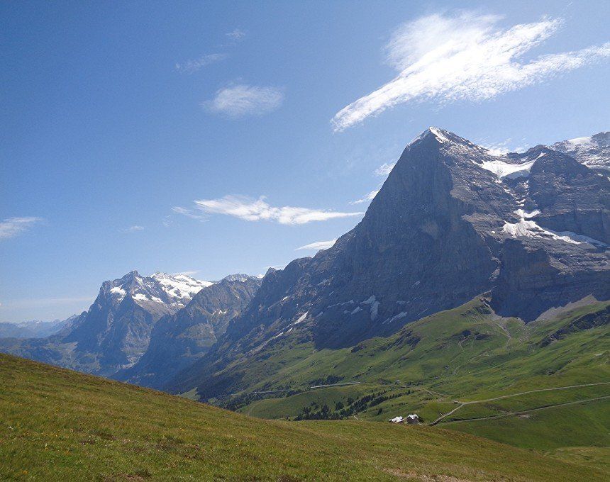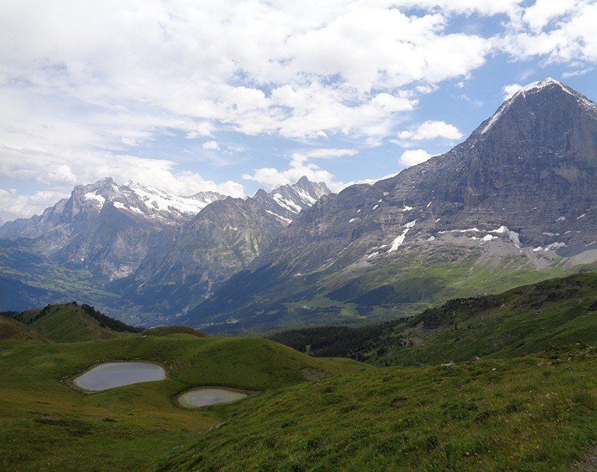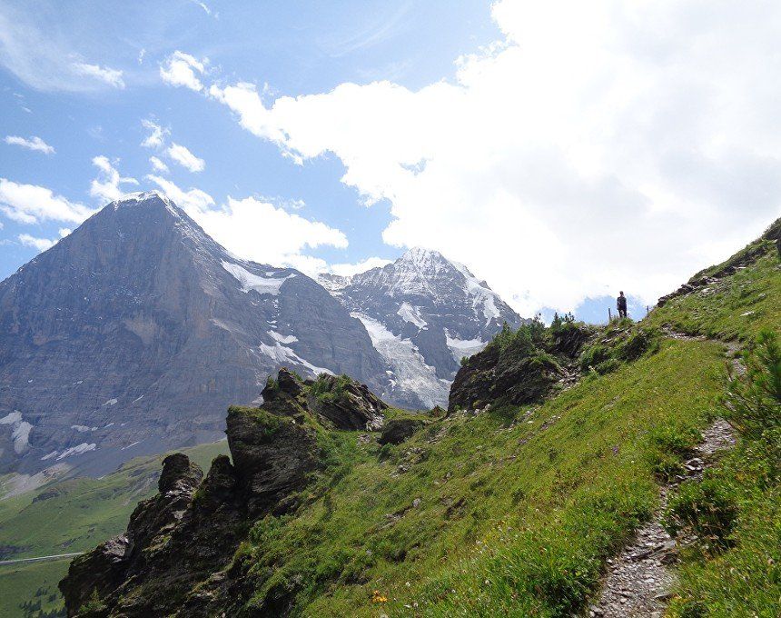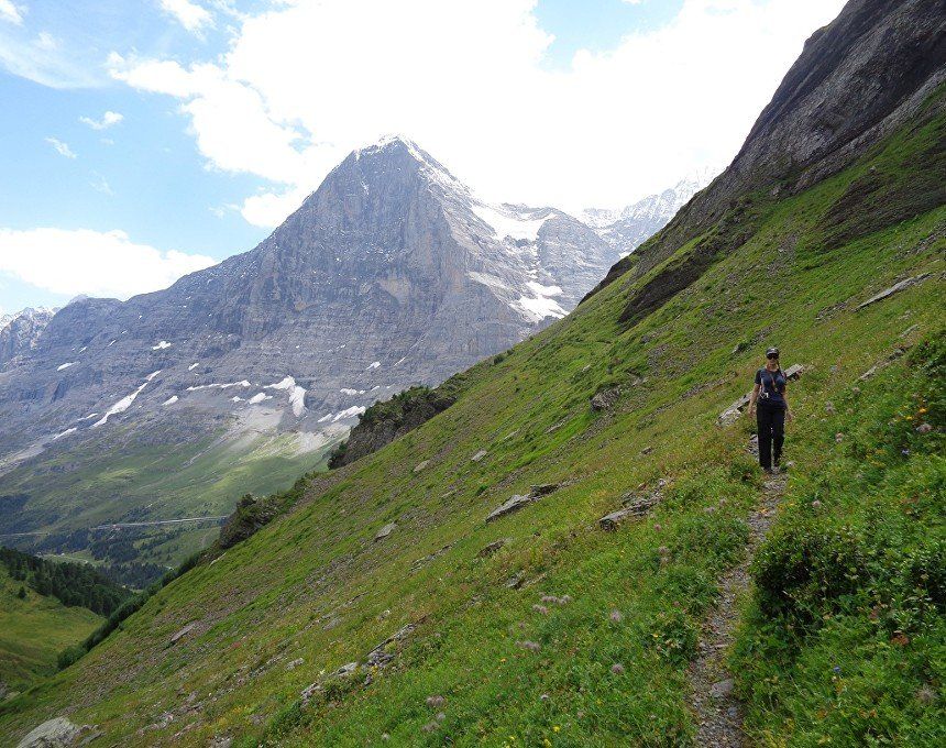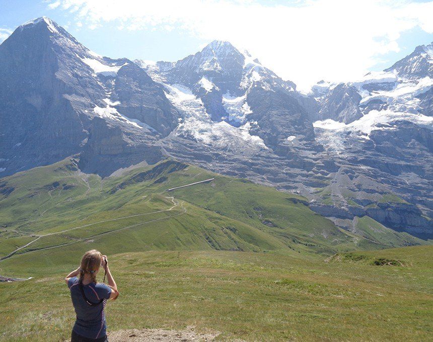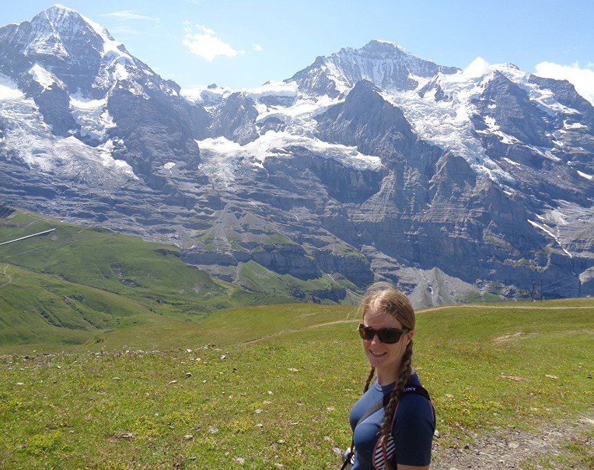 July 2017 - (with Gemma) Ascent from Kleine Scheidegg. We travelled today to the 'top of Europe', the Jungfraujoch, an excellent train journey, the last 40 minutes of which takes you steeply in a tunnel through the Eiger to a height of 3550m. Photos of this are after the walk pics. After this we returned to the start point of our hike, at Kleine Scheidegg. We ascended Lauberhorn first before descending to join the main path to Männlichen.This panoramic route offers the reward of nearly constant views of the Eiger, Mönch, and Jungfrau, plus commanding views of the Grindelwald Valley. Fantastic hike and a relaxing cable car ride down to Grindelwald. An absolutely sweltering day.