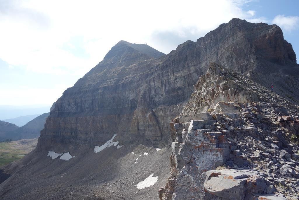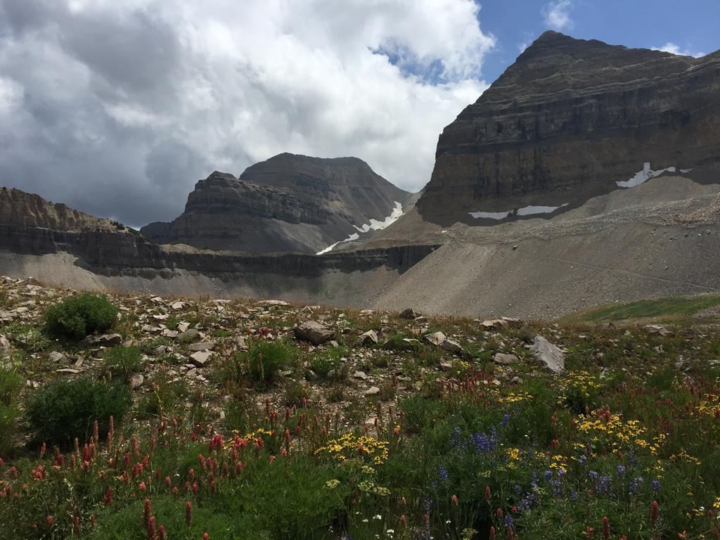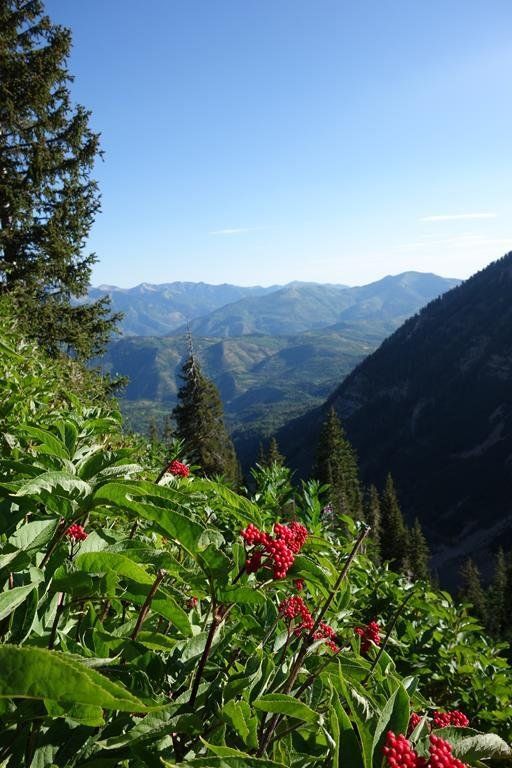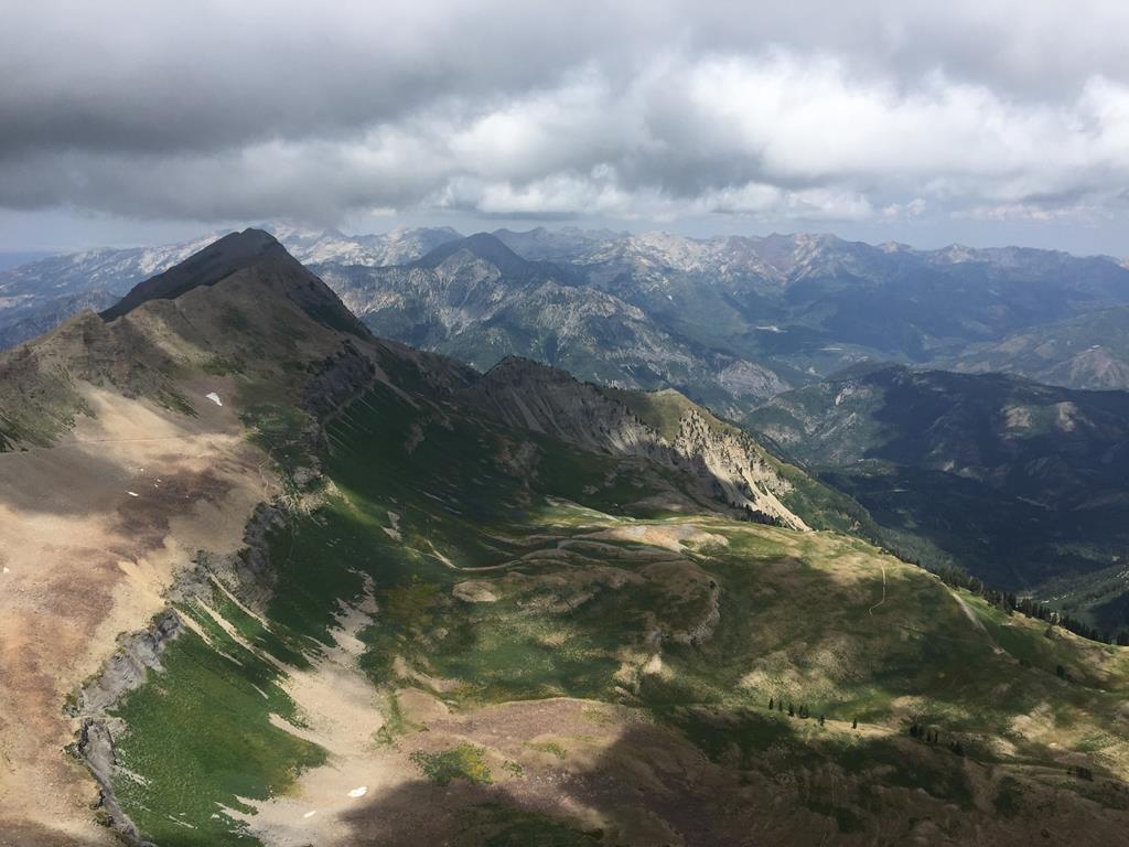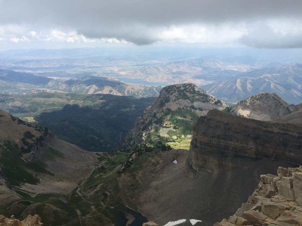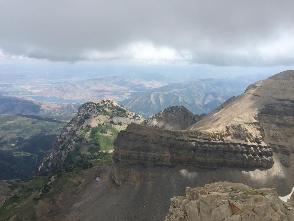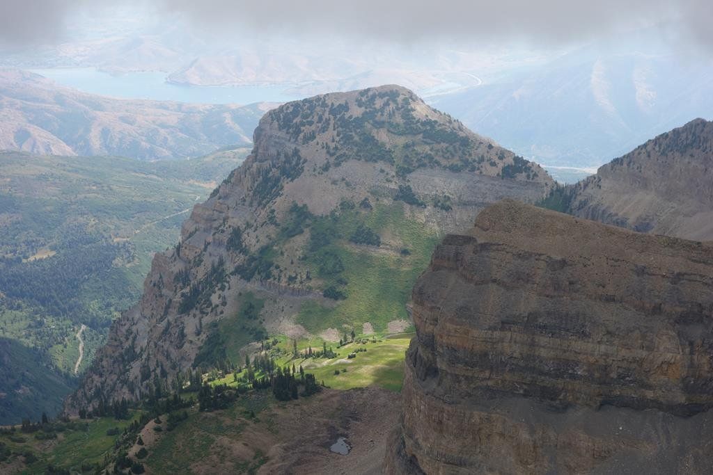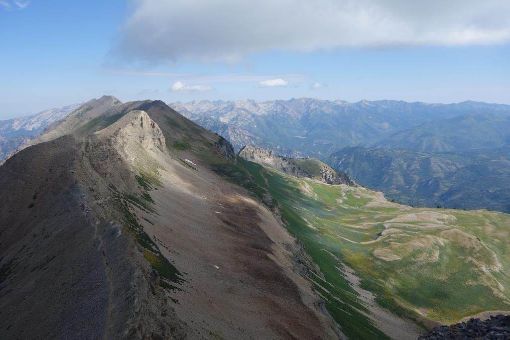 Aug 2016 - Ascent from Timpanookee Campground. Mount Timpanogos, sometimes informally referred to as Timp, is the second highest mountain in Utah's Wasatch Range. Timpanogos rises to an elevation of 11,752 ft (3,582 m) above sea level. The Wasatch Range is a mountain range that stretches approximately 160 miles from the Utah-Idaho border, south through central Utah in the western United States. It is the western edge of the Rocky Mountains. Although it is a 14-mile round-trip hike, with almost a mile of elevation gain, Timp's summit is one of the most-visited in the Rocky Mountains. This was a great hike on a superb trail that winds up through a canyon and across meadows with wildflowers. Eventually a rocky saddle is reached before a great summit ridge with stunning views of the deeper mountains and lower Salt Lake City. Met some fine folk on the way up and down and spent two and a half hours on the summit! Wild deer, goats and possibly a distant moose were seen along with dozens of chipmunks.