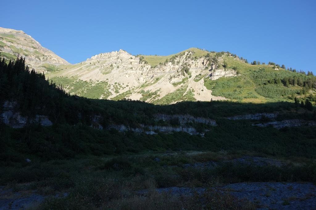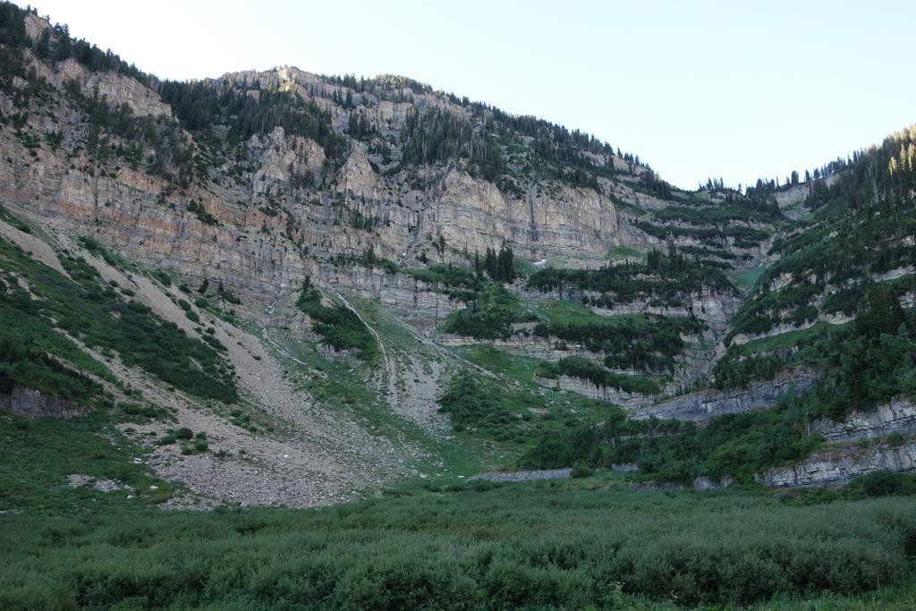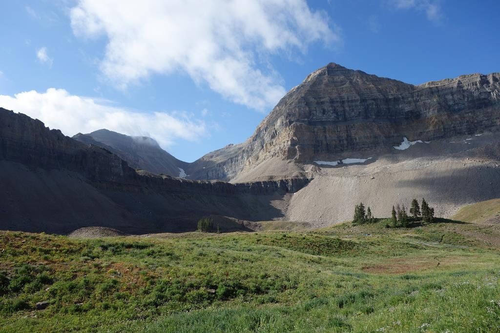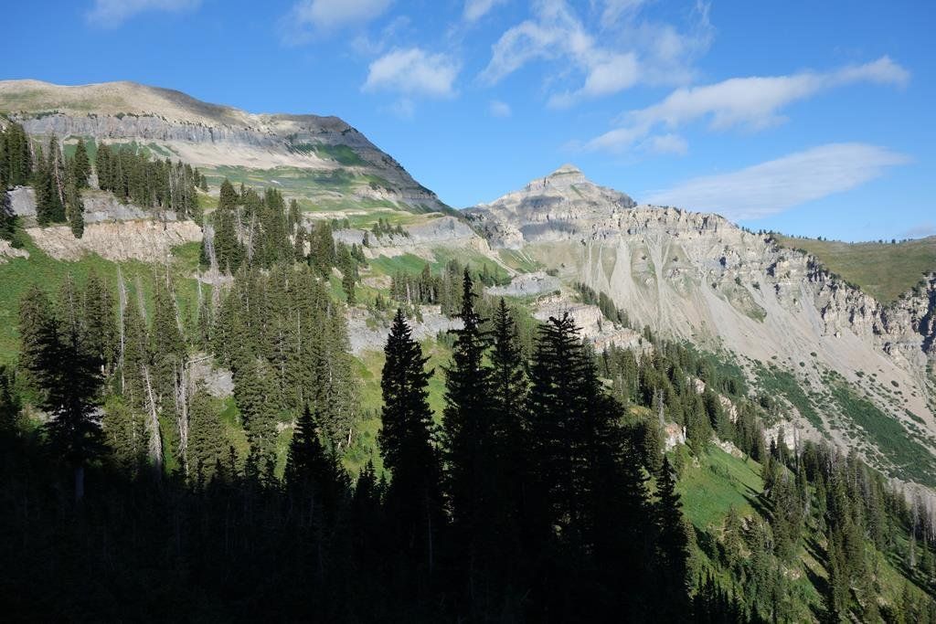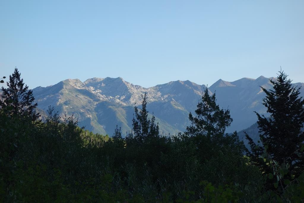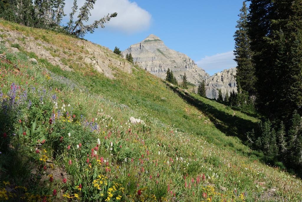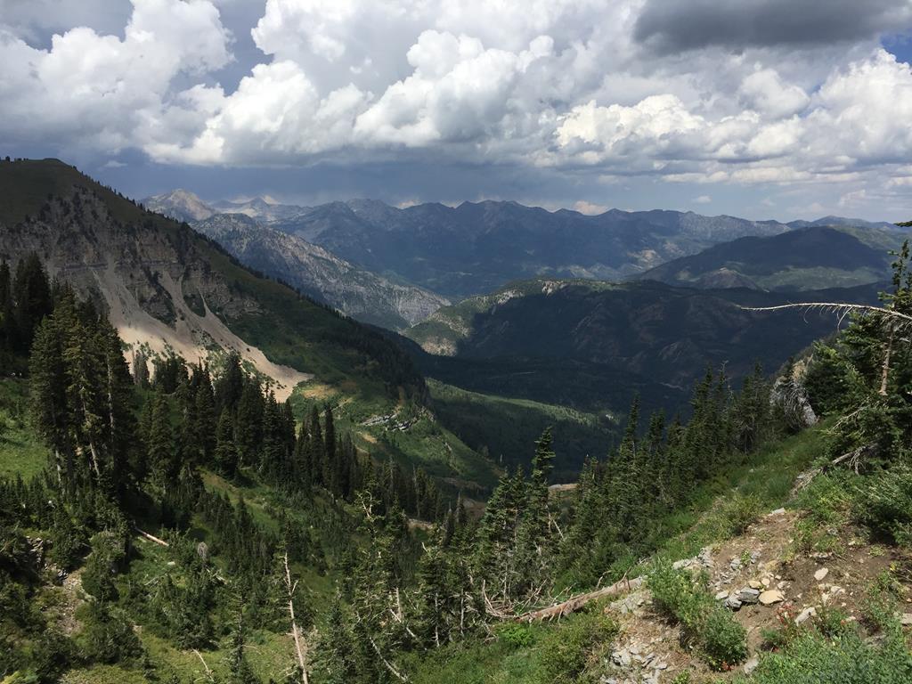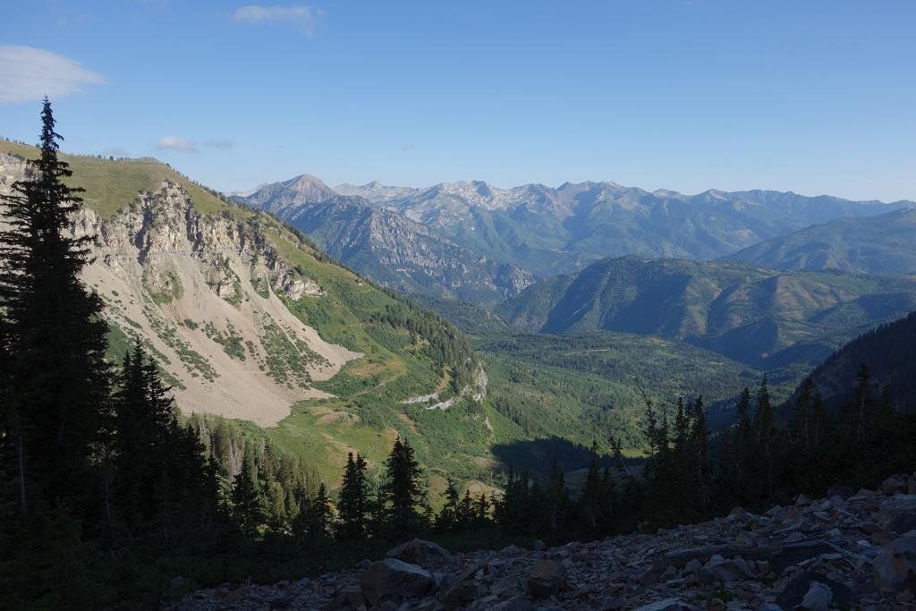 Aug 2016 - Ascent from Timpanookee Campground. Mount Timpanogos, sometimes informally referred to as Timp, is the second highest mountain in Utah's Wasatch Range. Timpanogos rises to an elevation of 11,752 ft (3,582 m) above sea level. The Wasatch Range is a mountain range that stretches approximately 160 miles from the Utah-Idaho border, south through central Utah in the western United States. It is the western edge of the Rocky Mountains. Although it is a 14-mile round-trip hike, with almost a mile of elevation gain, Timp's summit is one of the most-visited in the Rocky Mountains. This was a great hike on a superb trail that winds up through a canyon and across meadows with wildflowers. Eventually a rocky saddle is reached before a great summit ridge with stunning views of the deeper mountains and lower Salt Lake City. Met some fine folk on the way up and down and spent two and a half hours on the summit! Wild deer, goats and possibly a distant moose were seen along with dozens of chipmunks.
