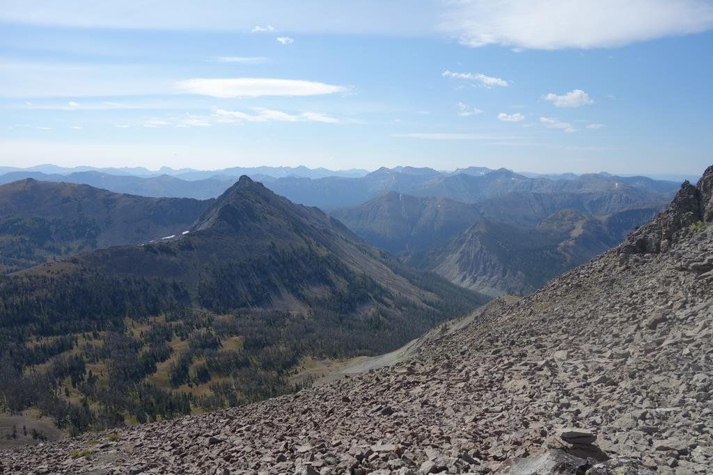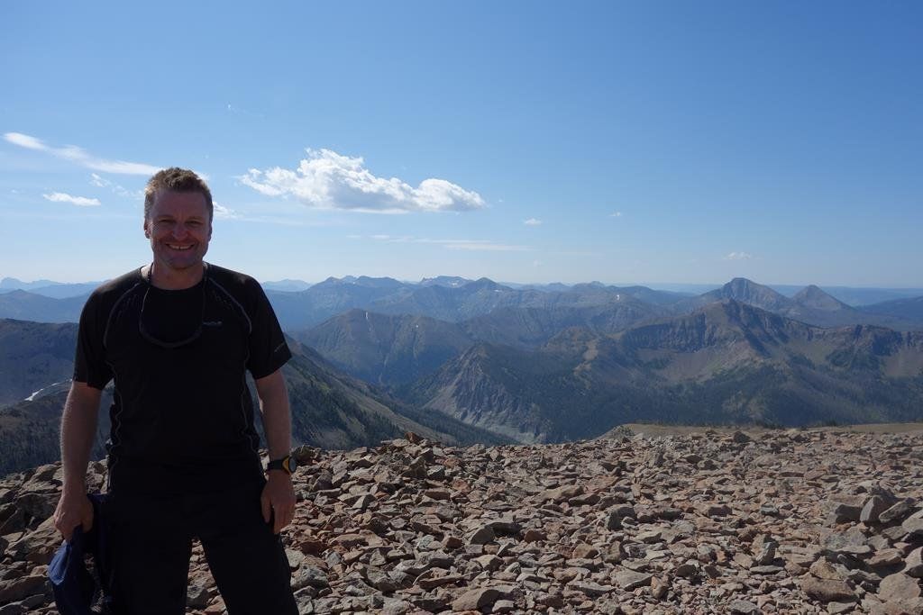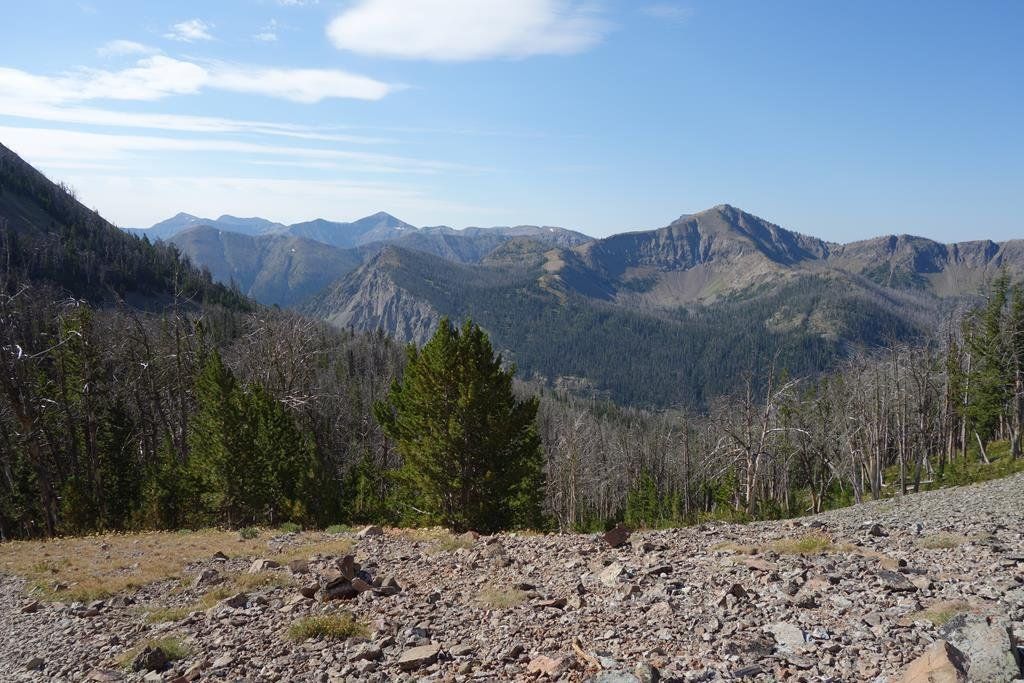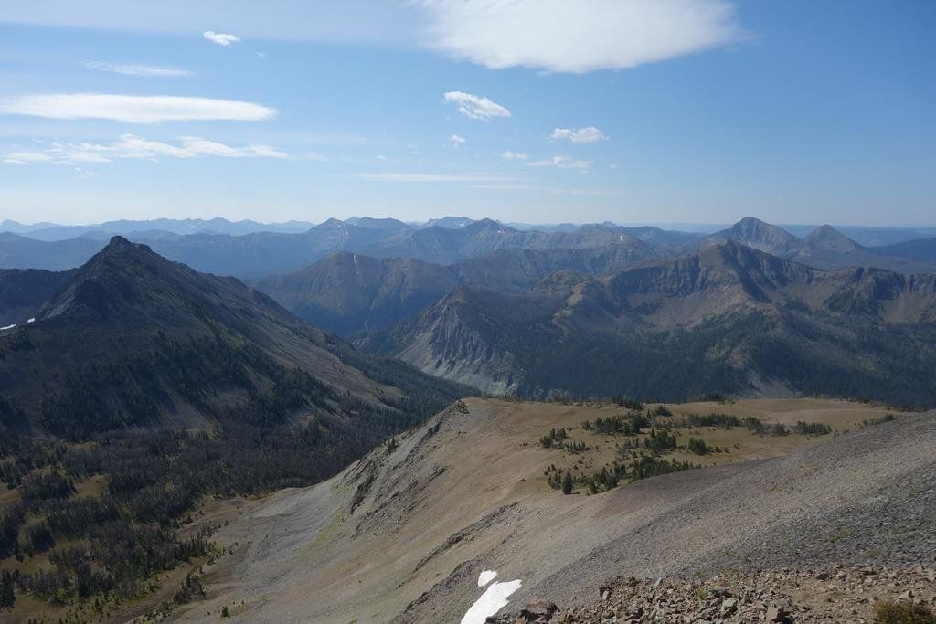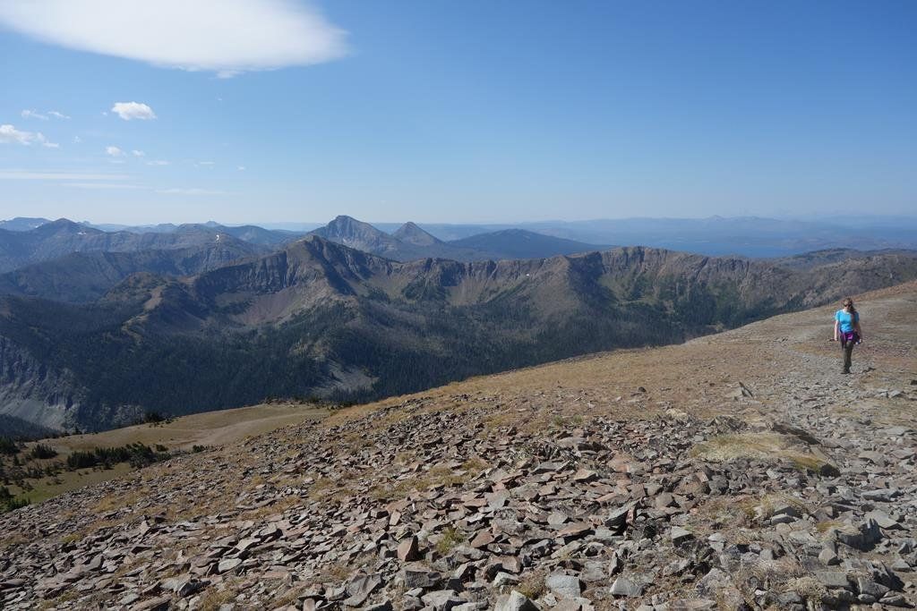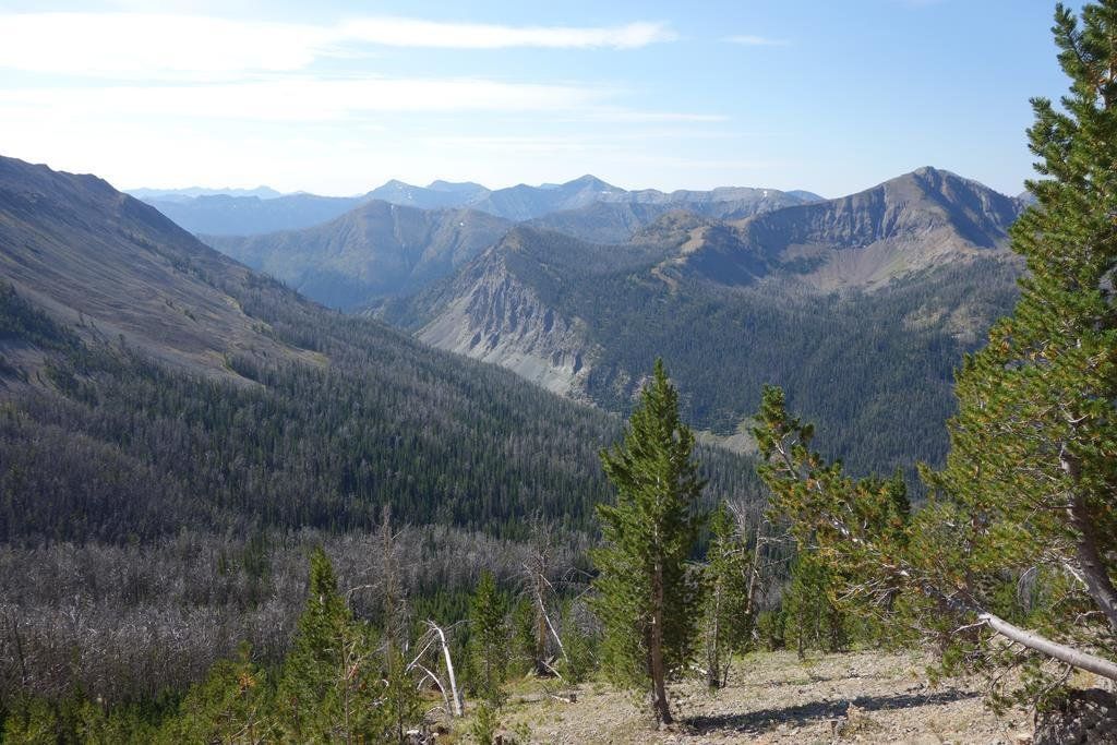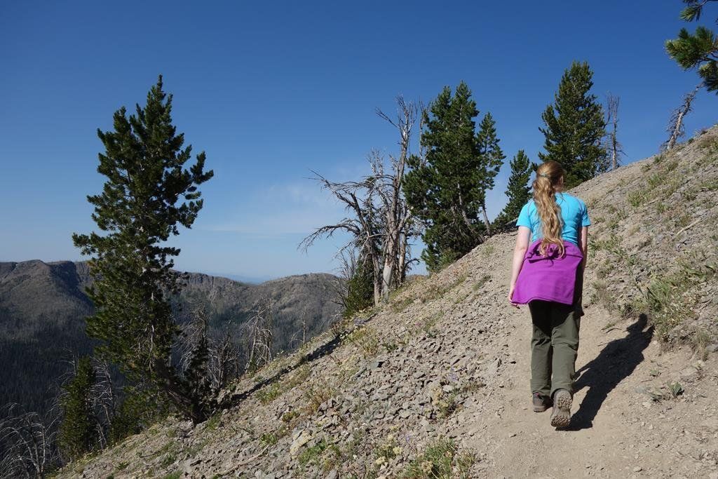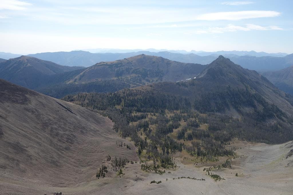 Aug 2016 - (with Gemma) Ascent from Eleanor Lake. It's a really strange/unsettling feeling... climbing a mountain when you know there's Grizzly Bears knocking about! We ascended in the knowledge that this trail is a 'high frequency Grizzly encounterance route.' The views were tremendous and the elevation and various vantage points enabled us to gain a real geography of the park. We made it to the summit 'bear free' and teamed up with another three hikers for the descent (one of them had bear spray, a cannister that resembles a fire extinguisher...extra bonus.) I'd love to see a bear, but at a distance. Views from the summit, as you'd expect, were amazing across Yellowstone Lake and down to the Tetons.