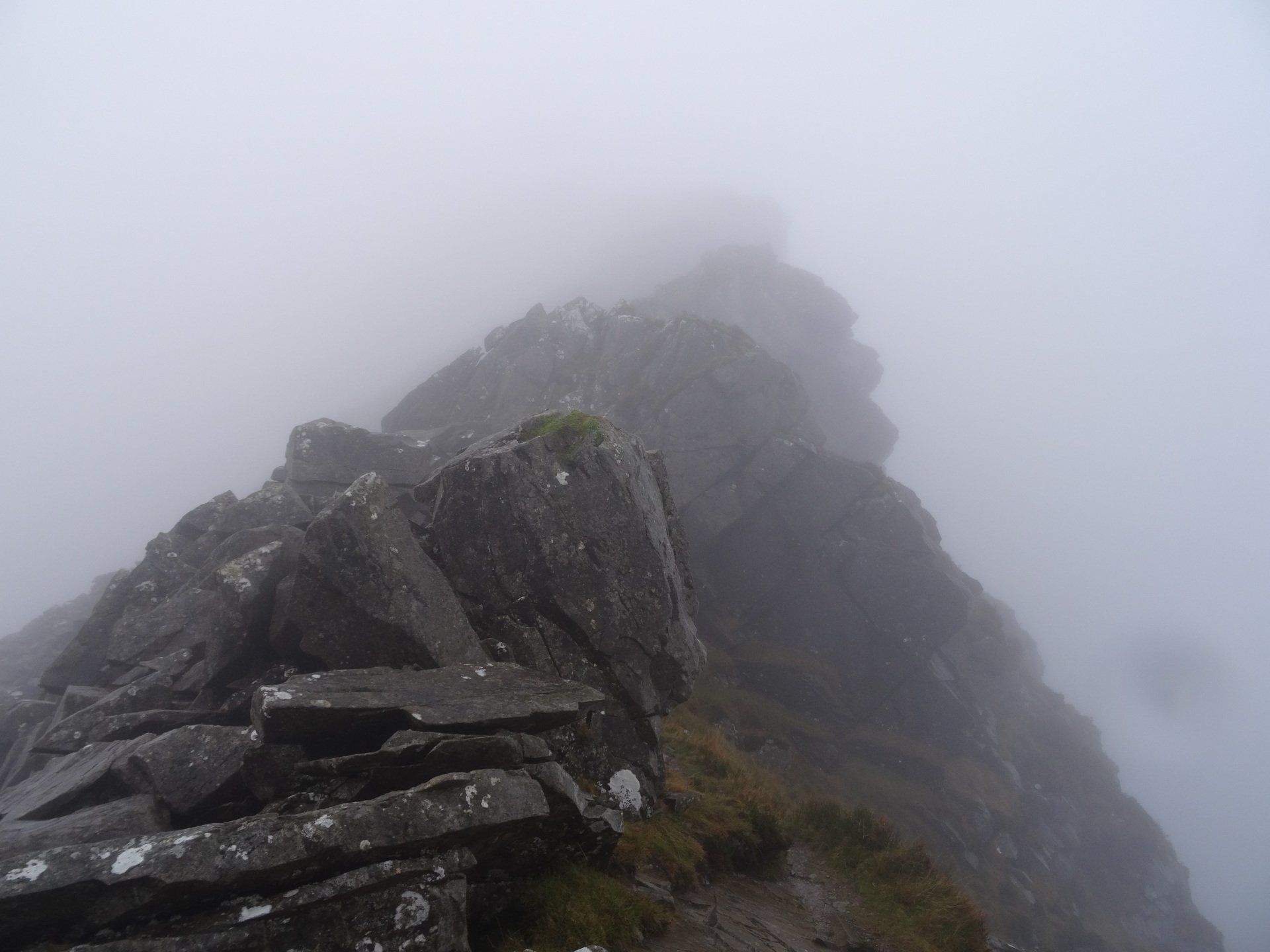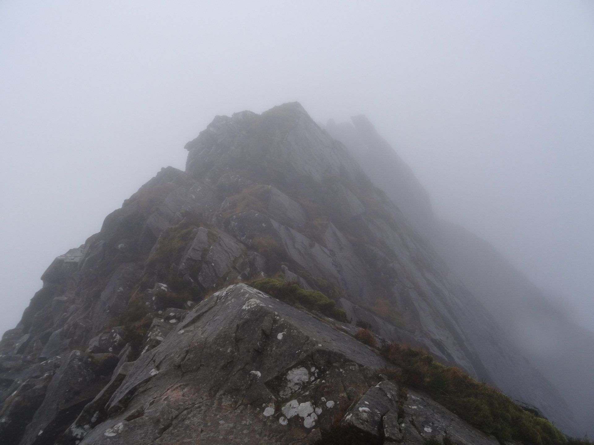 Dec 2019 - Ascent from Rhyd Ddu. Never saw another soul for the entire walk. A wet start and the slog up Y Garn, however it remained dry afterwards with some sun through the mist which illuminated the ridge in places. It’s been almost 8 years since I was last on the Nantlle Ridge and I’d forgotten just how narrow and scrambly it is. Loved it, despite the weather - total isolation. Headed down Trum y Ddysgl’s south ridge into the Beddgelert Forest on the descent.