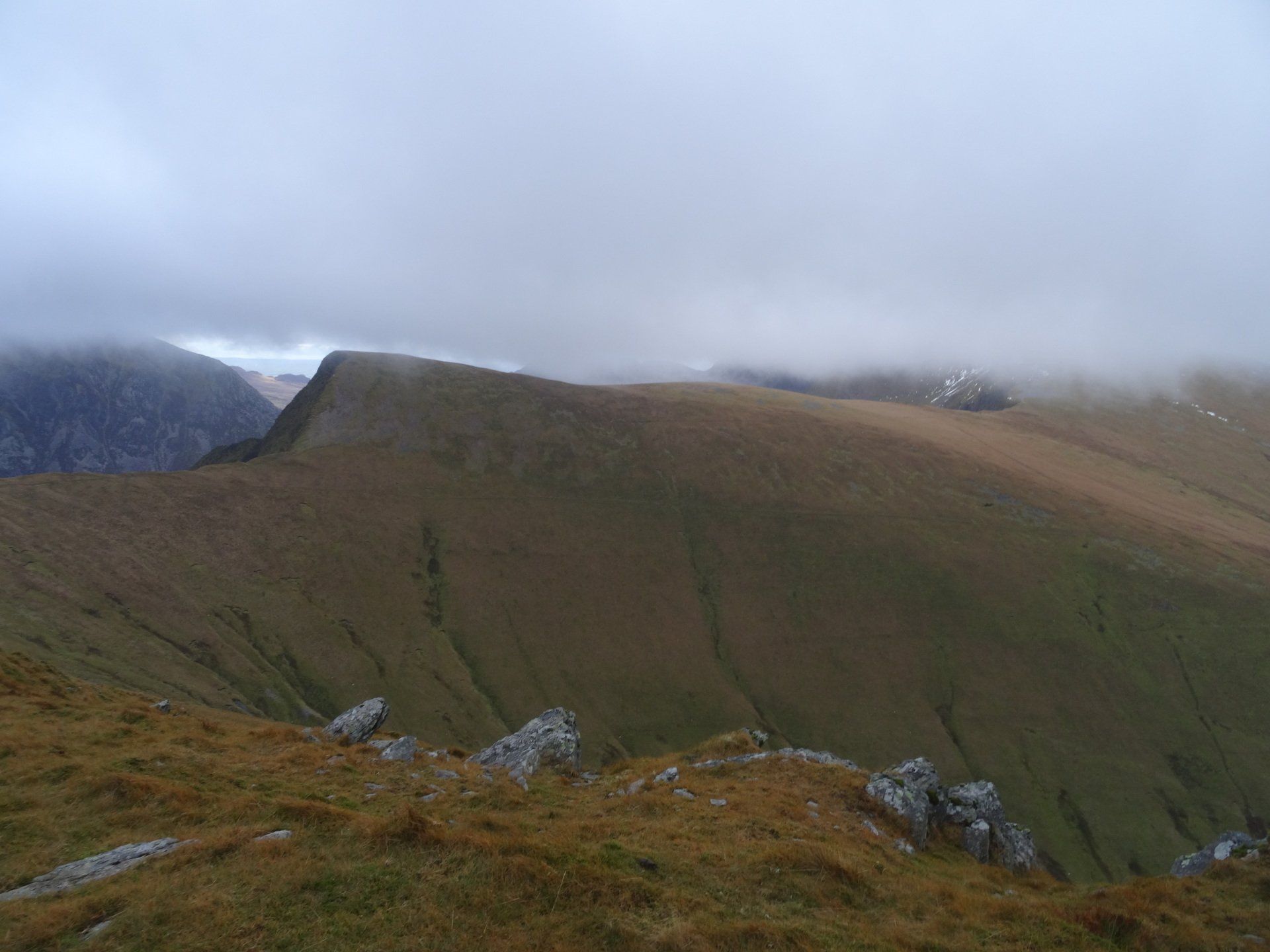 Dec 2019 - Ascent from Llyn Ogwen. An amazing day on the mountains with ever-changing panoramas due to the intermittent cloud. So few people about, and the forecast rain never arrived. Took the Devil’s Kitchen route up to the col, before turning northwards for the climb up to Y Garn. Some of the largest cornices of snow I’ve ever seen kept me entertained for the long trudge out towards Elidir Fawr, where the weather brightened significantly. Views down the valley to Nant Peris and to Moel Elio and partners were great. Met a chap from Warwick and his dog, Oscar, on the ascent to the summit of Elidir Fawr. Great company for half hour or so. Can you spot Oscar’s head over the summit cairn? The Marchlyn Mawr reservoir looked glorious as did the ridge up to Mynydd Perfedd. Once I’d arrived at Foel-goch’s summit, the cloud cleared over Pen y Ole Wen and the northern Carneddau. There were also great views down to the Ogwen Valley with Tryfan standing proudly. After the final slog up within touching distance of Y Garn’s summit, I enjoyed one of my favourite descents - the north-eastern shoulder of Y Garn. Superb mountain day.
