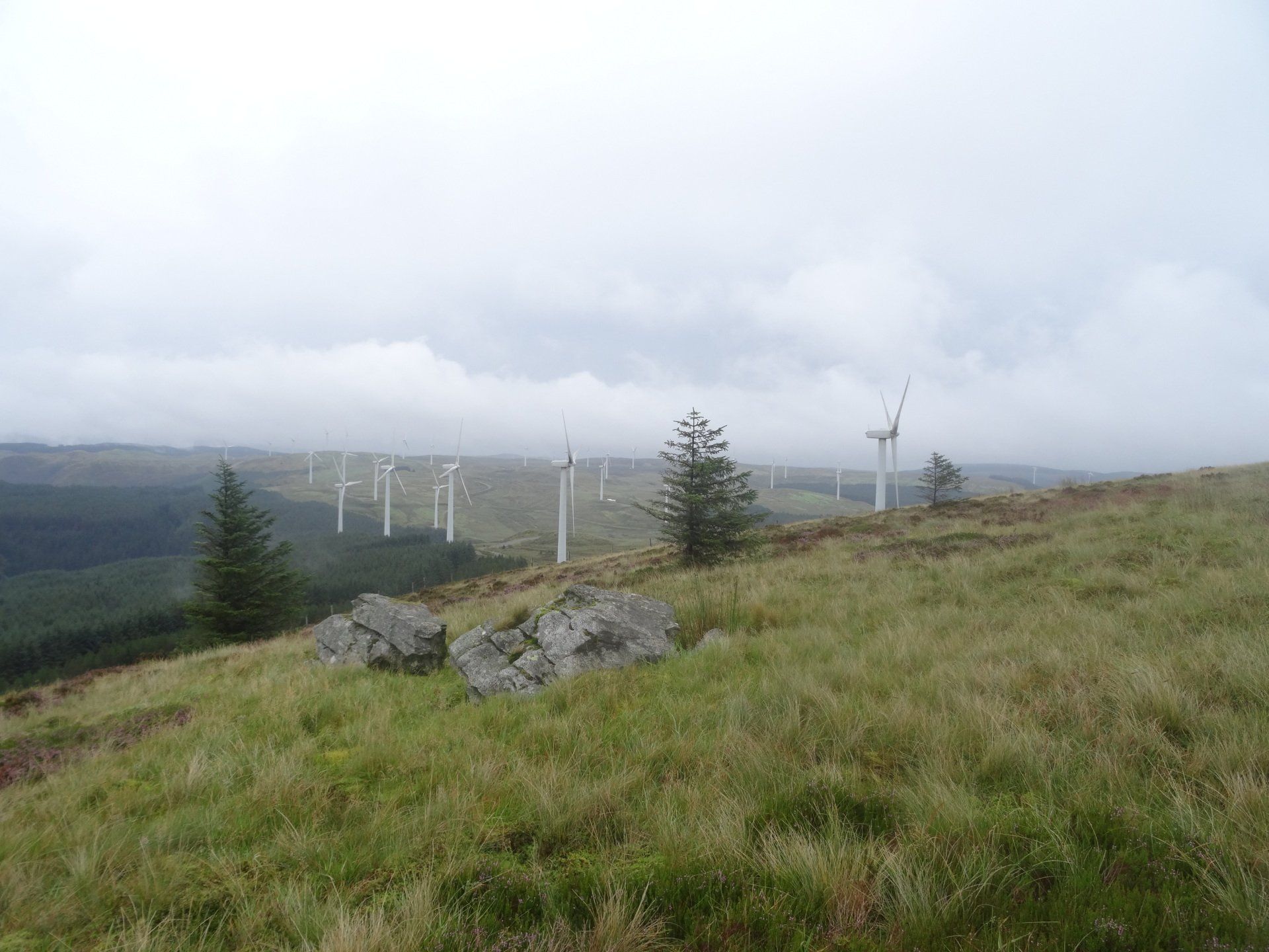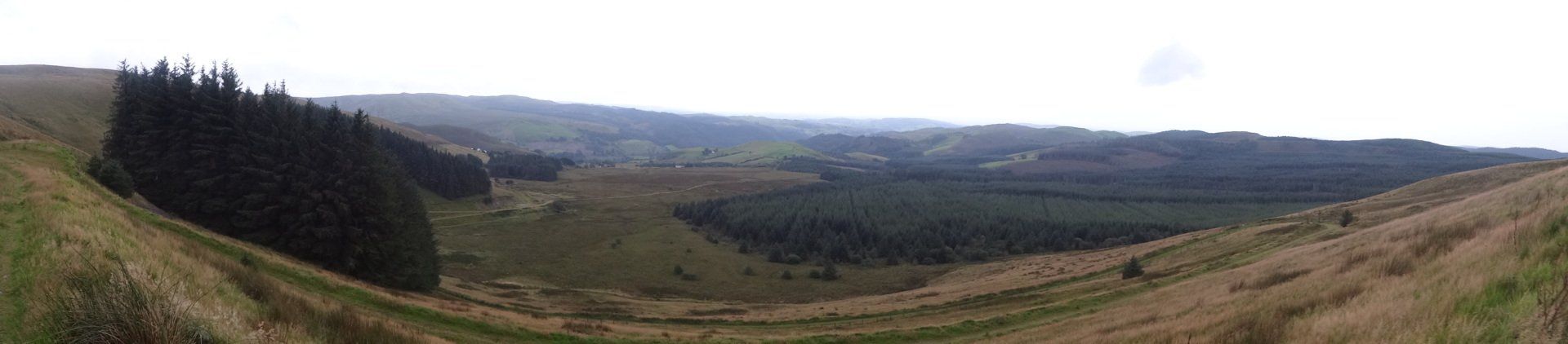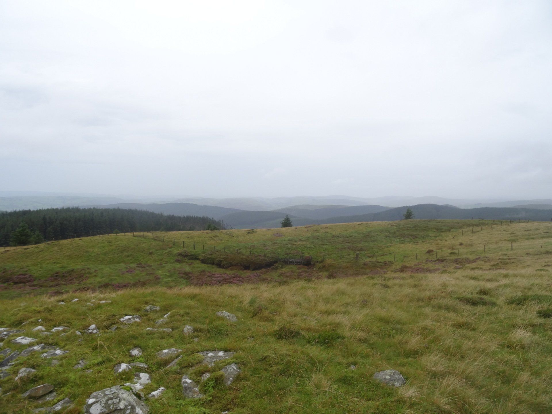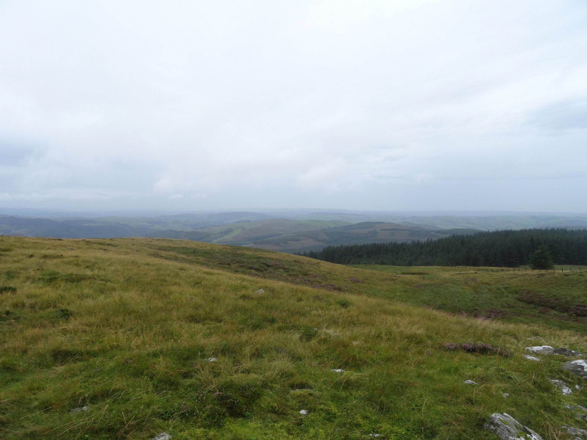 Aug 2020 - Ascent from Lluest. Pen y Garn tops a 500–600m high plateau, which includes the controversial Cefn Croes wind farm. The summit has a very large shelter cairn hollowed out from the remains of an ancient burial cairn and a trig point. In fact, it's the only summit cairn I've encountered with an entrance hall! The wind turbines are very near the summit. To the north some 10km away, the whole Plynlimon range can be seen, including the summits of Y Garn, Pen Pumlumon Fawr, Pen Pumlumon Llygad-bychan and Pen Pumlumon Arwystli. The weather wasn't promising to say the least today so I opted for this smaller walk. Thoroughly enjoyed it though.The drive back to Rhayader afterwards over the Cambrian plateau and alongside the string of reservoirs into the Elan Valley was incredible.