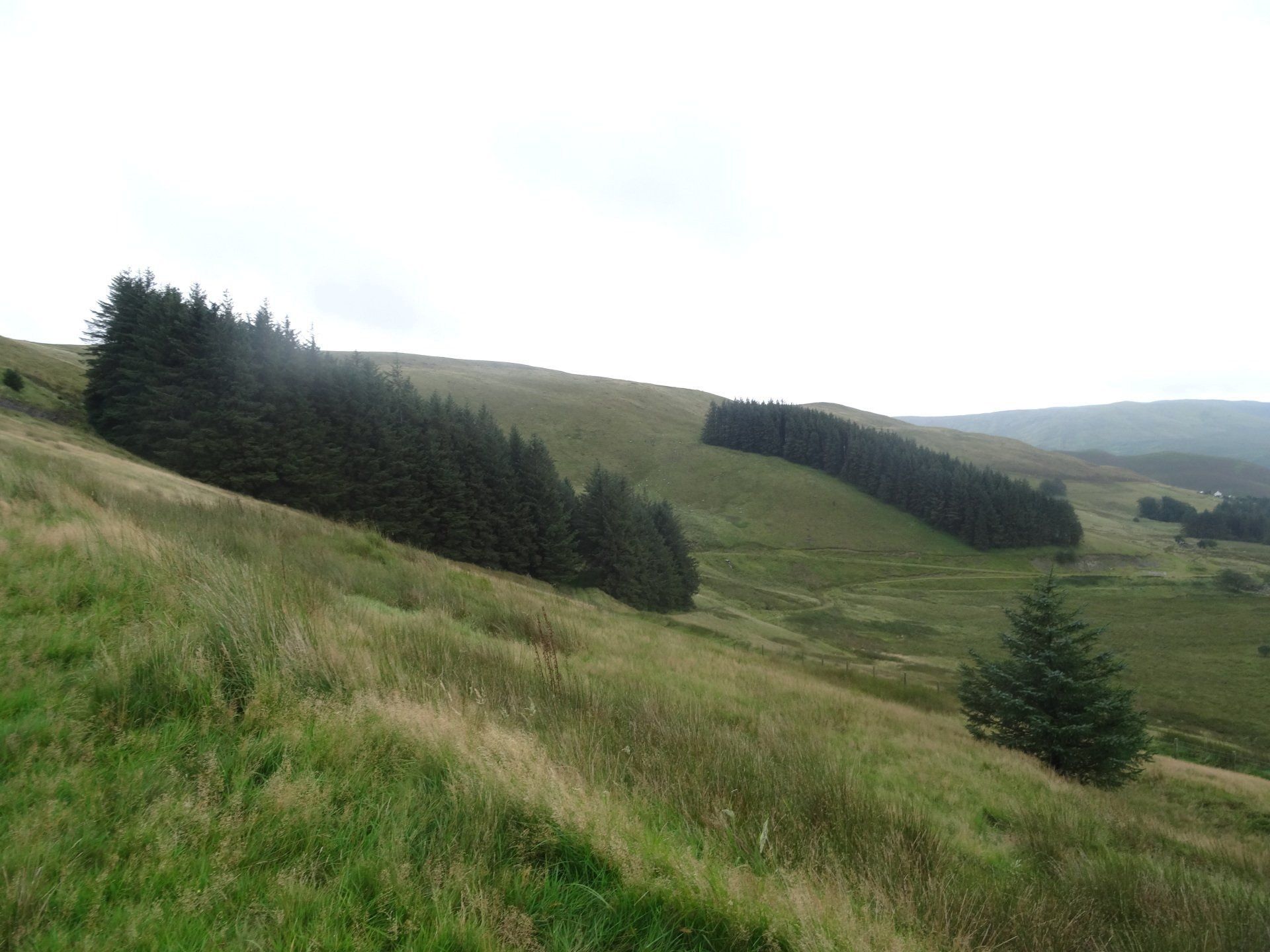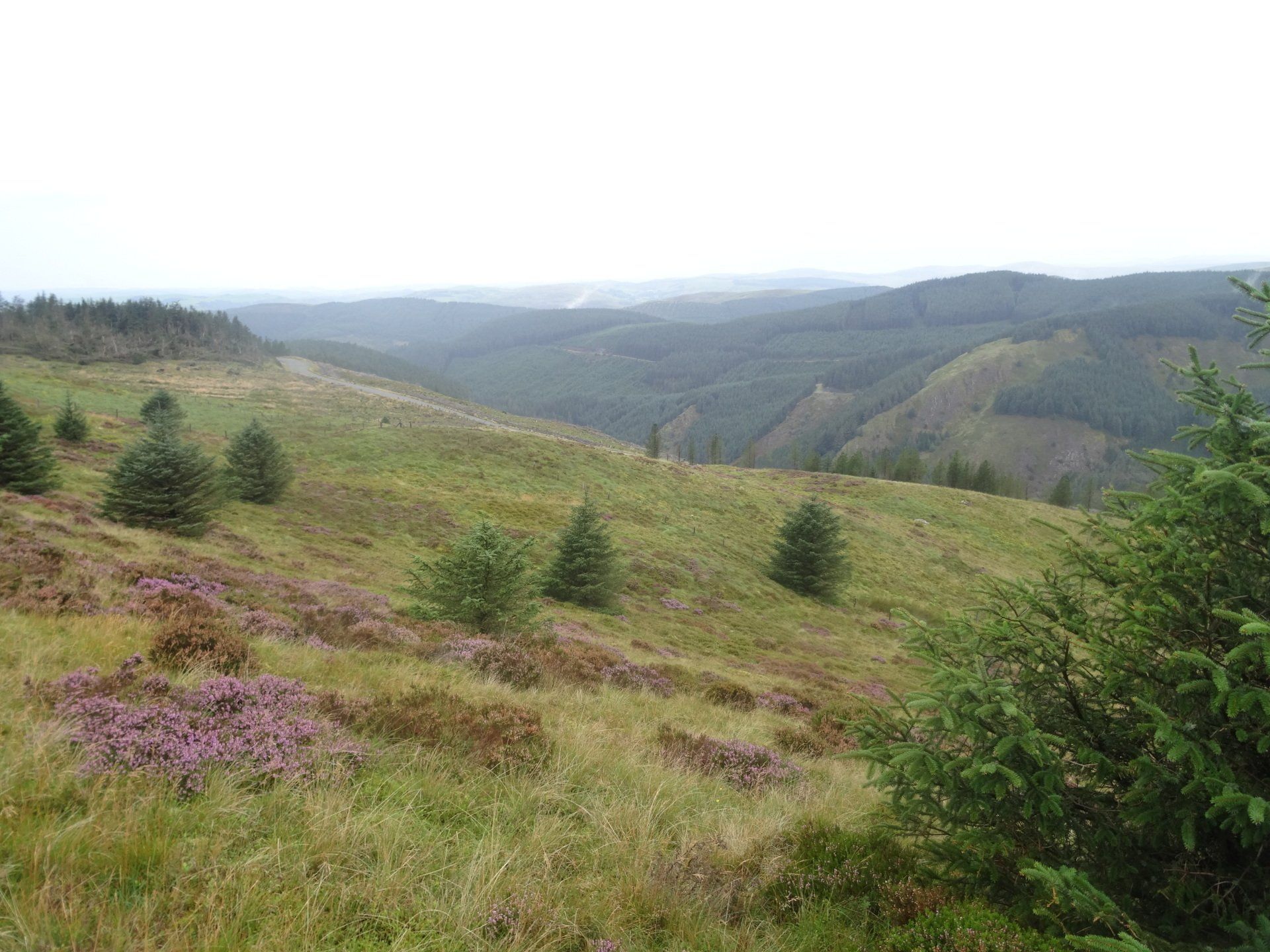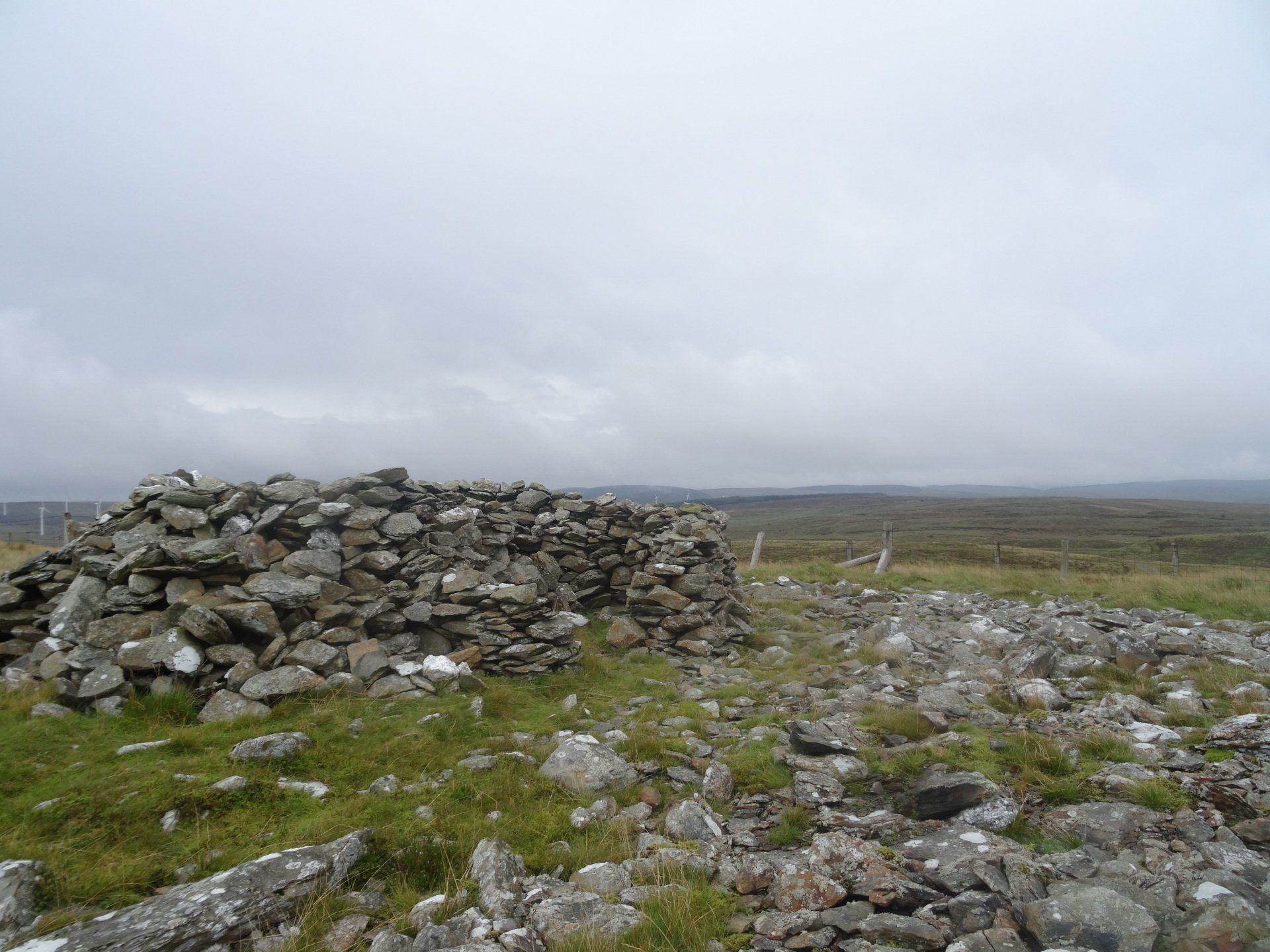 Aug 2020 - Ascent from Lluest. Pen y Garn tops a 500–600m high plateau, which includes the controversial Cefn Croes wind farm. The summit has a very large shelter cairn hollowed out from the remains of an ancient burial cairn and a trig point. In fact, it's the only summit cairn I've encountered with an entrance hall! The wind turbines are very near the summit. To the north some 10km away, the whole Plynlimon range can be seen, including the summits of Y Garn, Pen Pumlumon Fawr, Pen Pumlumon Llygad-bychan and Pen Pumlumon Arwystli. The weather wasn't promising to say the least today so I opted for this smaller walk. Thoroughly enjoyed it though.The drive back to Rhayader afterwards over the Cambrian plateau and alongside the string of reservoirs into the Elan Valley was incredible.