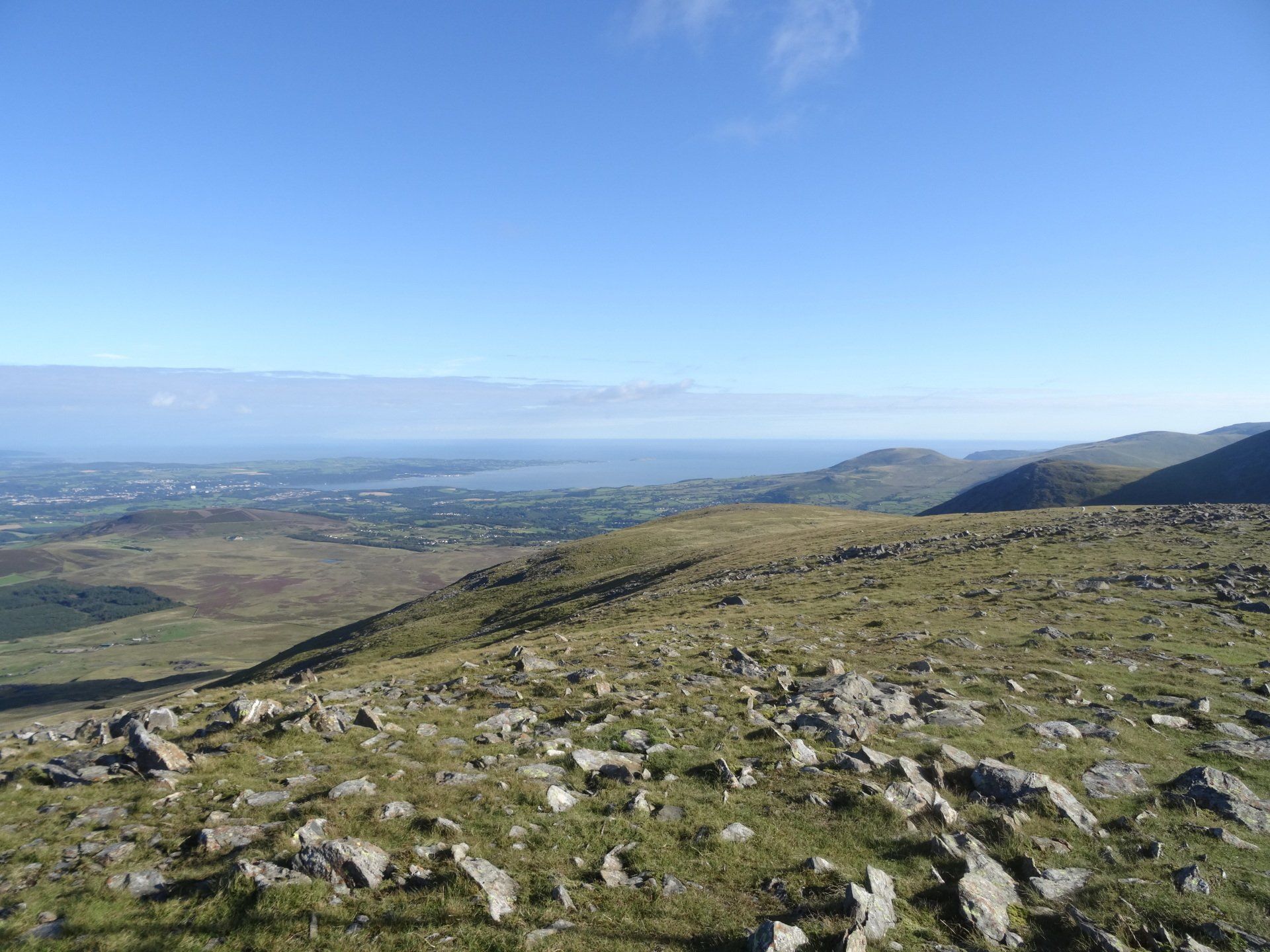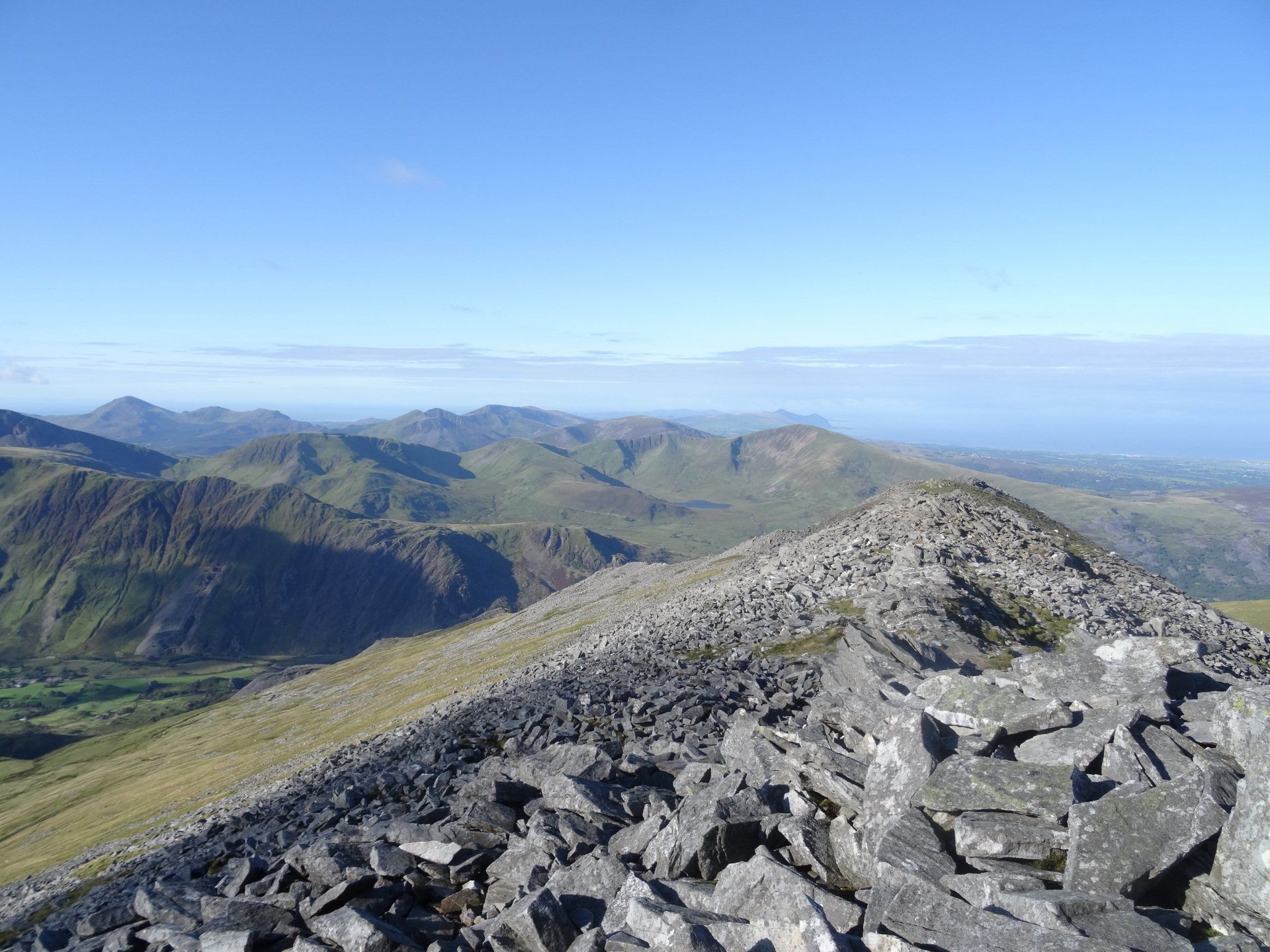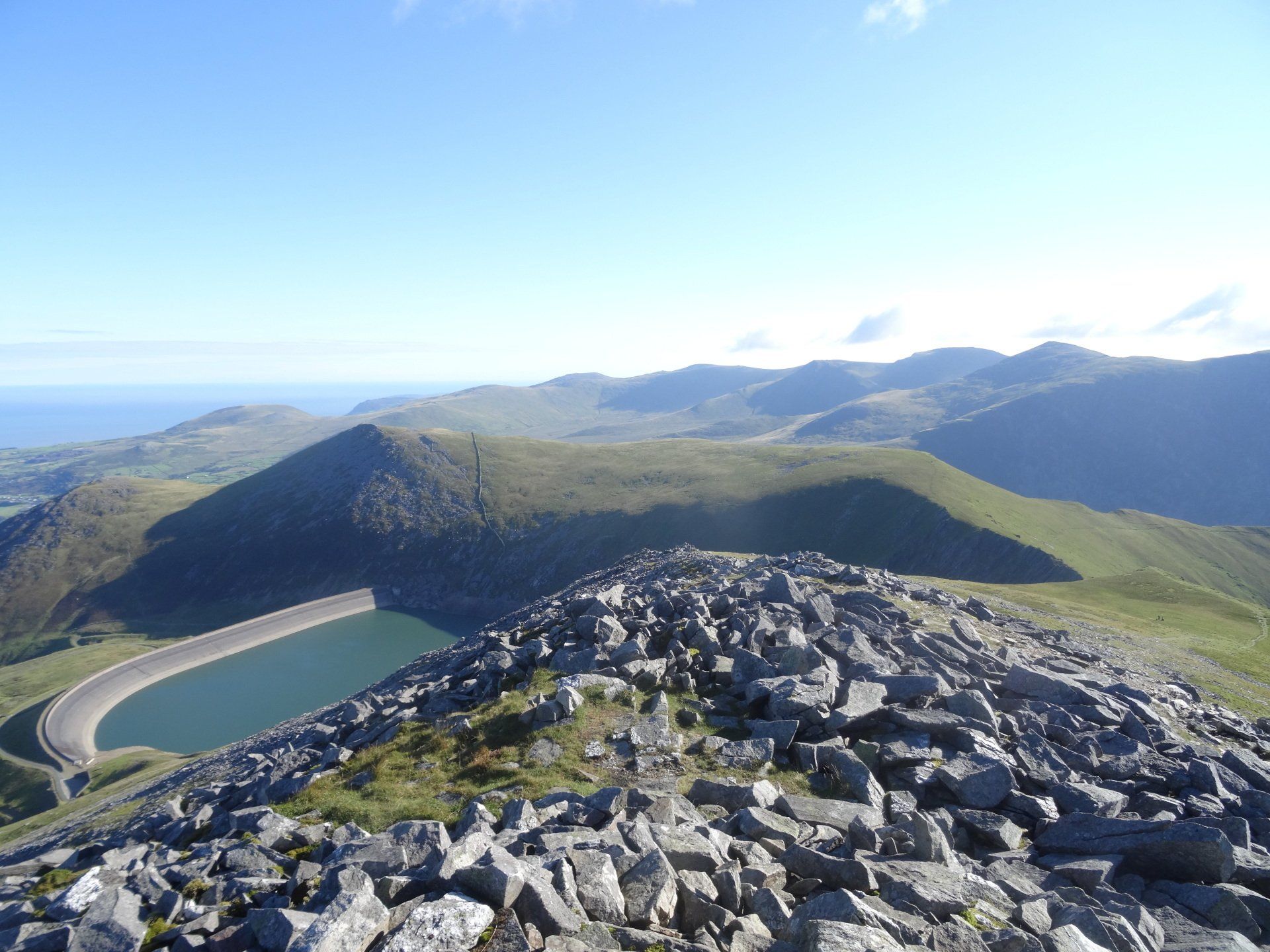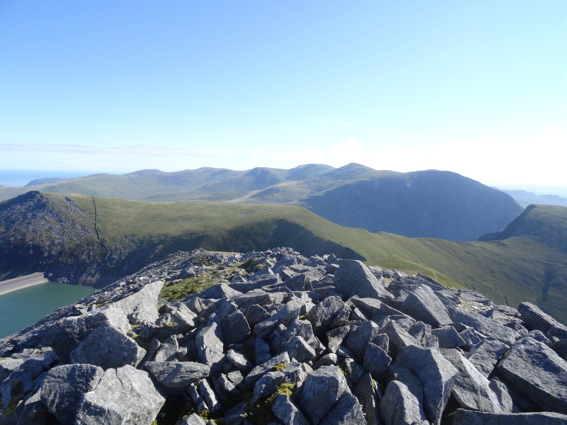 Aug 2020 - Ascent from Dinorwig. Again, up early to avoid the hordes – walking by 7:30am. Excellent forecast today and the drive to Dinorwig through the Ogwen Valley was lovely. I’d done this exact route five years ago in average conditions, so I was excited to repeat it. Chilly ascent through the slate mines which were in the shadow of Elidir Fawr however this meant the air quality was excellent and the visibility stunning. The entire island of Anglesey was in view throughout the walk, as was the Isle of Man many miles distant. The Snowdon massif also looked fabulous. I spent an hour on the summit of Elidir Fawr, a favourite of mine, almost entirely alone. A chap turned up as I was about to leave, and we chatted for half an hour. Turns out, he could see his house in Bangor from the summit and he holidays in Cornwall each year. He knew my neck of the woods, Penwith, really well. He was also a Welsh teacher and instructed me on the pronunciations of the local mountains – he was impressed with some of my efforts and laughed when I was way off! So, after learning how the position of a ‘y’ within a word in Welsh drastically alters its sound, I wished him well and departed. From Elidir Fawr, I crossed to Foel Goch where the views of Llyn Ogwen, the Carneddau, Tryfan and the Glyders were excellent. Spent ages here, in total solitude. Eventually, I crossed to Mynydd Perfedd (a summit that in the hour or so since I’d left the chap on Elidir Fawr I’d forgotten the pronunciation of), and on to Carnedd y Filiast. Descended past the reservoir to pick up the excellent track to re-join the outward route and then down to the car.
