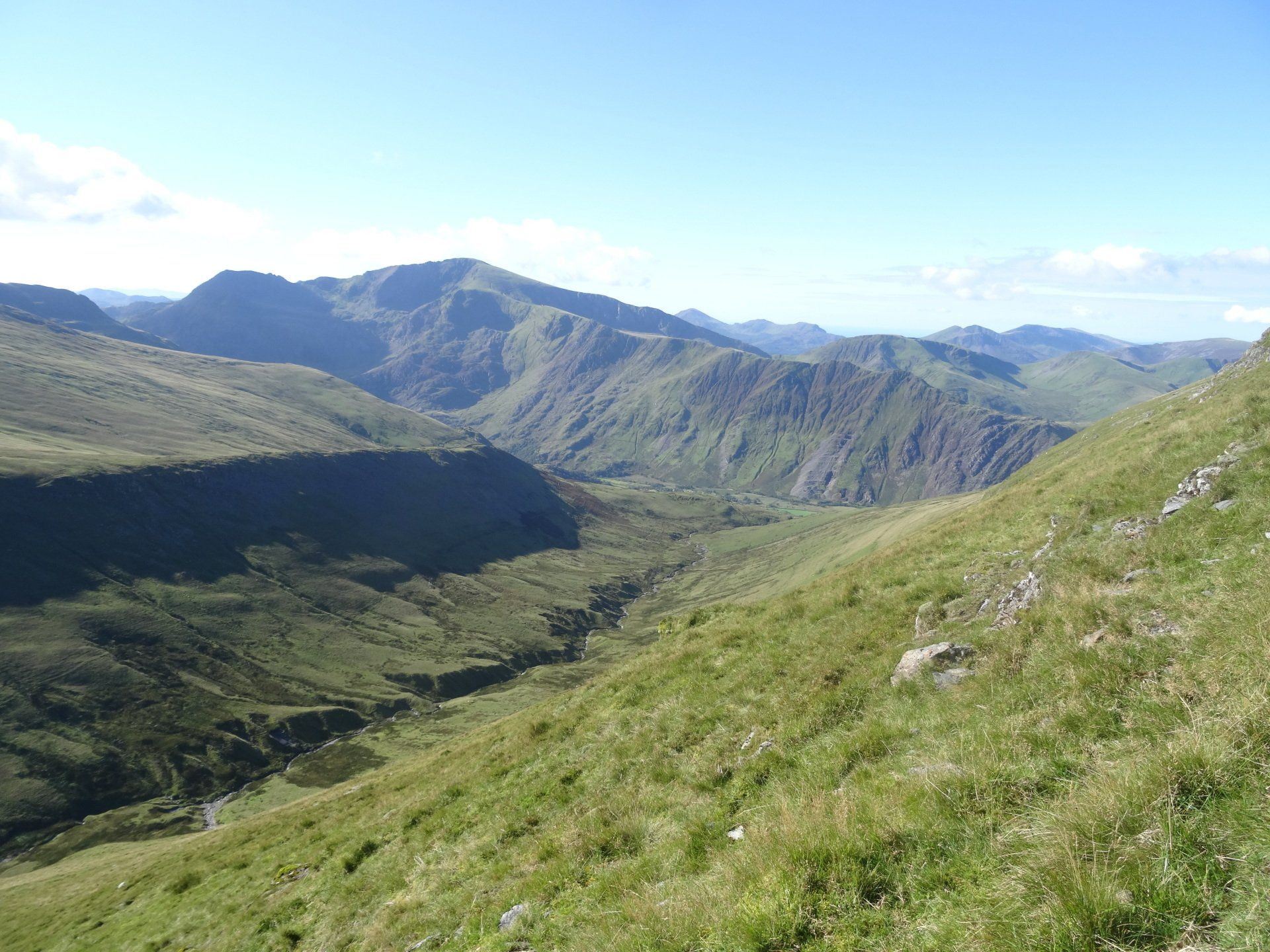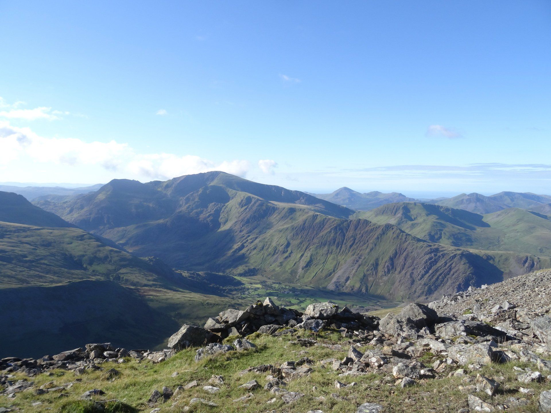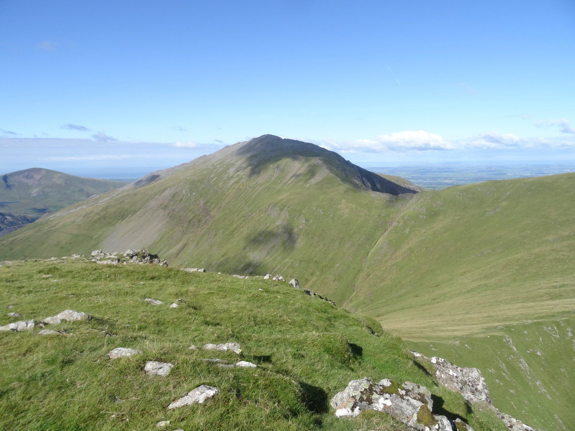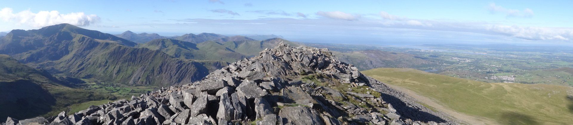 Aug 2020 - Ascent from Dinorwig. Again, up early to avoid the hordes – walking by 7:30am. Excellent forecast today and the drive to Dinorwig through the Ogwen Valley was lovely. I’d done this exact route five years ago in average conditions, so I was excited to repeat it. Chilly ascent through the slate mines which were in the shadow of Elidir Fawr however this meant the air quality was excellent and the visibility stunning. The entire island of Anglesey was in view throughout the walk, as was the Isle of Man many miles distant. The Snowdon massif also looked fabulous. I spent an hour on the summit of Elidir Fawr, a favourite of mine, almost entirely alone. A chap turned up as I was about to leave, and we chatted for half an hour. Turns out, he could see his house in Bangor from the summit and he holidays in Cornwall each year. He knew my neck of the woods, Penwith, really well. He was also a Welsh teacher and instructed me on the pronunciations of the local mountains – he was impressed with some of my efforts and laughed when I was way off! So, after learning how the position of a ‘y’ within a word in Welsh drastically alters its sound, I wished him well and departed. From Elidir Fawr, I crossed to Foel Goch where the views of Llyn Ogwen, the Carneddau, Tryfan and the Glyders were excellent. Spent ages here, in total solitude. Eventually, I crossed to Mynydd Perfedd (a summit that in the hour or so since I’d left the chap on Elidir Fawr I’d forgotten the pronunciation of), and on to Carnedd y Filiast. Descended past the reservoir to pick up the excellent track to re-join the outward route and then down to the car.
