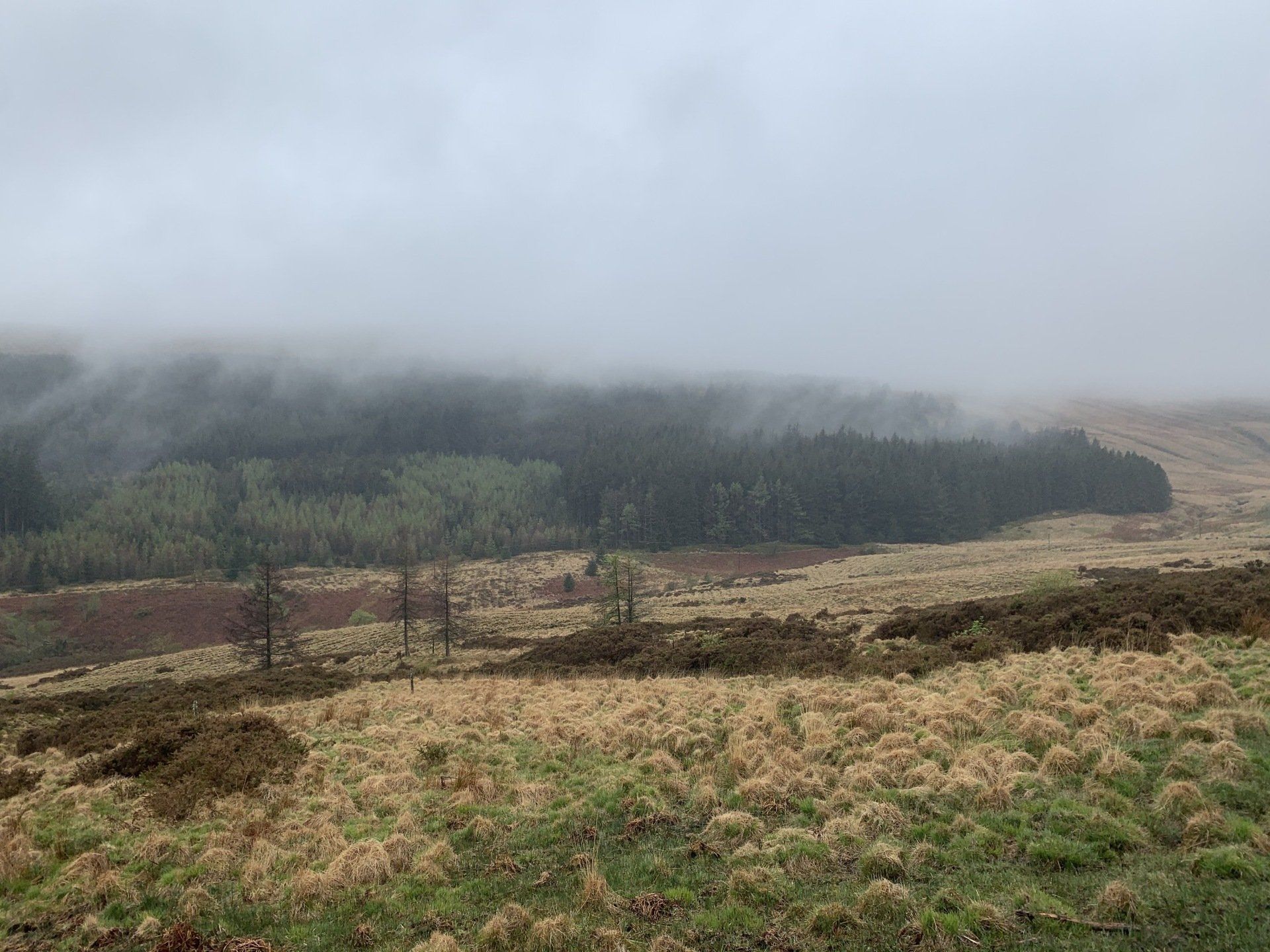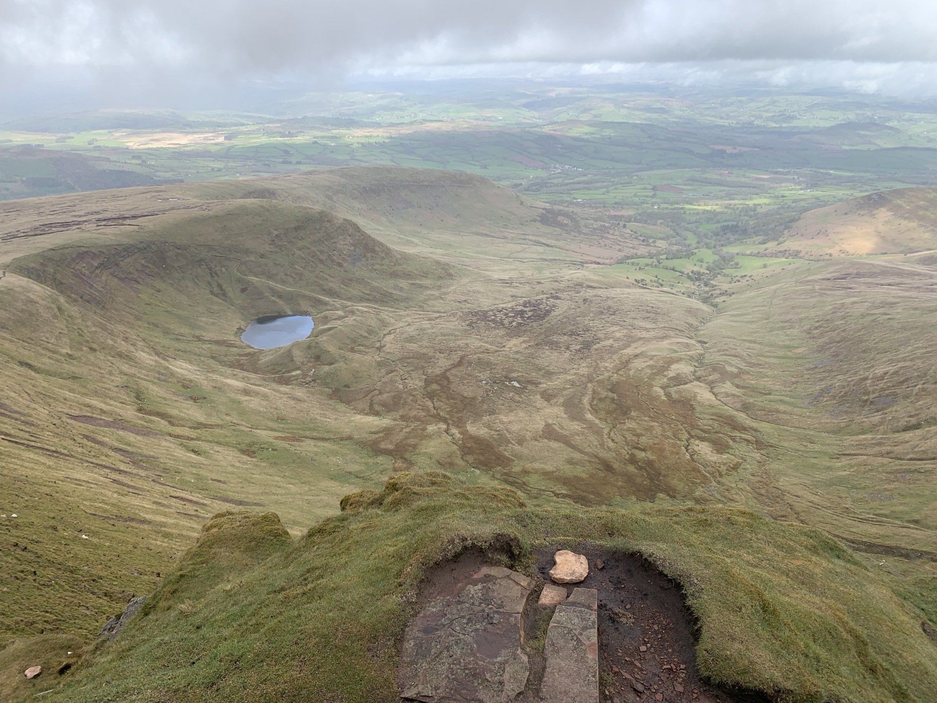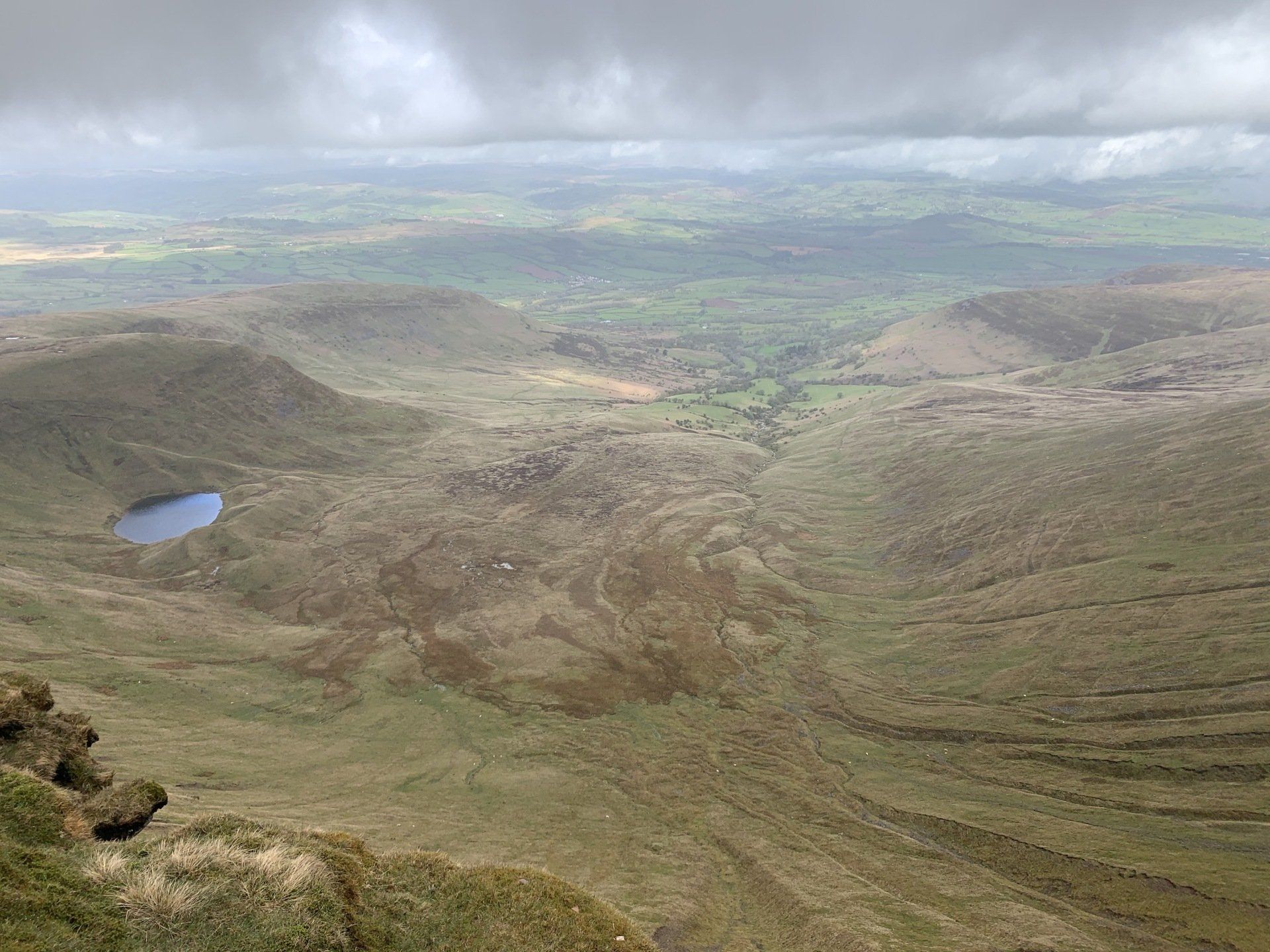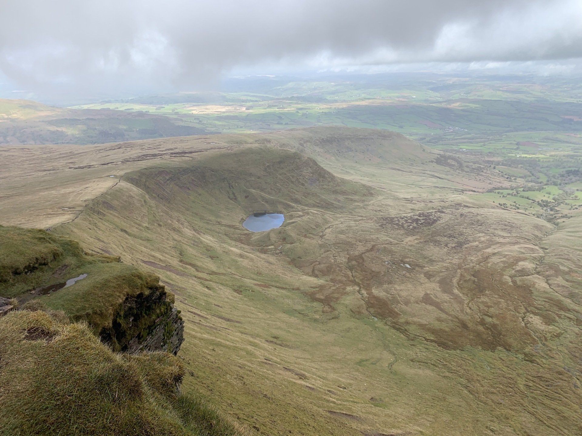 May 2021- Ascent from Pont Cwmyfedwen. Really enjoyed today’s walk. Despite a bleak weather forecast, it turned out okay, especially on the tops. As an added bonus, the negative forecast kept a significant amount of people away. Had to park further down the valley for the start, as there was masses of forestry work going on in the Neuadd normal start point. The churned up mess that was last here when I passed the lower Neuadd reservoir that they are rewilding is no more. To be fair, they’ve done a good job in reshaping the heathland, reseeding the area and constructing a new path and bridge that passes over the ‘new’ river. On the Craig Fan Ddu ridge the clouds cleared for a couple of hours and the walking over the tops was great. Had lunch on Cribyn.