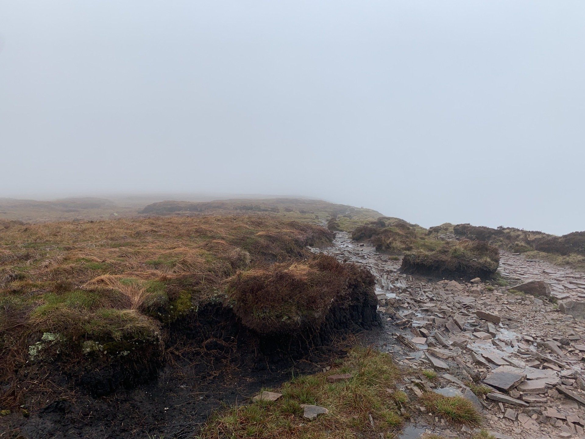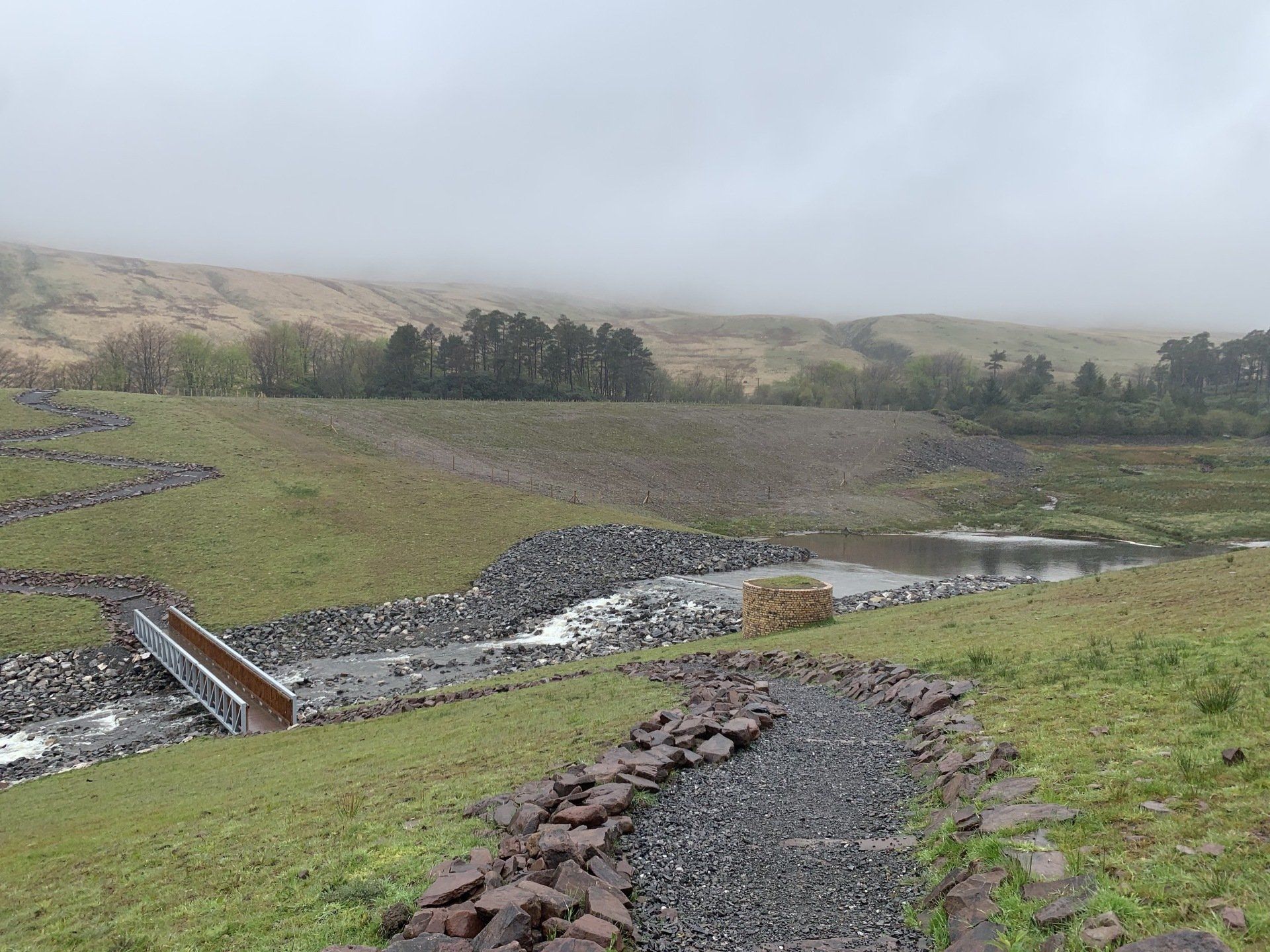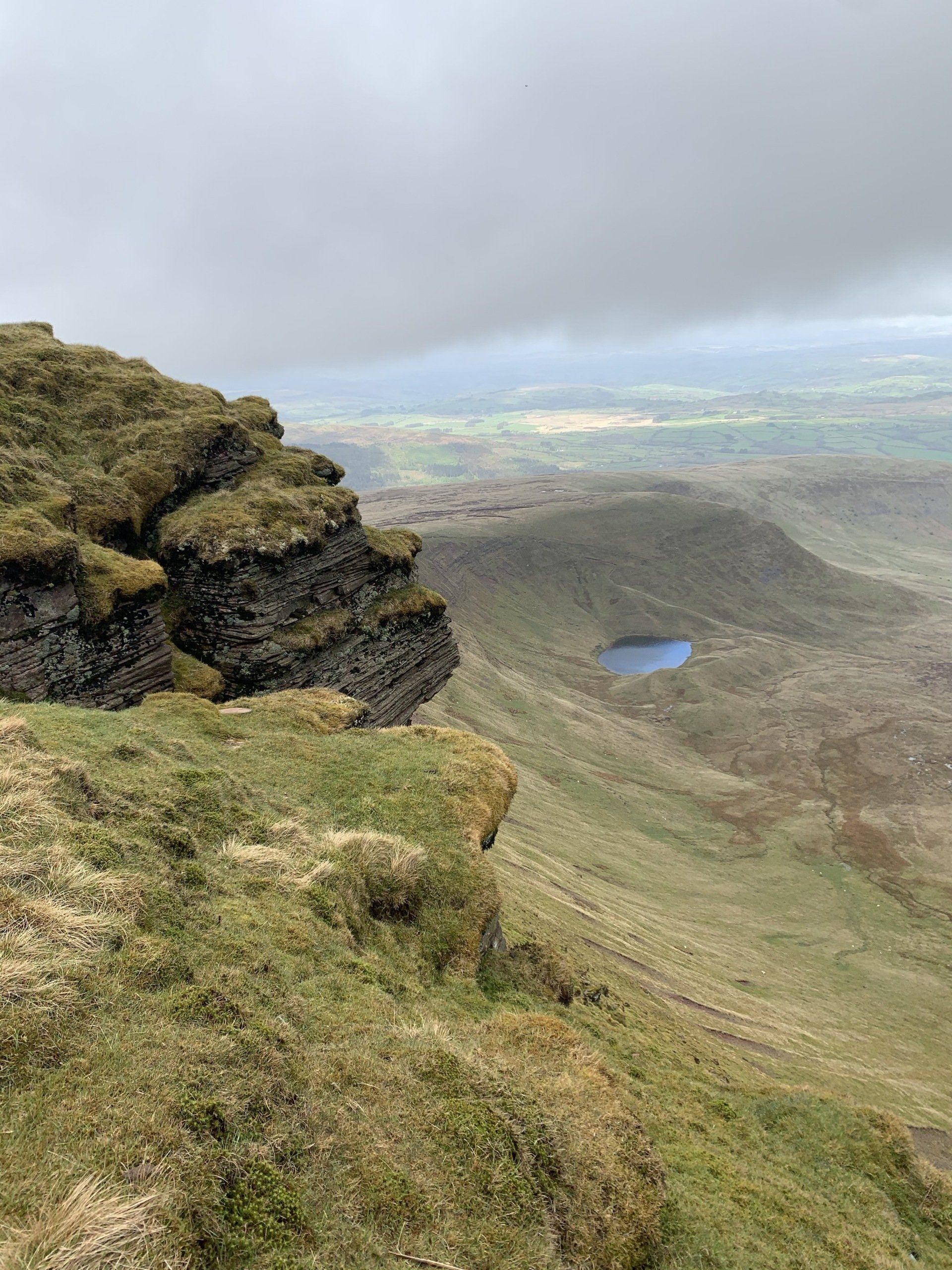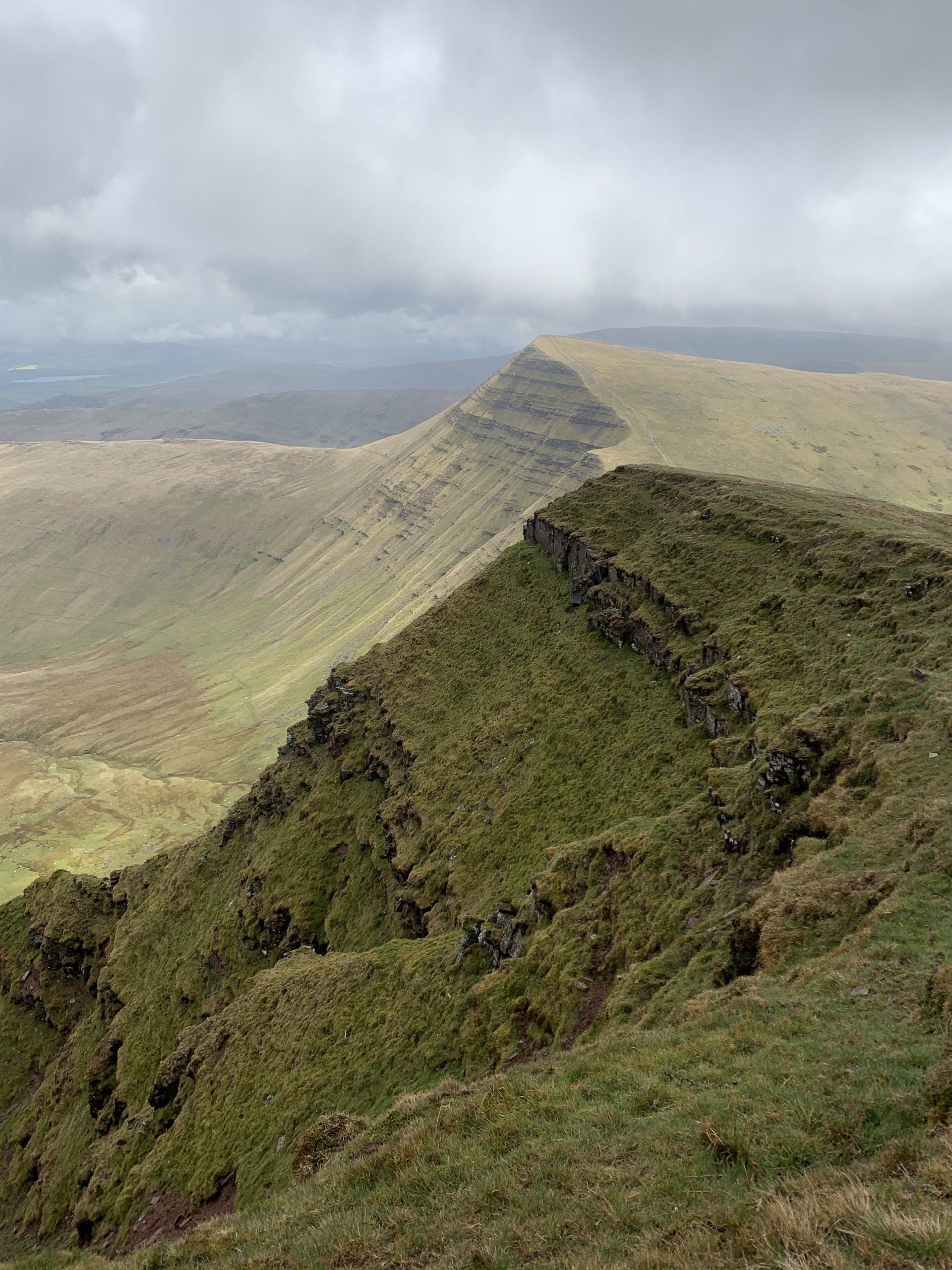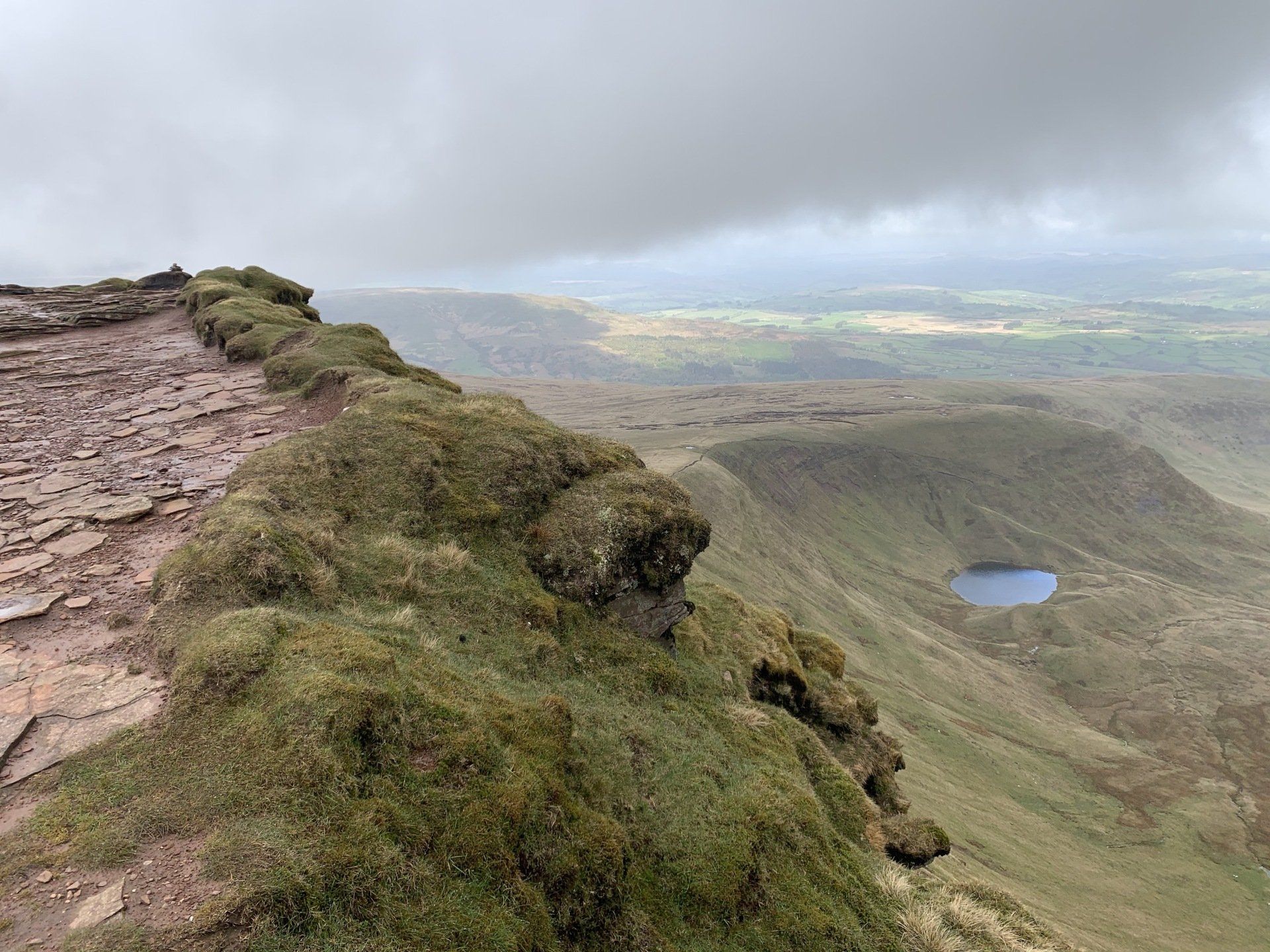 May 2021- Ascent from Pont Cwmyfedwen. Really enjoyed today’s walk. Despite a bleak weather forecast, it turned out okay, especially on the tops. As an added bonus, the negative forecast kept a significant amount of people away. Had to park further down the valley for the start, as there was masses of forestry work going on in the Neuadd normal start point. The churned up mess that was last here when I passed the lower Neuadd reservoir that they are rewilding is no more. To be fair, they’ve done a good job in reshaping the heathland, reseeding the area and constructing a new path and bridge that passes over the ‘new’ river. On the Craig Fan Ddu ridge the clouds cleared for a couple of hours and the walking over the tops was great. Had lunch on Cribyn.