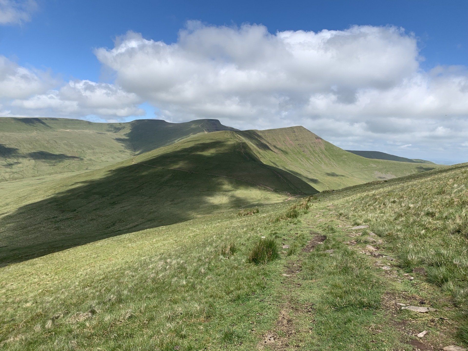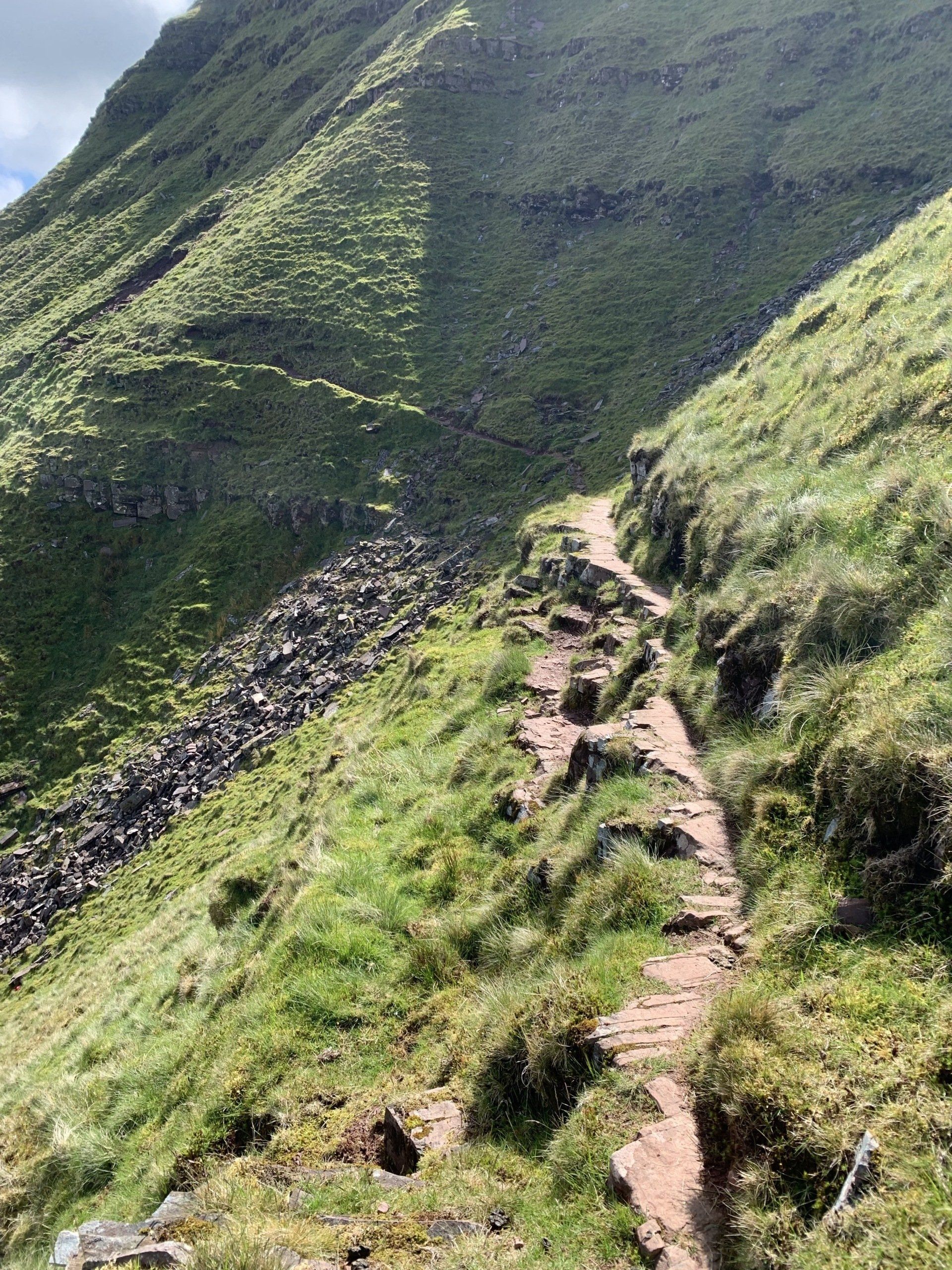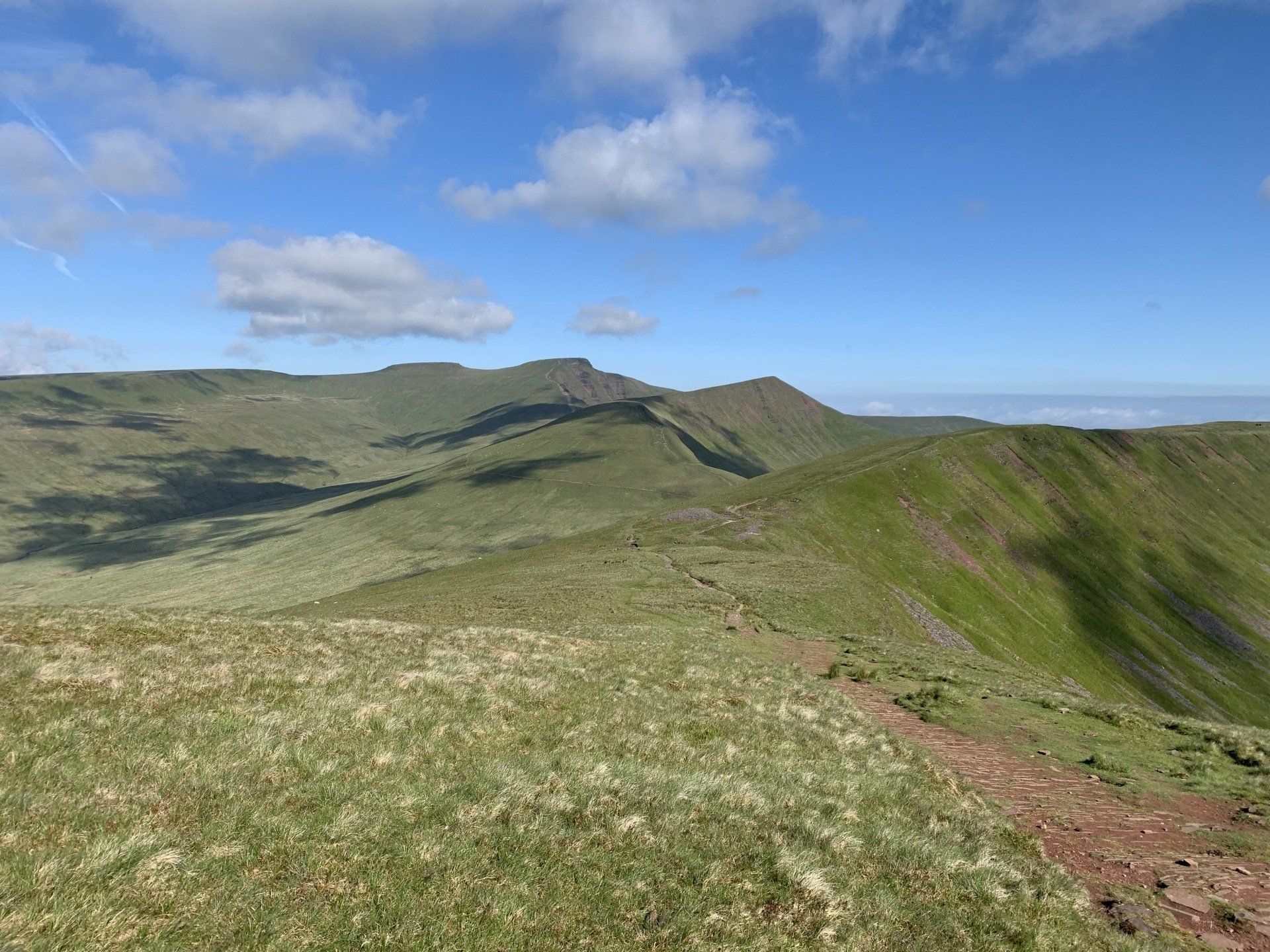 June 2021- Ascent from Blaen-y-glyn. Gorgeous weather. Gorgeous walk. The 'Goat Track' across the north face of Cribyn was fun.