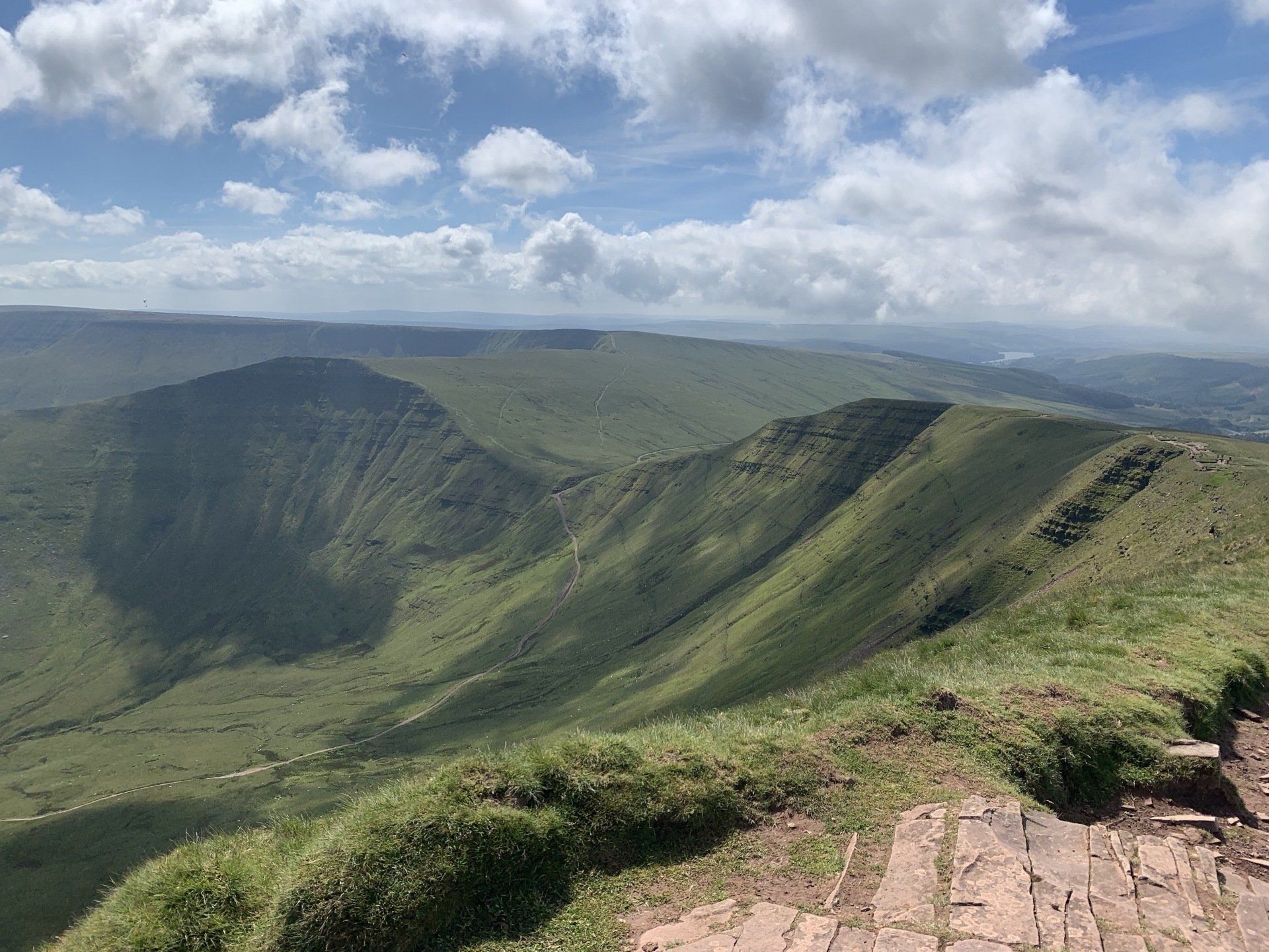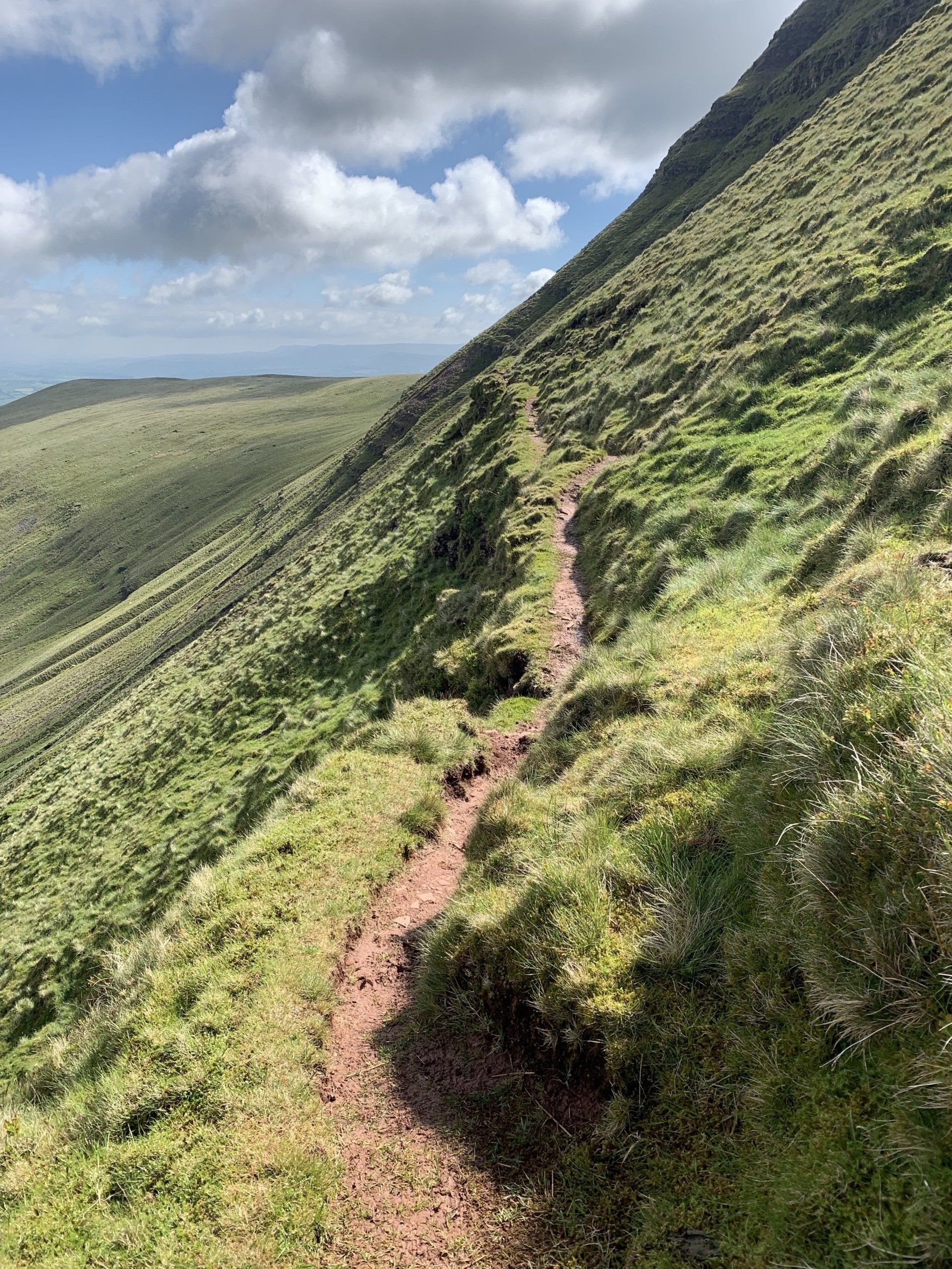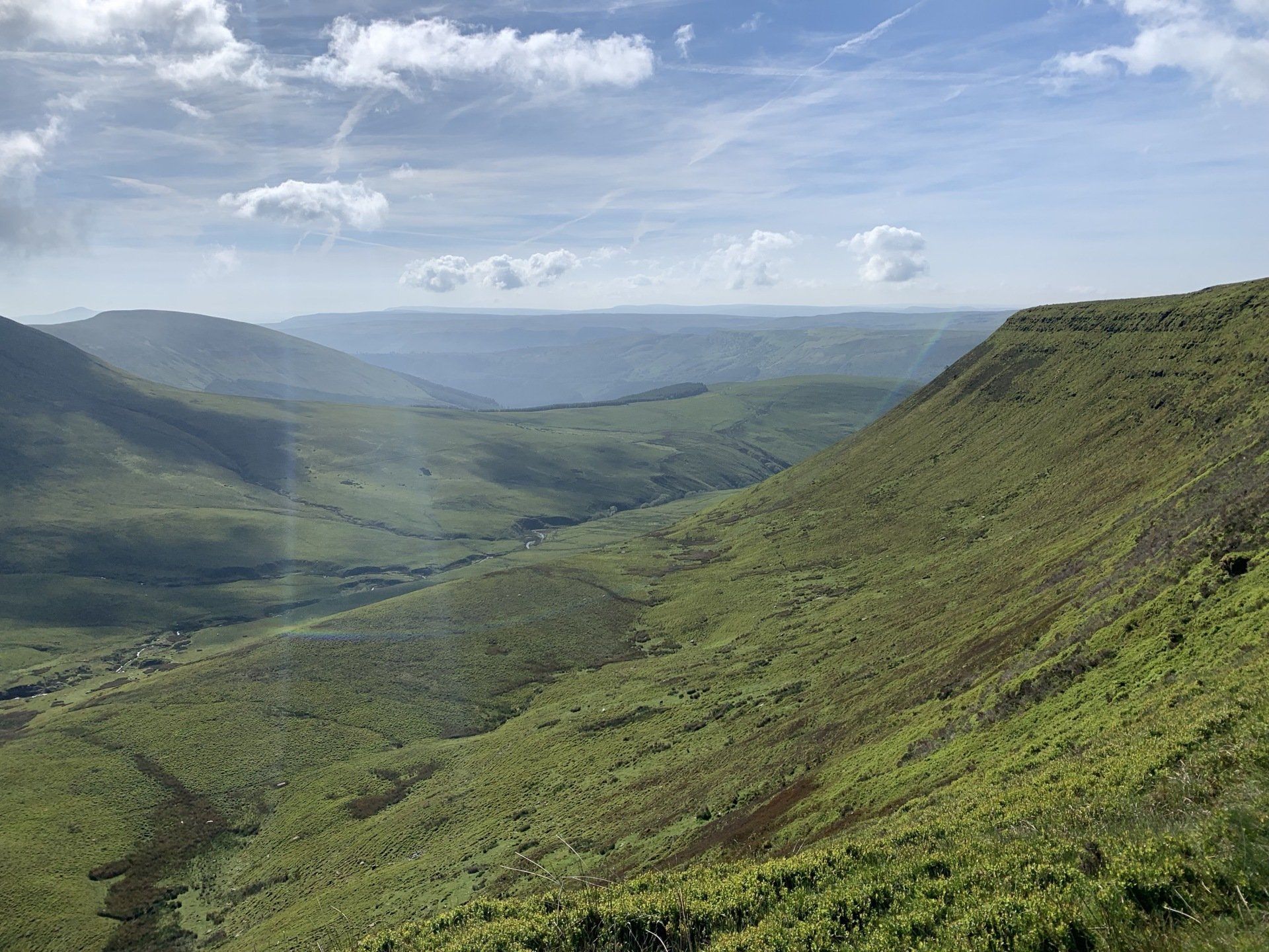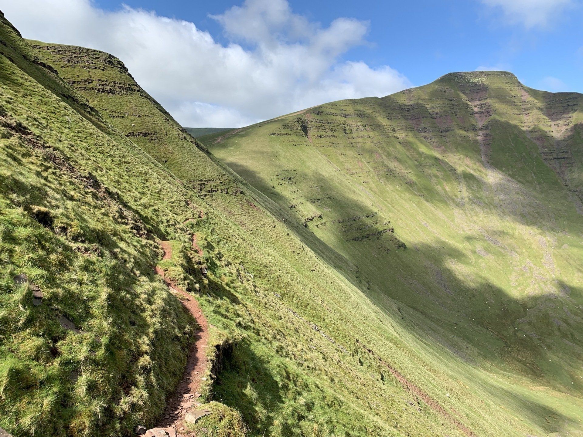 June 2021- Ascent from Blaen-y-glyn. Gorgeous weather. Gorgeous walk. The 'Goat Track' across the north face of Cribyn was fun.
