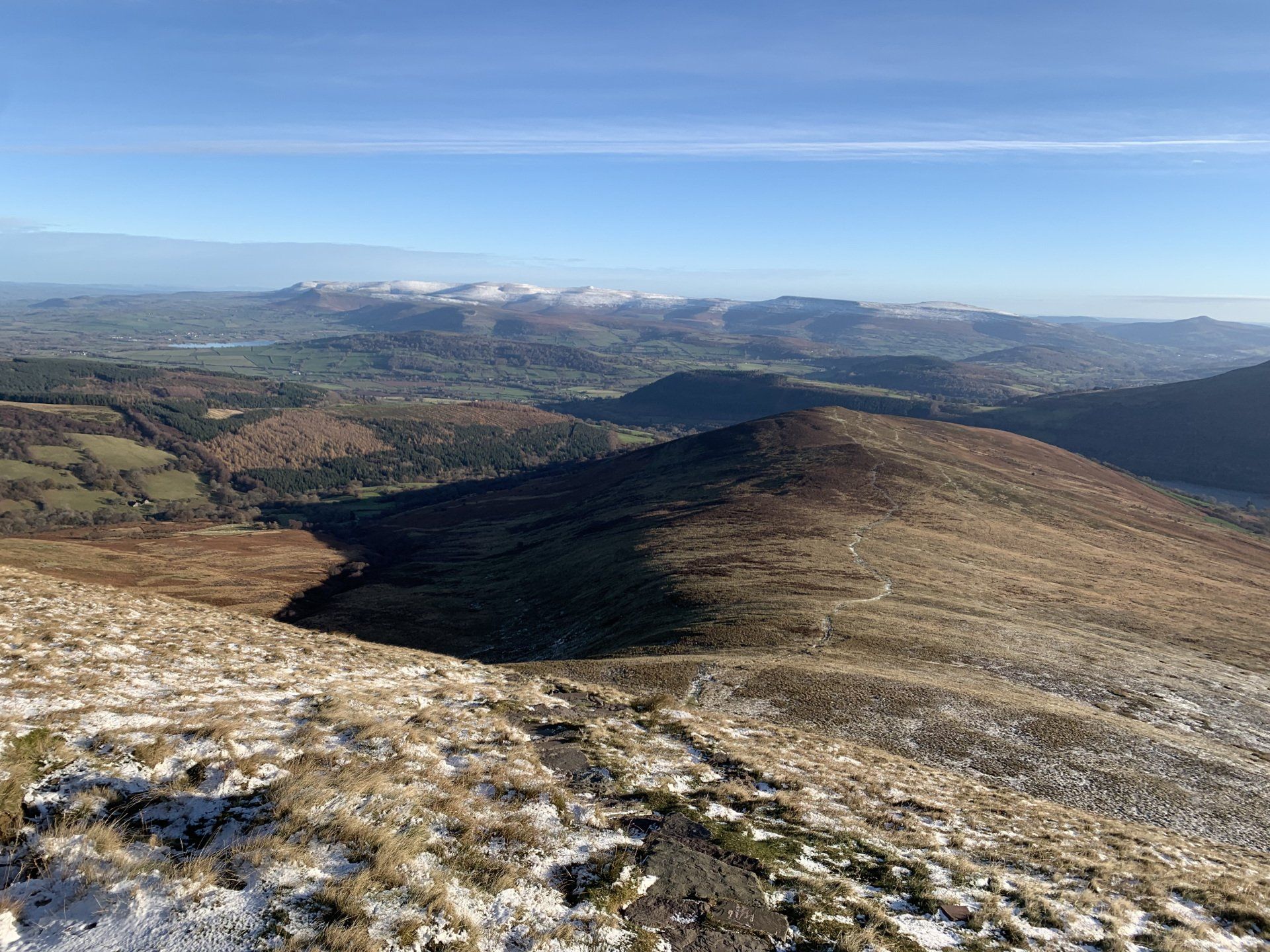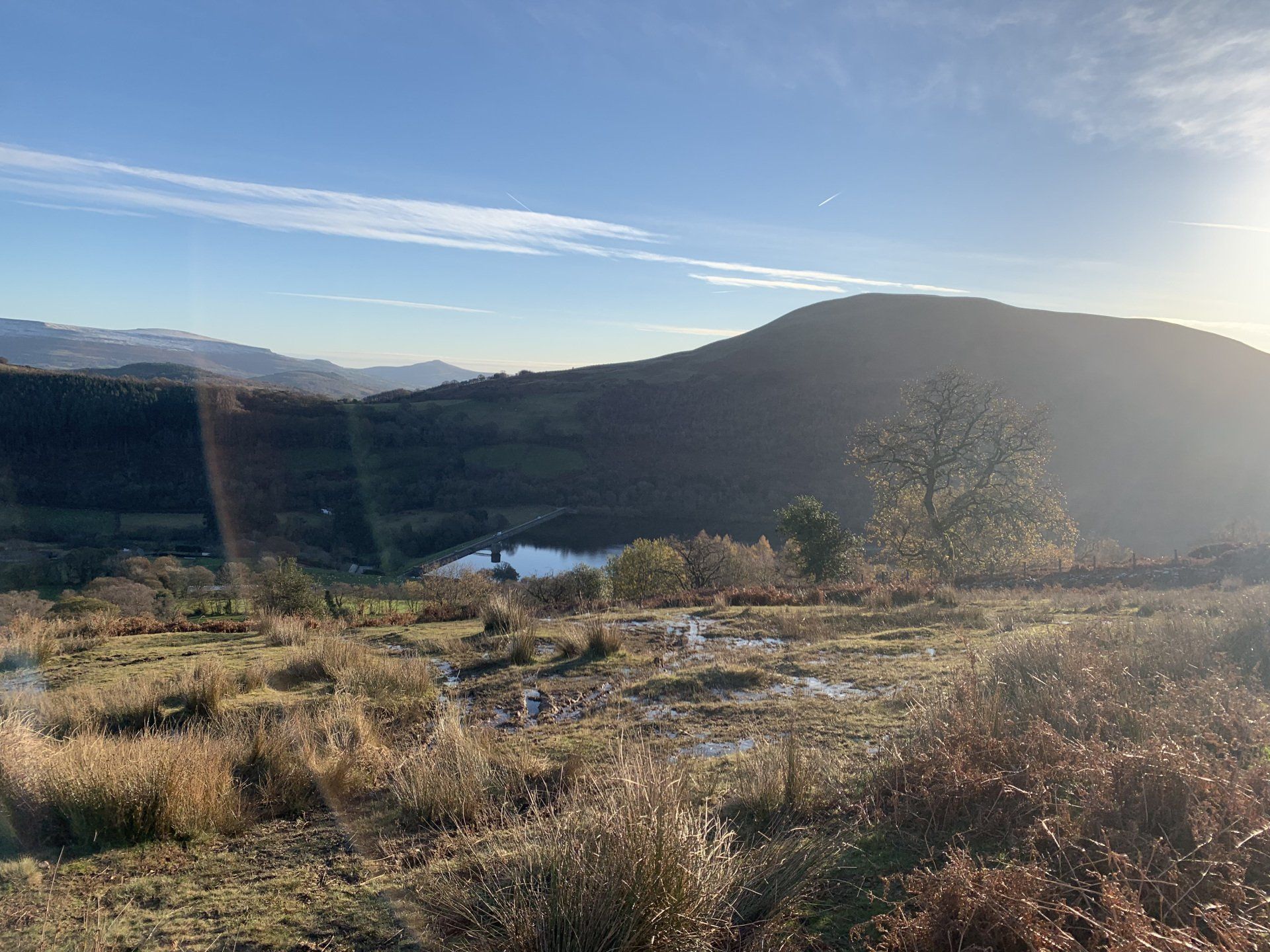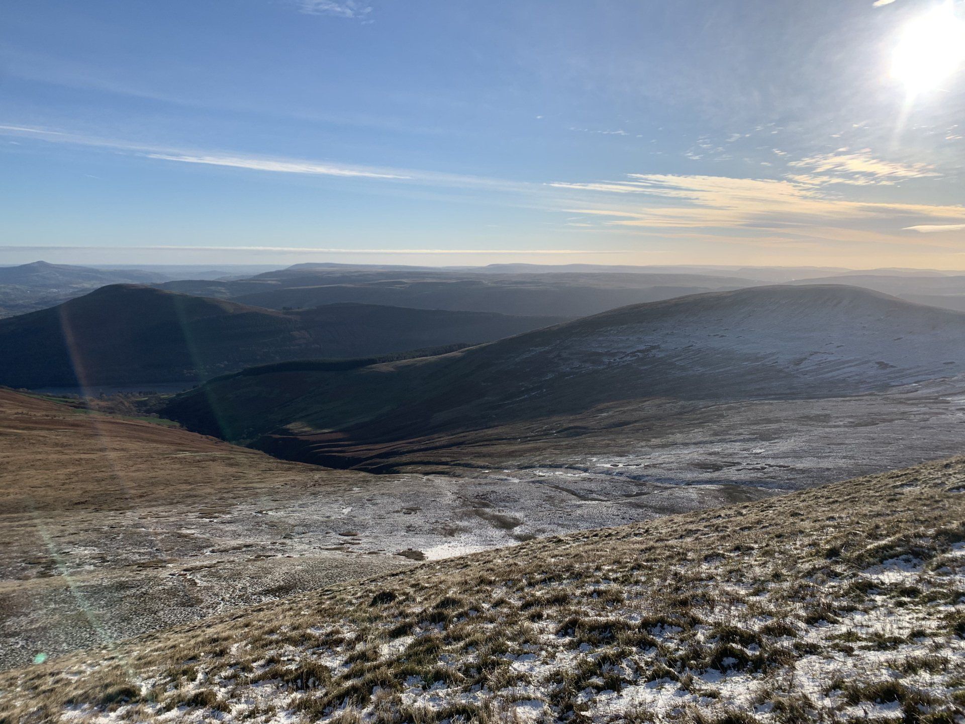 Nov 2021 - Ascent from Talybont Reservoir. Gorgeous light and incredible visibility meant the central Cambrians were visible to the north.