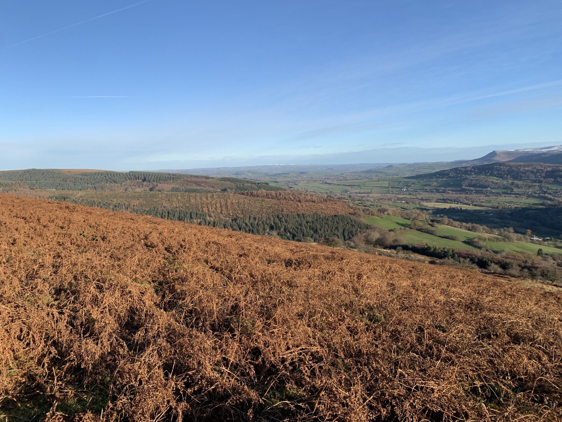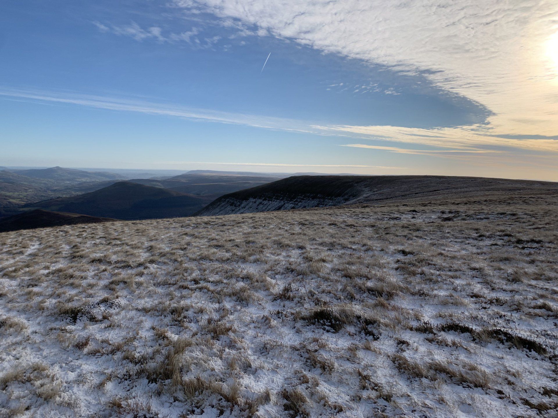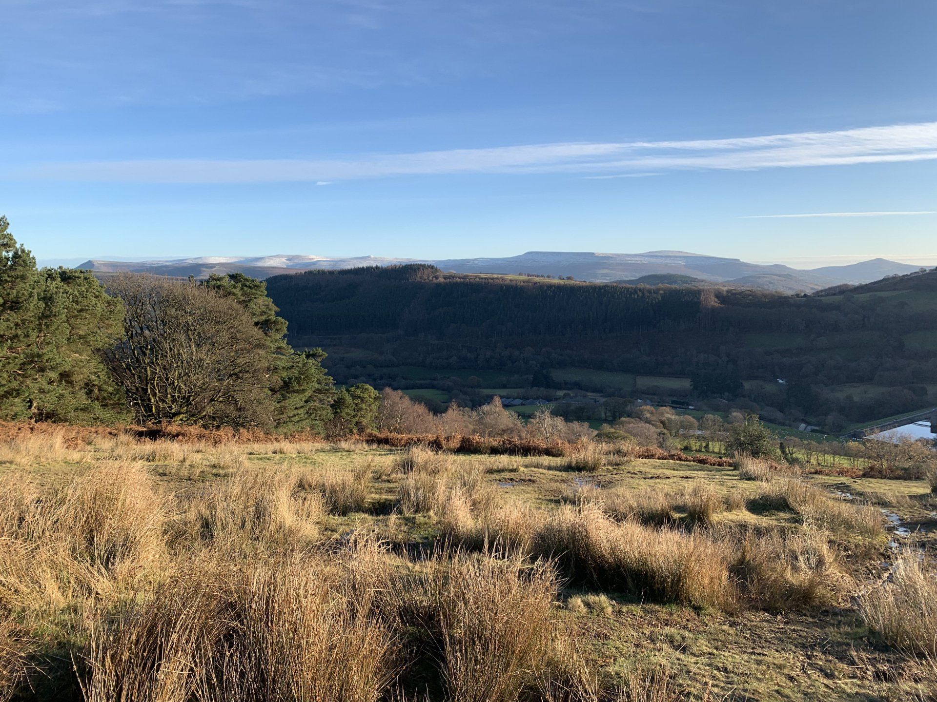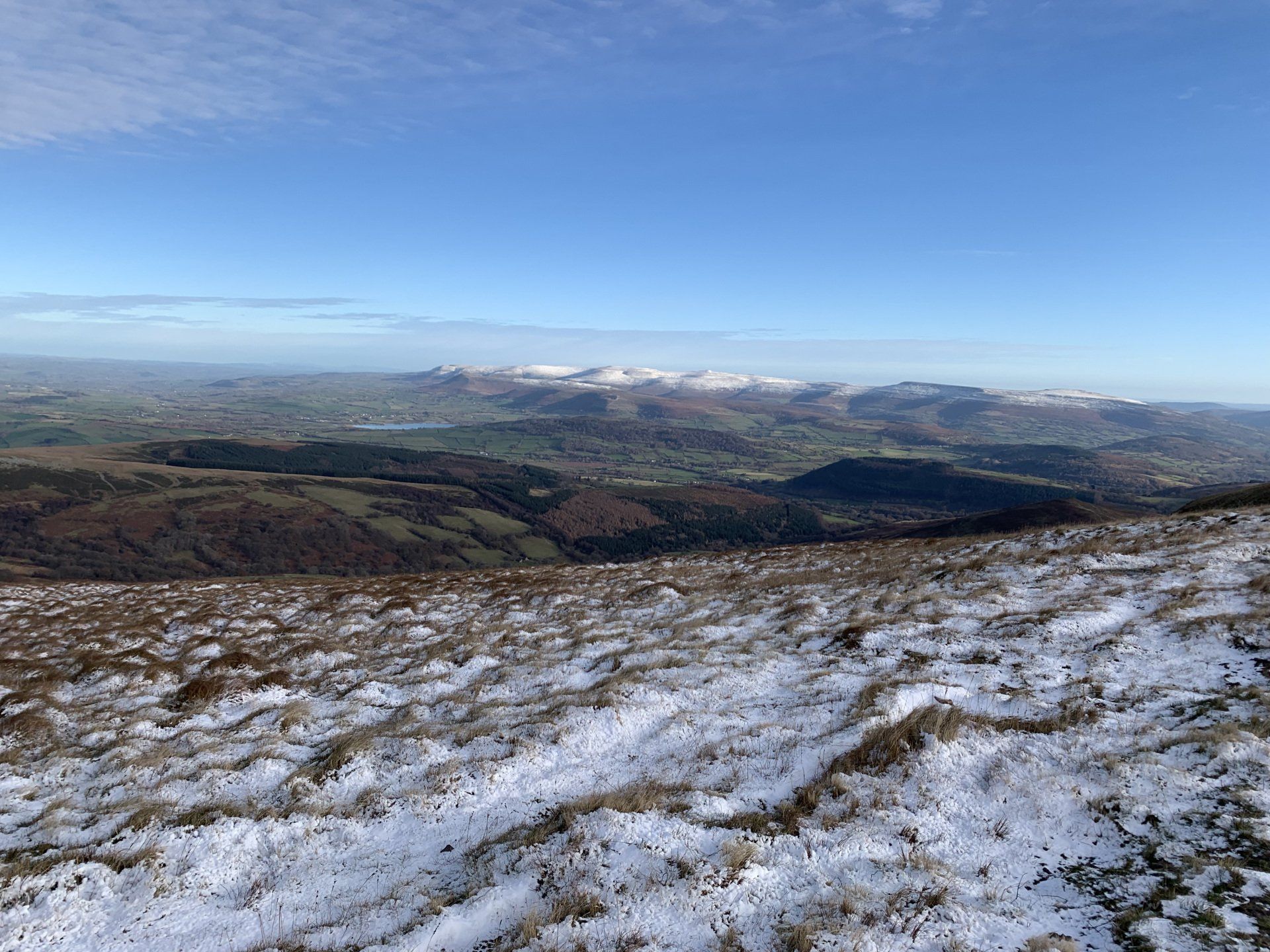Nov 2021 - Ascent from Talybont Reservoir. Gorgeous light and incredible visibility meant the central Cambrians were visible to the north.